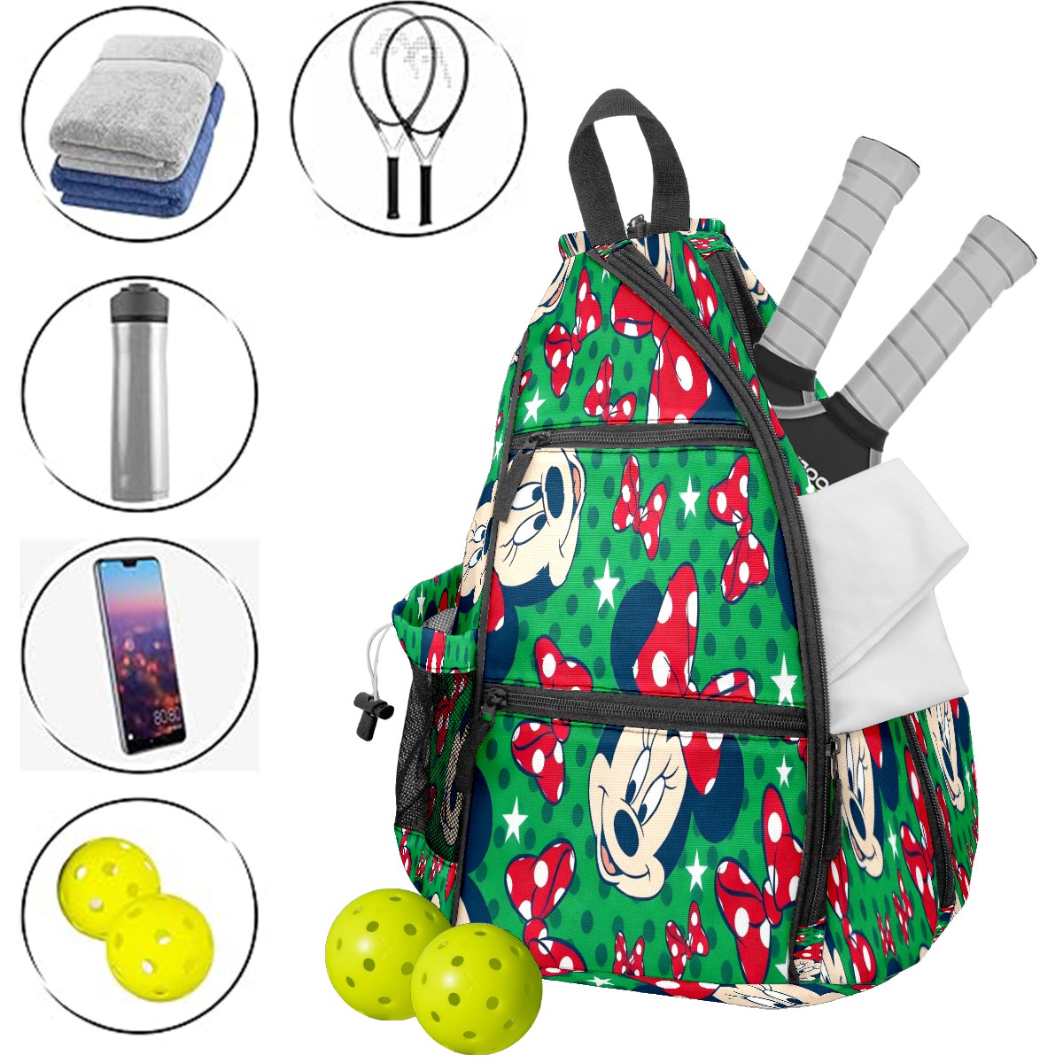 Multifunctional Pickleball Bag,Large Capacity Sports Pickleball Racket Bag, Water Bottle Holder and Fence Hook,Suitable for Both Men Women -Mickey Green