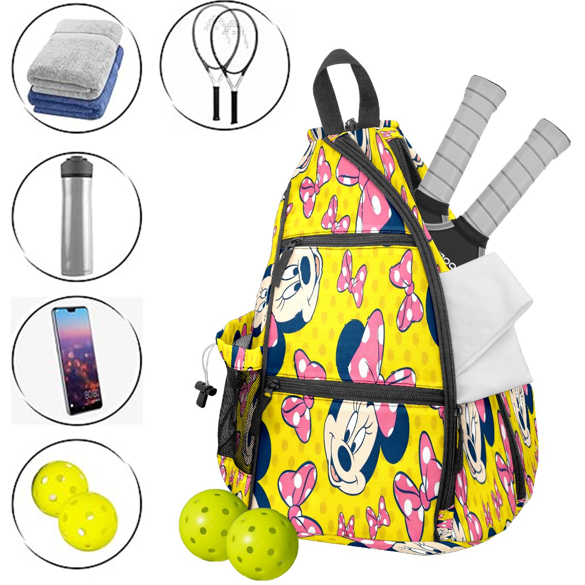 Multifunctional Pickleball Bag,Large Capacity Sports Pickleball Racket Bag, Water Bottle Holder and Fence Hook,Suitable for Both Men Women -Minnie Yellow