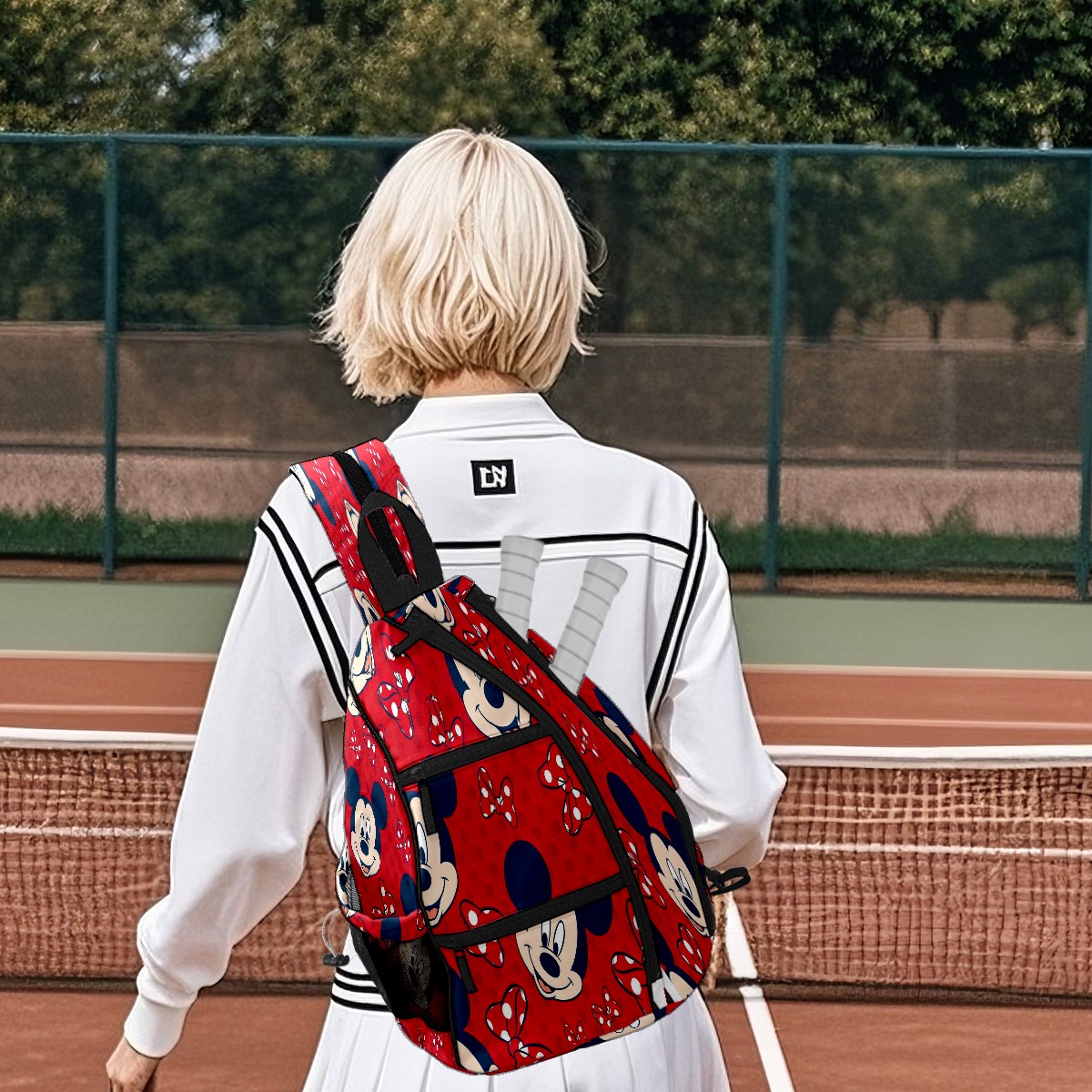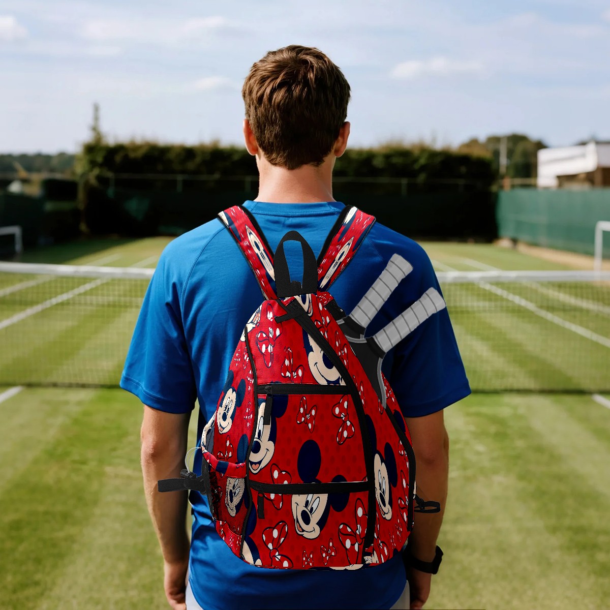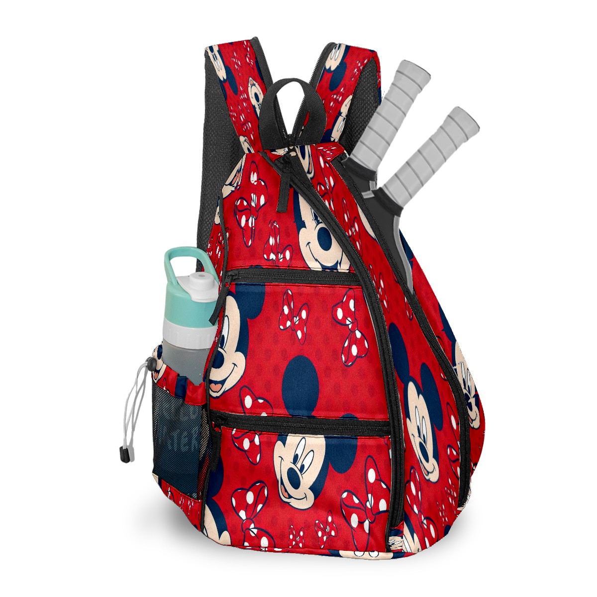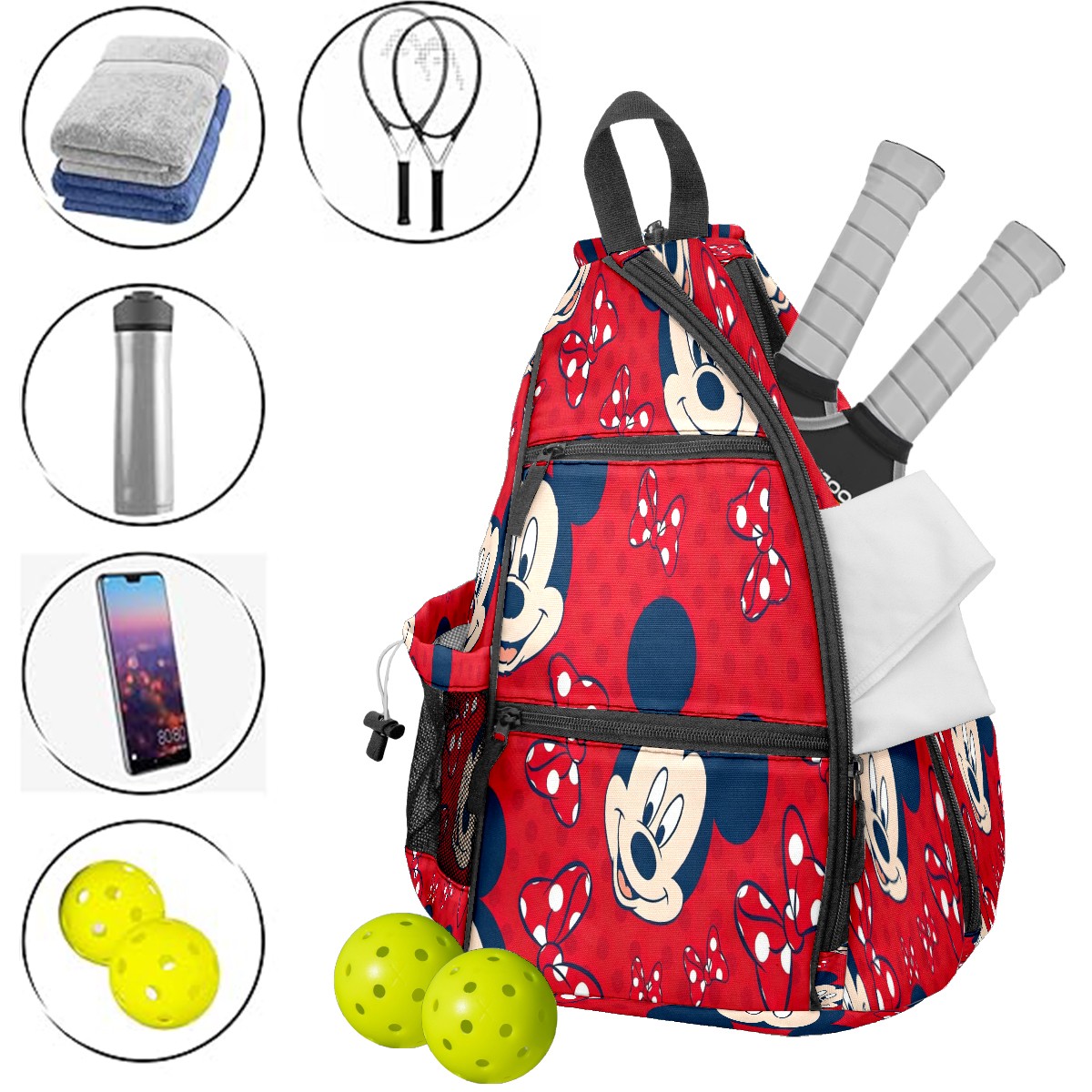 Multifunctional Pickleball Bag,Large Capacity Sports Pickleball Racket Bag, Water Bottle Holder and Fence Hook,Suitable for Both Men Women -Mickey Red