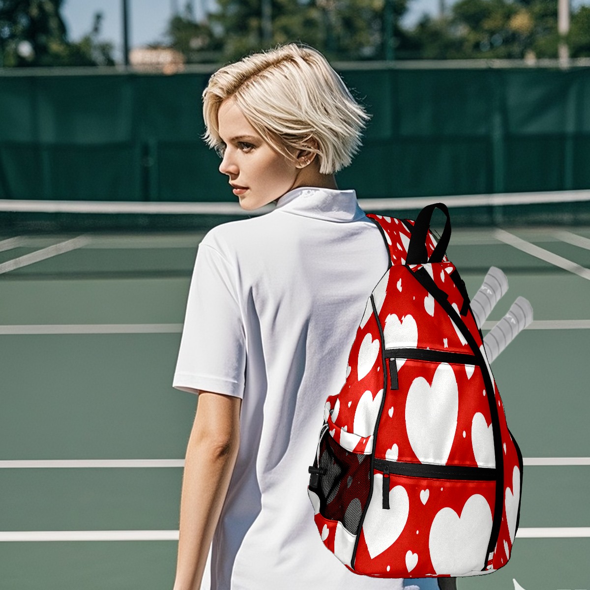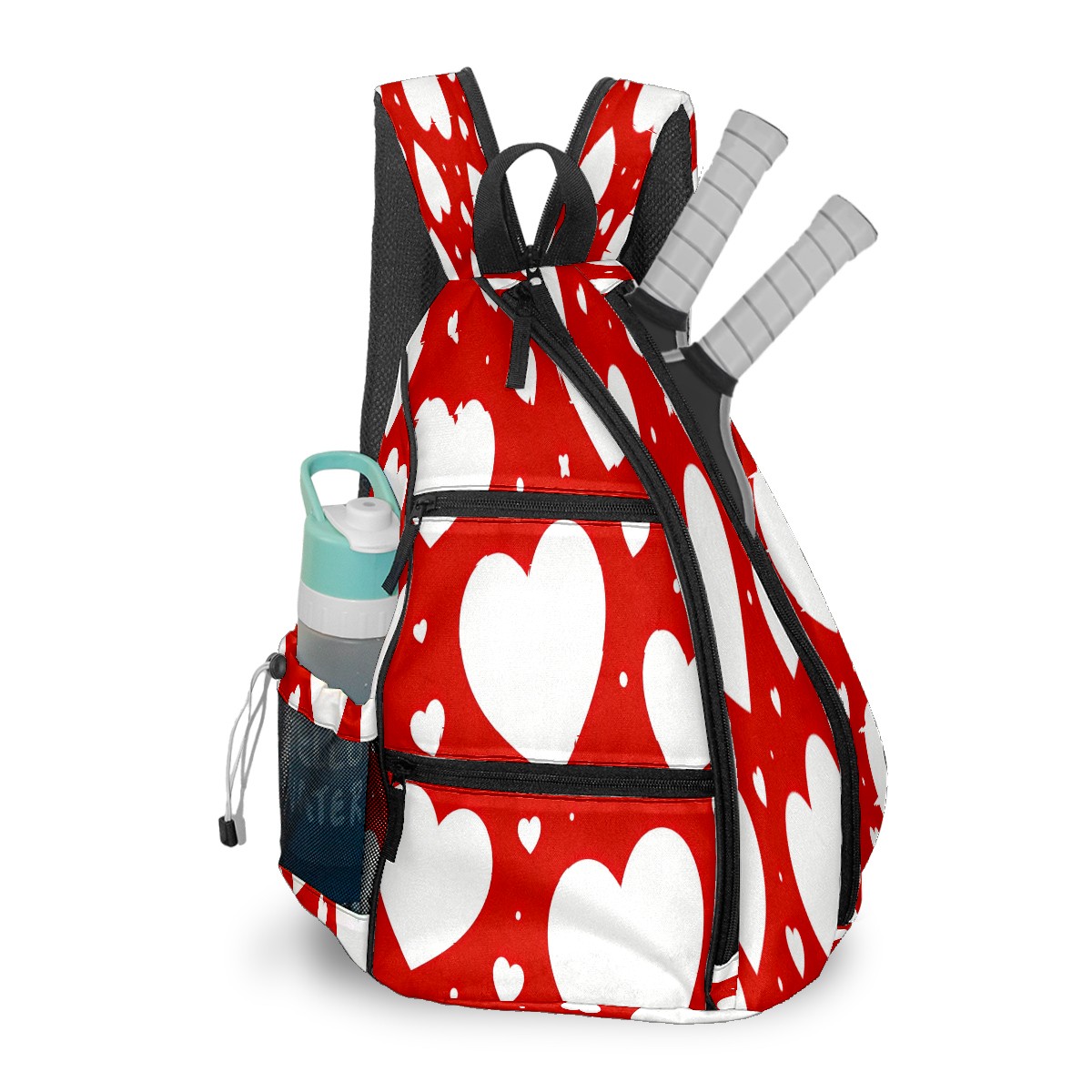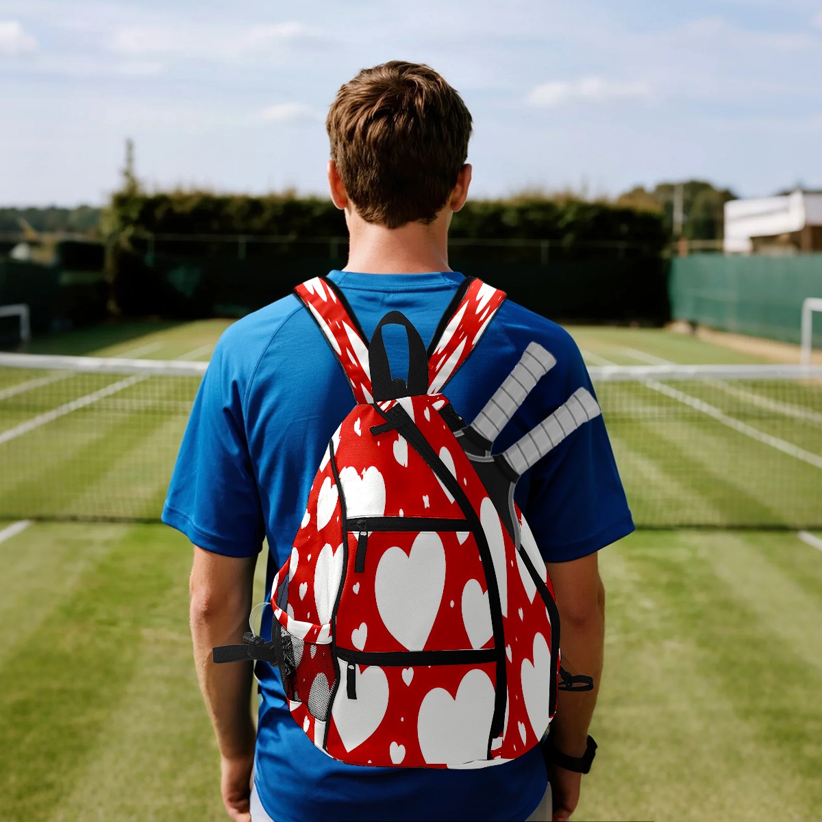 Multifunctional Pickleball Bag,Large Capacity Sports Pickleball Racket Bag, Water Bottle Holder and Fence Hook,Suitable for Both Men Women -Red Hearts