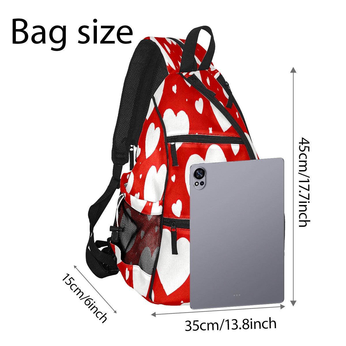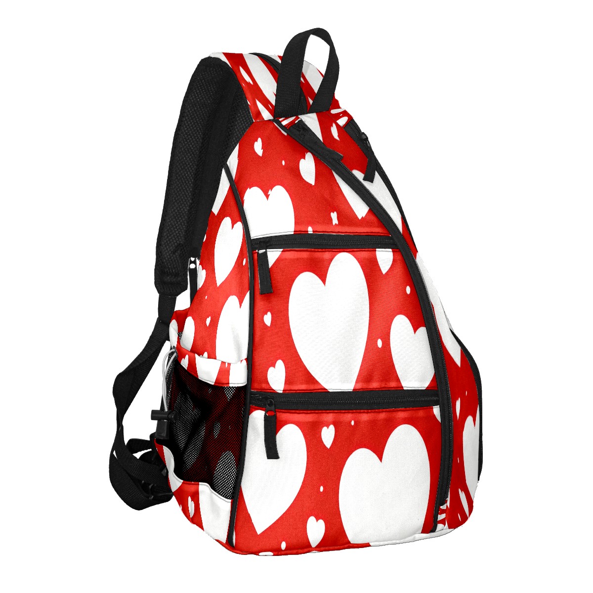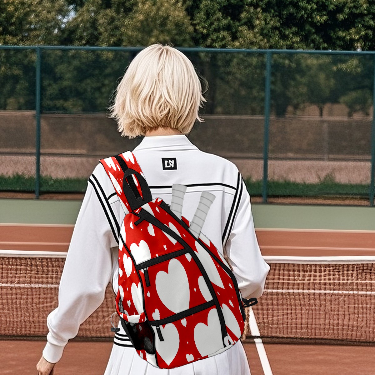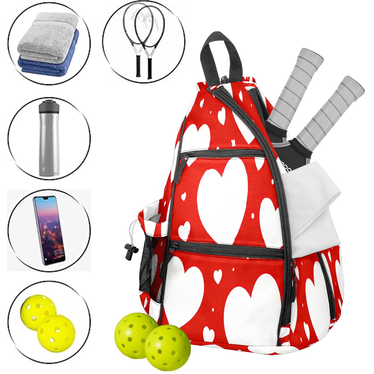 Multifunctional Pickleball Bag,Large Capacity Sports Pickleball Racket Bag, Water Bottle Holder and Fence Hook,Suitable for Both Men Women -Red Hearts