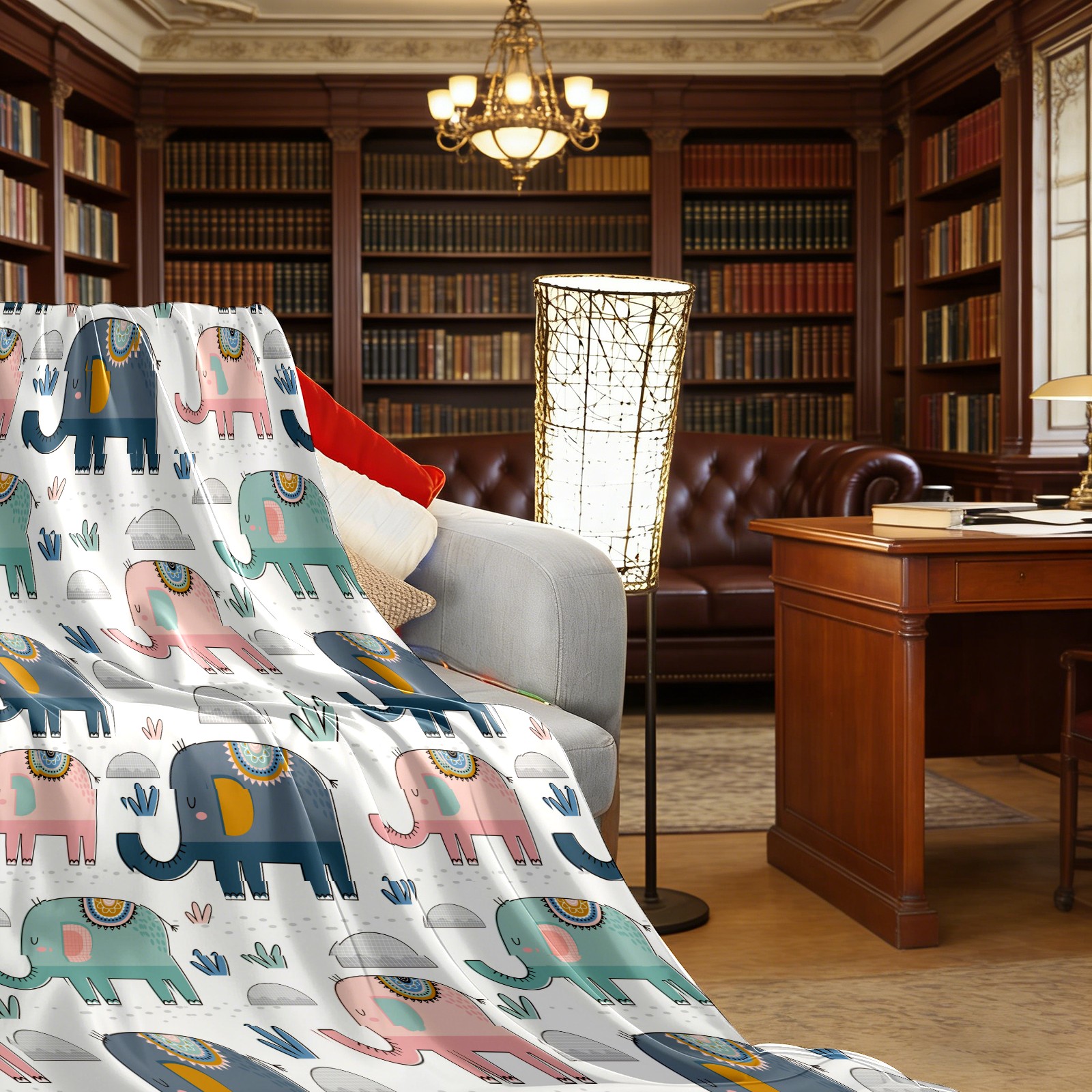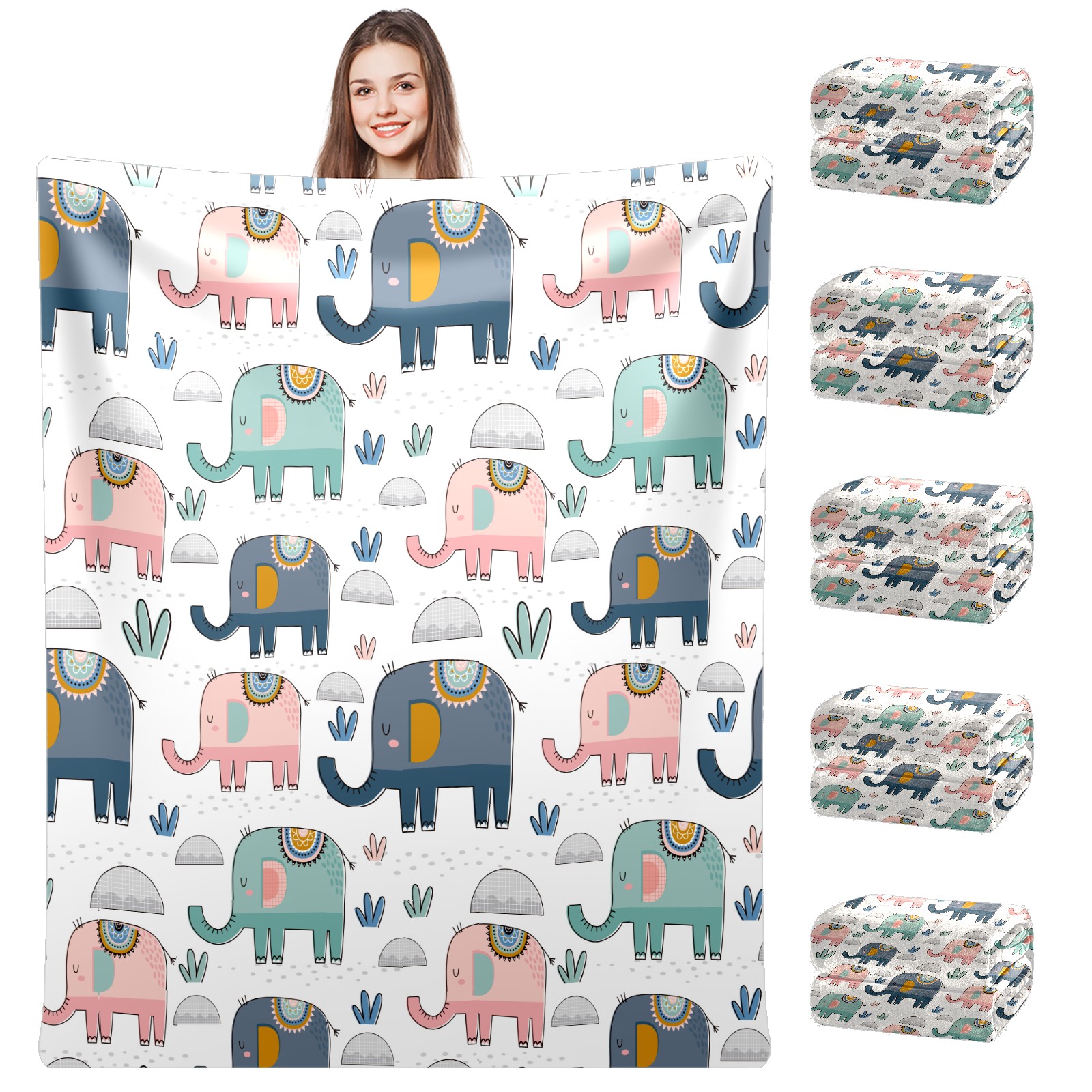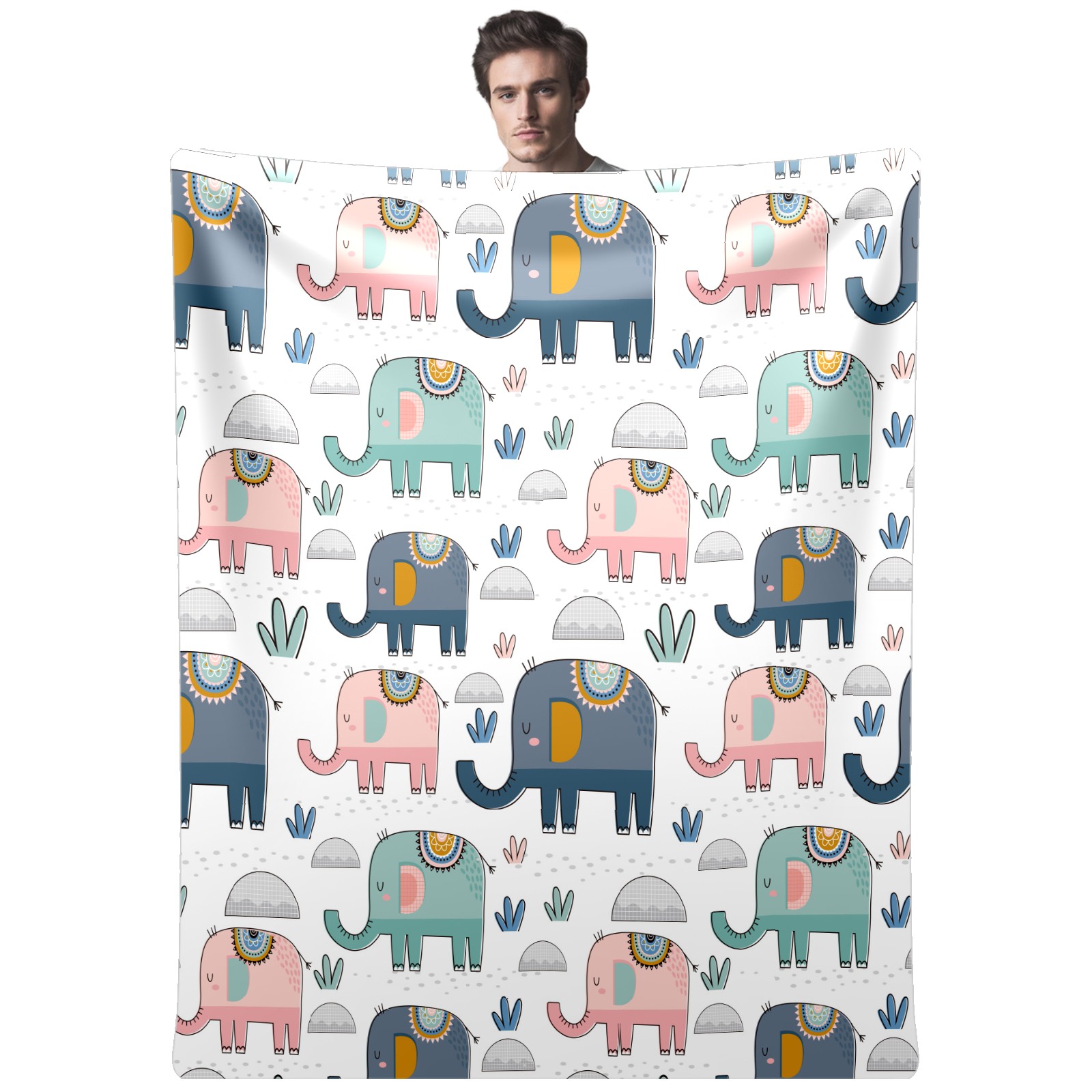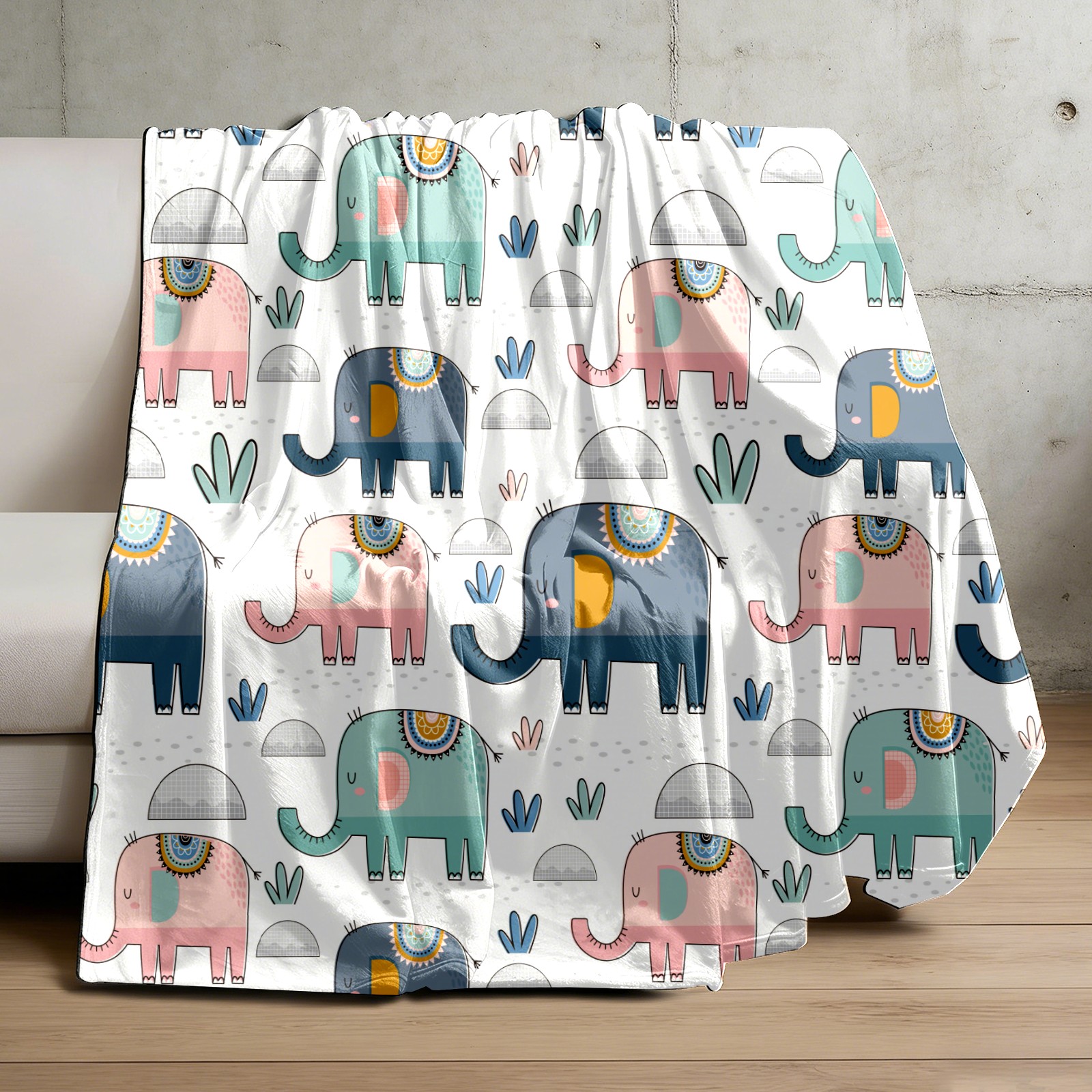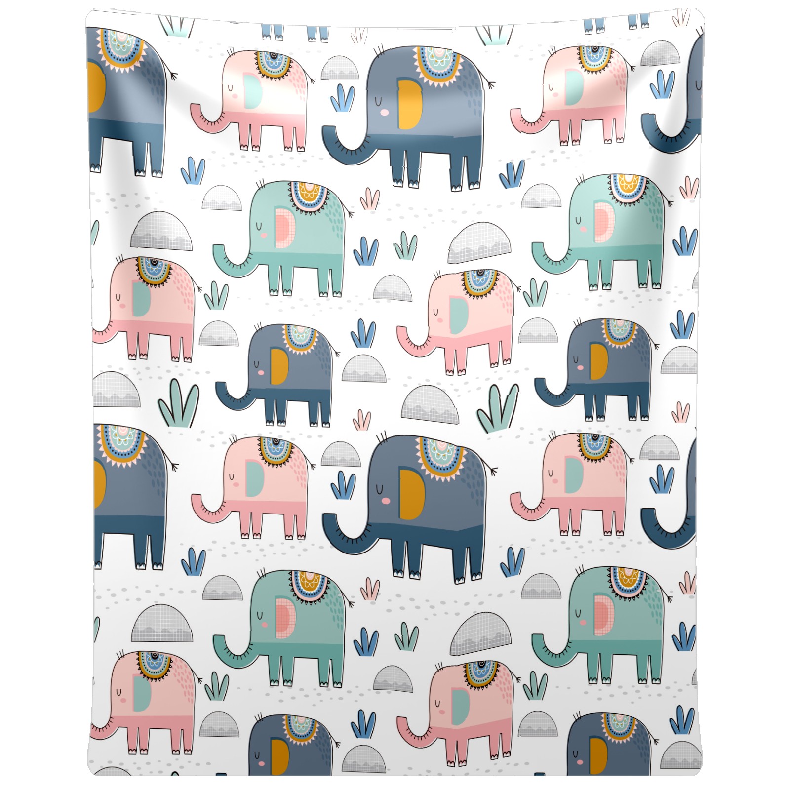 Pink Green Navy Elephants Cactus