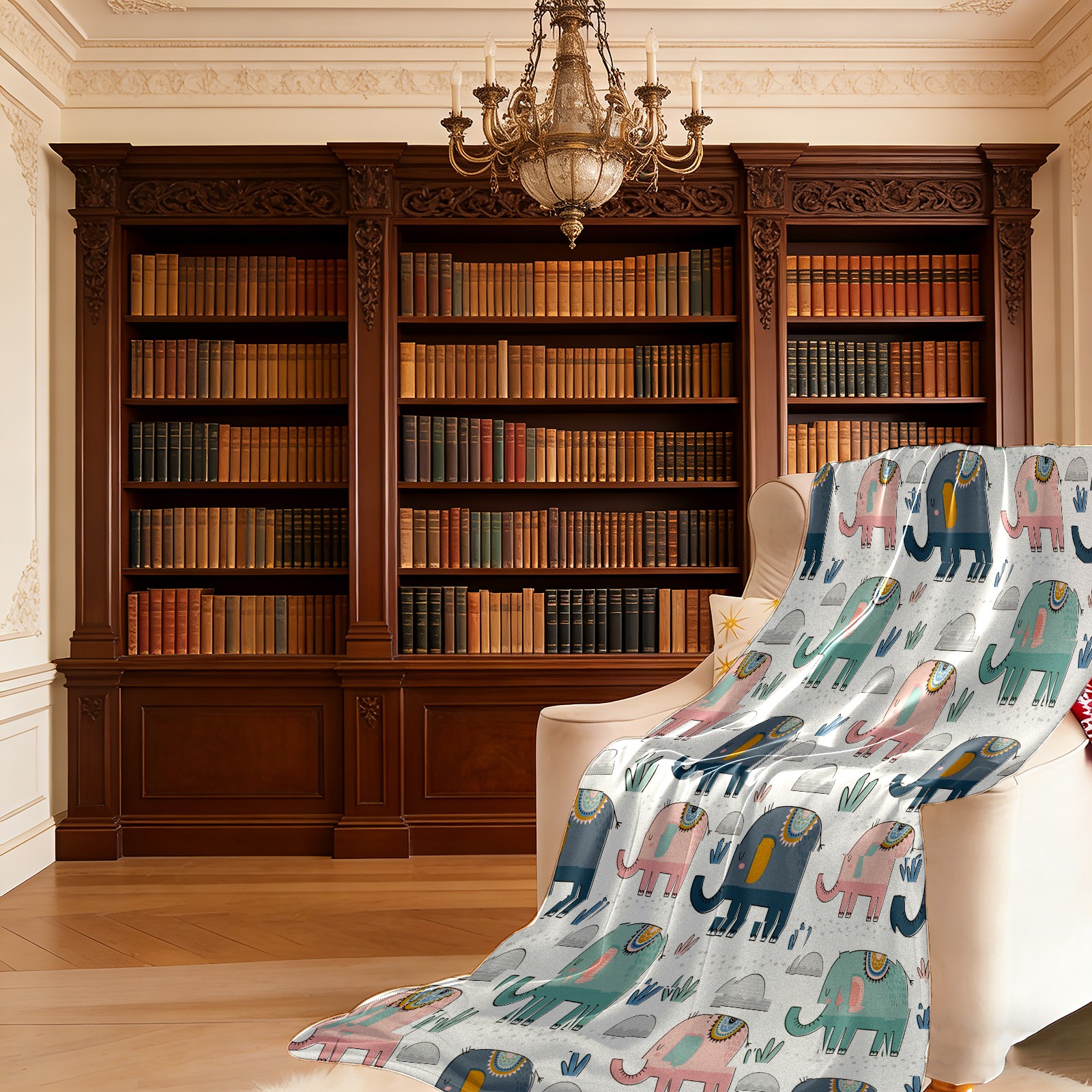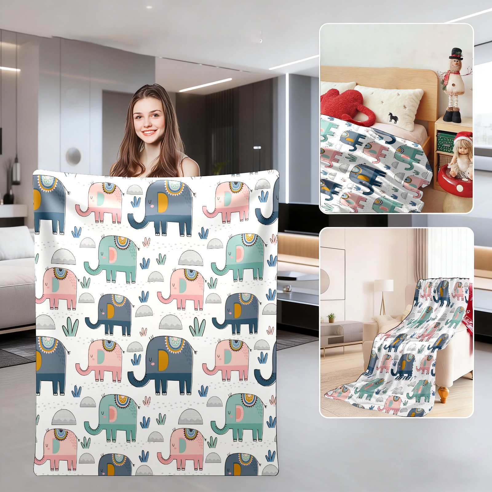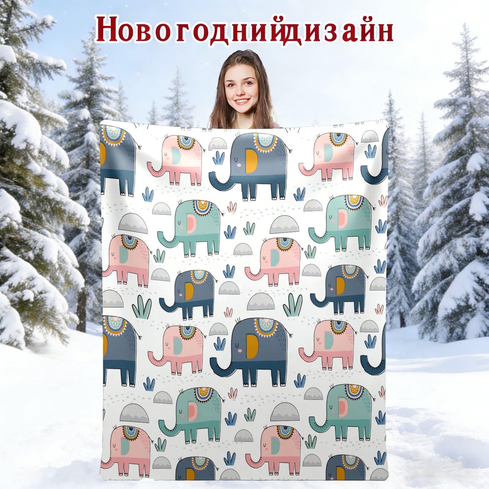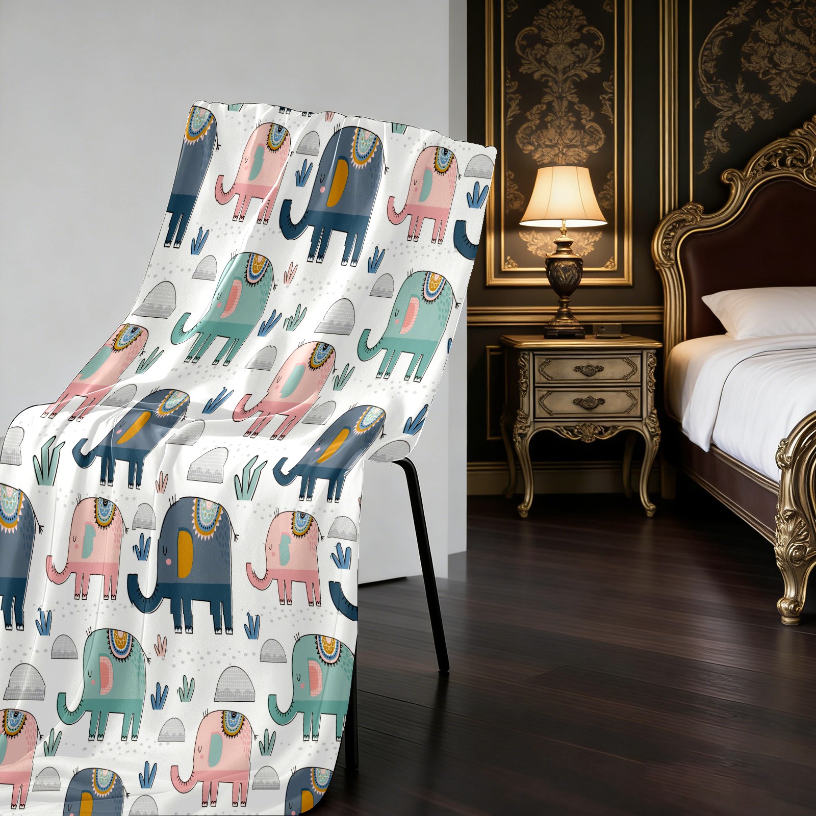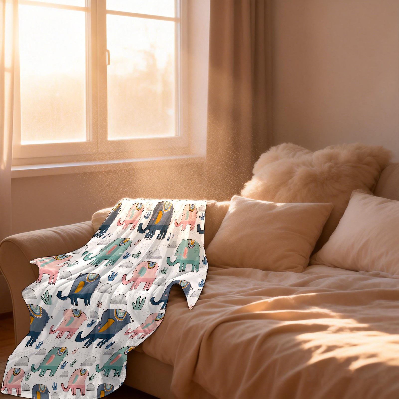 Pink Green Navy Elephants Cactus