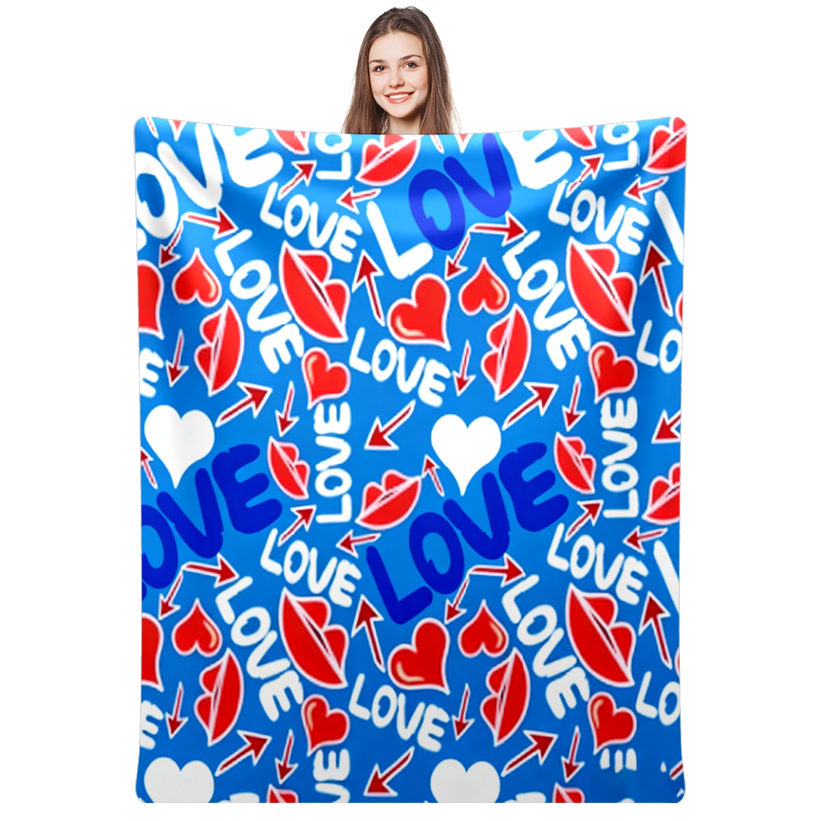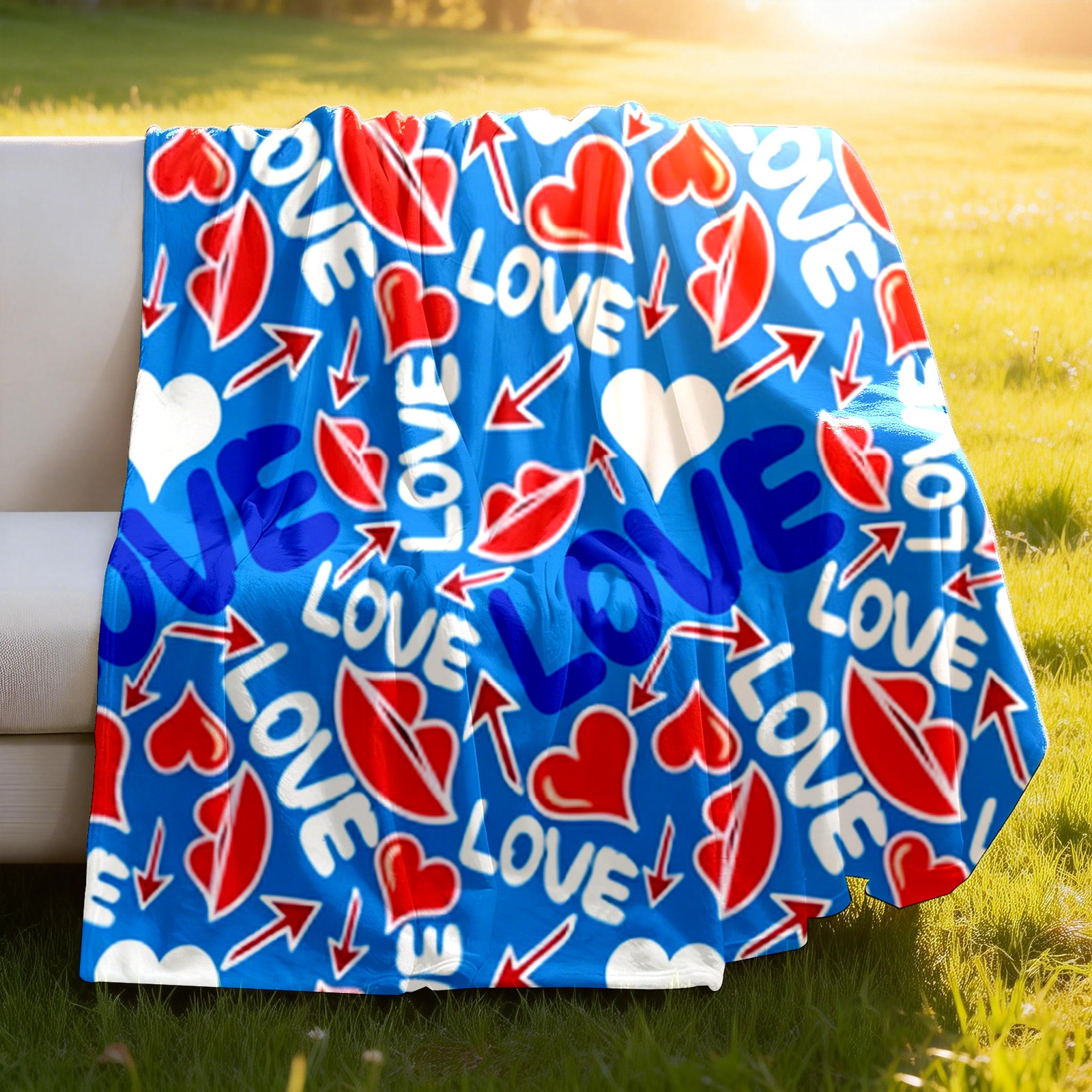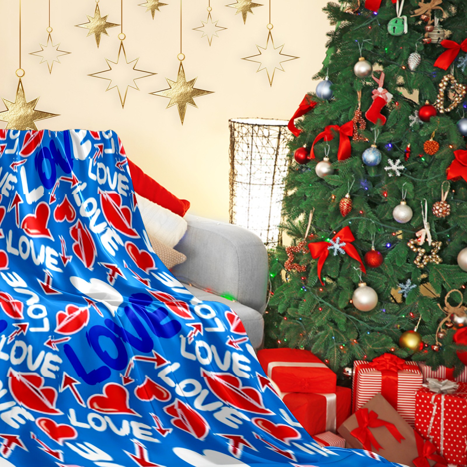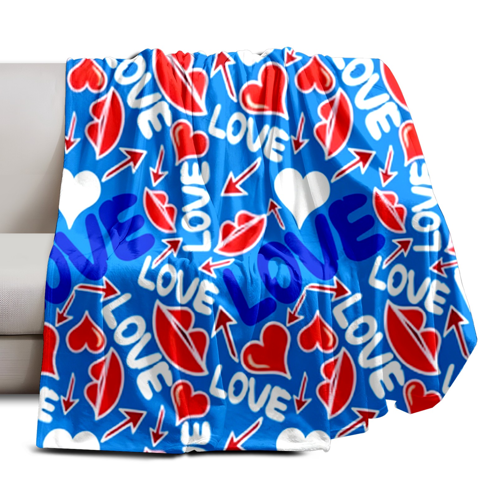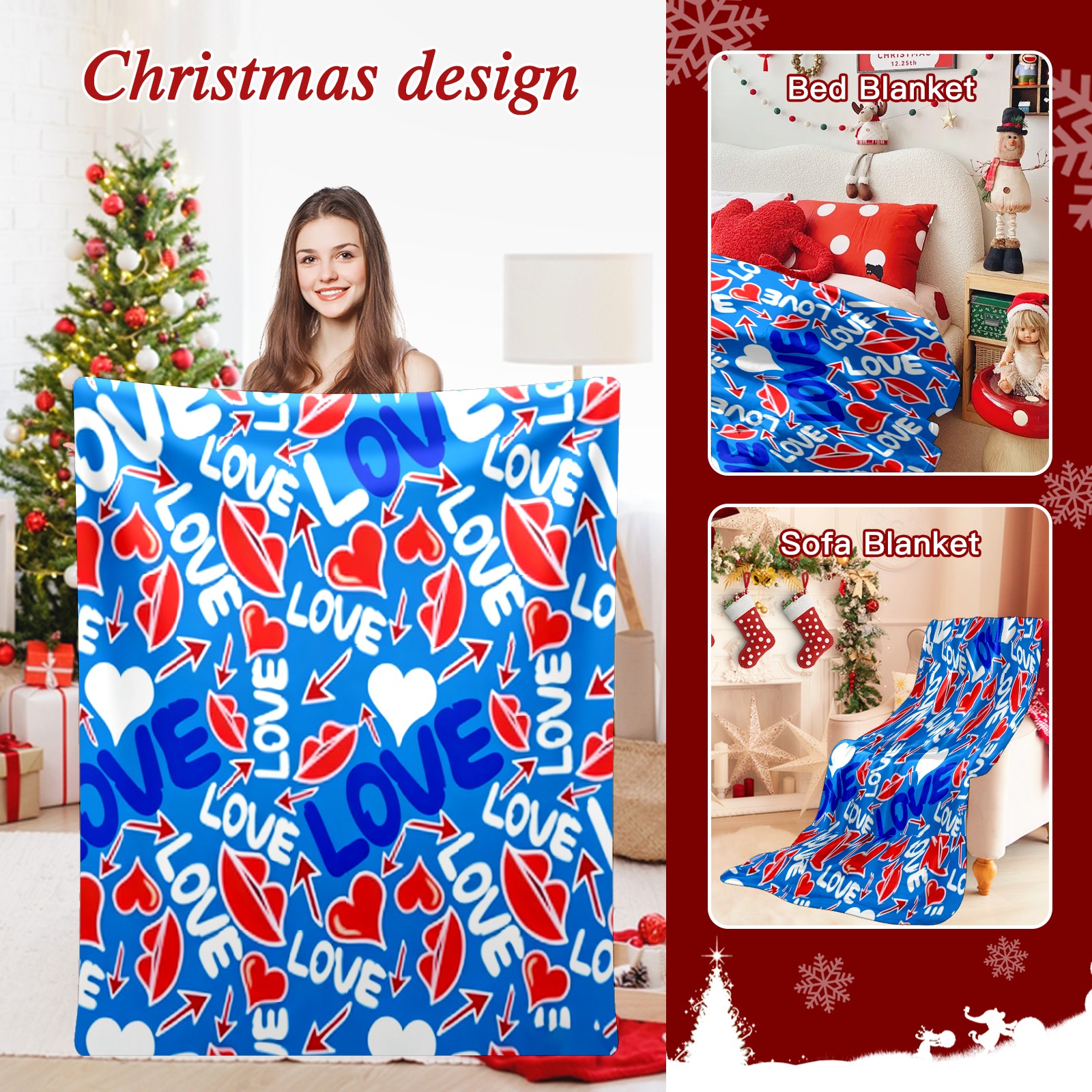 Counullo Flannel Throw Blanket, Ultra Soft Anti-Pilling Blanket for Couch & Bed, Lightweight Cozy Blanket for Travel, Home, Camping Gift - (30" x 39"), LOVE & Heart Blue