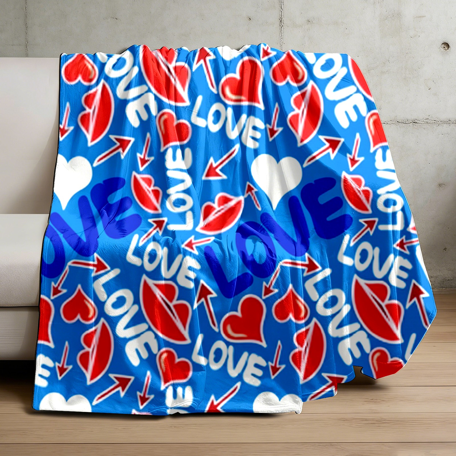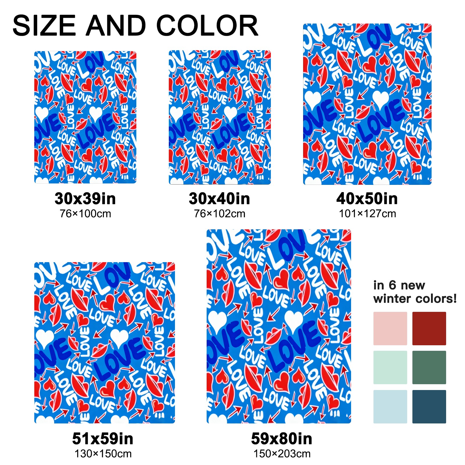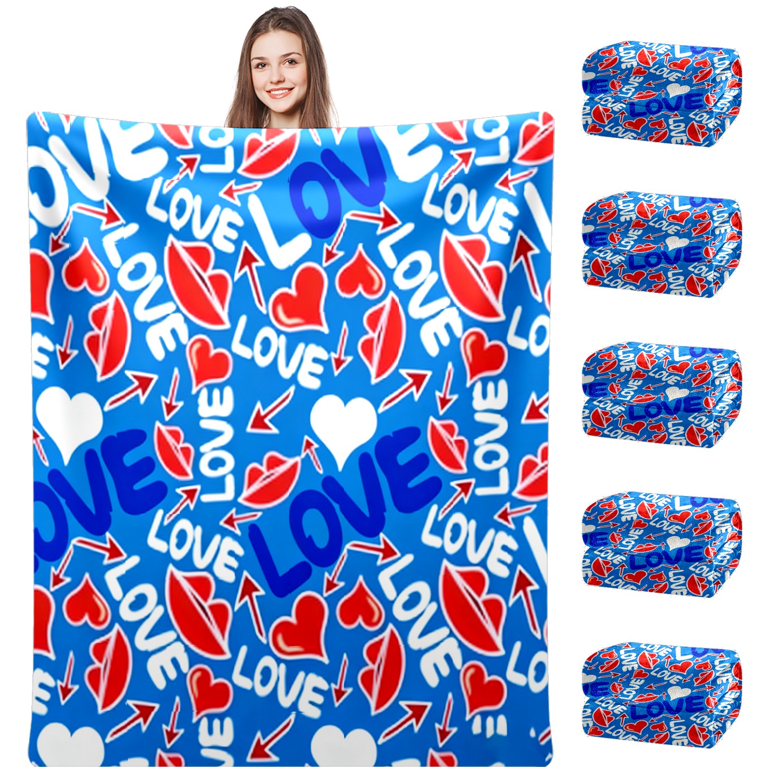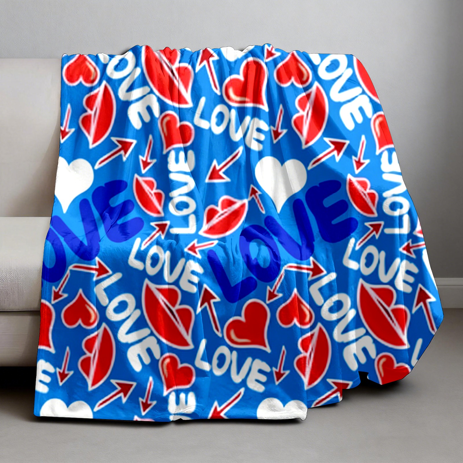 Counullo Flannel Throw Blanket, Ultra Soft Anti-Pilling Blanket for Couch & Bed, Lightweight Cozy Blanket for Travel, Home, Camping Gift - (30" x 39"), LOVE & Heart Blue