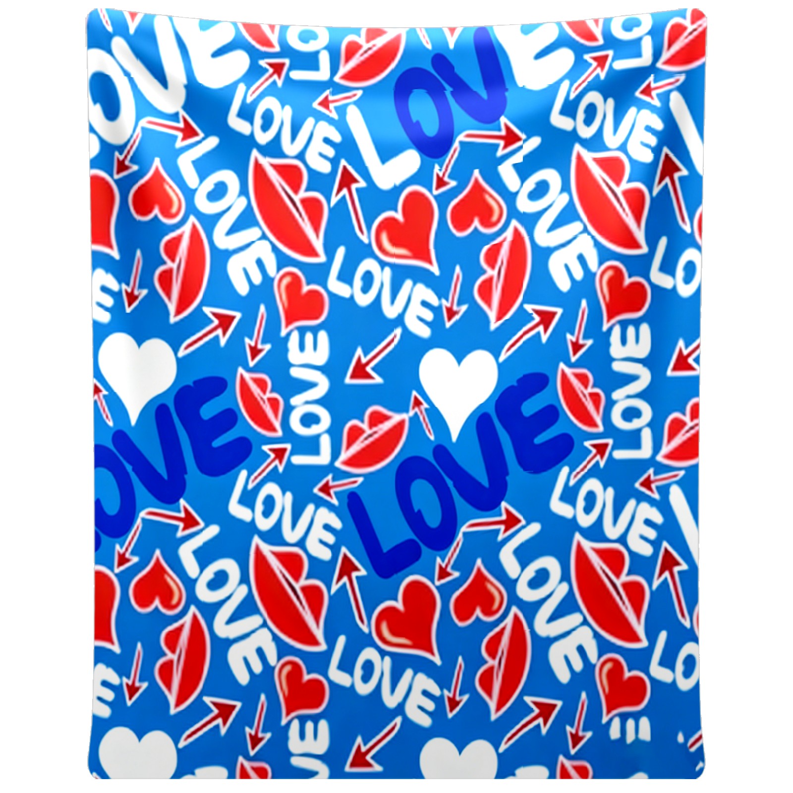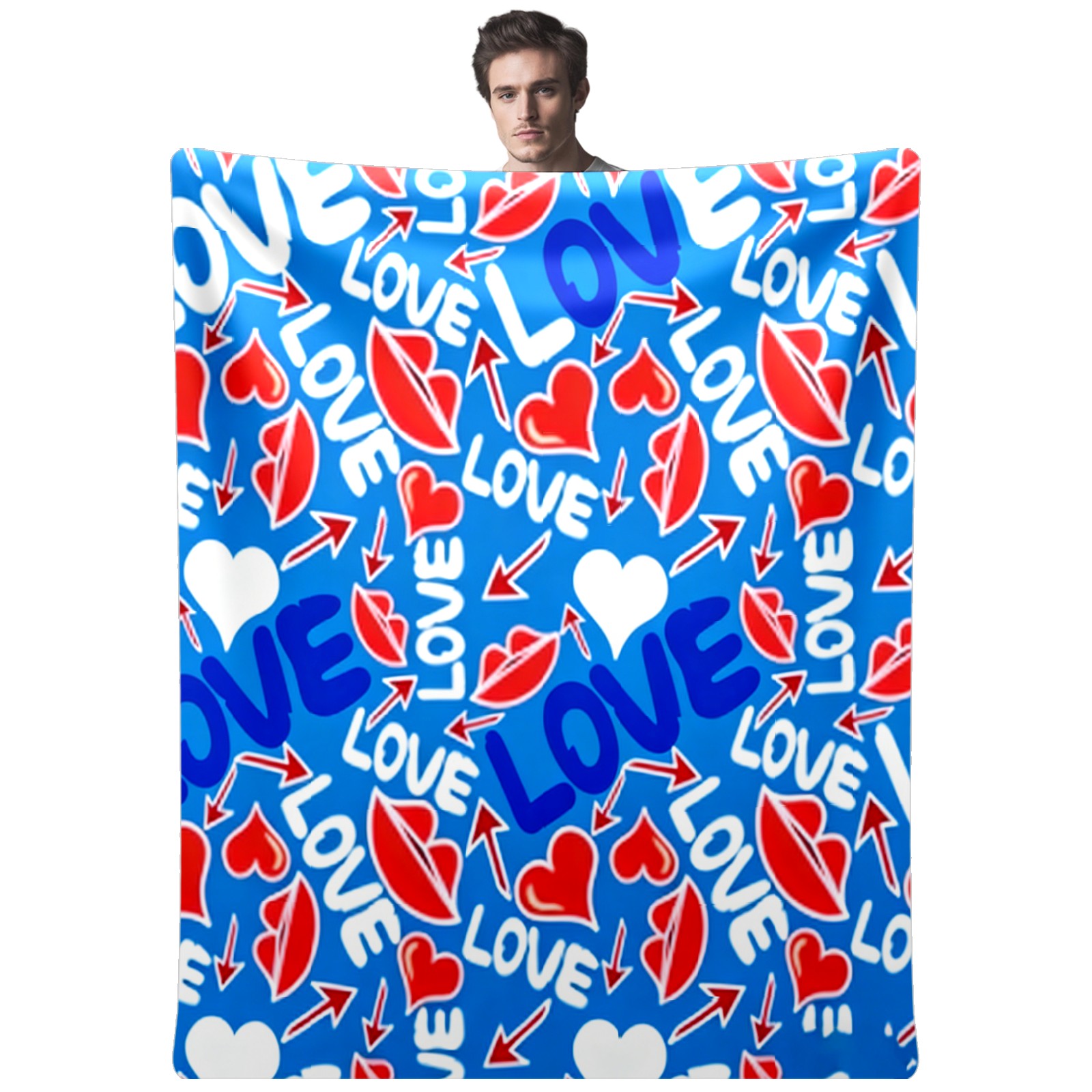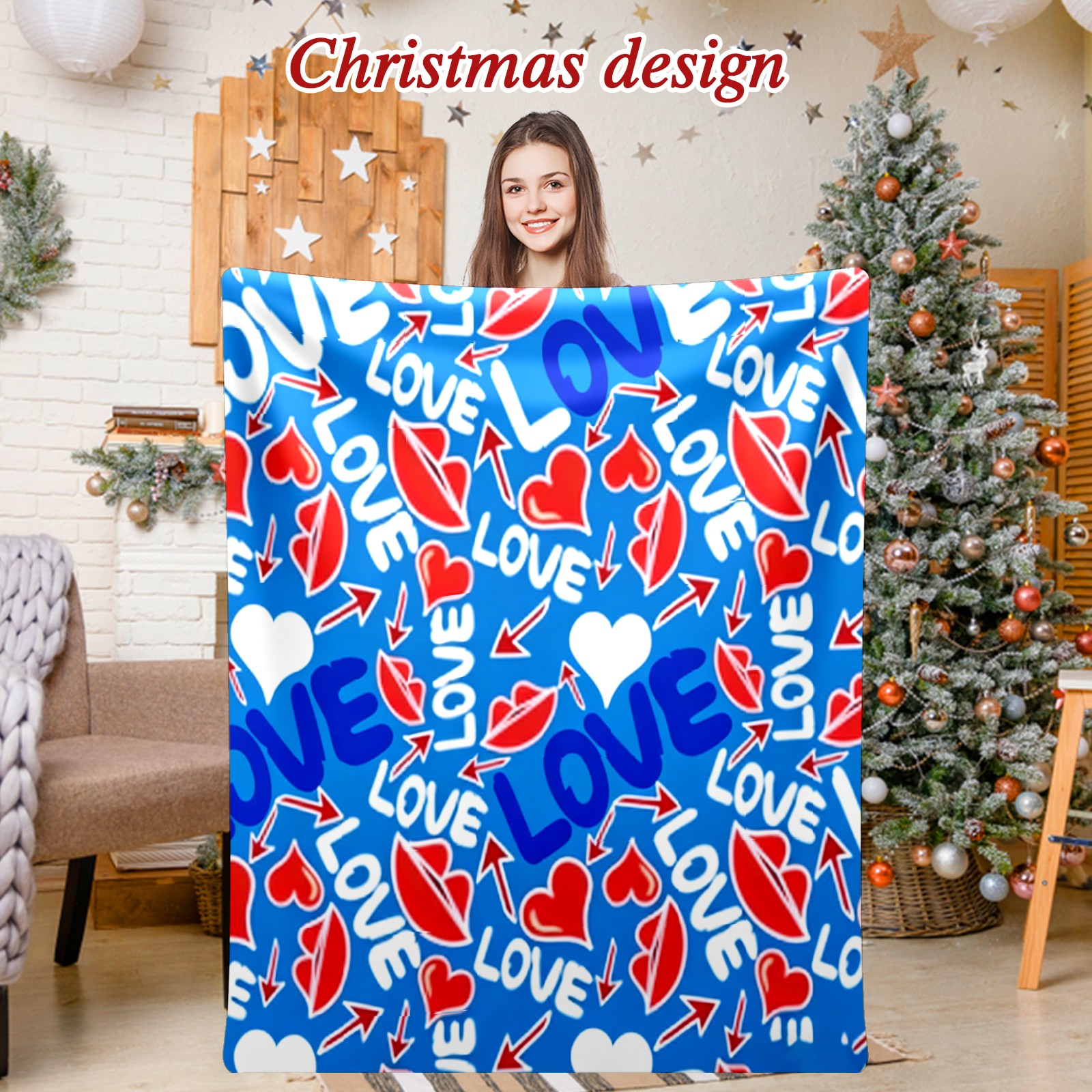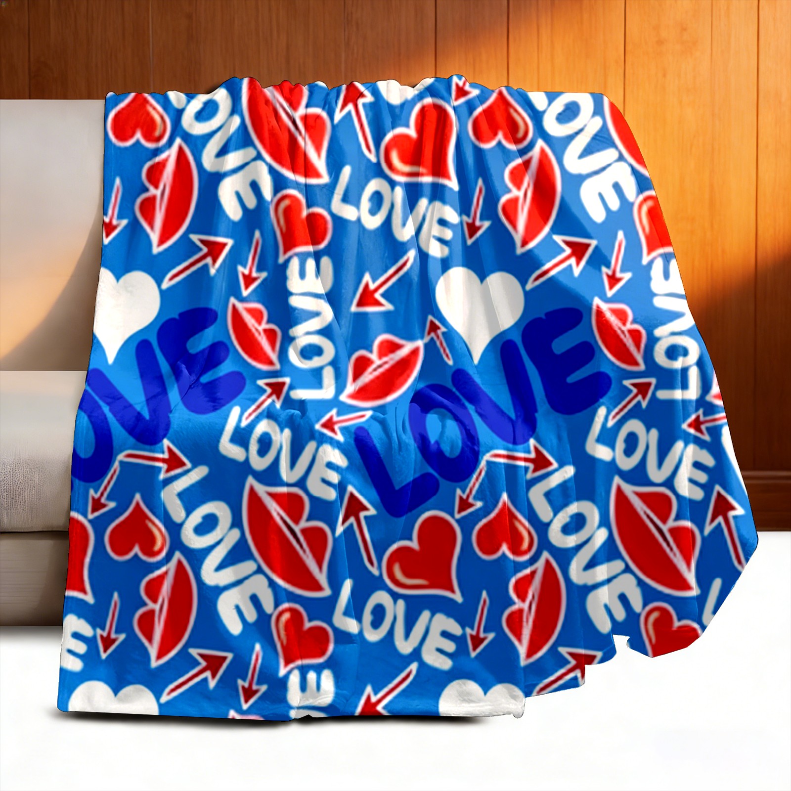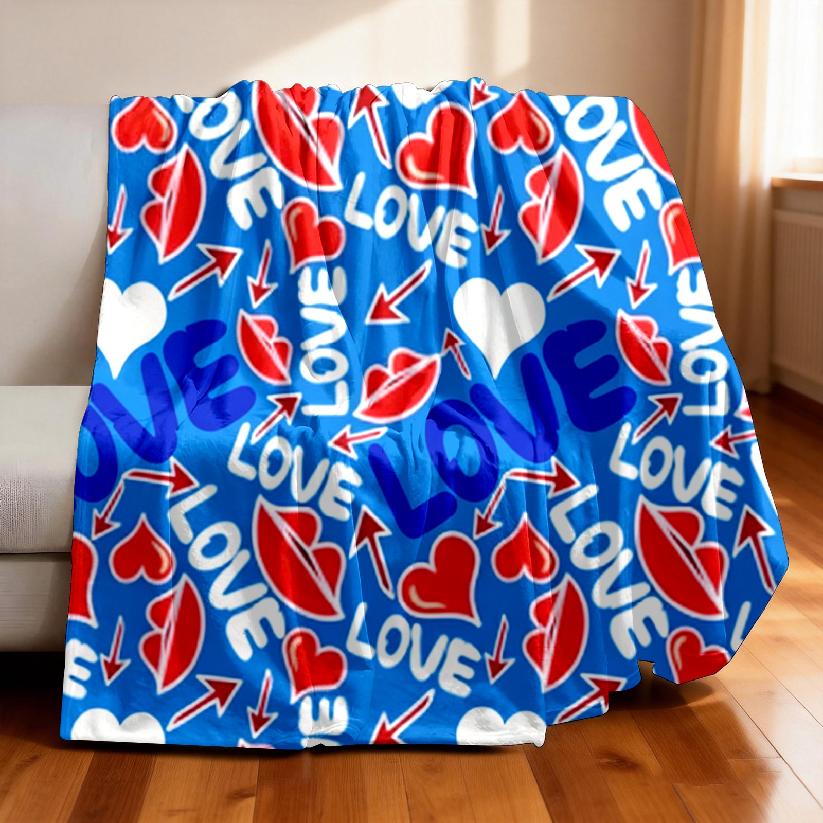 Counullo Flannel Throw Blanket, Ultra Soft Anti-Pilling Blanket for Couch & Bed, Lightweight Cozy Blanket for Travel, Home, Camping Gift - (30" x 39"), LOVE & Heart Blue
