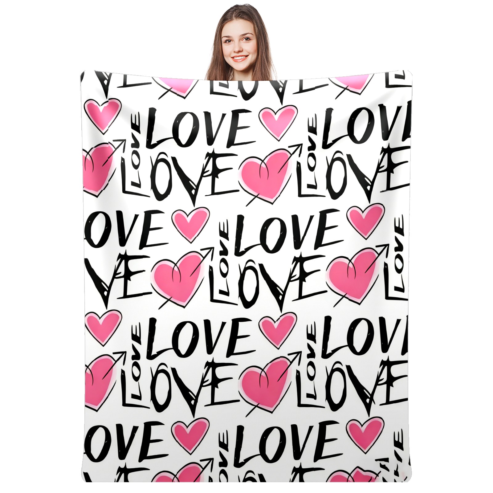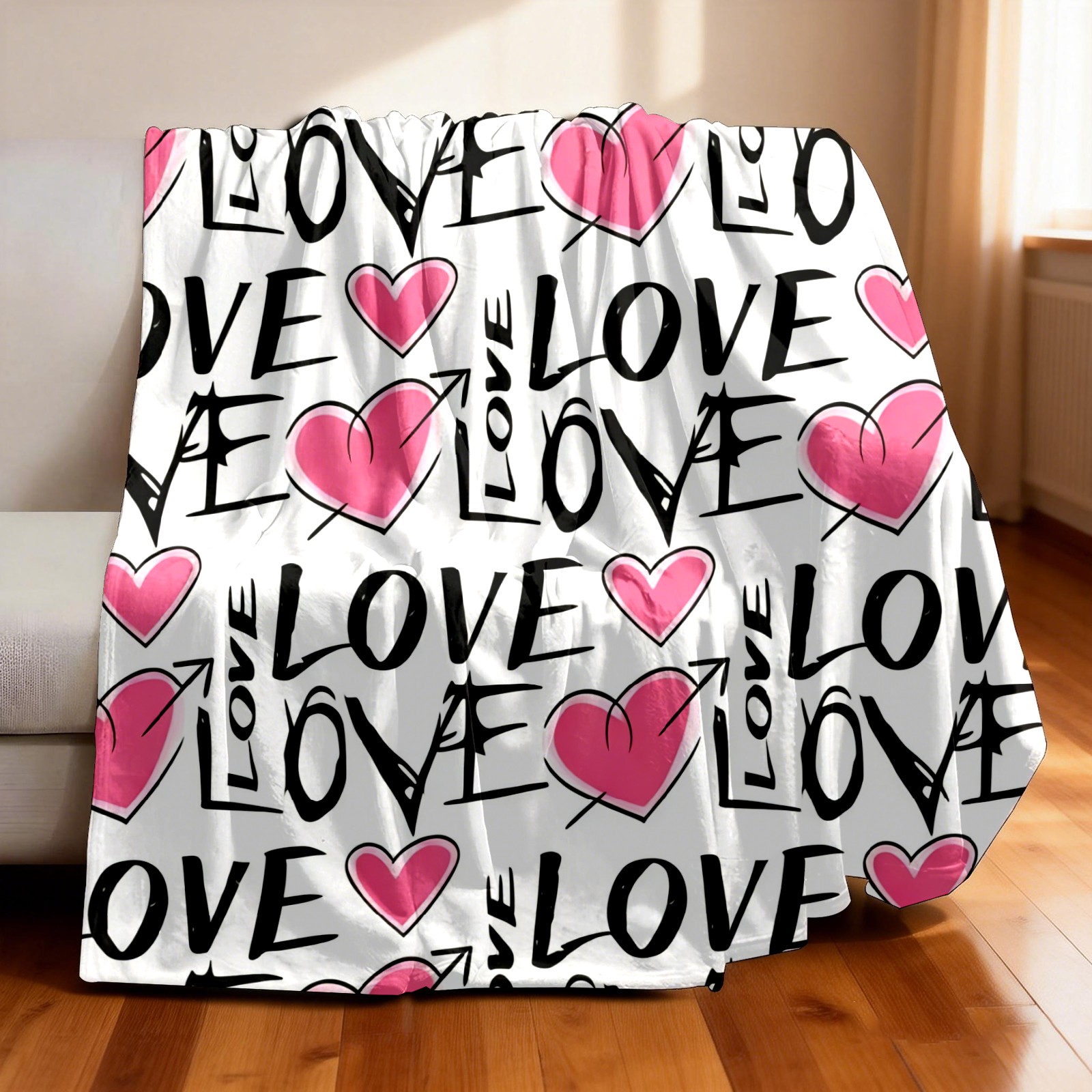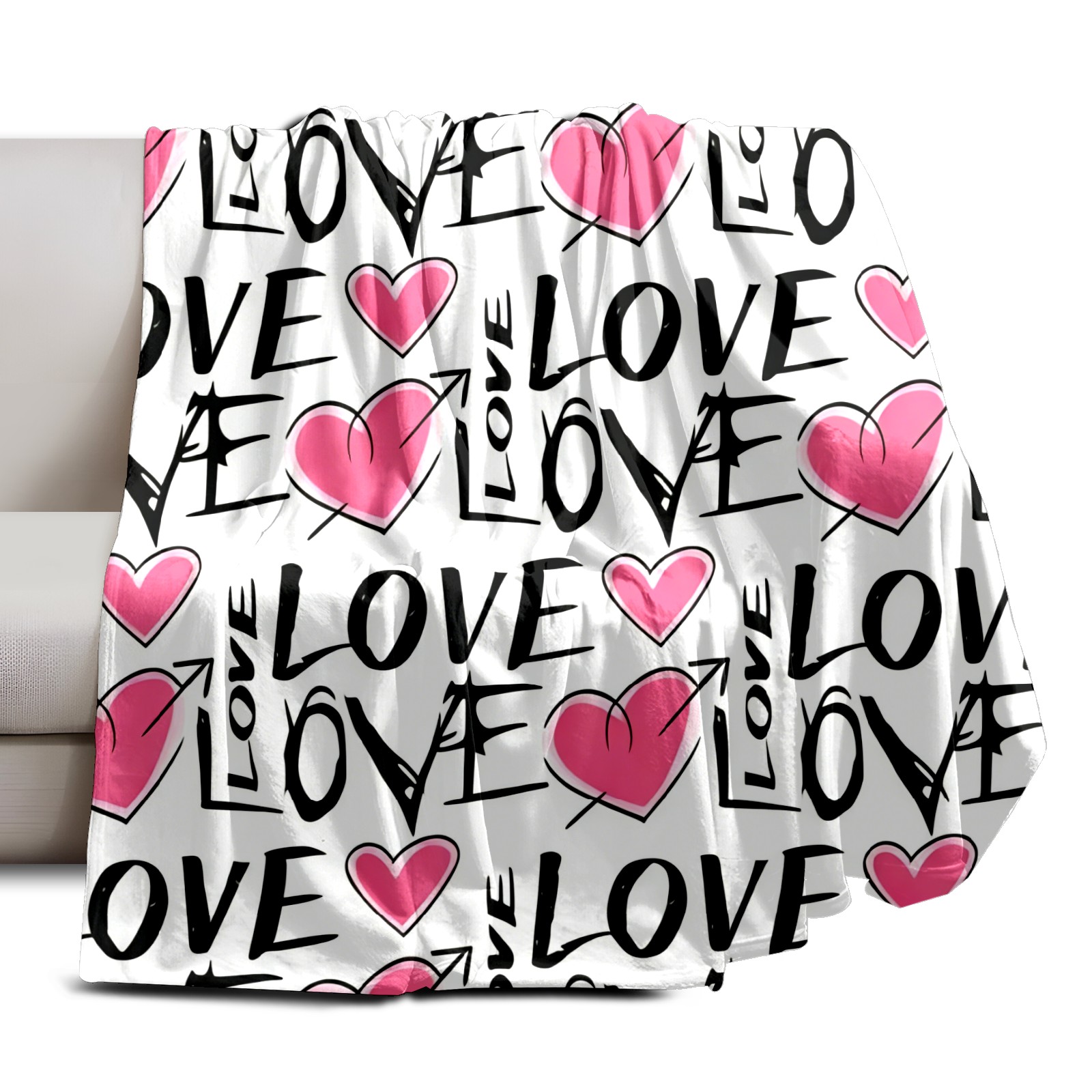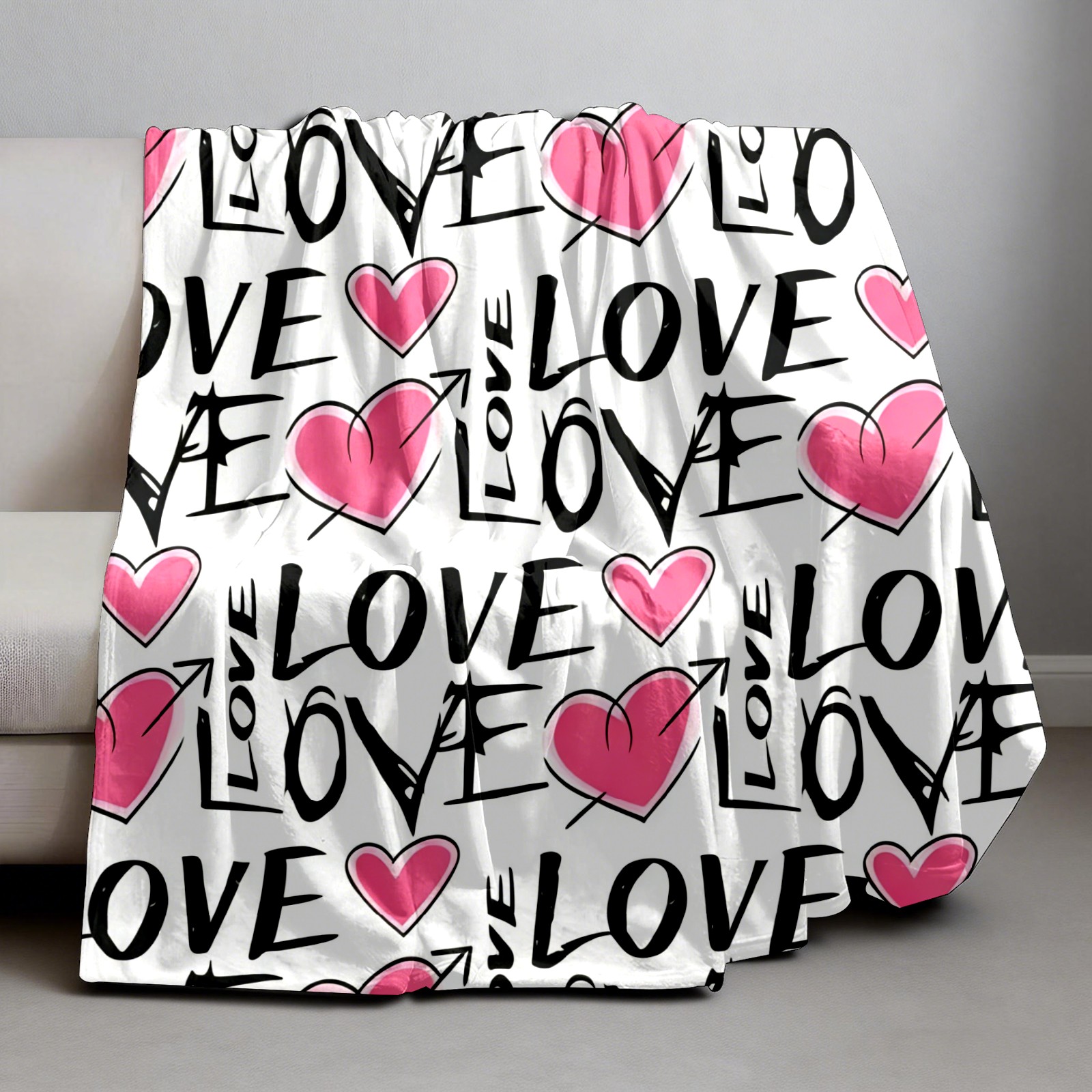 Counullo Flannel Throw Blanket, Ultra Soft Anti-Pilling Blanket for Couch & Bed, Lightweight Cozy Blanket for Travel, Home, Camping Gift - (30" x 39"), LOVE & Heart Pink