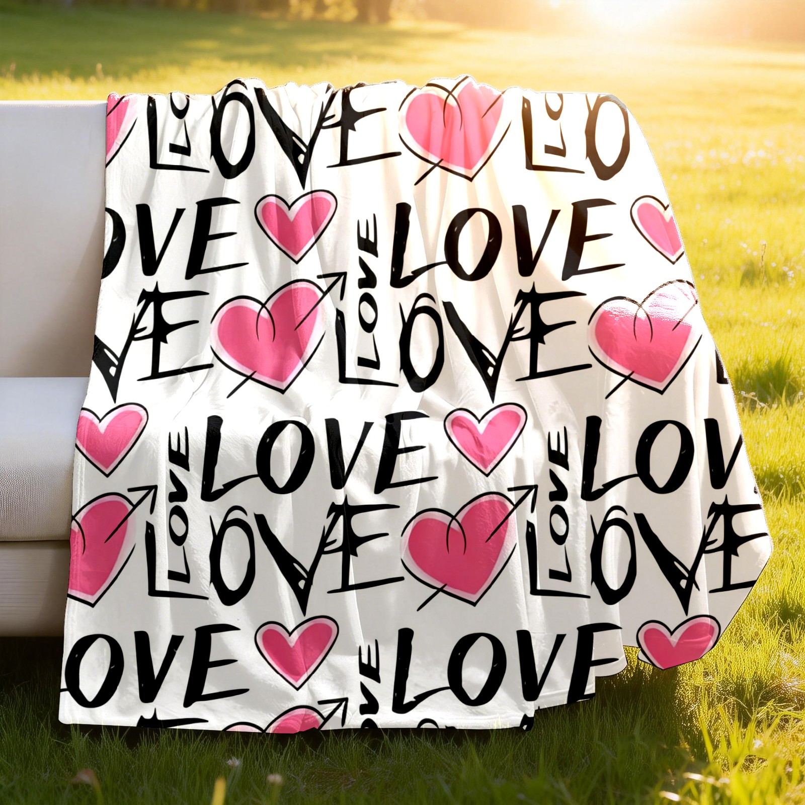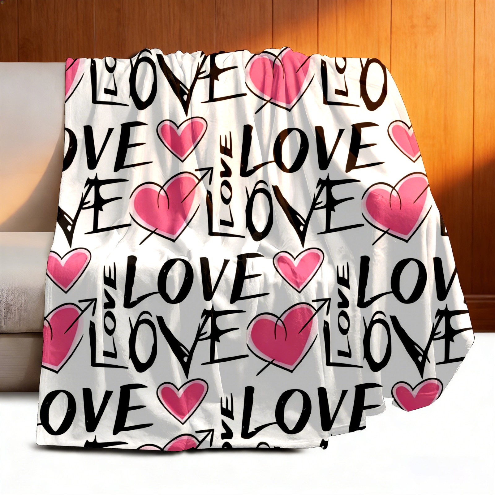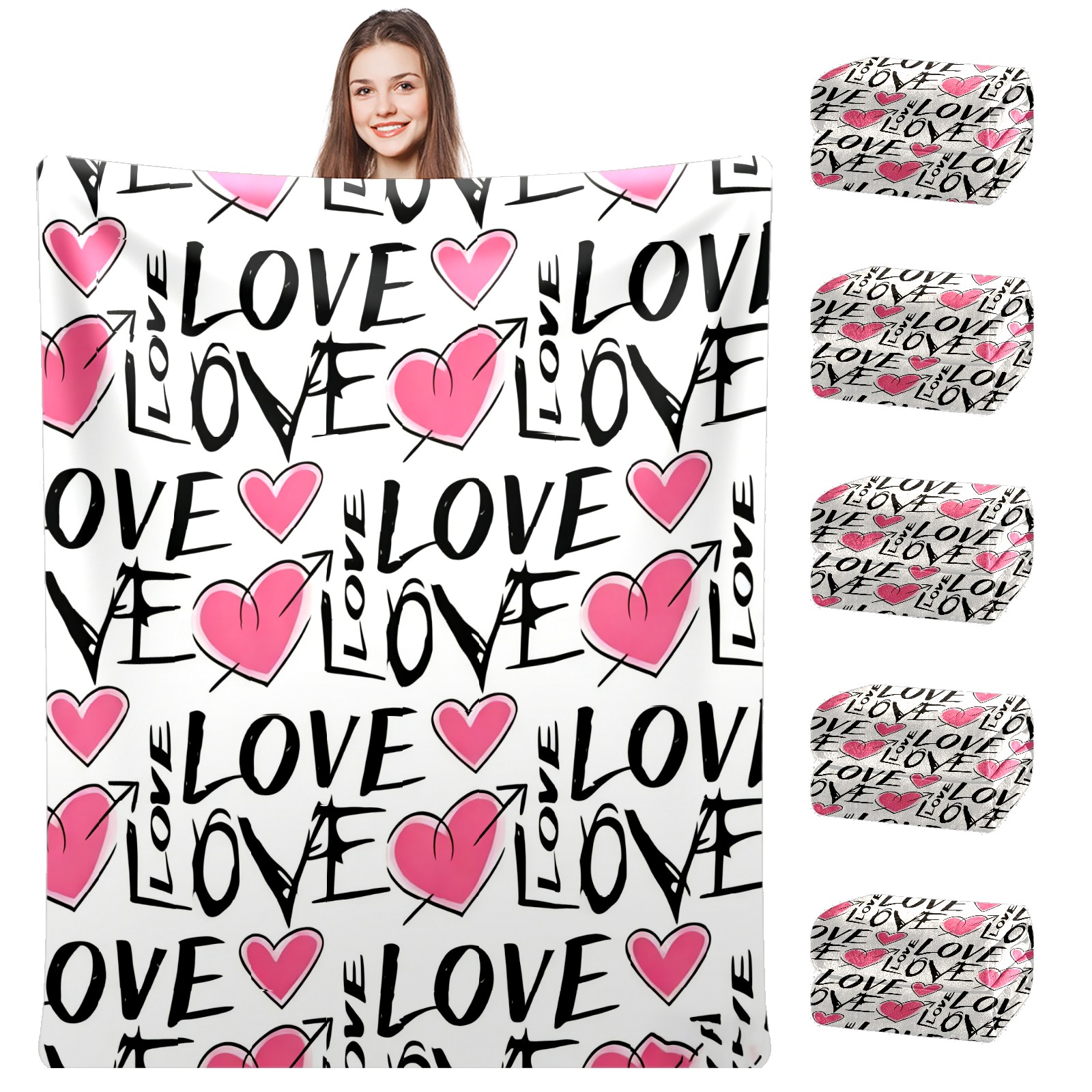 Counullo Flannel Throw Blanket, Ultra Soft Anti-Pilling Blanket for Couch & Bed, Lightweight Cozy Blanket for Travel, Home, Camping Gift - (30" x 39"), LOVE & Heart Pink