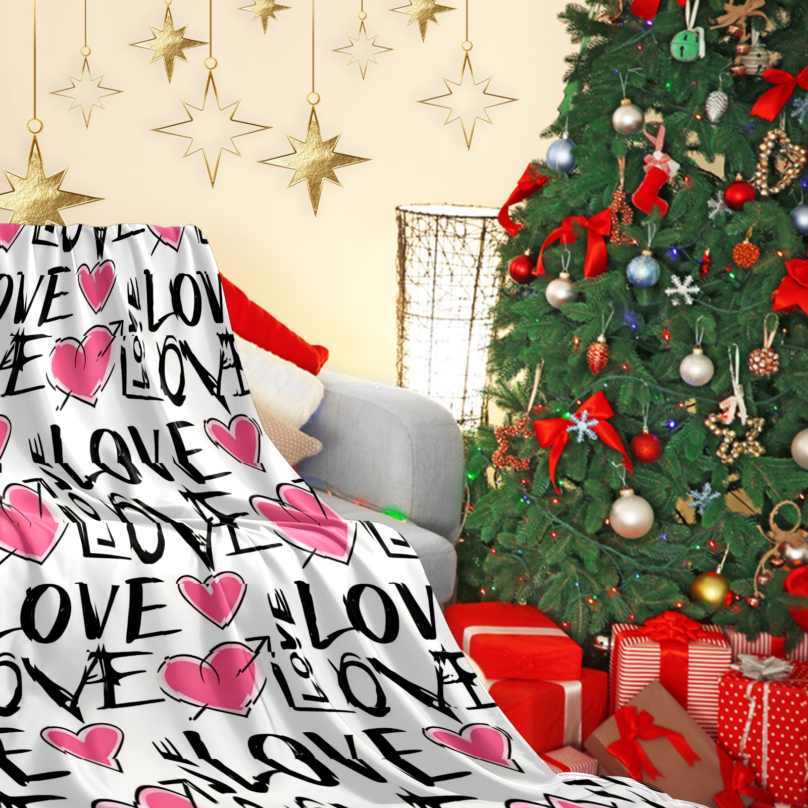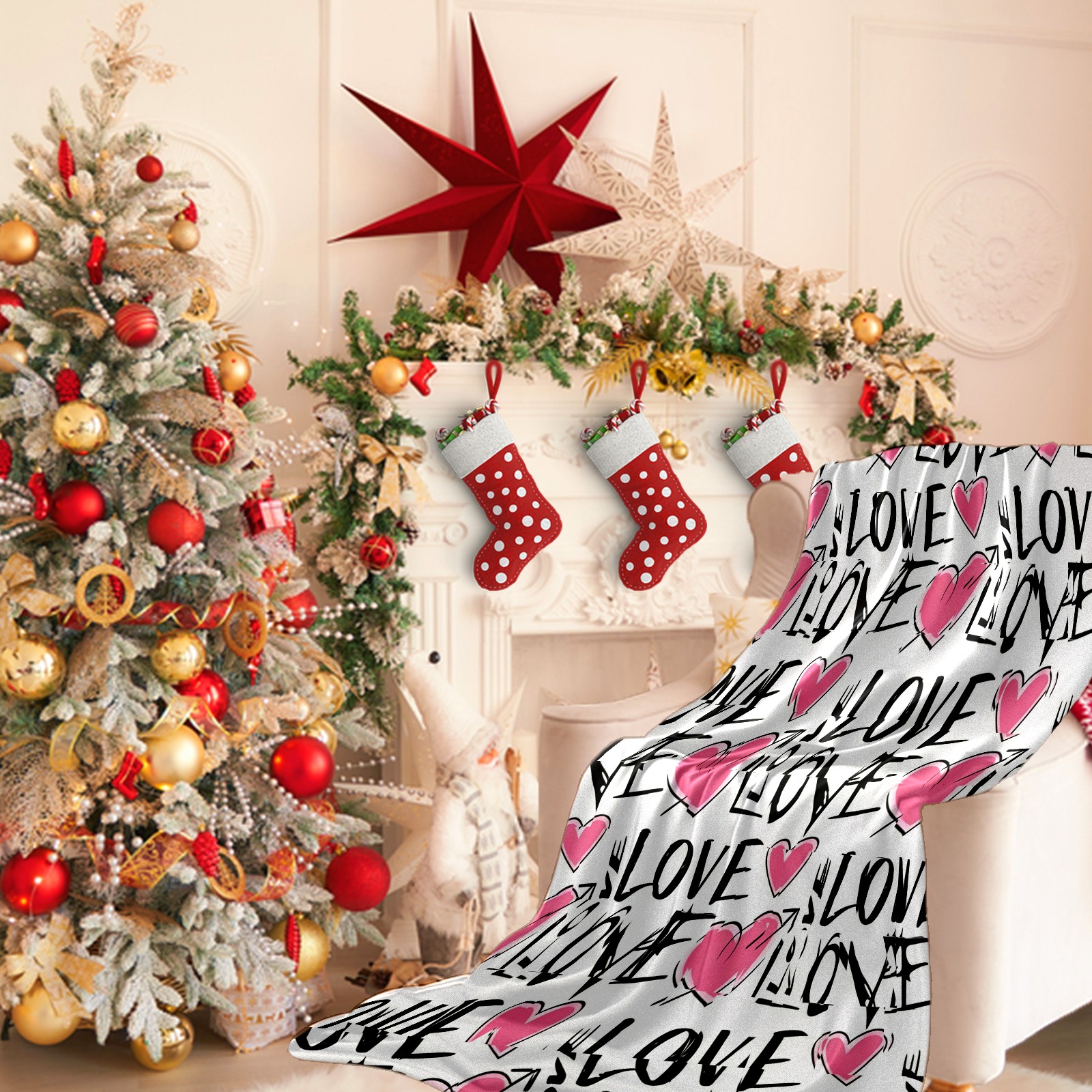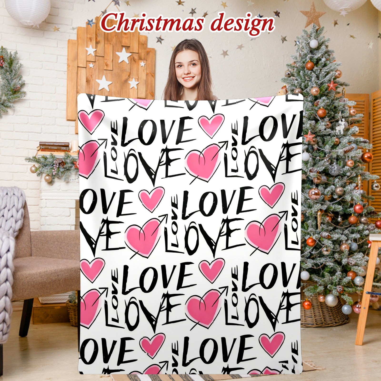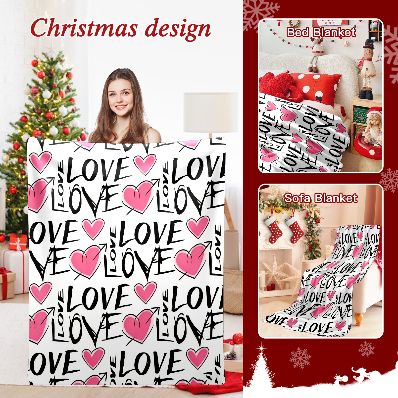 Counullo Flannel Throw Blanket, Ultra Soft Anti-Pilling Blanket for Couch & Bed, Lightweight Cozy Blanket for Travel, Home, Camping Gift - (30" x 39"), LOVE & Heart Pink