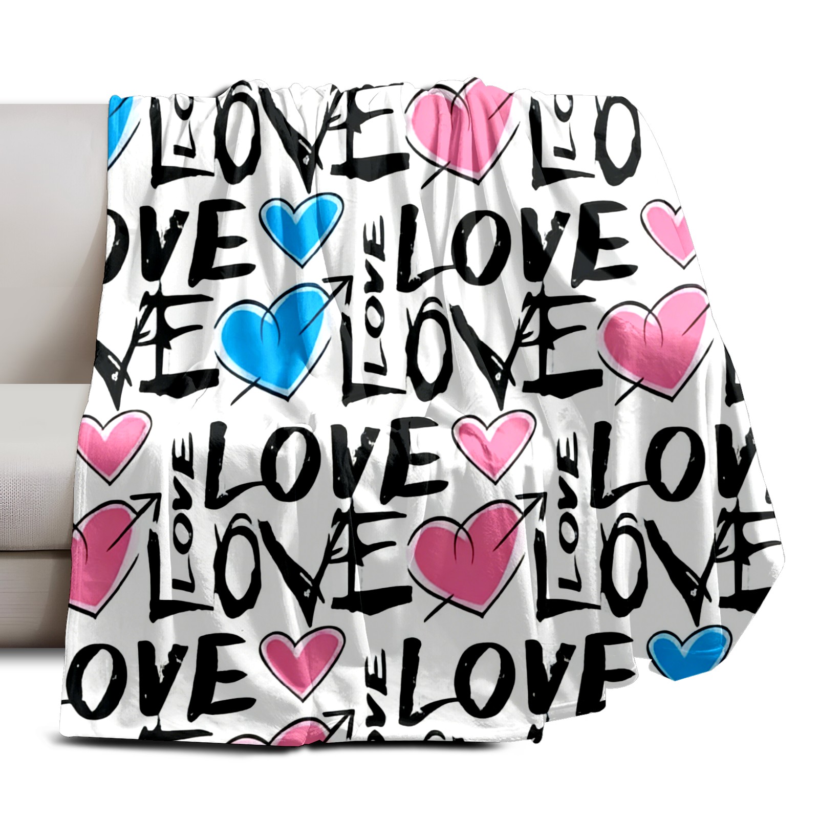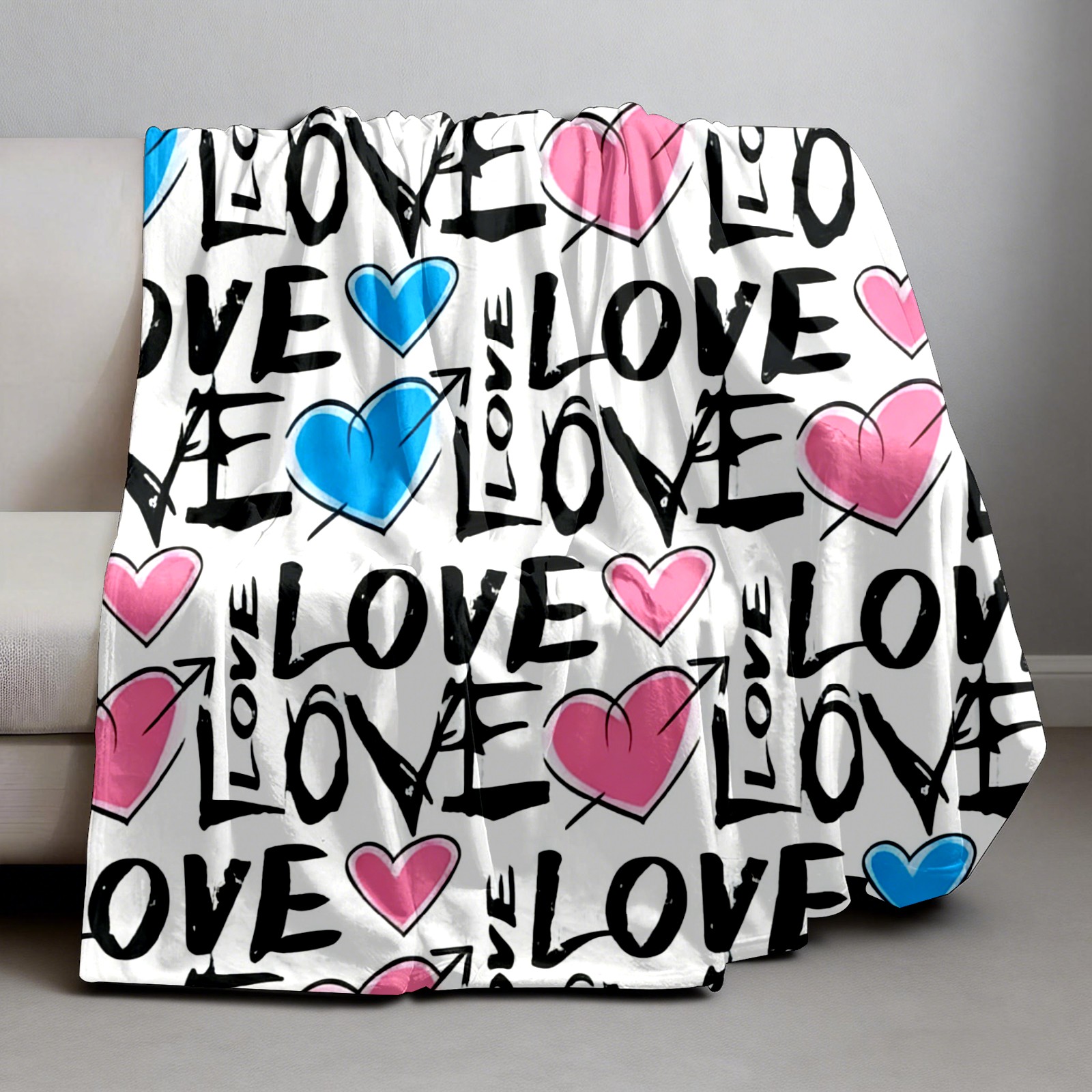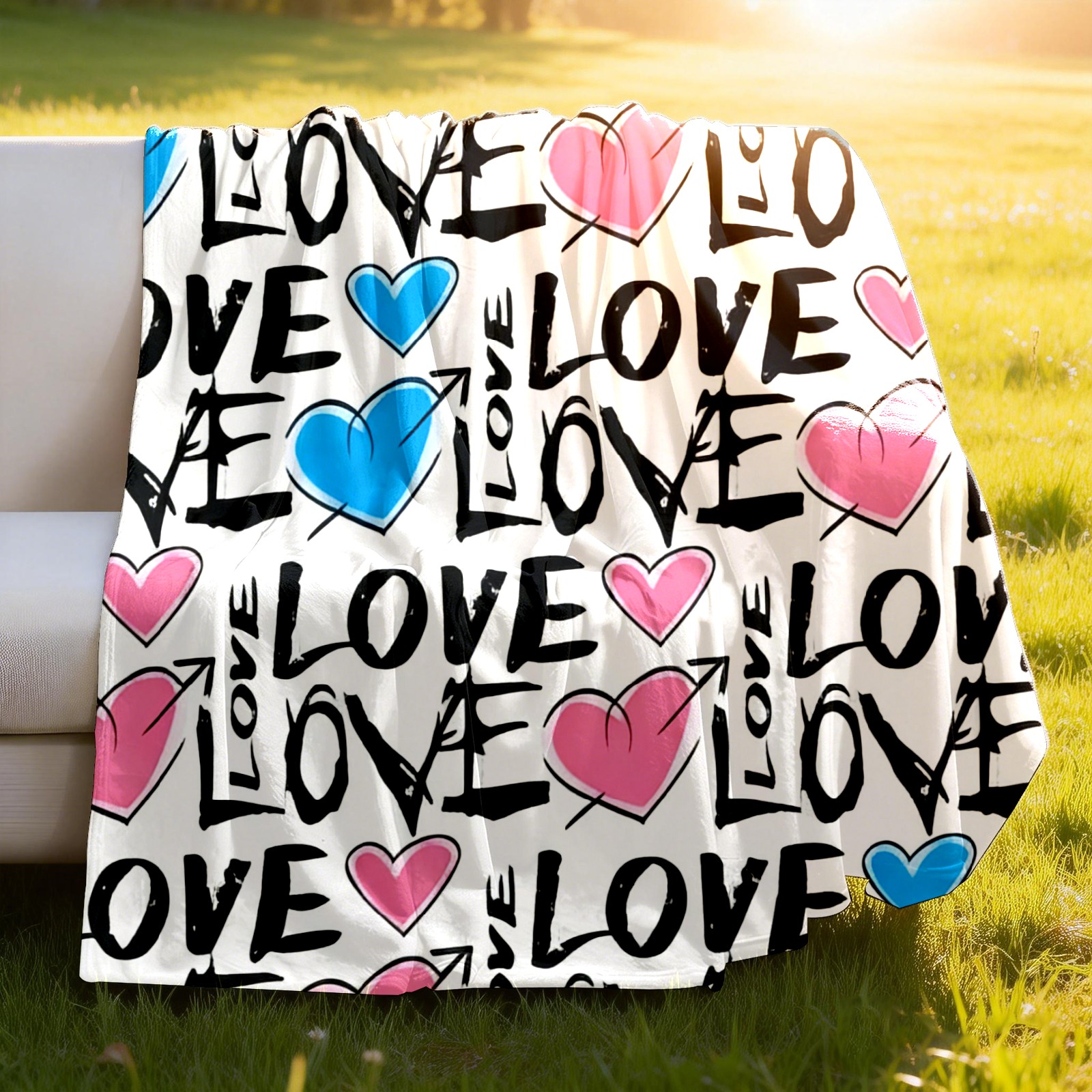 Counullo Flannel Throw Blanket, Ultra Soft Anti-Pilling Blanket for Couch & Bed, Lightweight Cozy Blanket for Travel, Home, Camping Gift - (30" x 39"), Fresh LOVE White