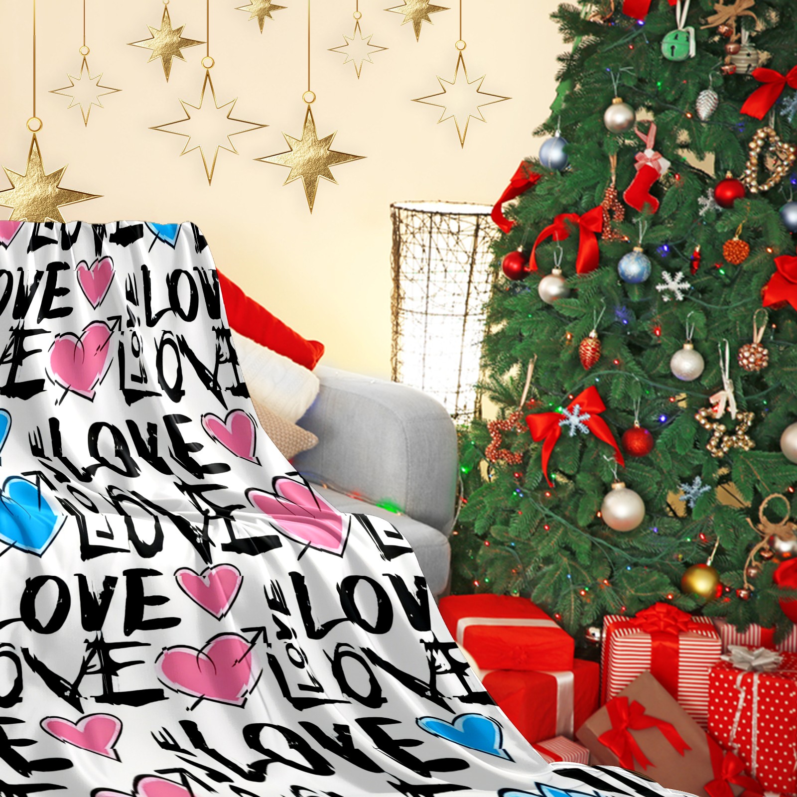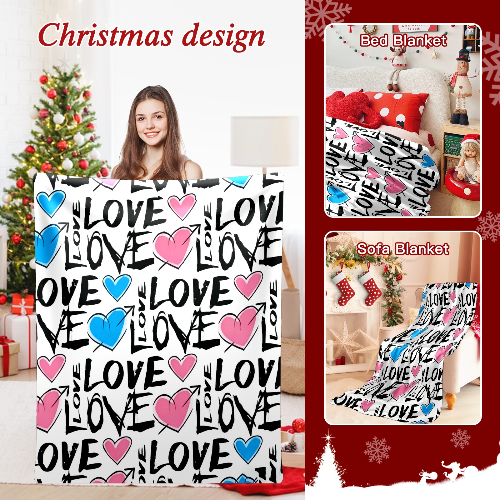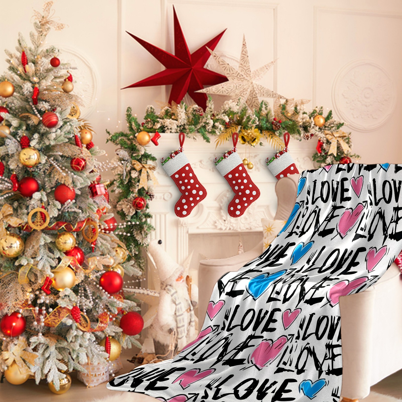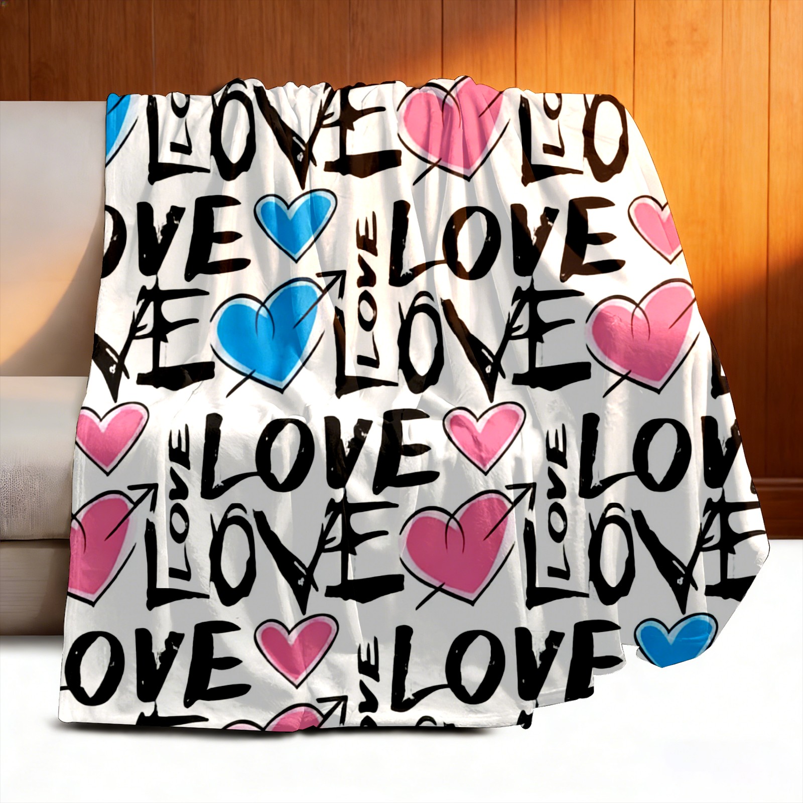 Counullo Flannel Throw Blanket, Ultra Soft Anti-Pilling Blanket for Couch & Bed, Lightweight Cozy Blanket for Travel, Home, Camping Gift - (30" x 39"), Fresh LOVE White