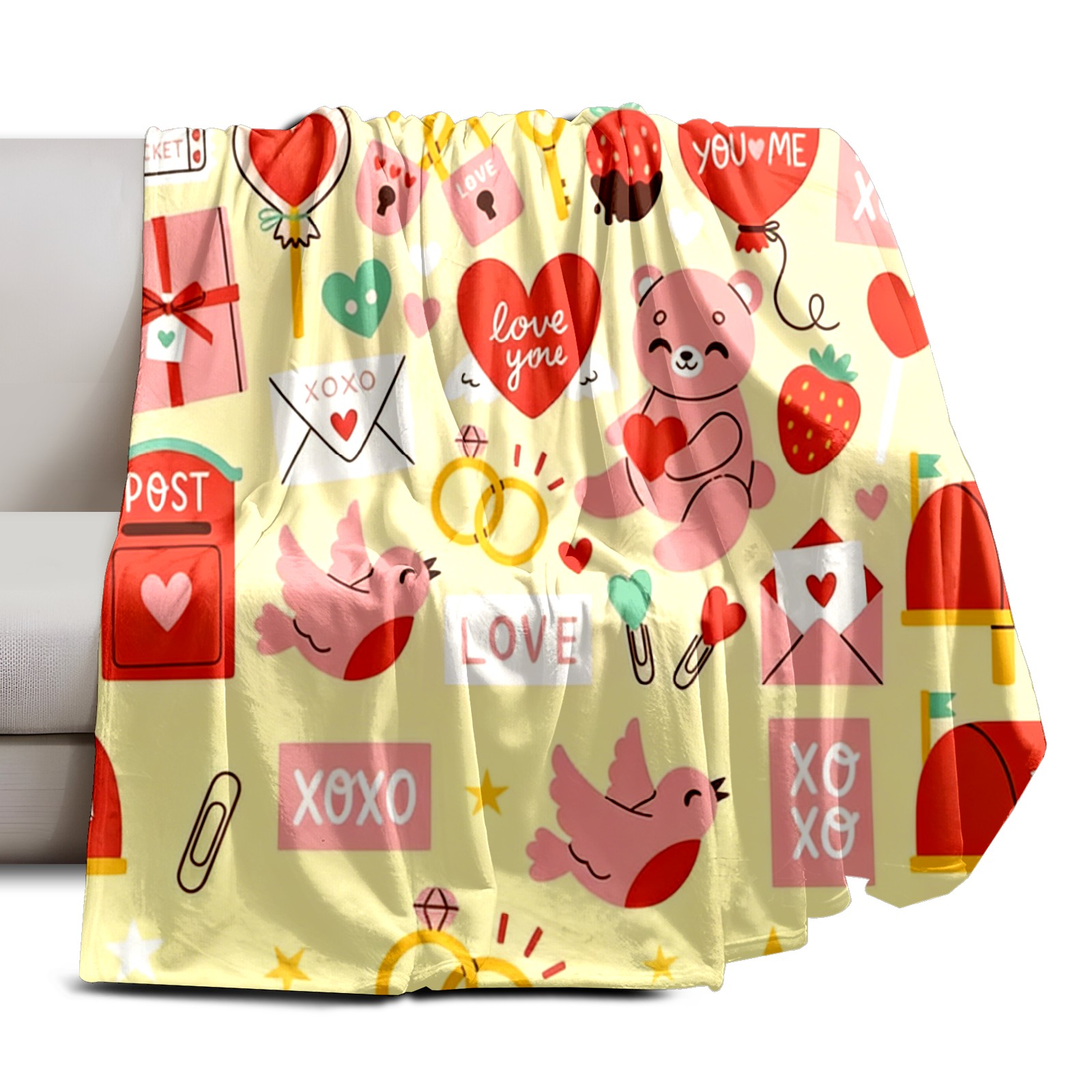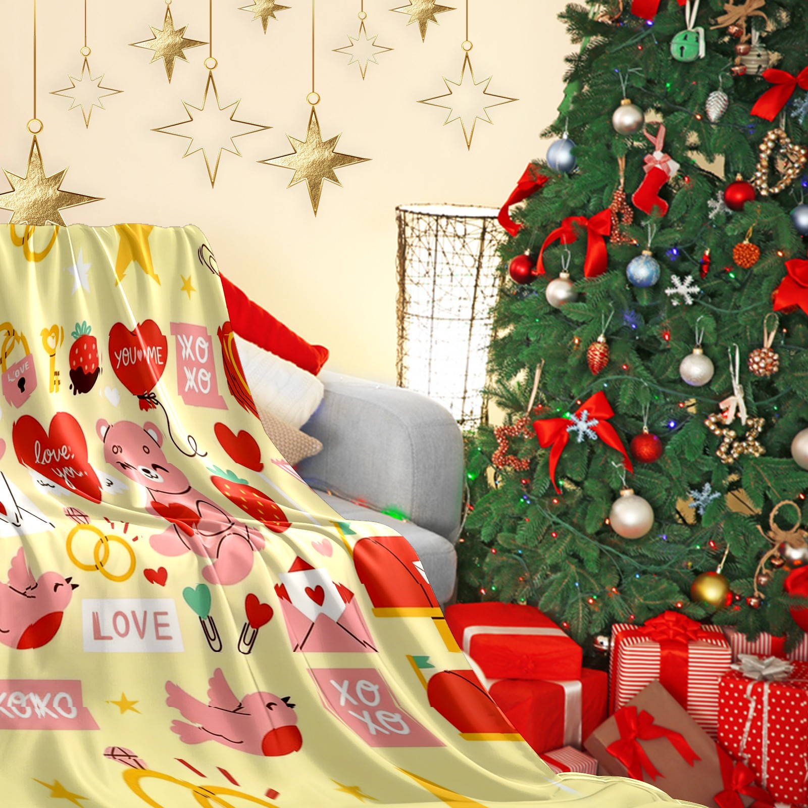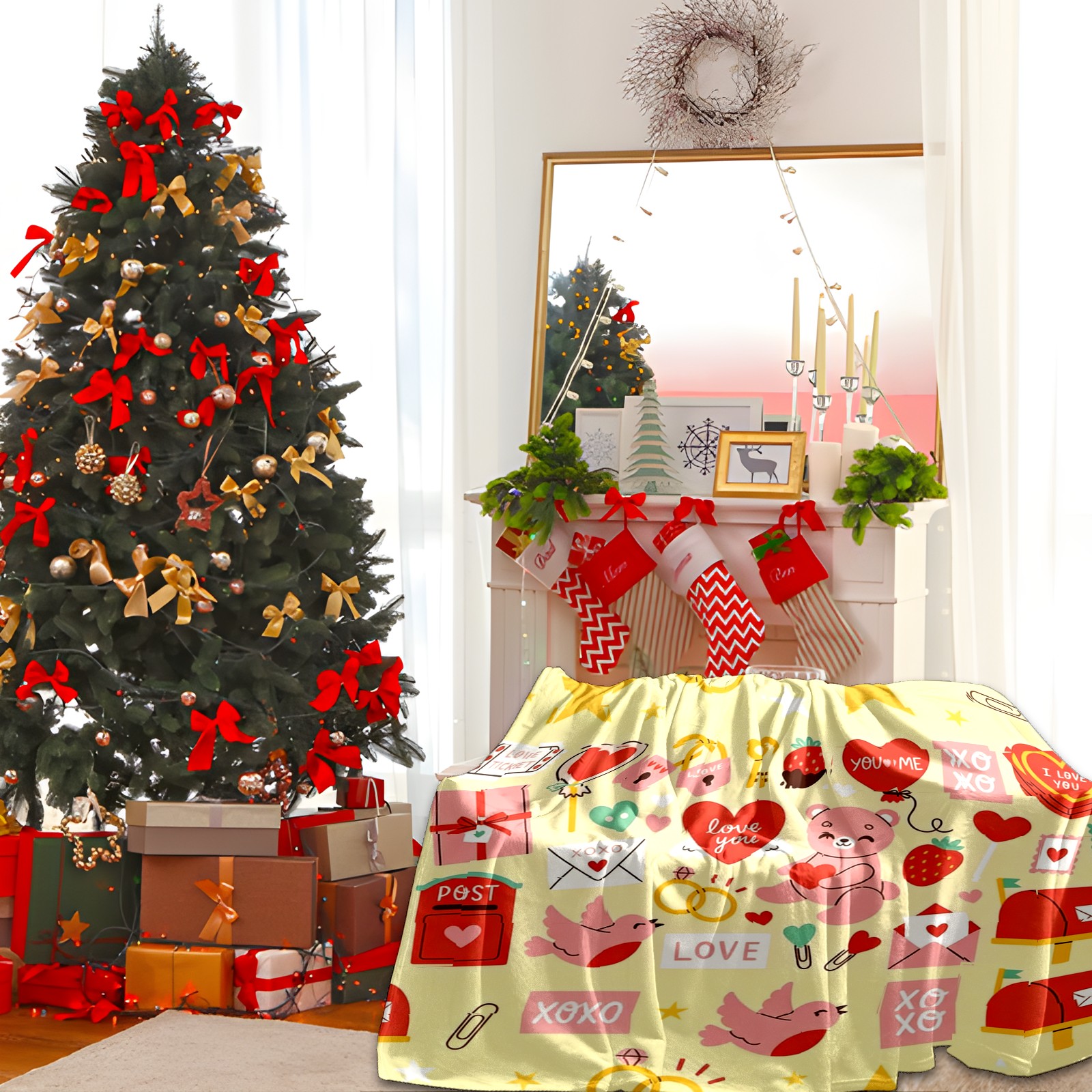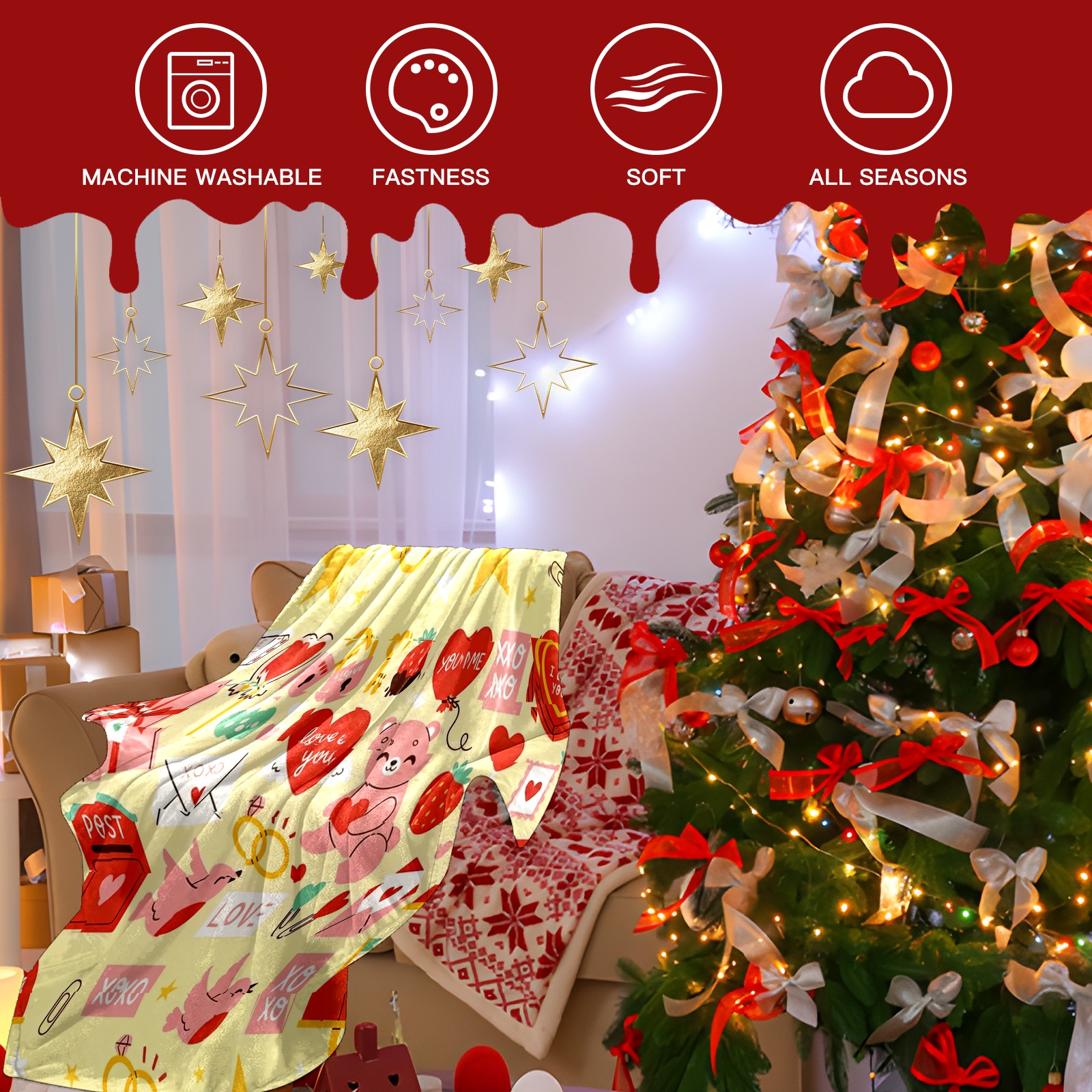 Counullo Flannel Throw Blanket, Ultra Soft Anti-Pilling Blanket for Couch & Bed, Lightweight Cozy Blanket for Travel, Home, Camping Gift - (30" x 39"), Warm LOVE Yellow