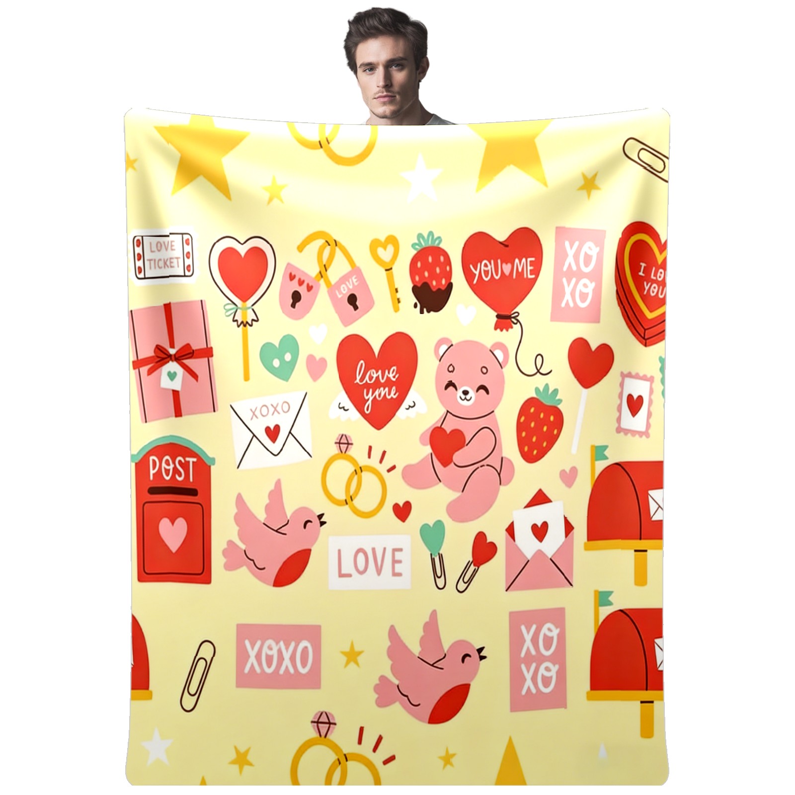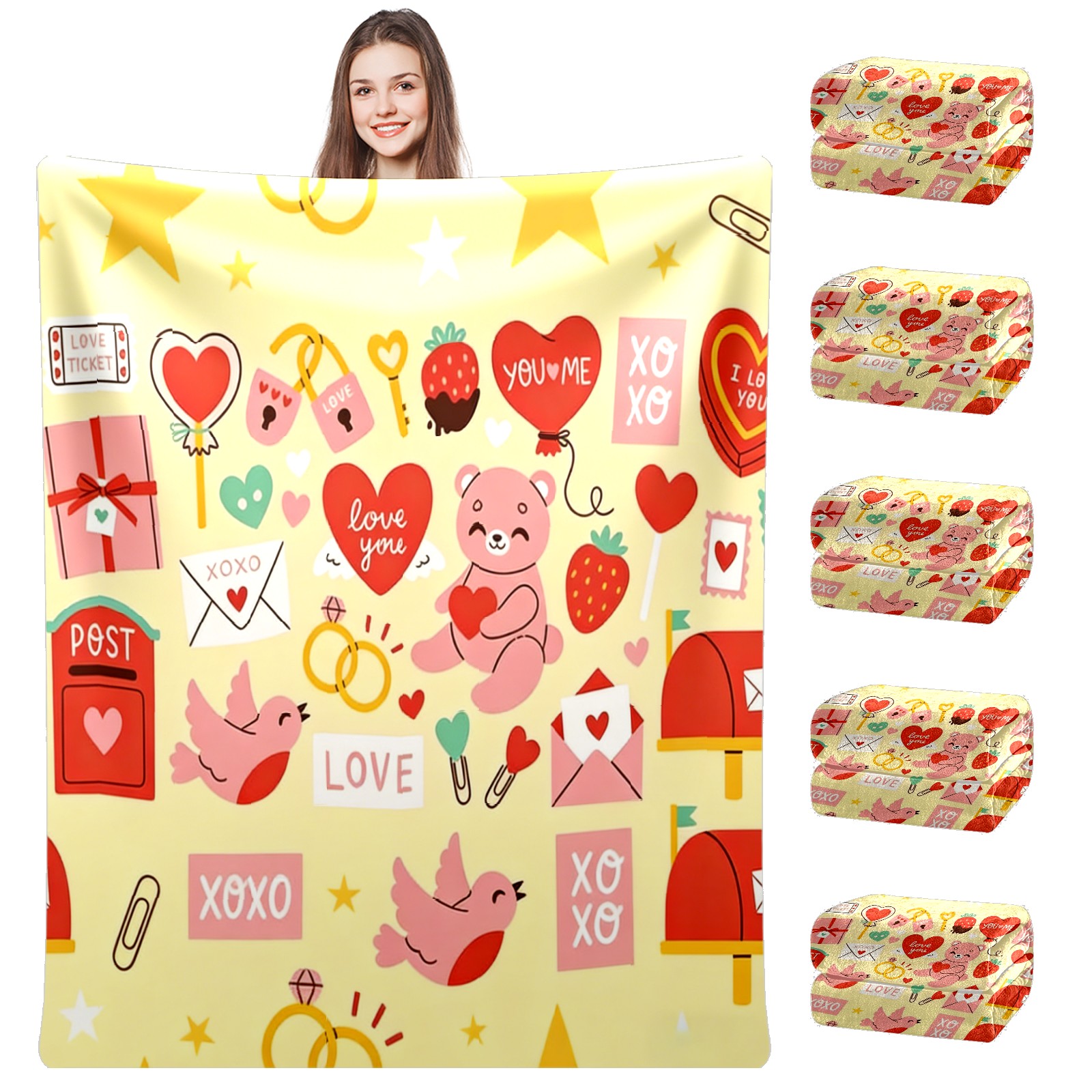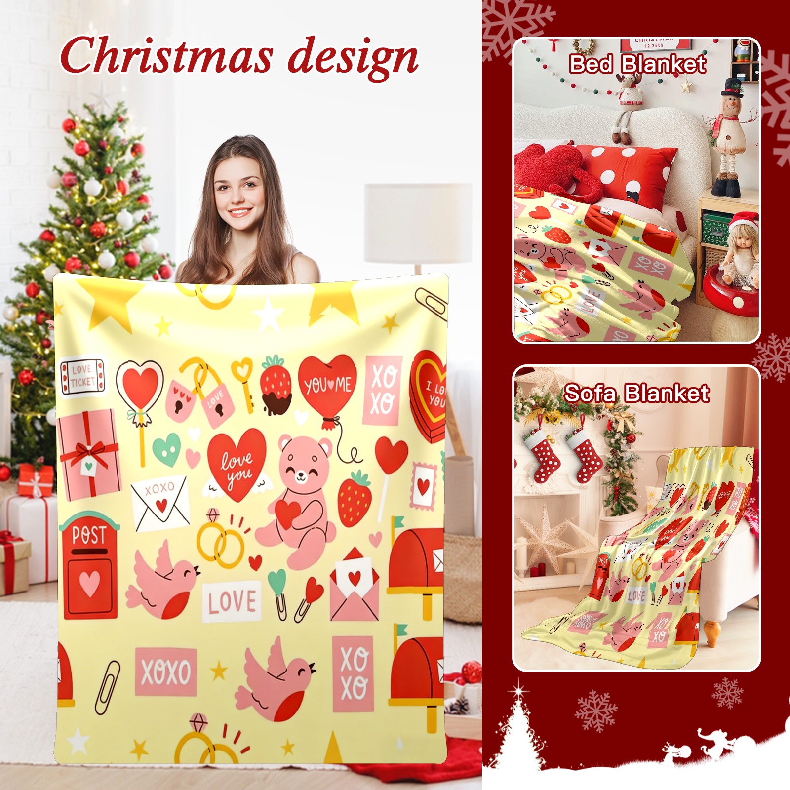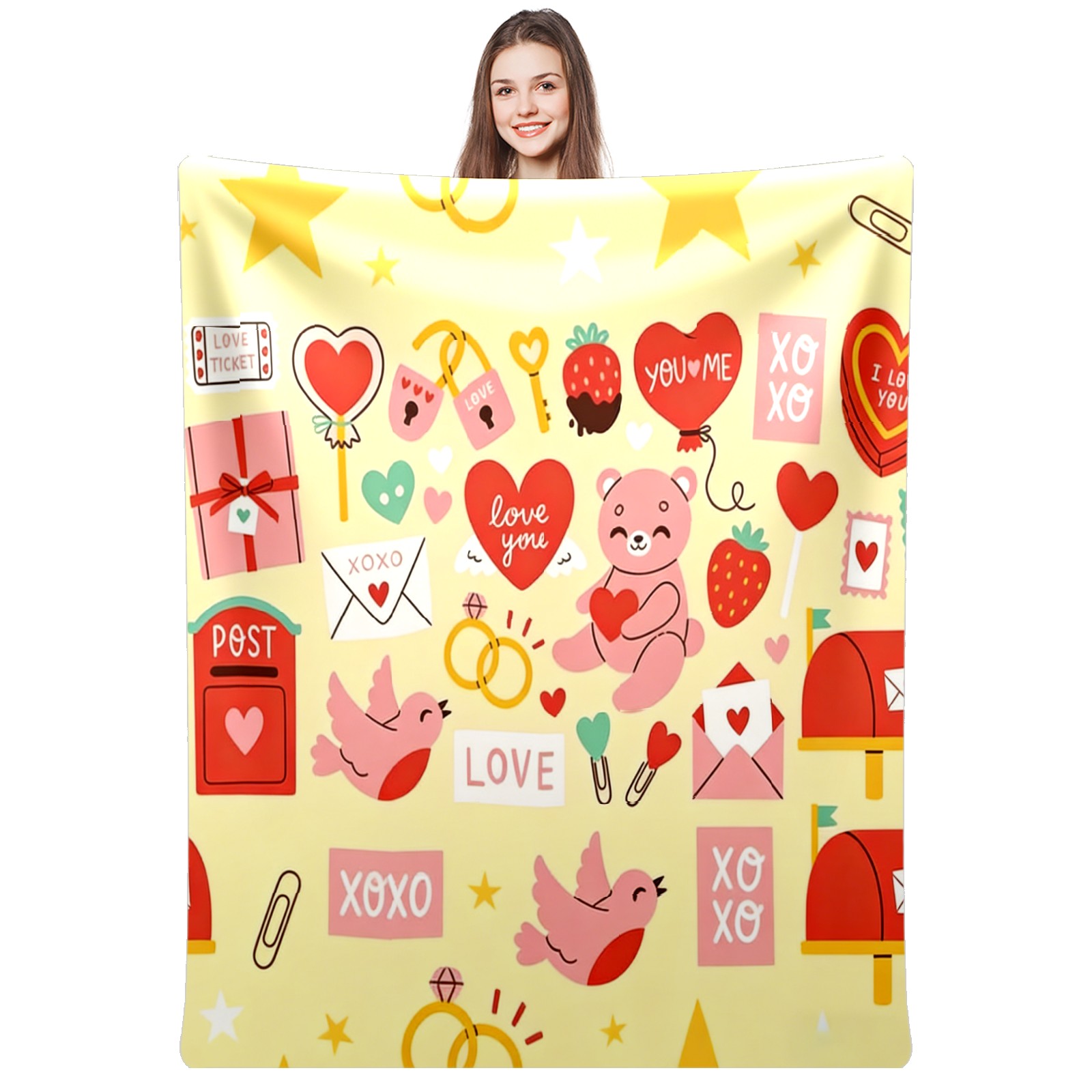 Counullo Flannel Throw Blanket, Ultra Soft Anti-Pilling Blanket for Couch & Bed, Lightweight Cozy Blanket for Travel, Home, Camping Gift - (30" x 39"), Warm LOVE Yellow
