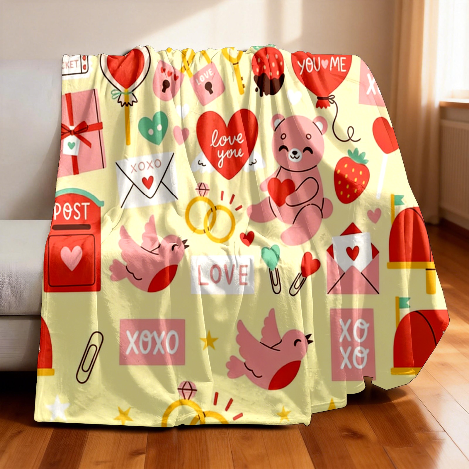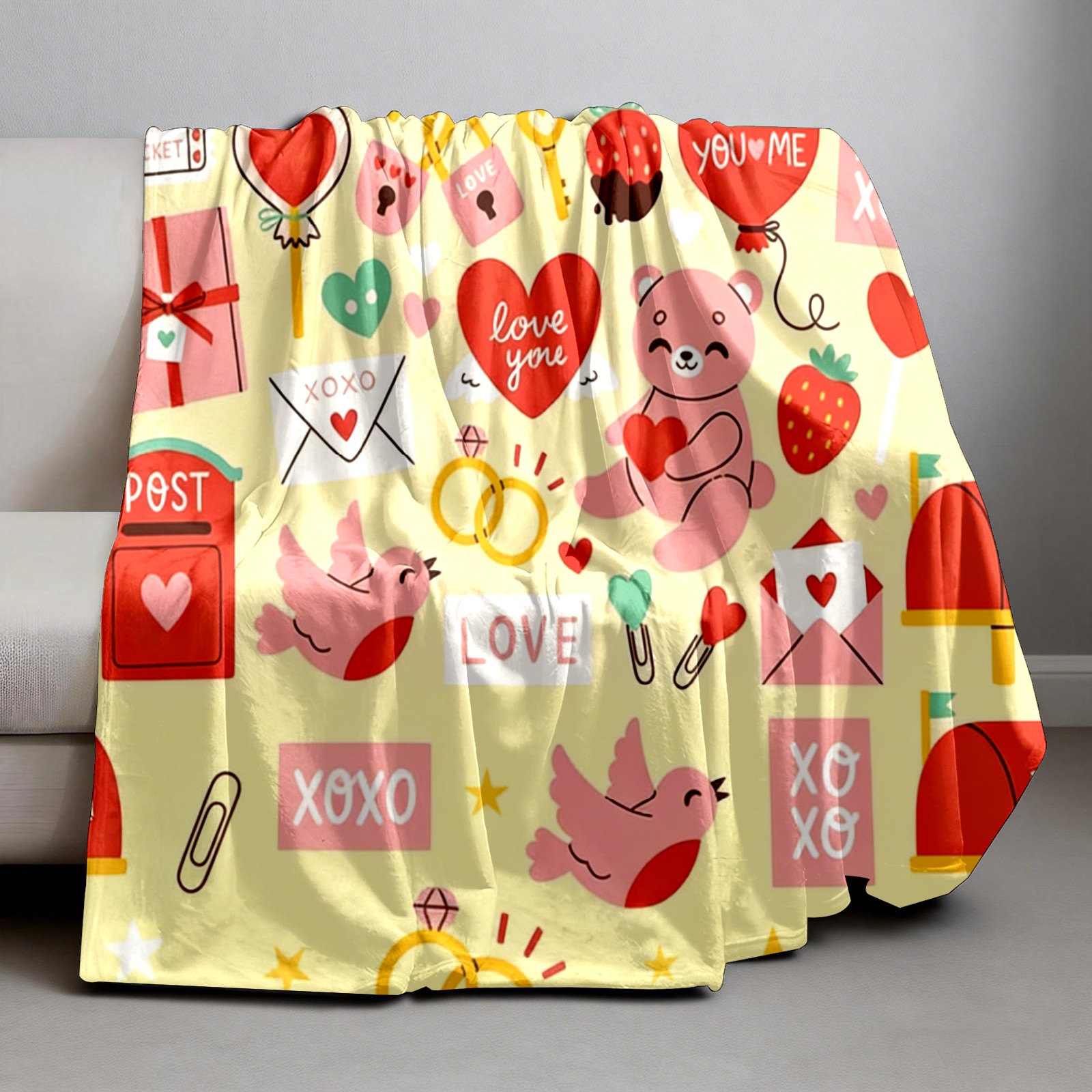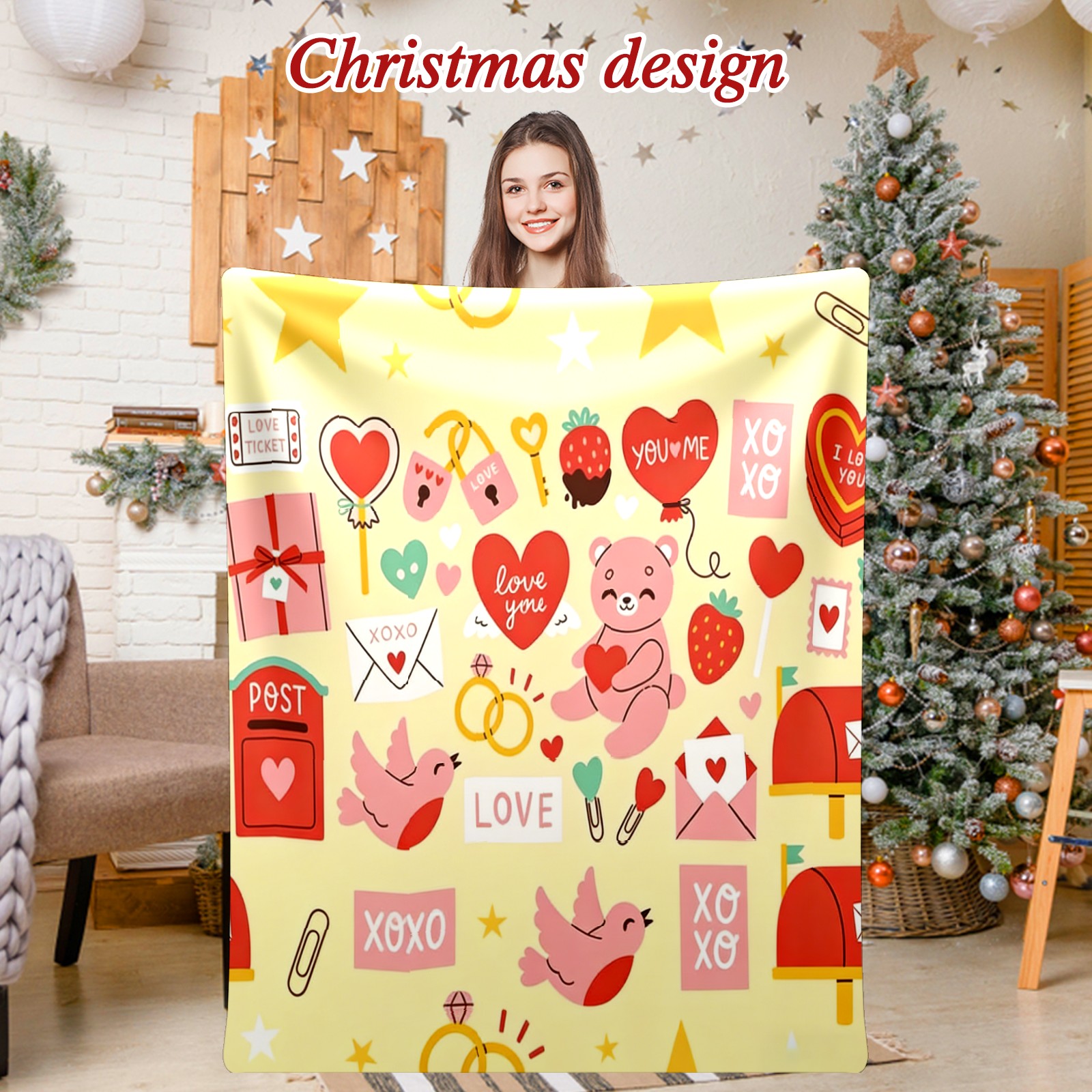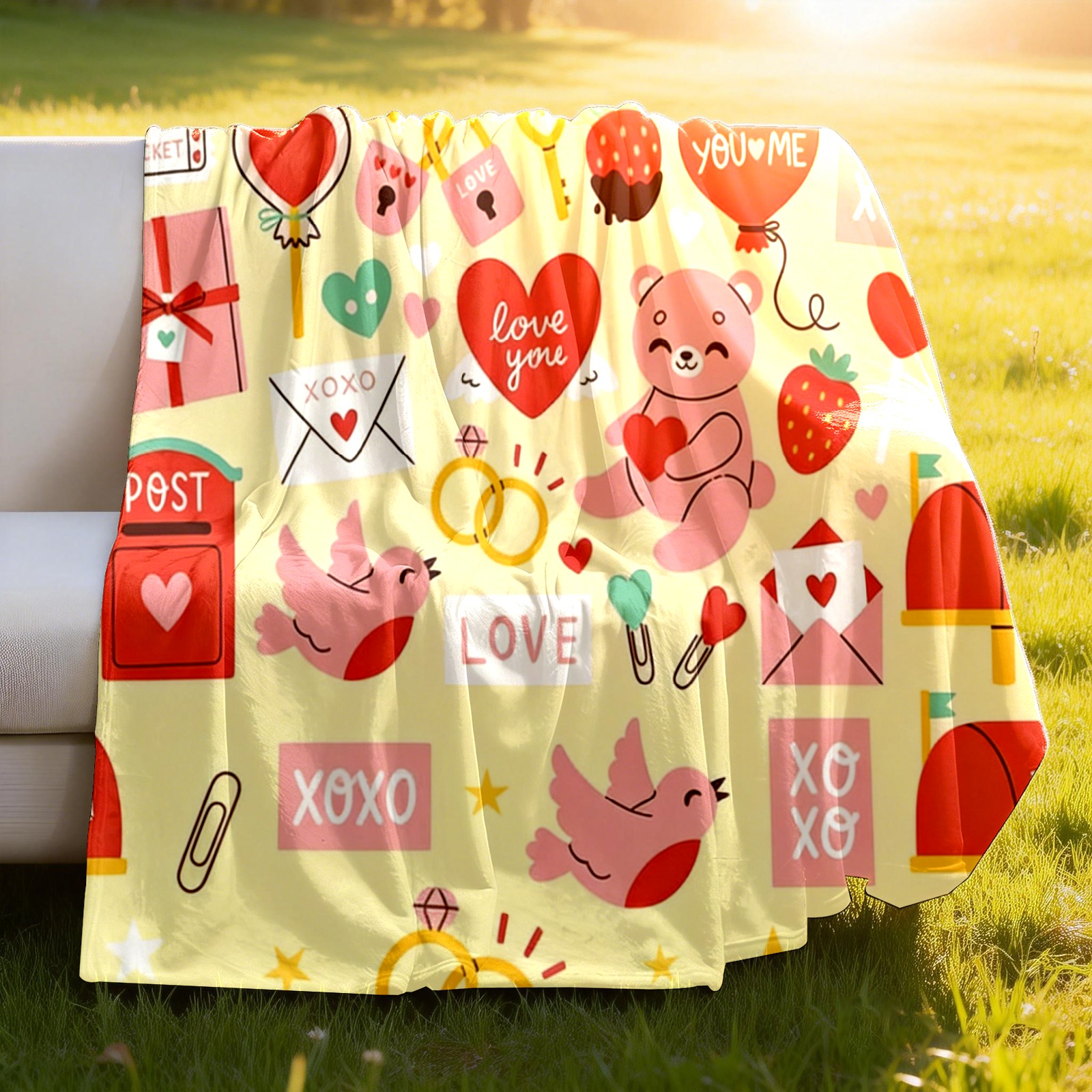 Counullo Flannel Throw Blanket, Ultra Soft Anti-Pilling Blanket for Couch & Bed, Lightweight Cozy Blanket for Travel, Home, Camping Gift - (30" x 39"), Warm LOVE Yellow