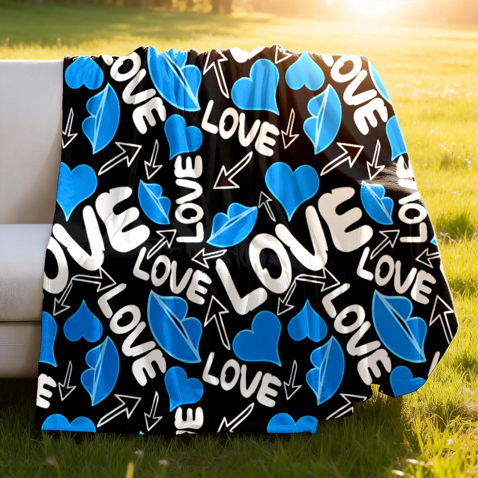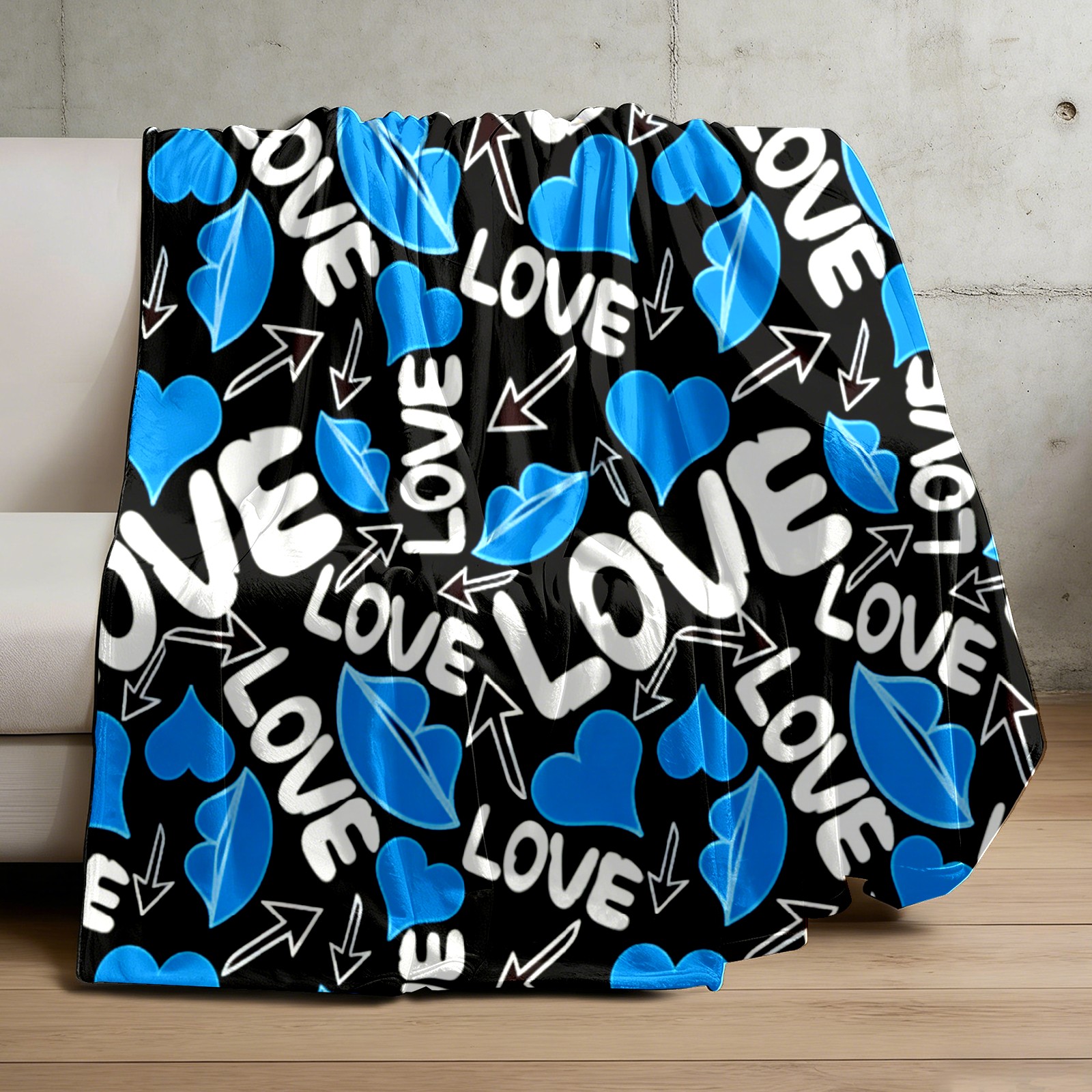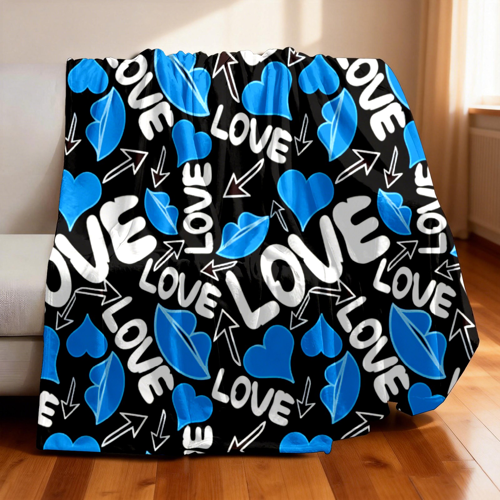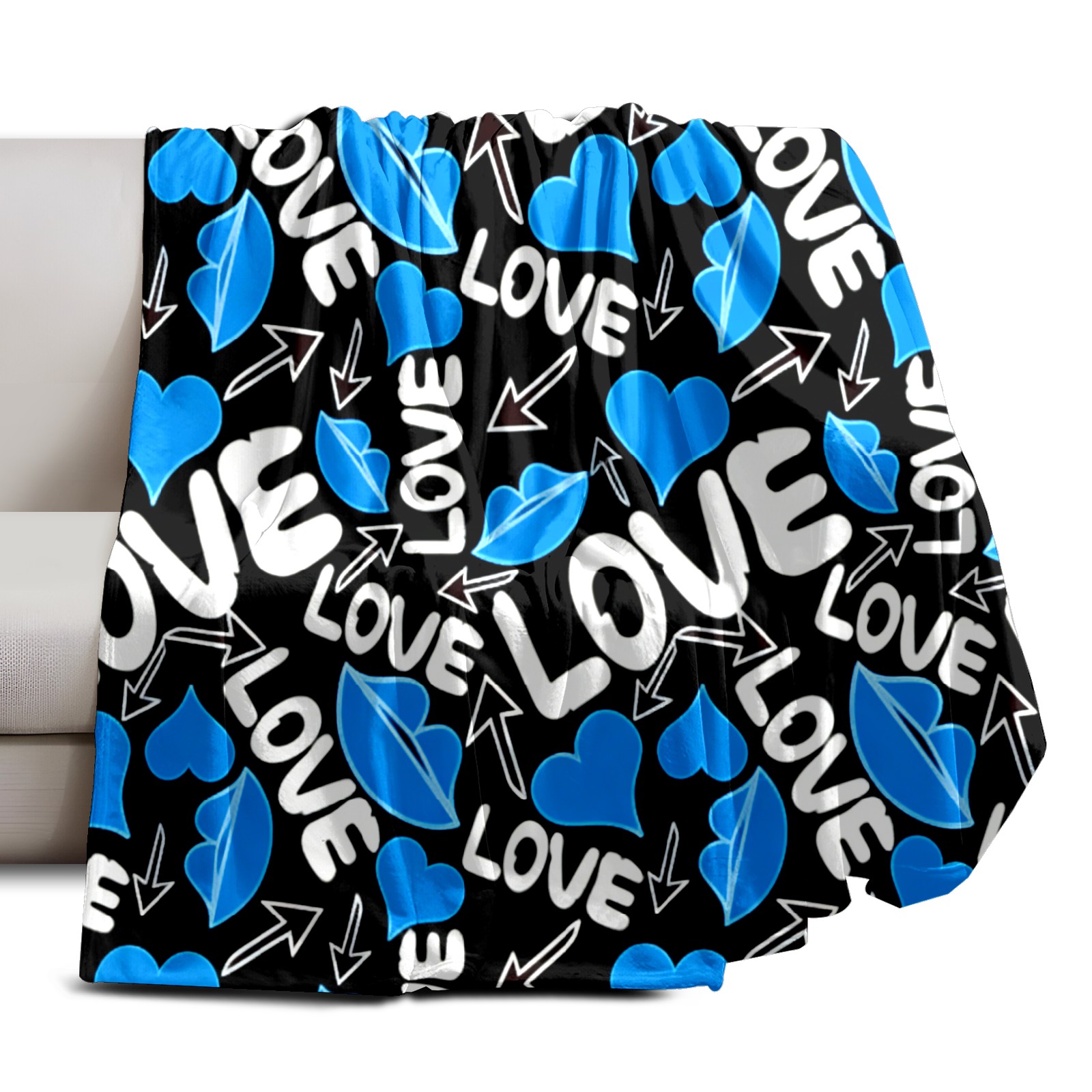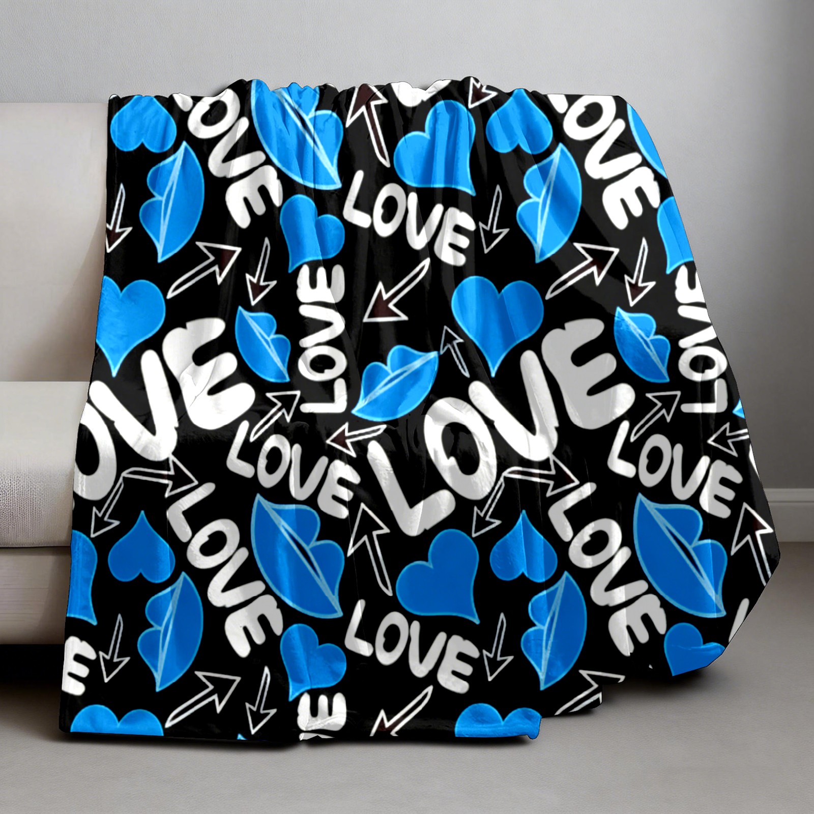 Counullo Flannel Throw Blanket, Ultra Soft Anti-Pilling Blanket for Couch & Bed, Lightweight Cozy Blanket for Travel, Home, Camping Gift - (30" x 39"), Cool LOVE Blue