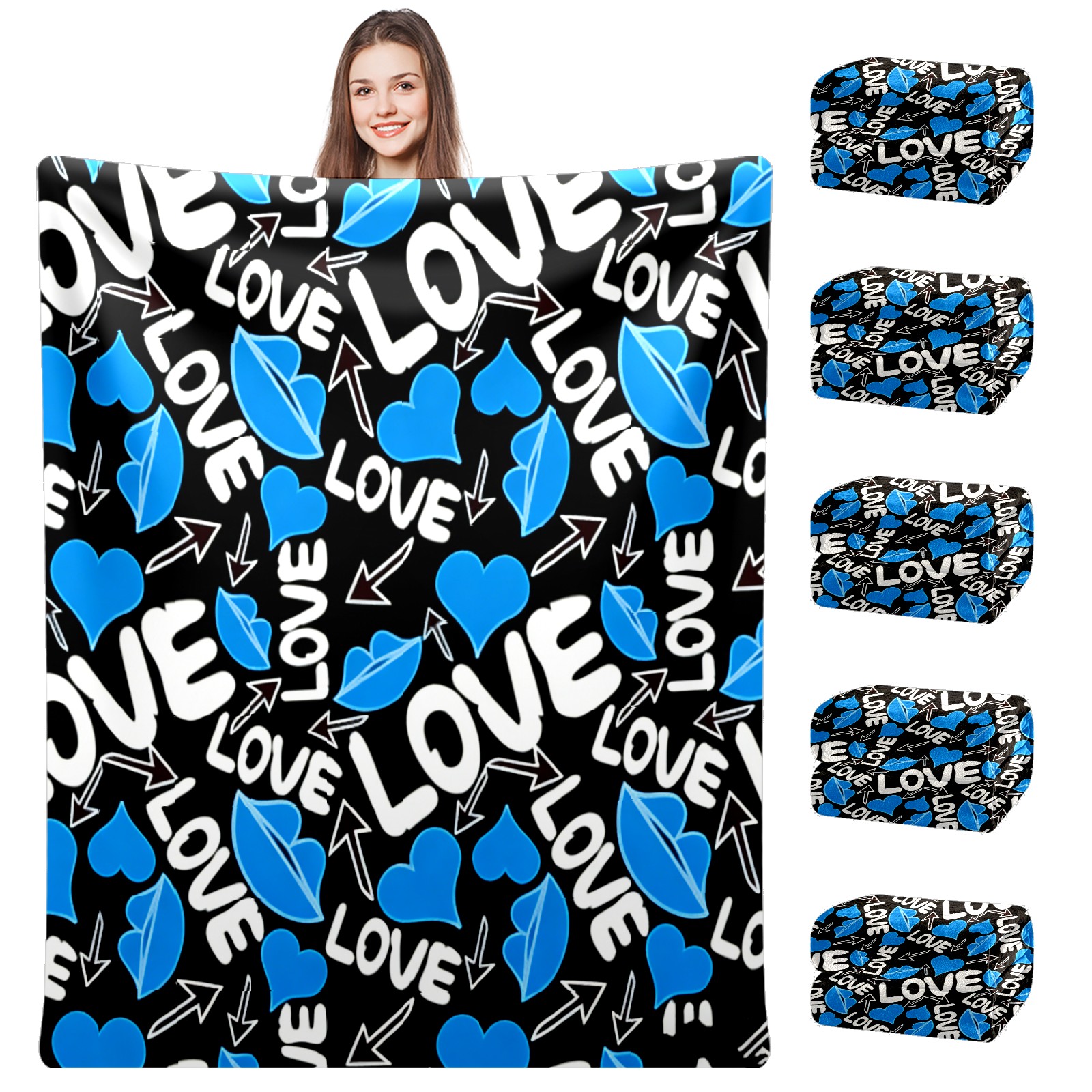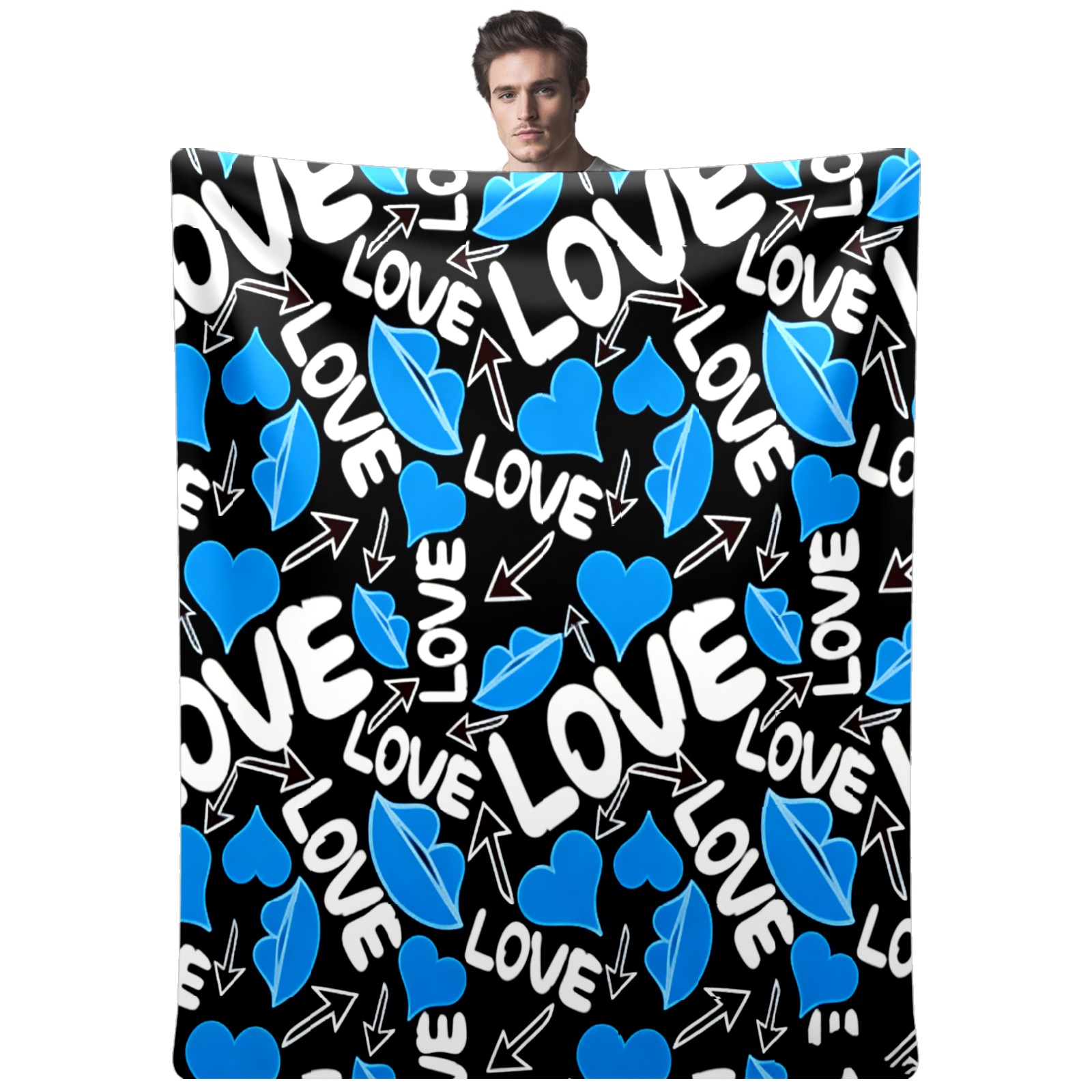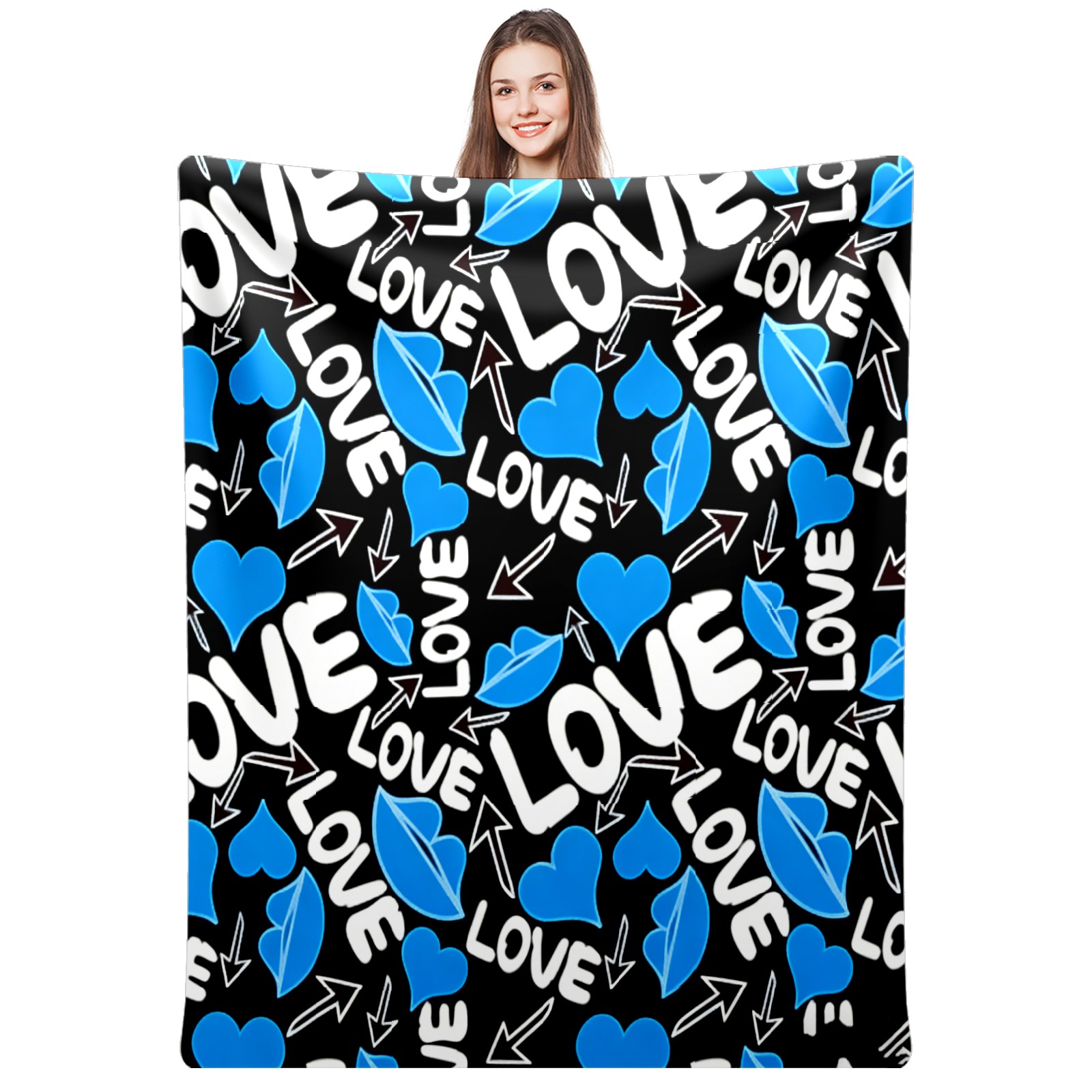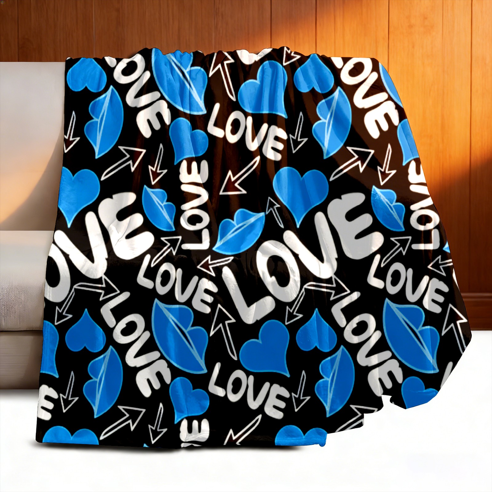 Counullo Flannel Throw Blanket, Ultra Soft Anti-Pilling Blanket for Couch & Bed, Lightweight Cozy Blanket for Travel, Home, Camping Gift - (30" x 39"), Cool LOVE Blue