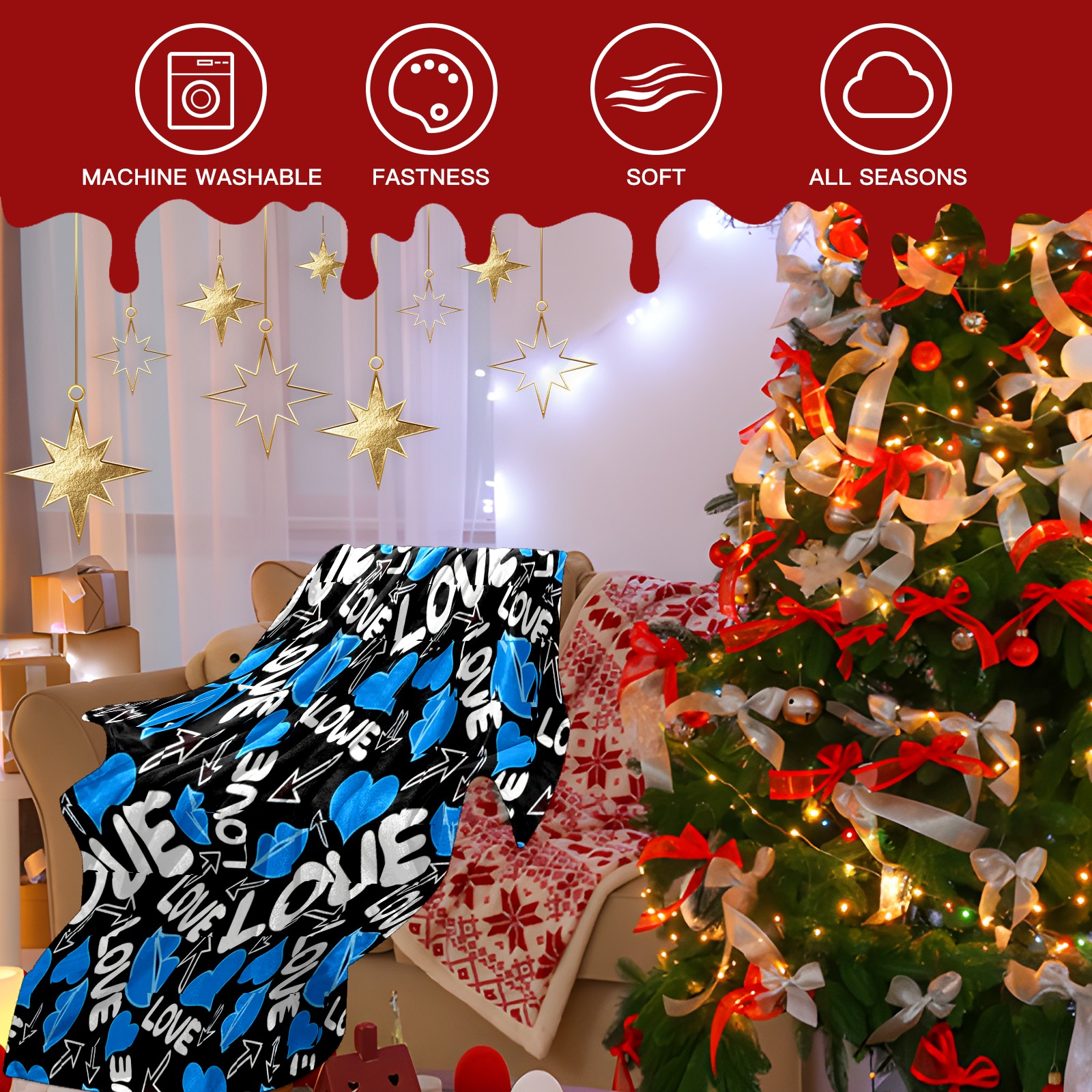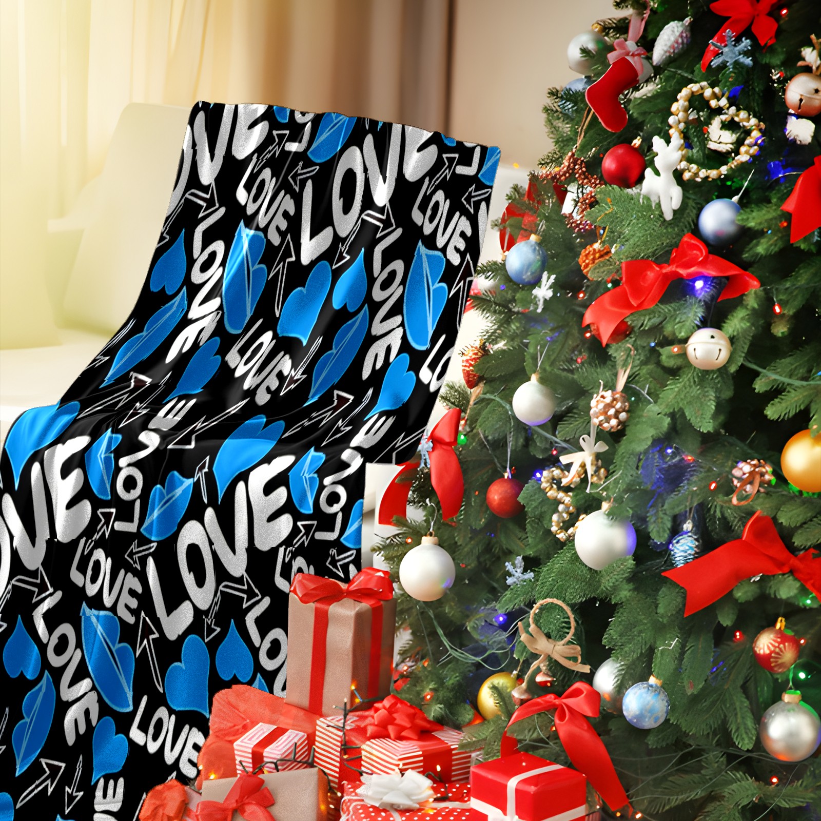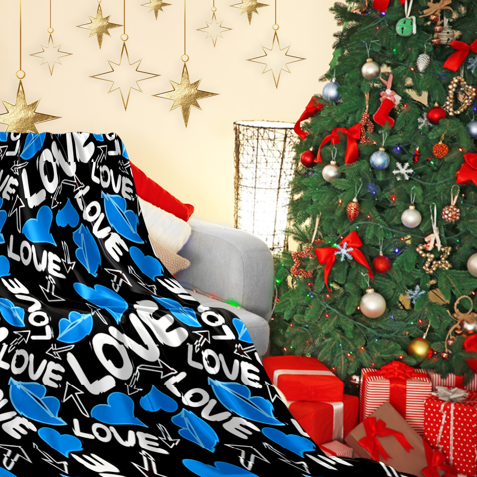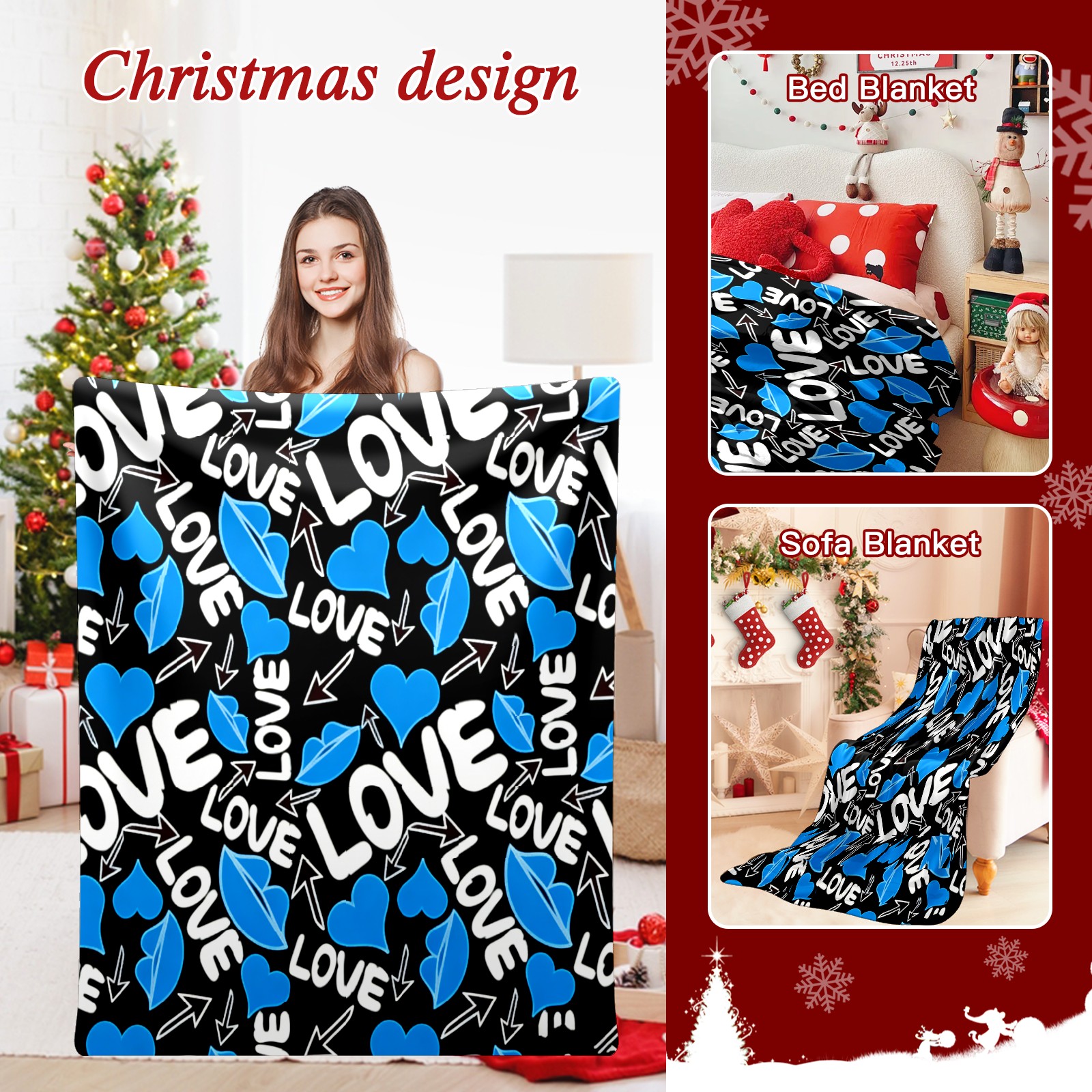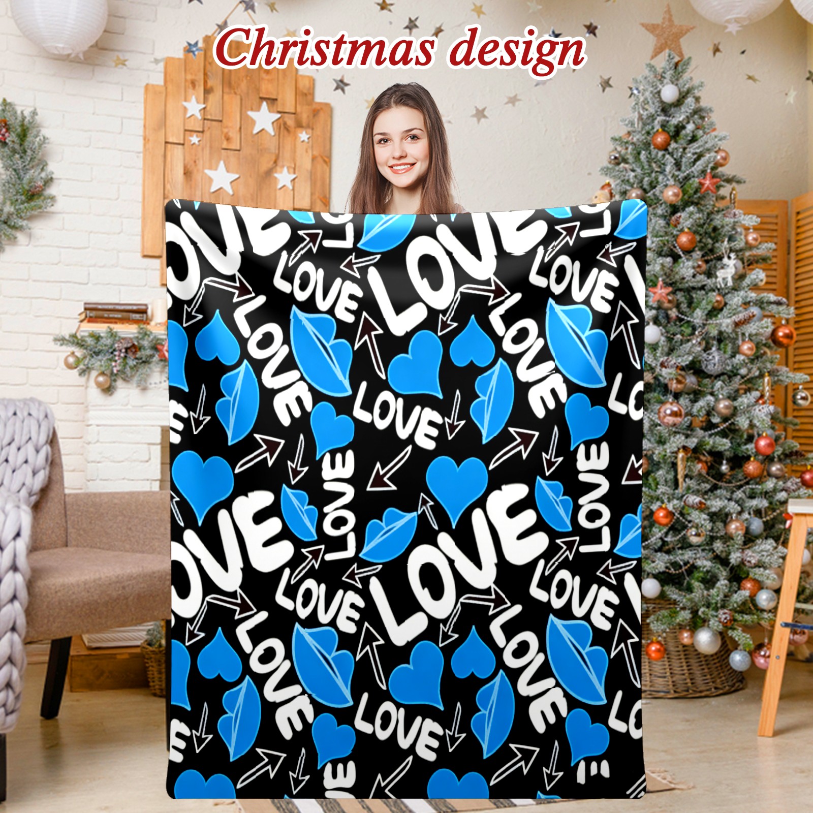 Counullo Flannel Throw Blanket, Ultra Soft Anti-Pilling Blanket for Couch & Bed, Lightweight Cozy Blanket for Travel, Home, Camping Gift - (30" x 39"), Cool LOVE Blue