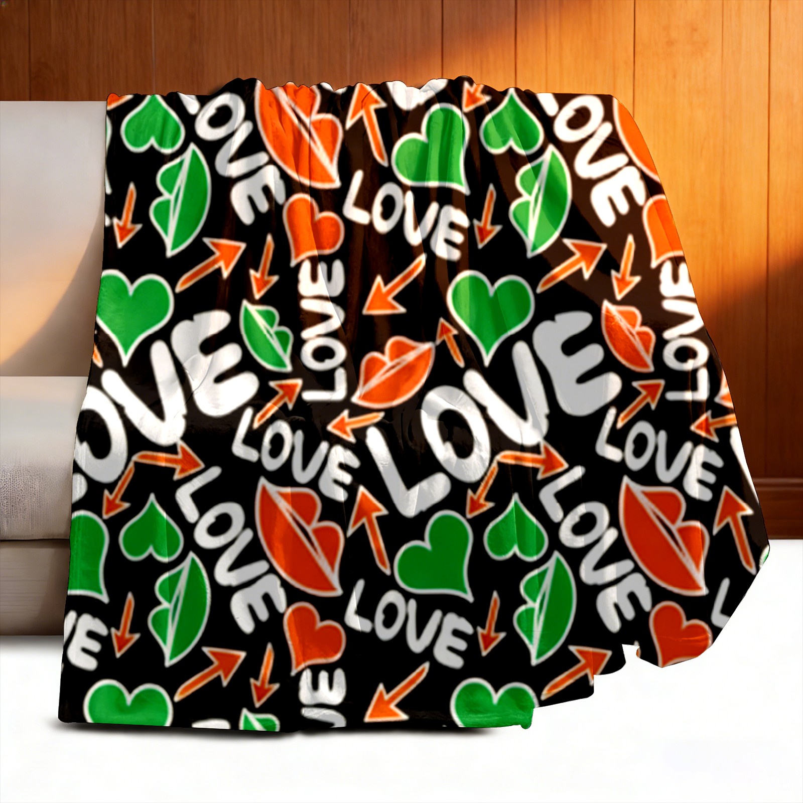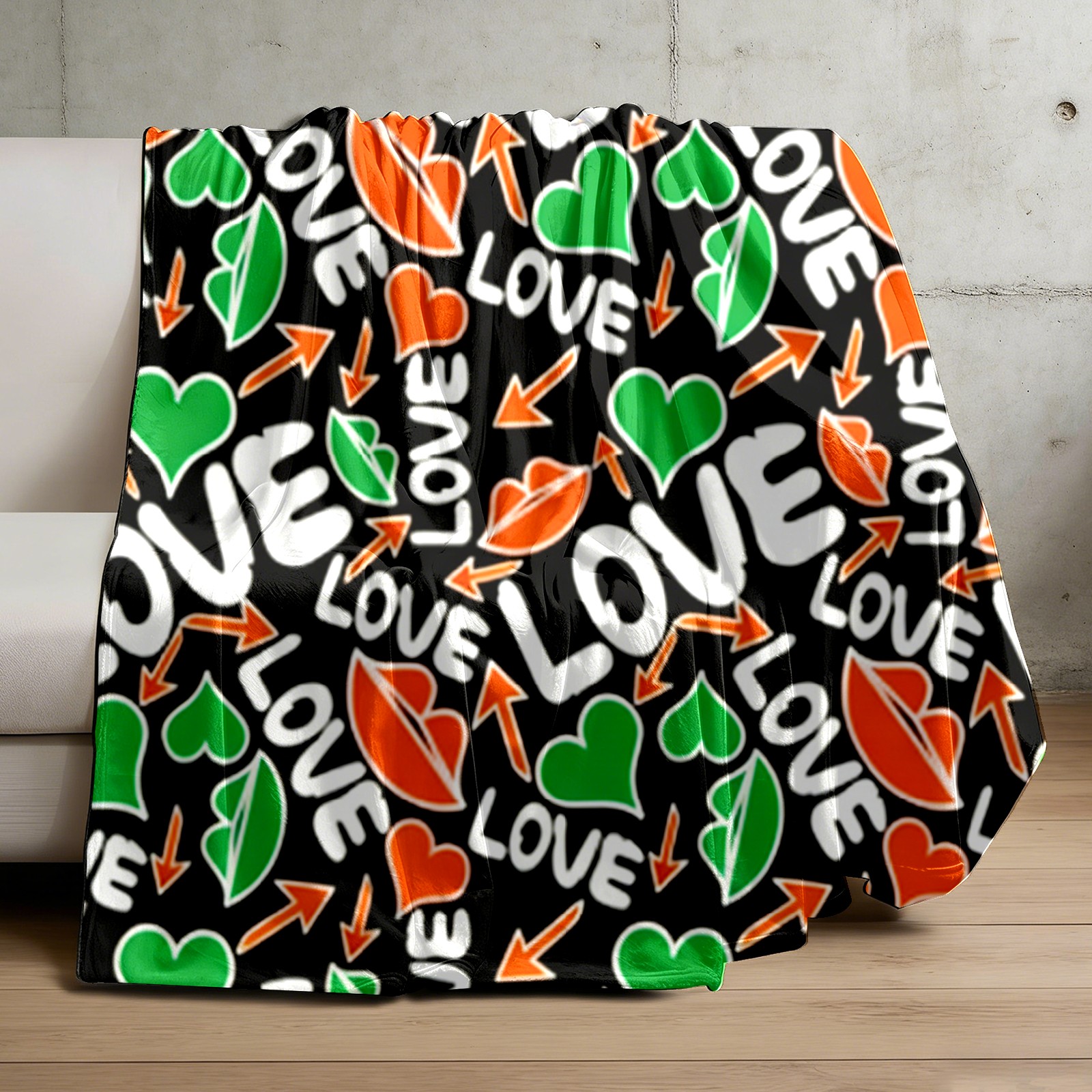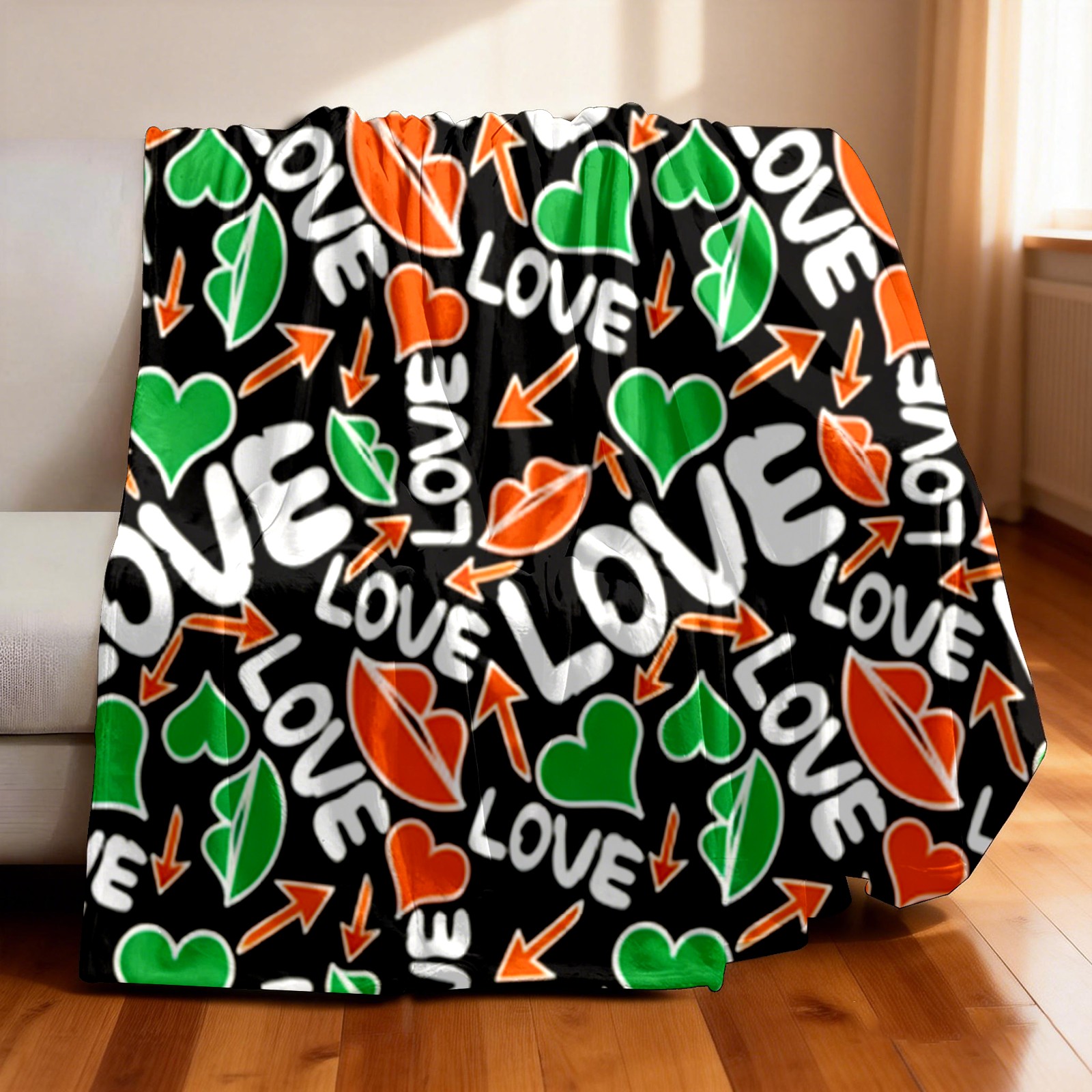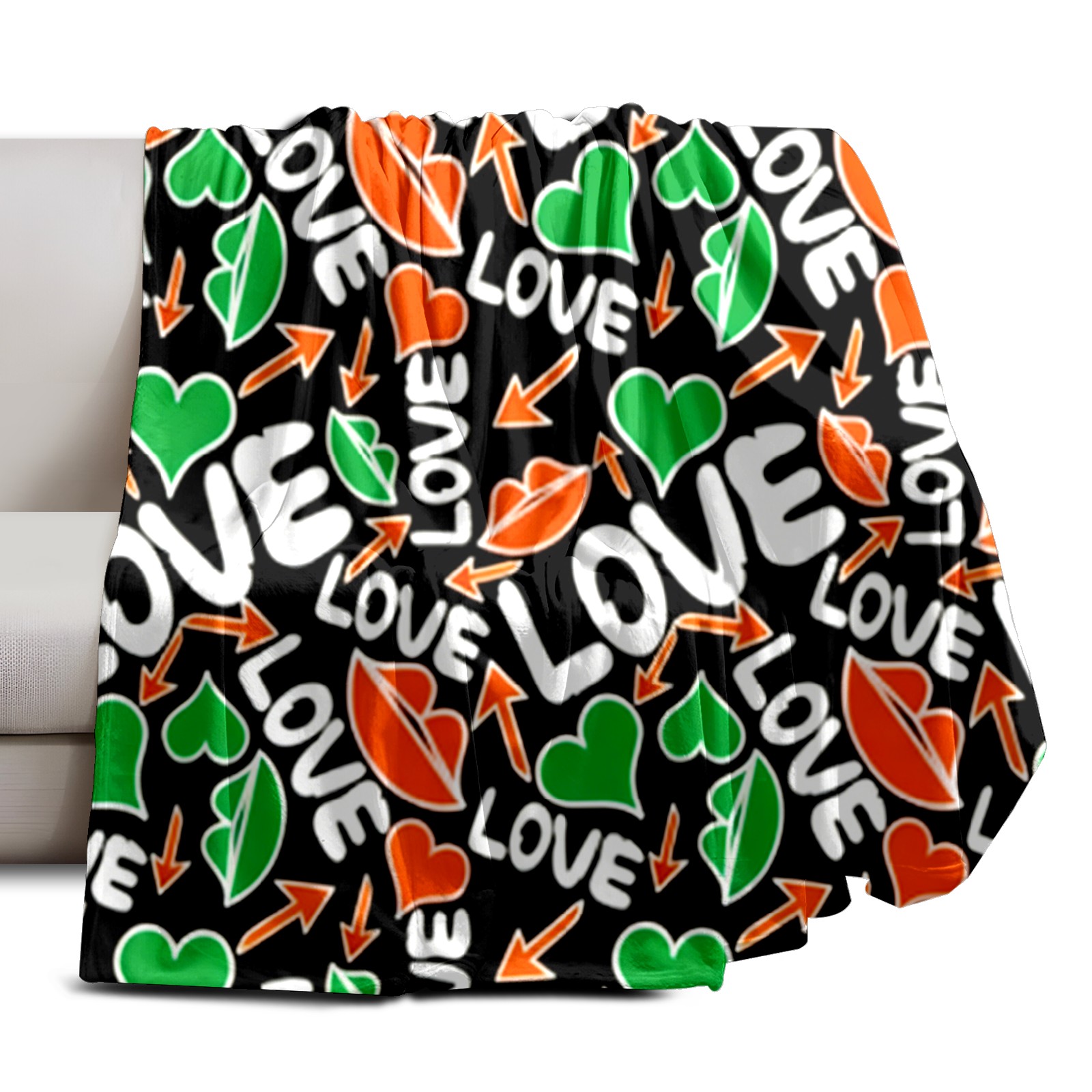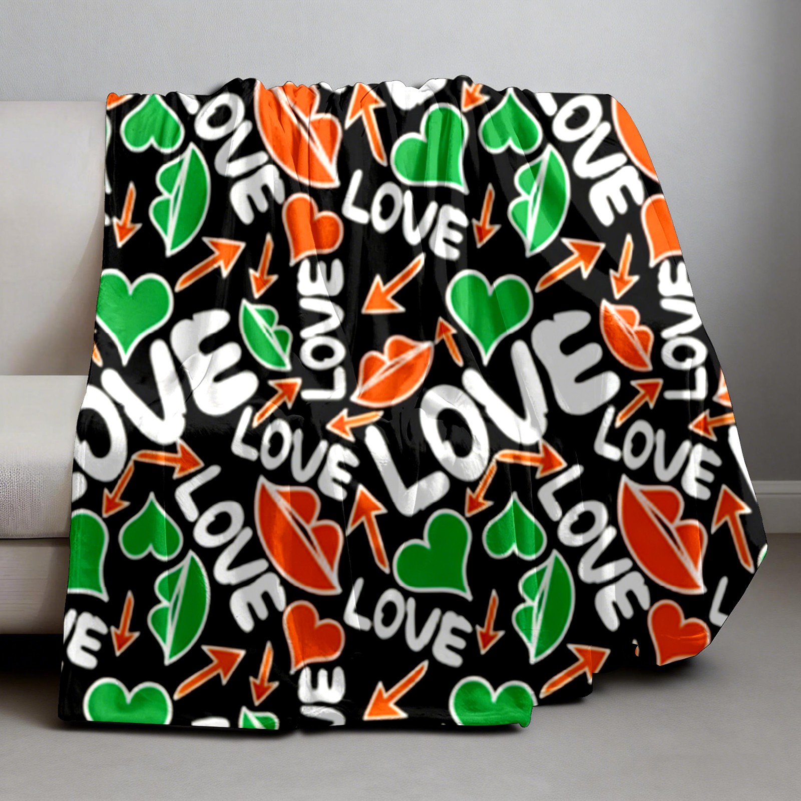 Counullo Flannel Throw Blanket, Ultra Soft Anti-Pilling Blanket for Couch & Bed, Lightweight Cozy Blanket for Travel, Home, Camping Gift - (30" x 39"), Dynamic LOVE Black