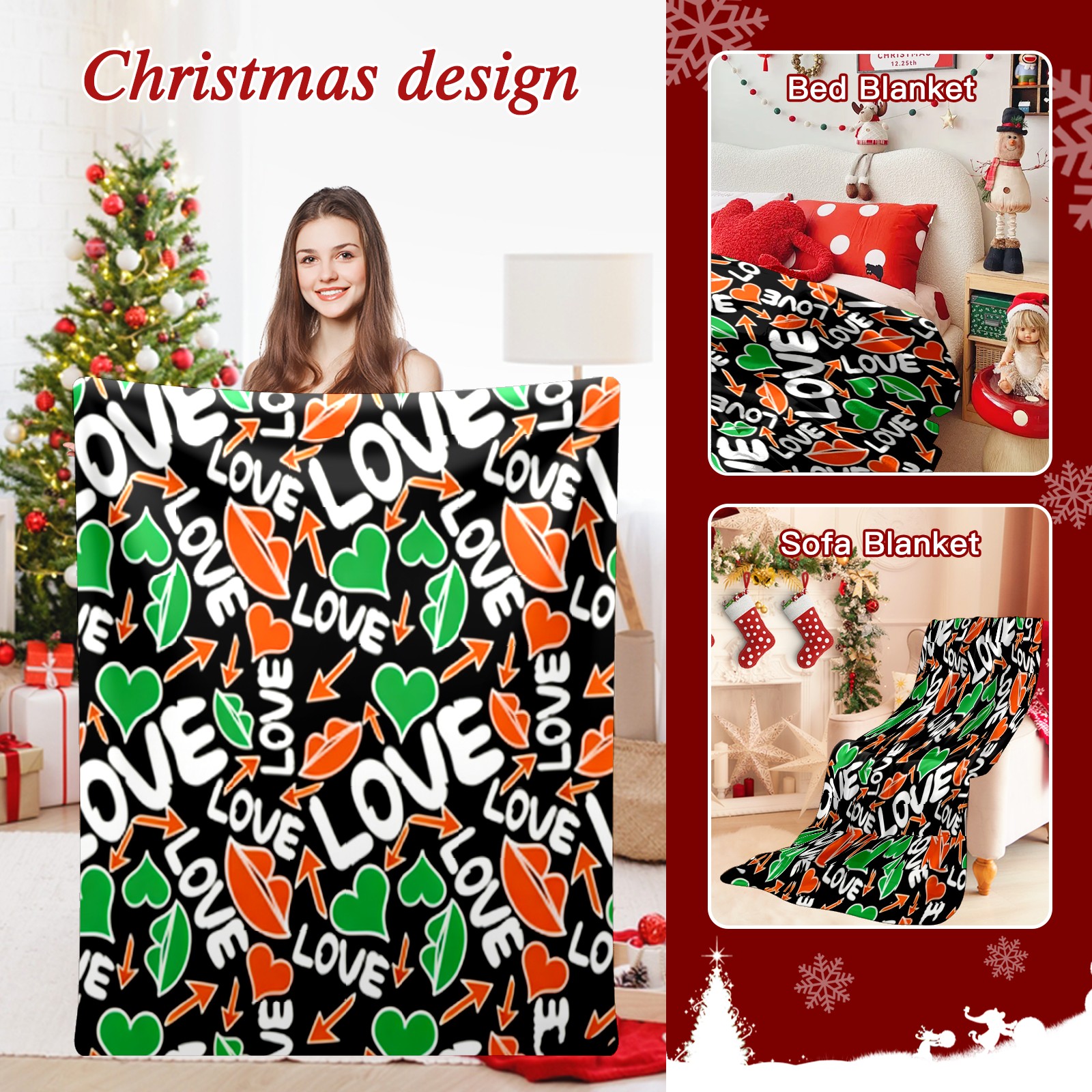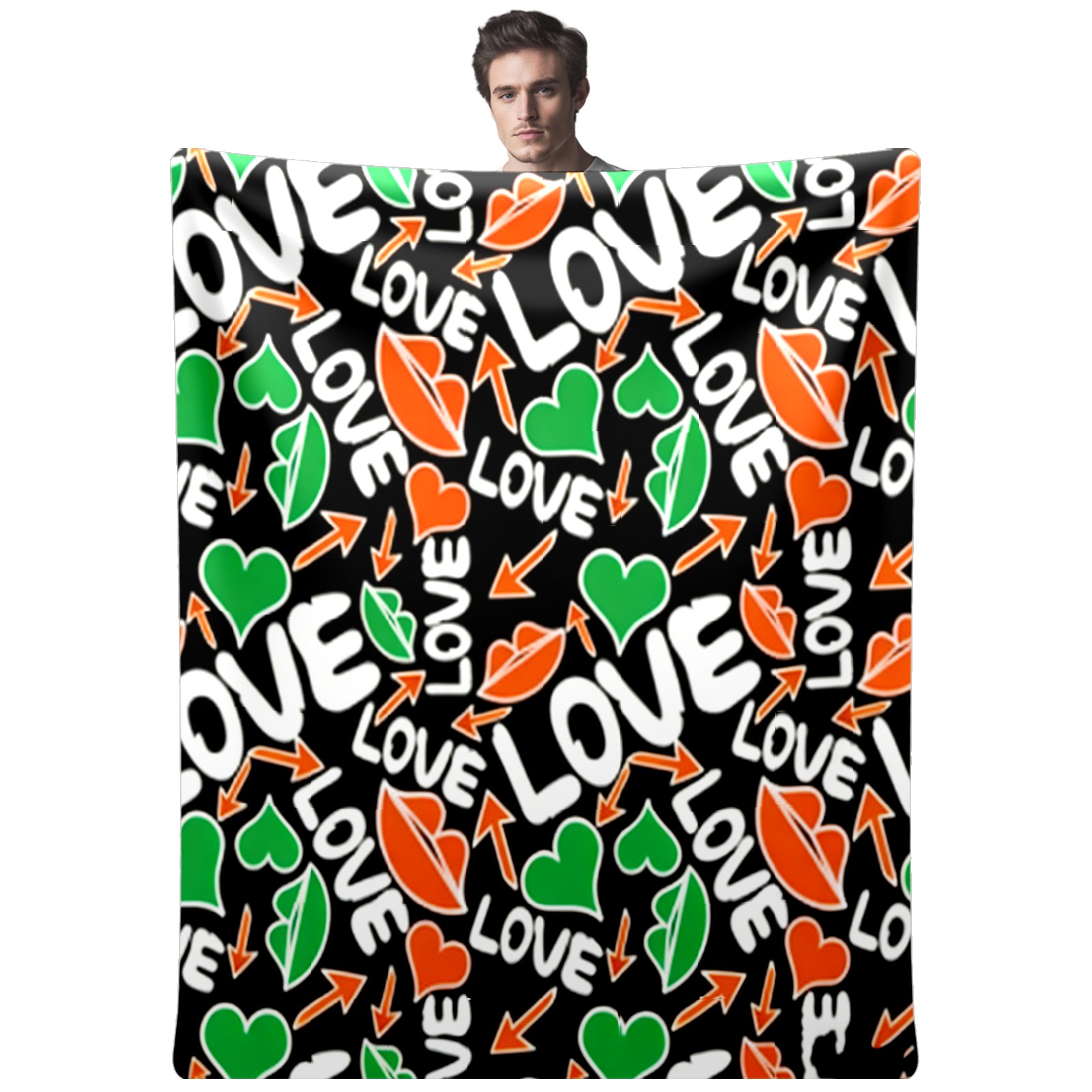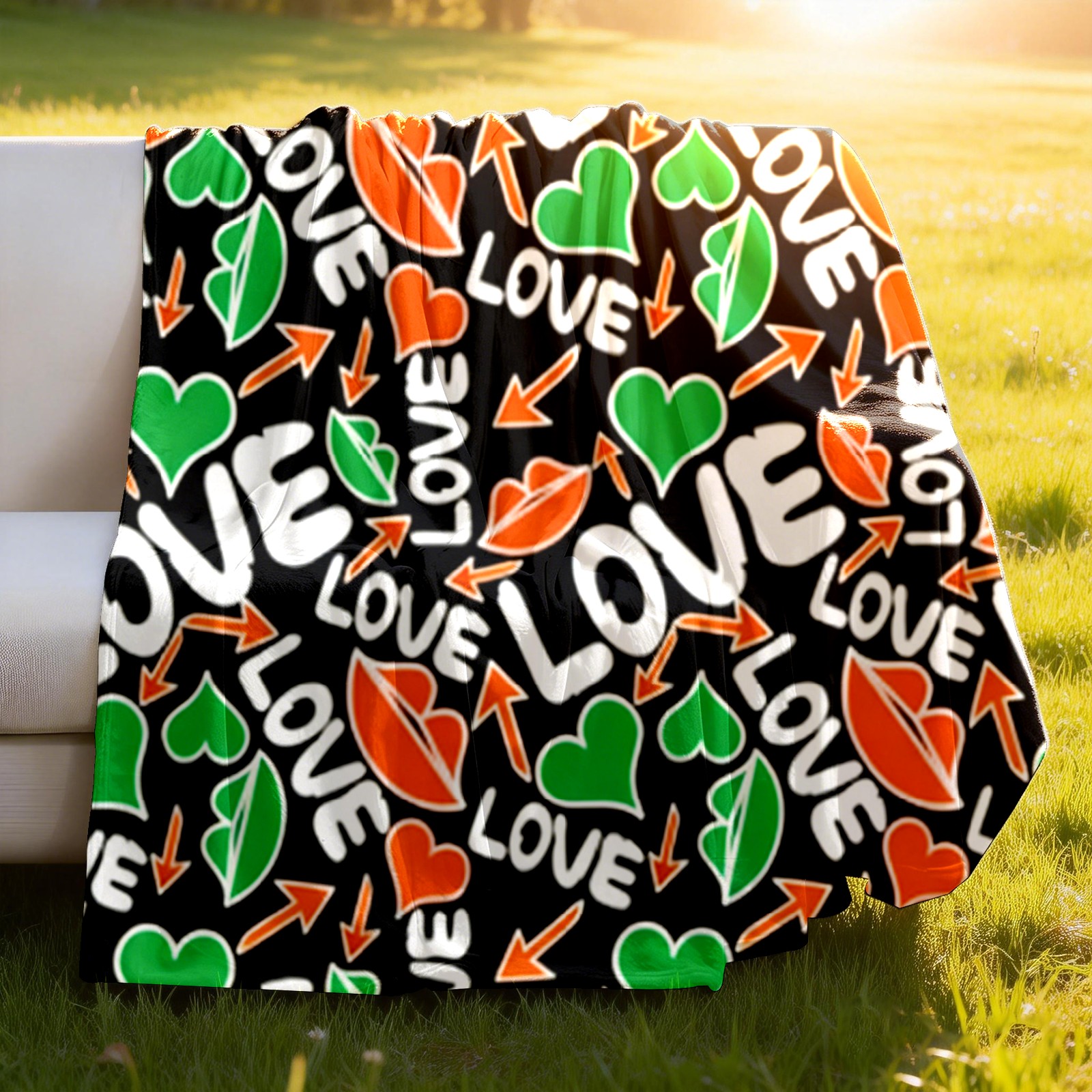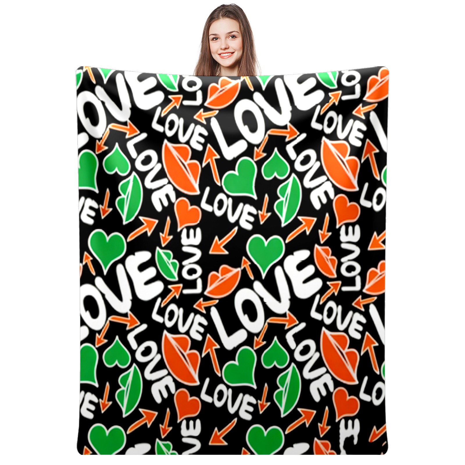 Counullo Flannel Throw Blanket, Ultra Soft Anti-Pilling Blanket for Couch & Bed, Lightweight Cozy Blanket for Travel, Home, Camping Gift - (30" x 39"), Dynamic LOVE Black