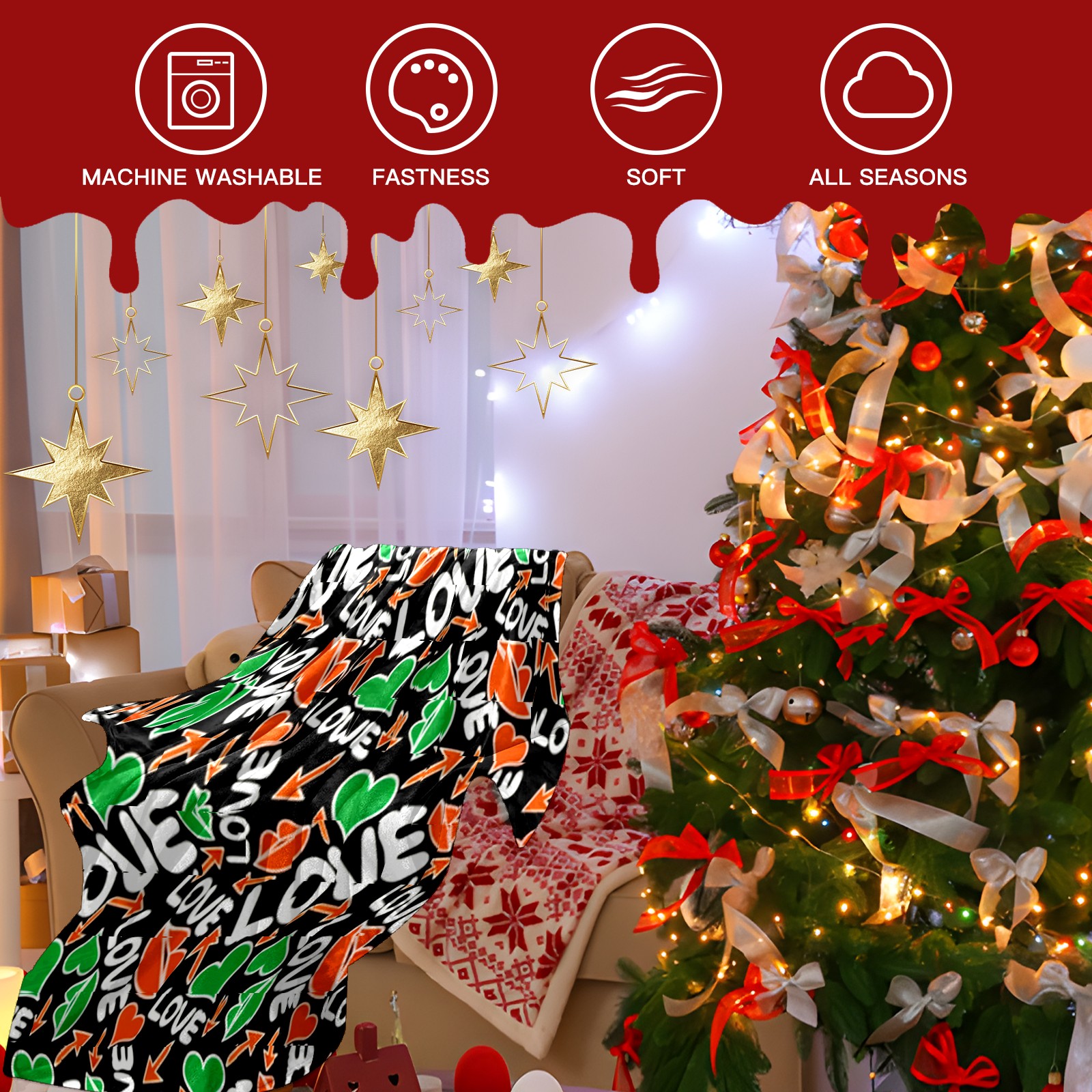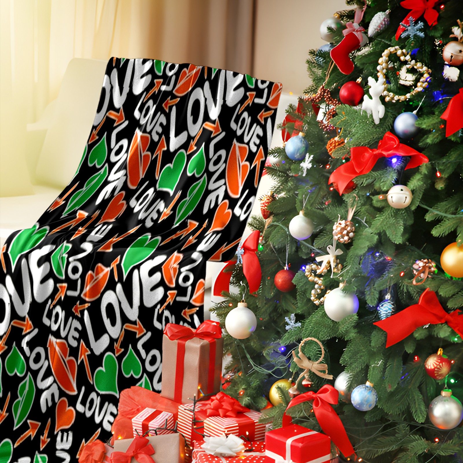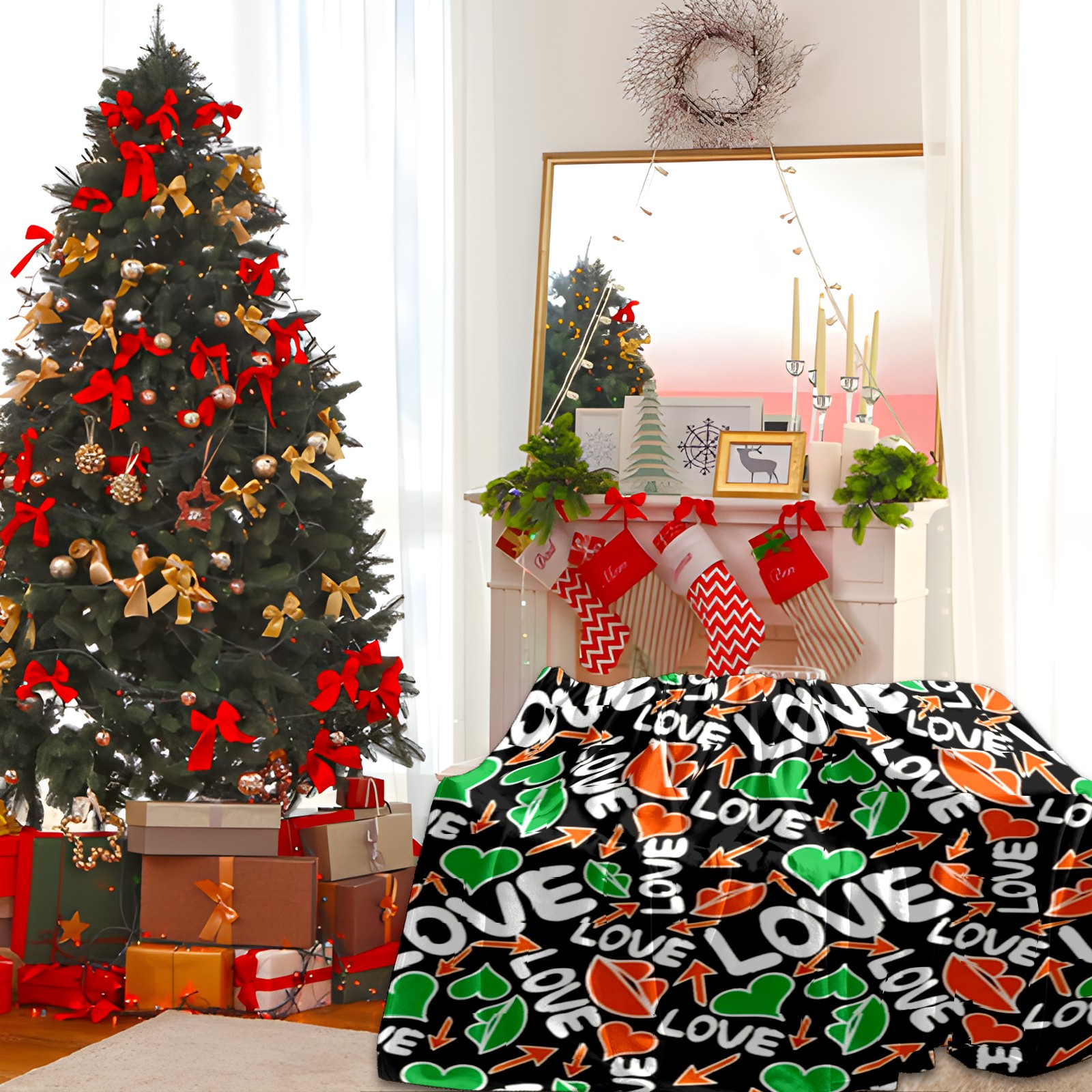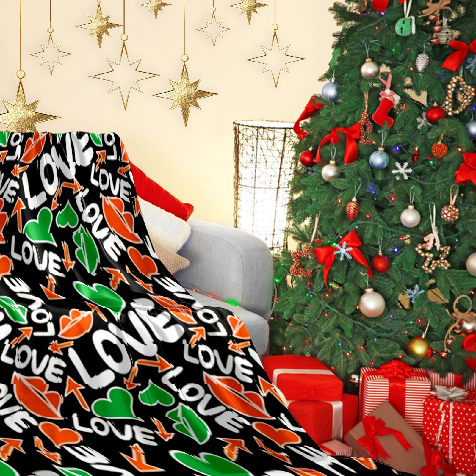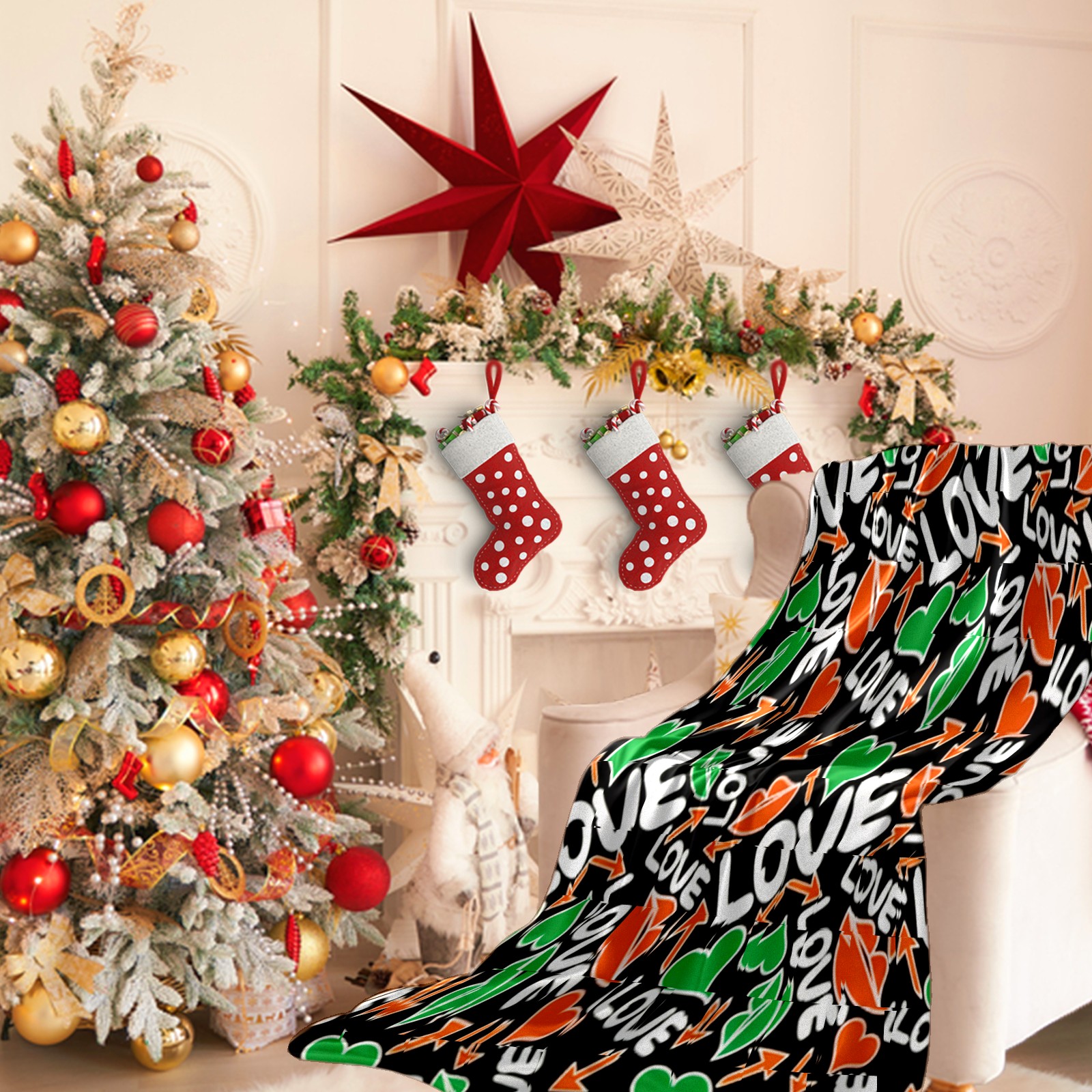 Counullo Flannel Throw Blanket, Ultra Soft Anti-Pilling Blanket for Couch & Bed, Lightweight Cozy Blanket for Travel, Home, Camping Gift - (30" x 39"), Dynamic LOVE Black