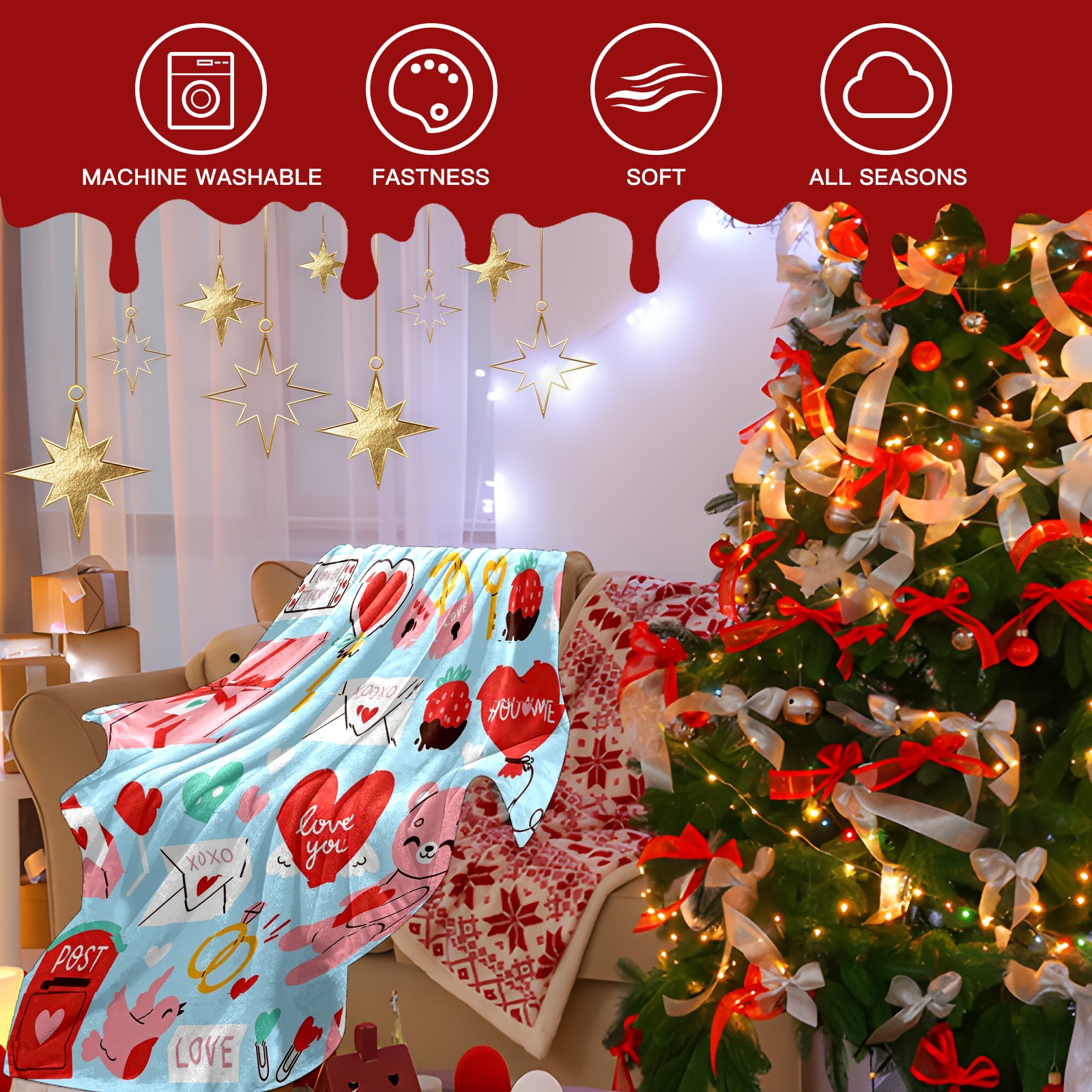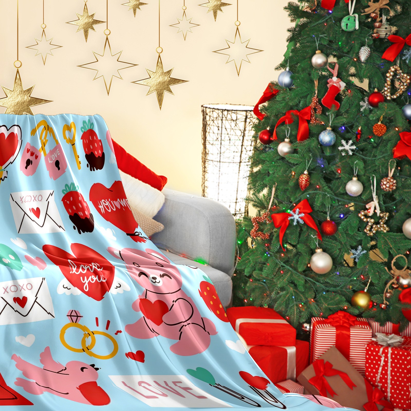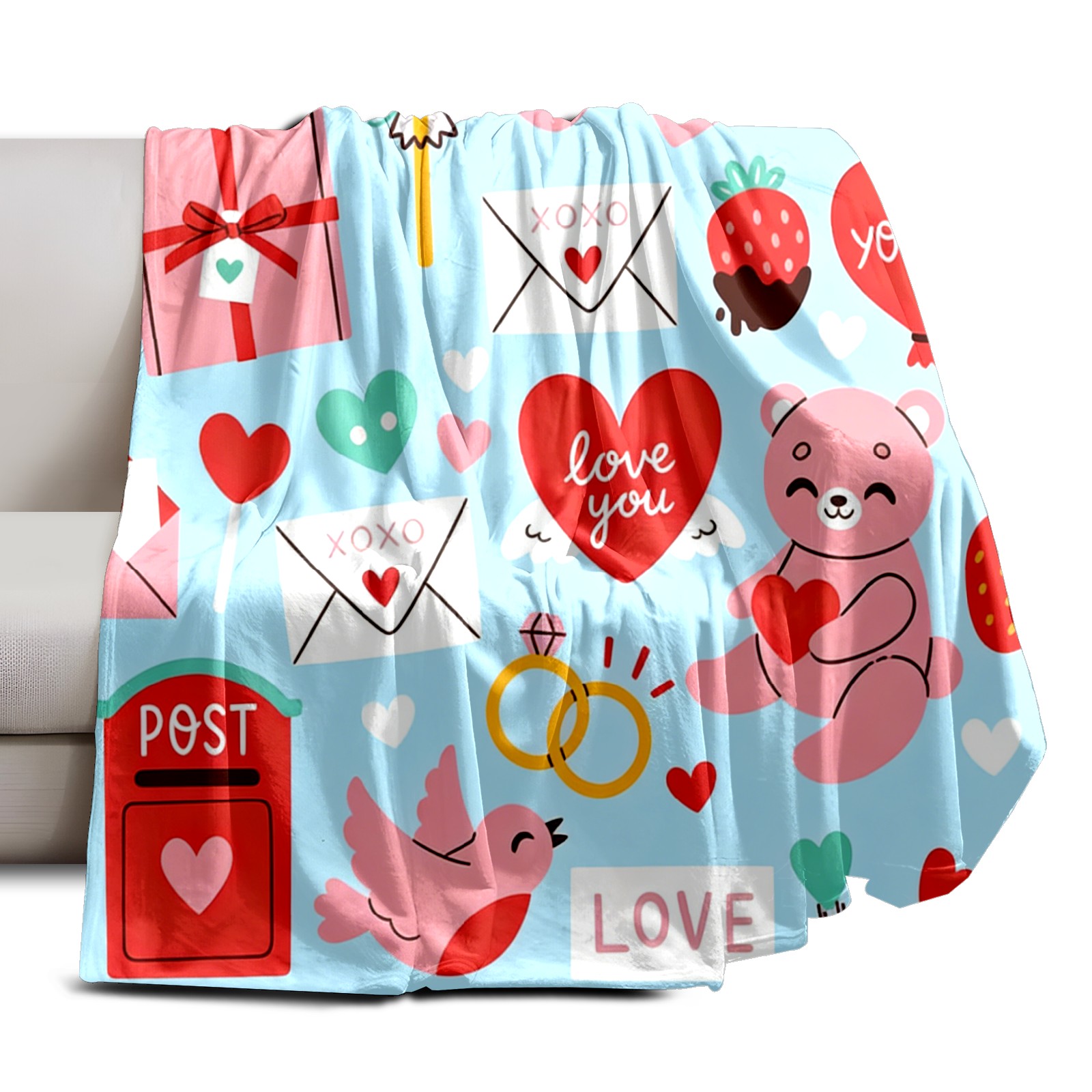 Counullo Flannel Throw Blanket, Ultra Soft Anti-Pilling Blanket for Couch & Bed, Lightweight Cozy Blanket for Travel, Home, Camping Gift - (30" x 39"), Love Letter Pink