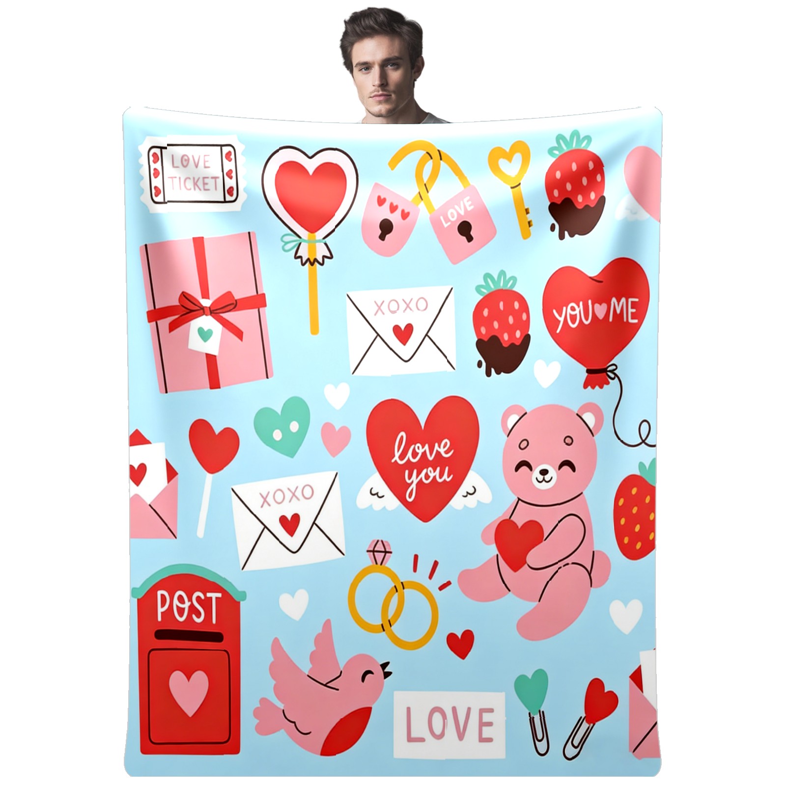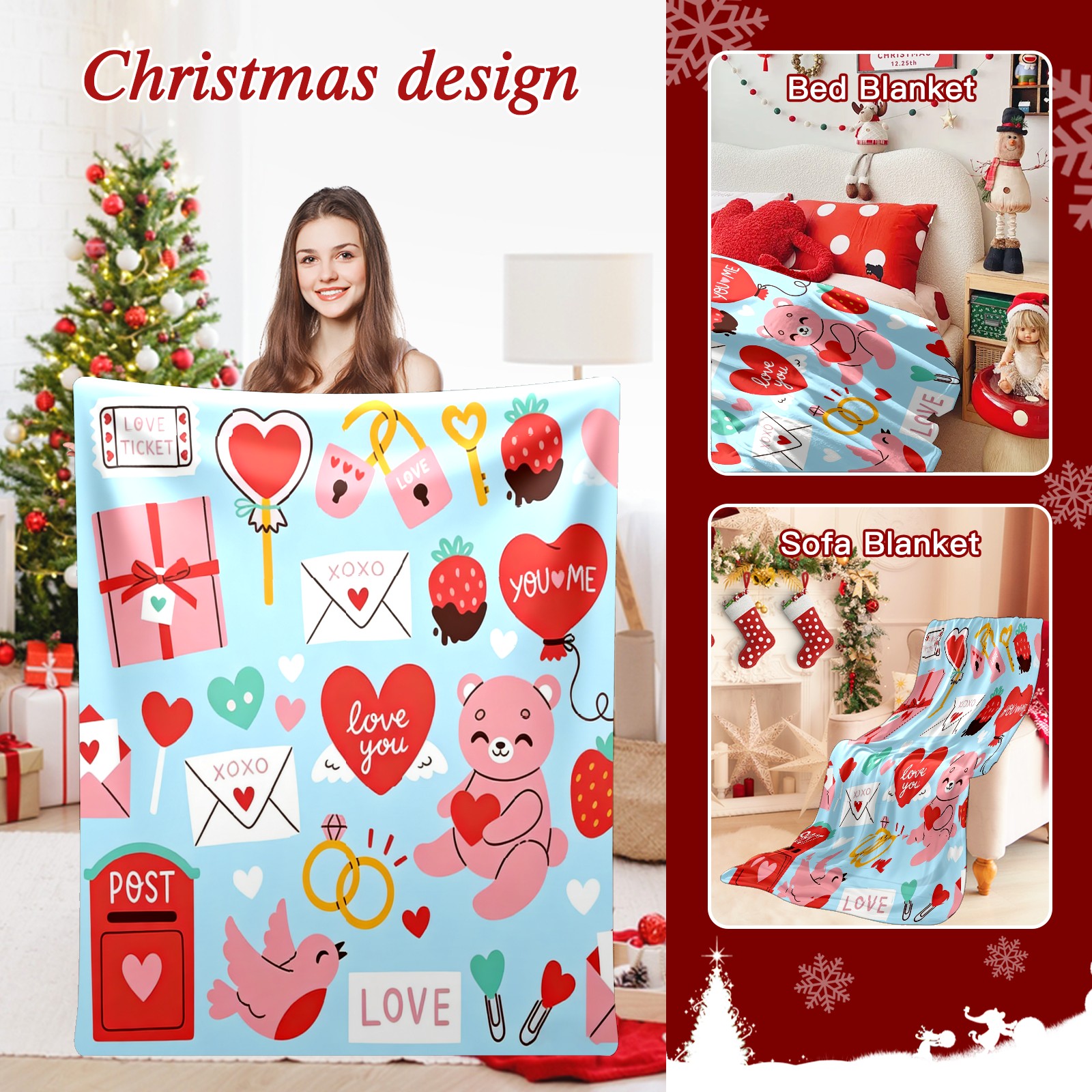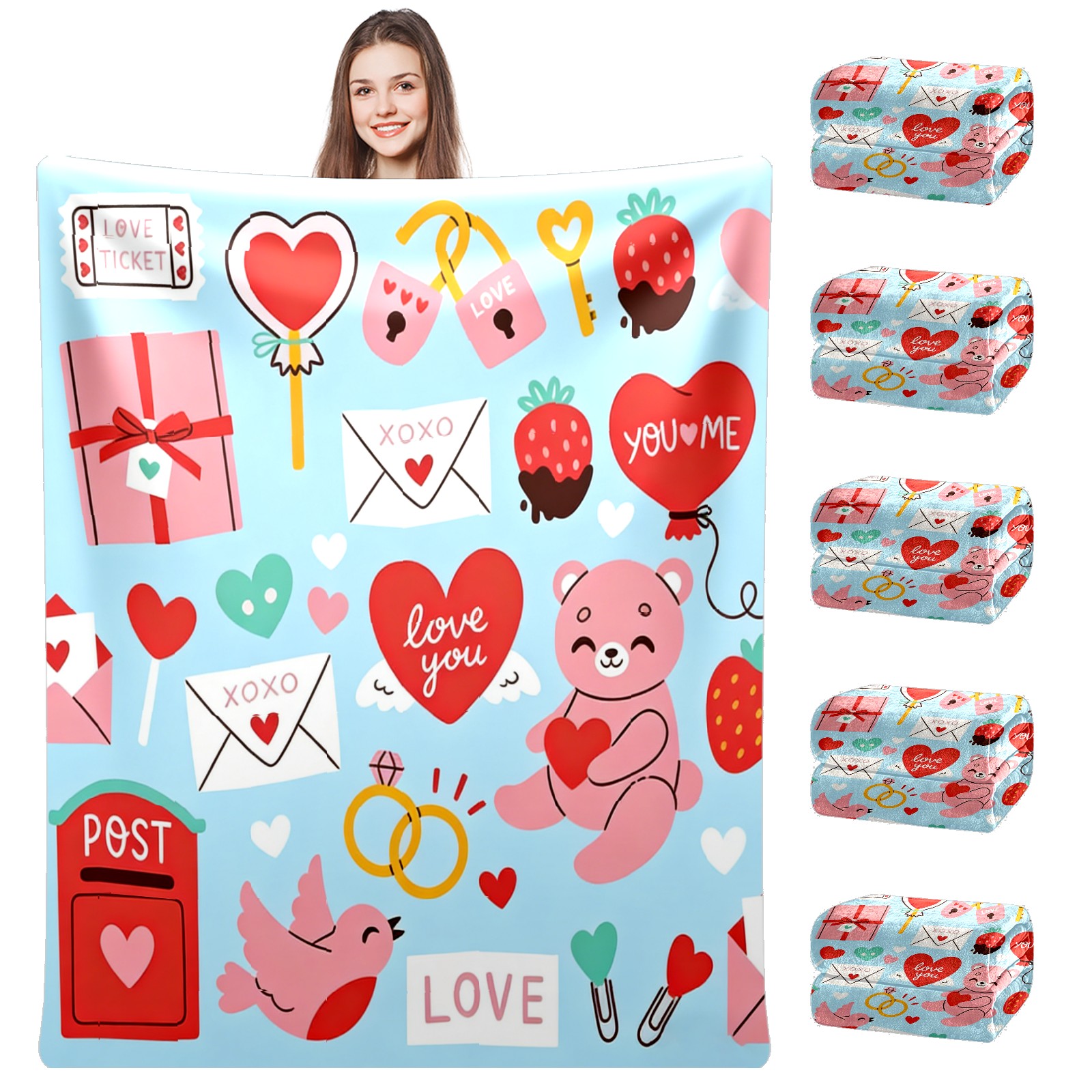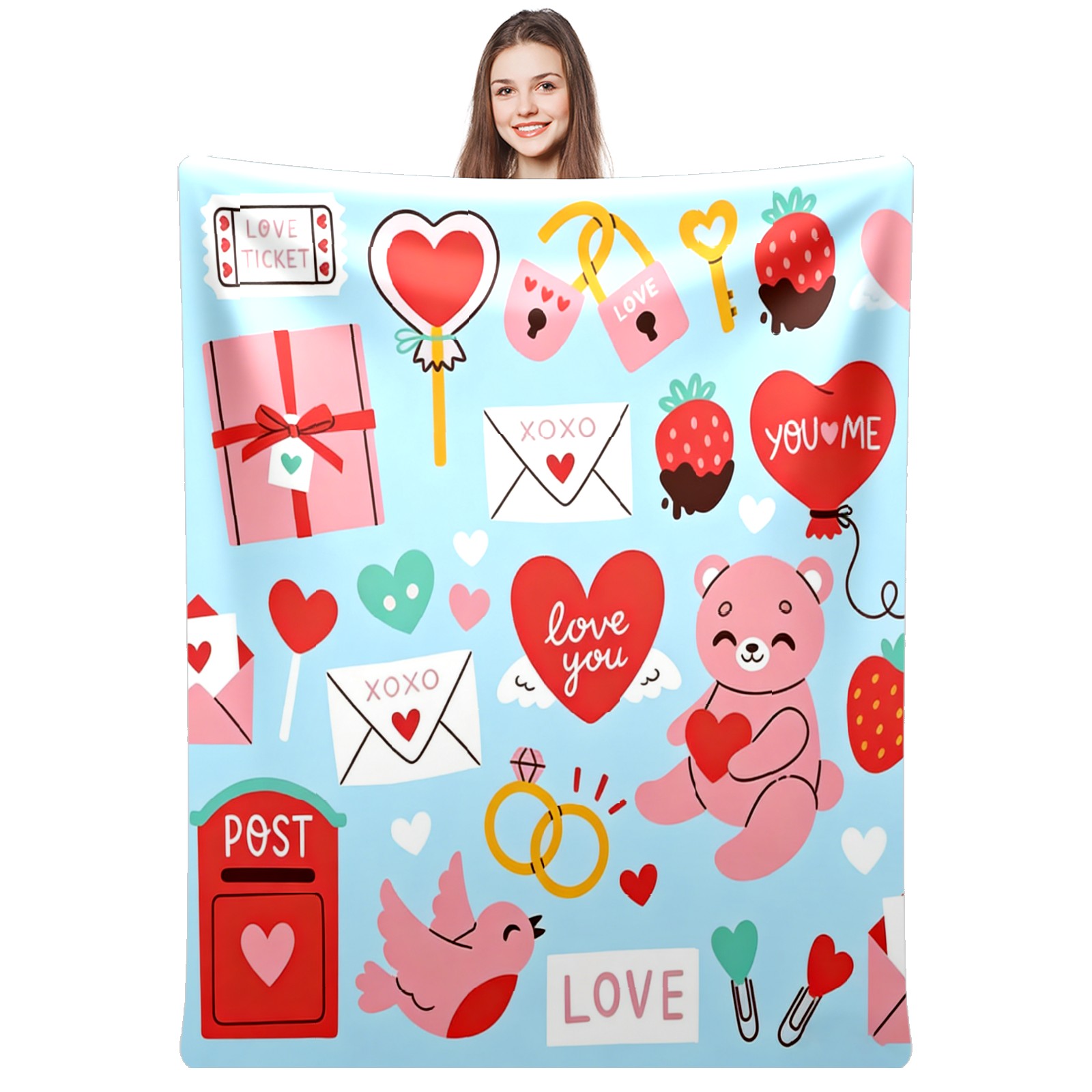 Counullo Flannel Throw Blanket, Ultra Soft Anti-Pilling Blanket for Couch & Bed, Lightweight Cozy Blanket for Travel, Home, Camping Gift - (30" x 39"), Love Letter Pink