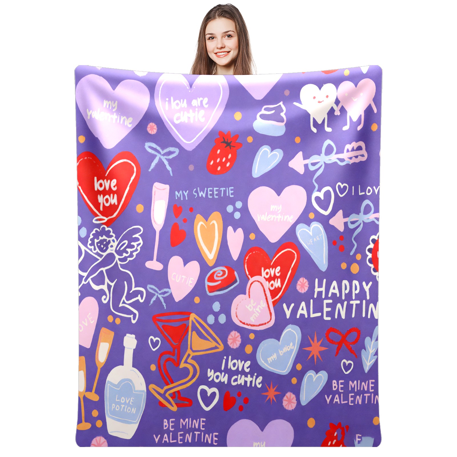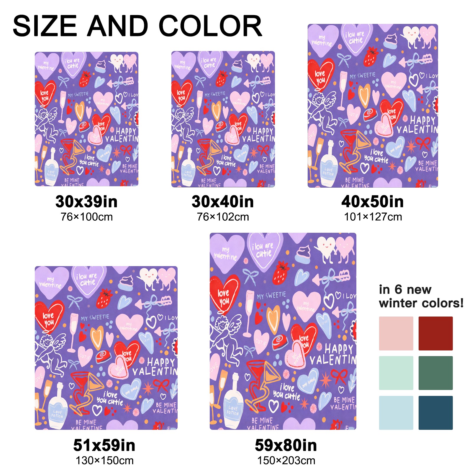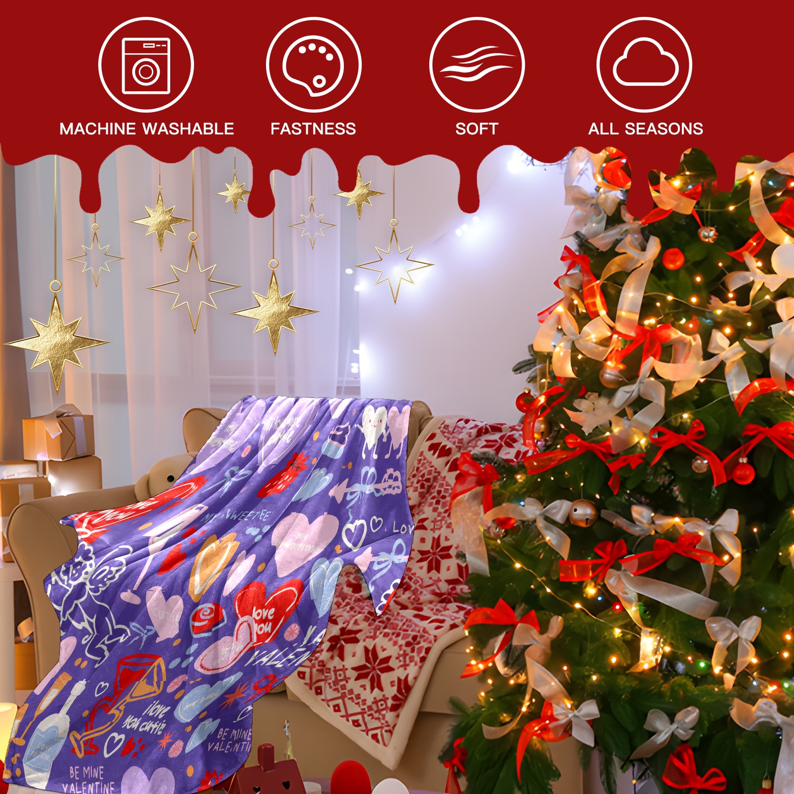 Counullo Flannel Throw Blanket, Ultra Soft Anti-Pilling Blanket for Couch & Bed, Lightweight Cozy Blanket for Travel, Home, Camping Gift - (30" x 39"), Sweet Heart Purple