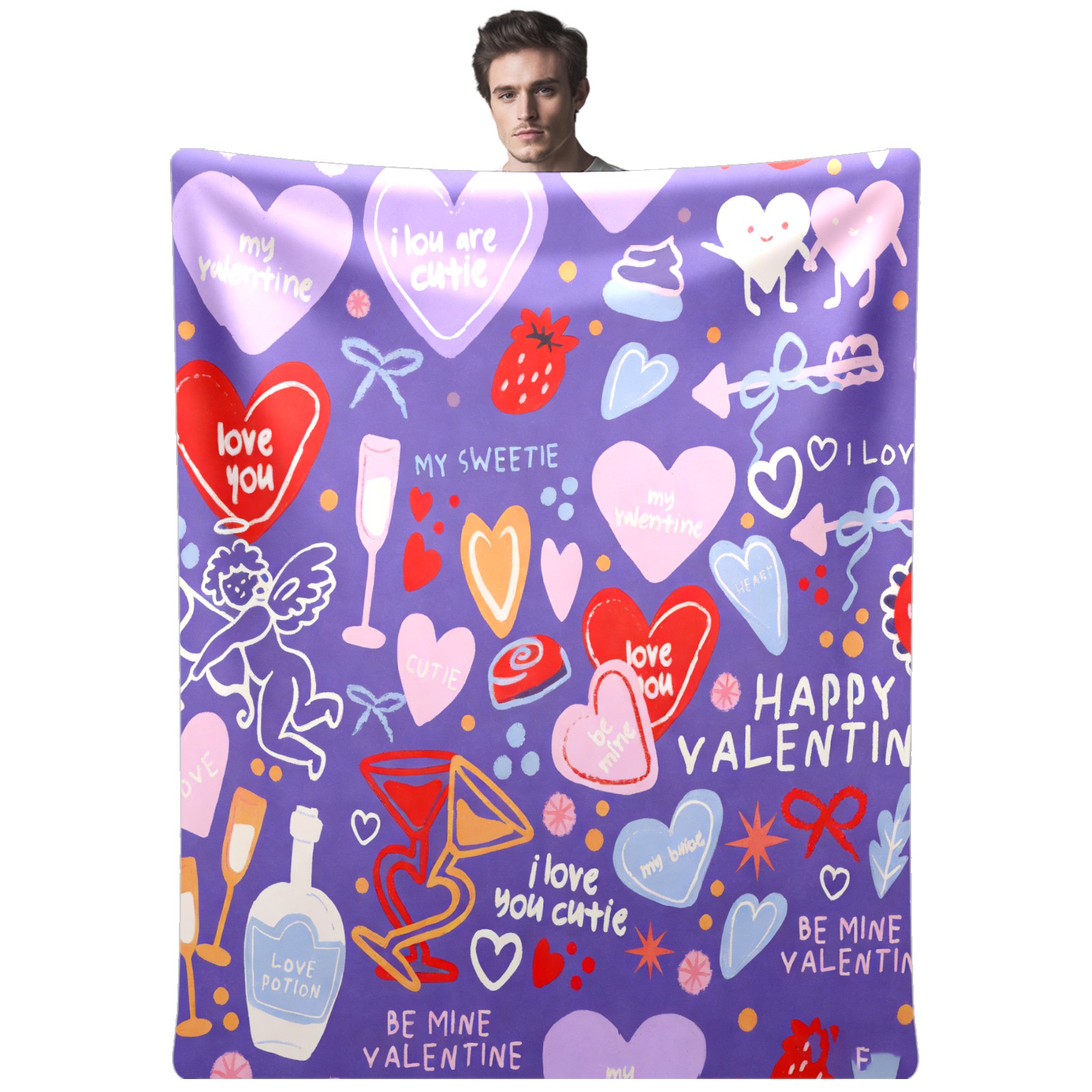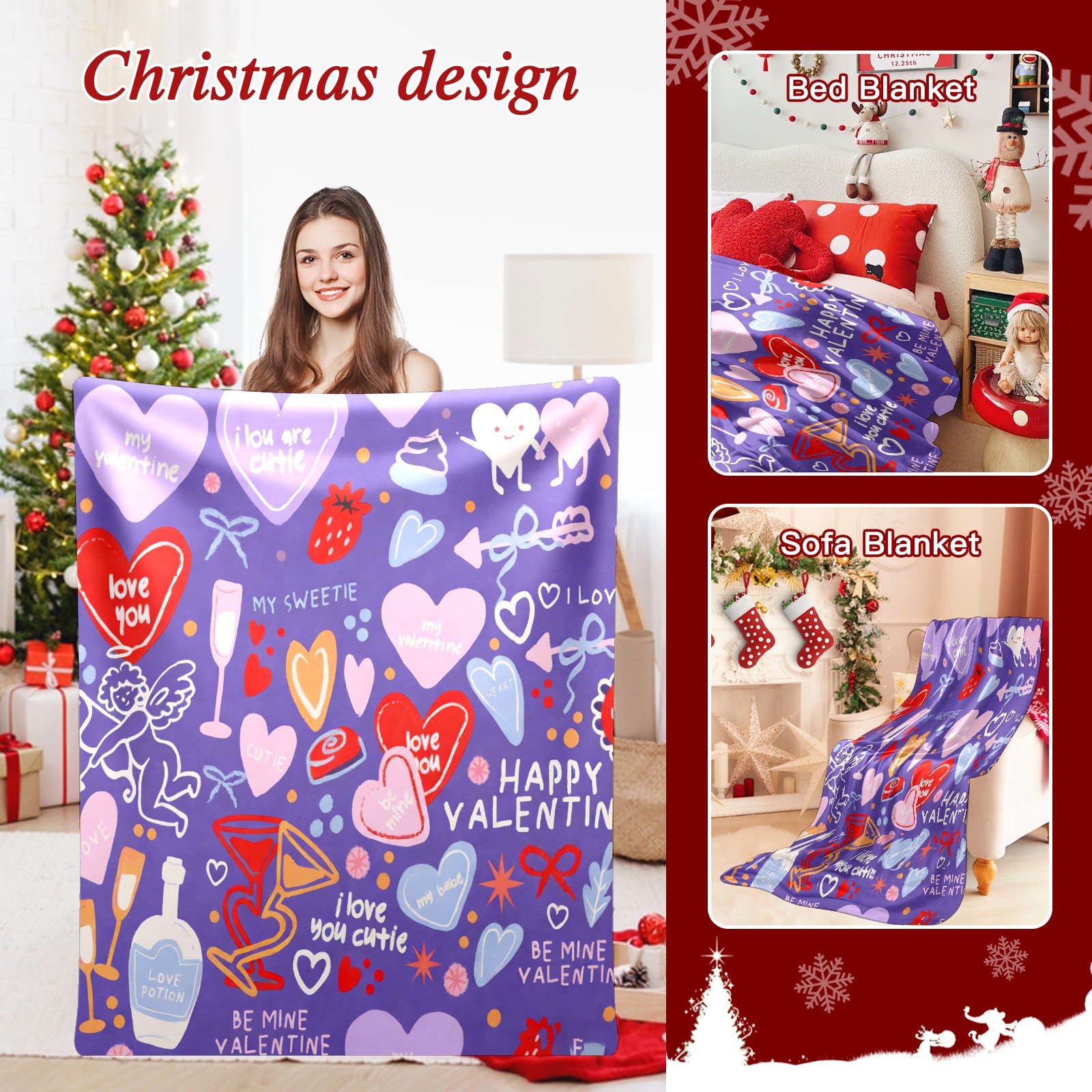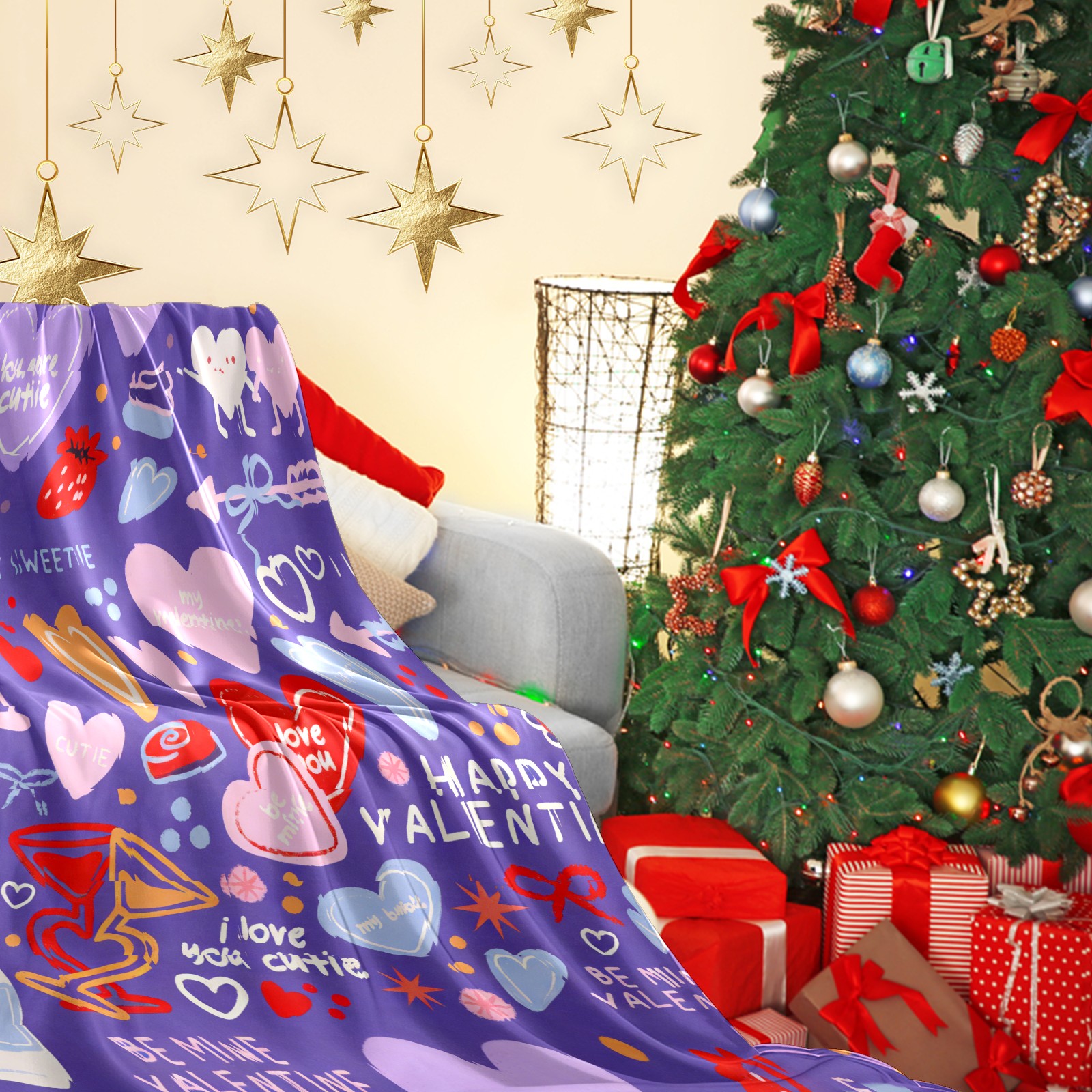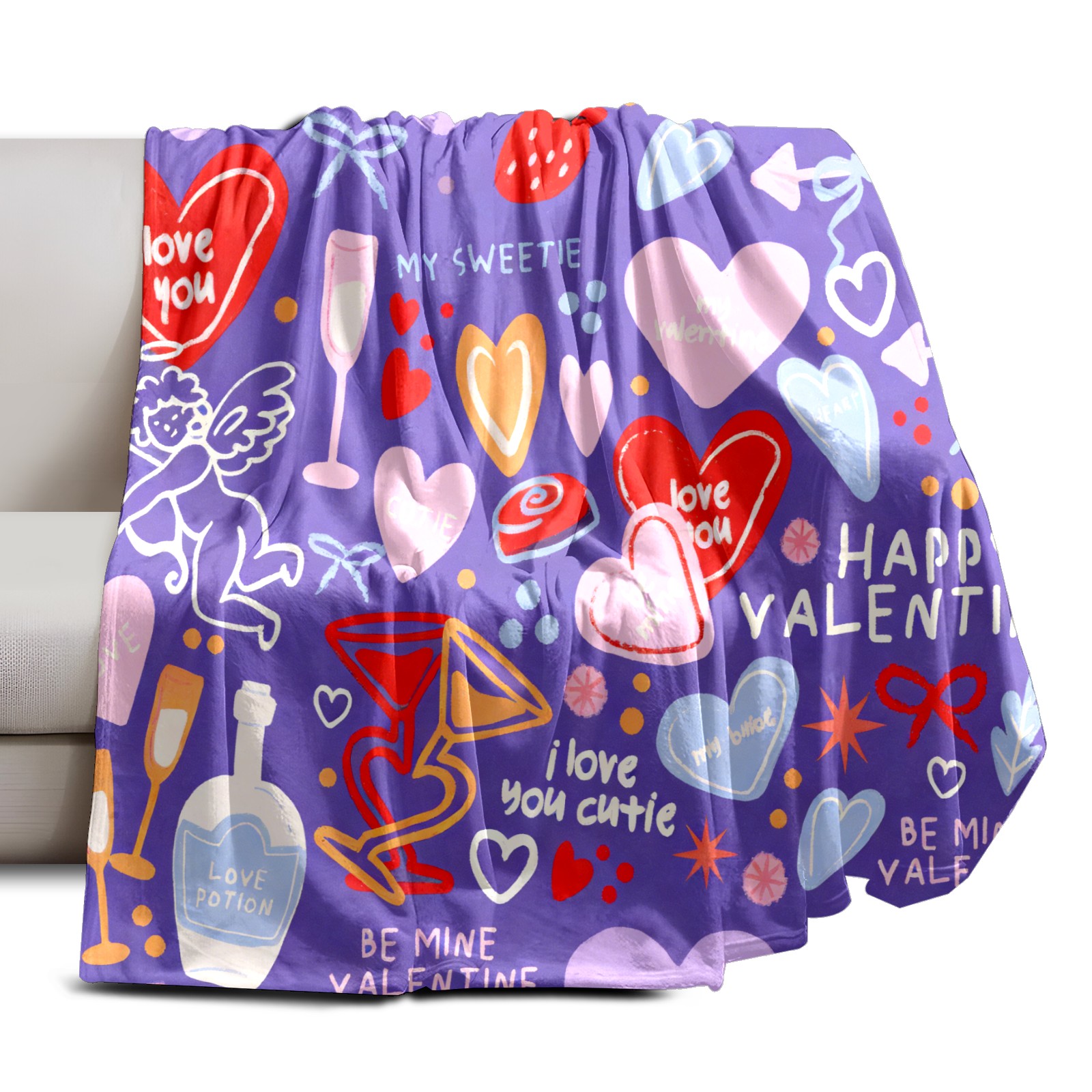 Counullo Flannel Throw Blanket, Ultra Soft Anti-Pilling Blanket for Couch & Bed, Lightweight Cozy Blanket for Travel, Home, Camping Gift - (30" x 39"), Sweet Heart Purple