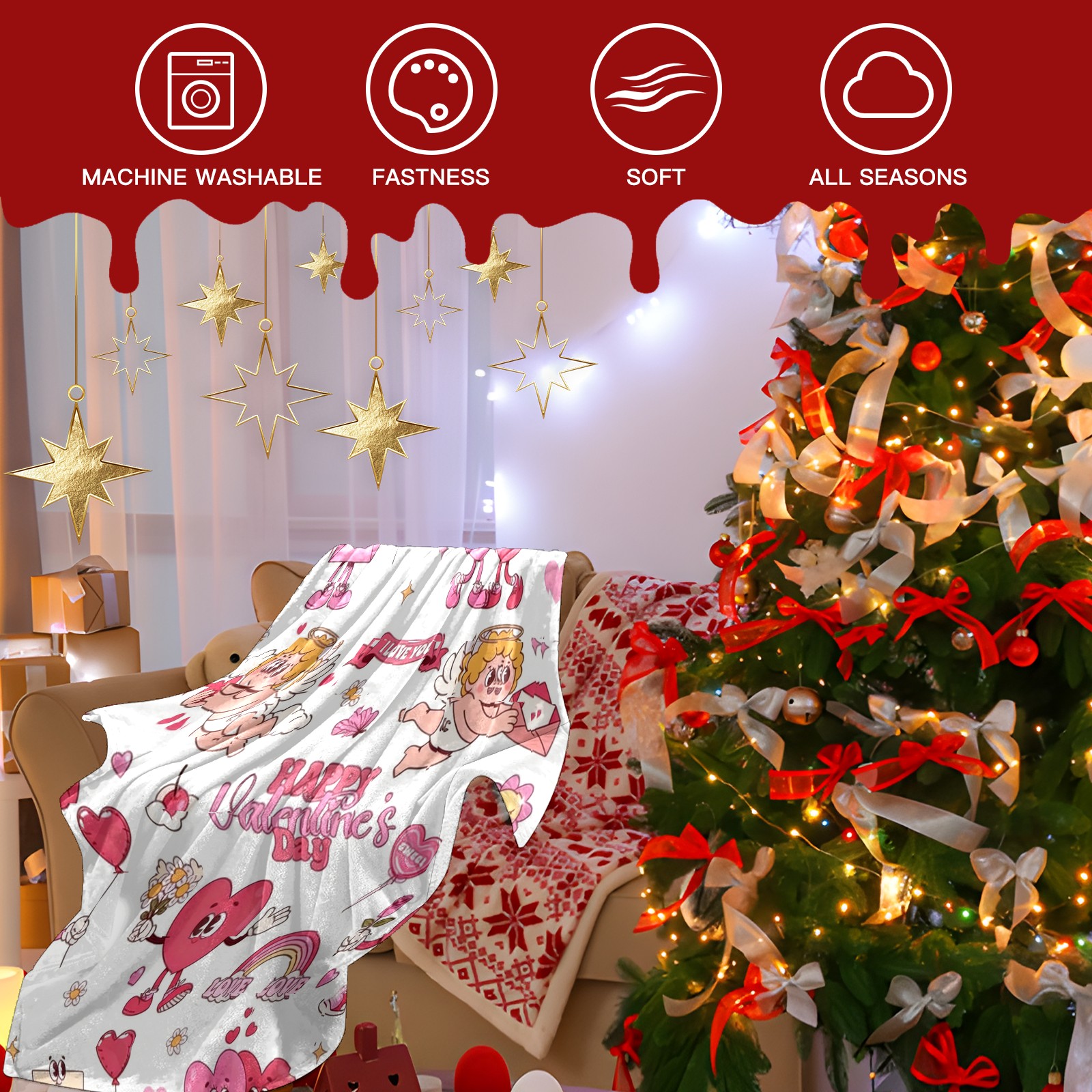 Counullo Flannel Throw Blanket, Ultra Soft Anti-Pilling Blanket for Couch & Bed, Lightweight Cozy Blanket for Travel, Home, Camping Gift - (30" x 39"), Dreamy Cupid Pink