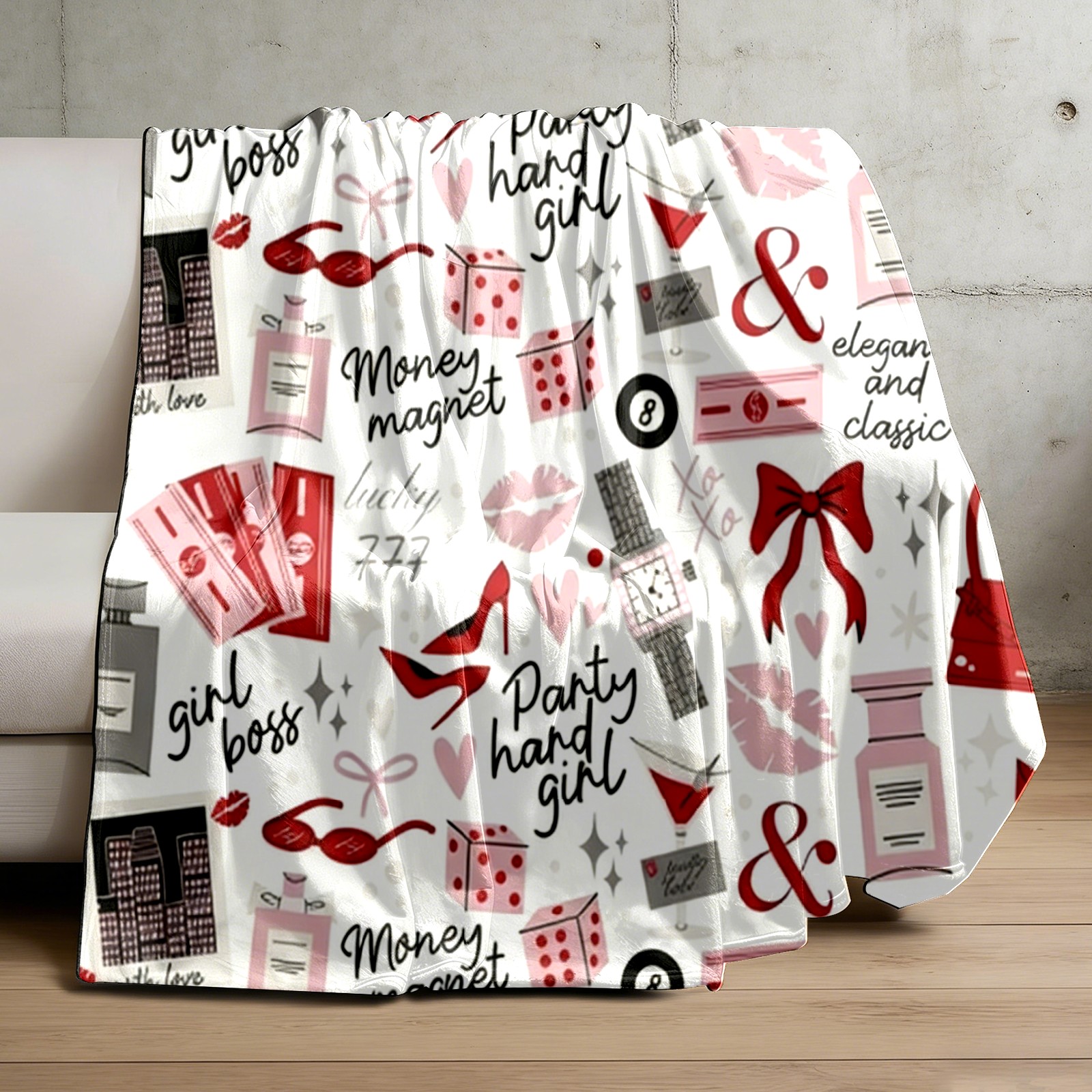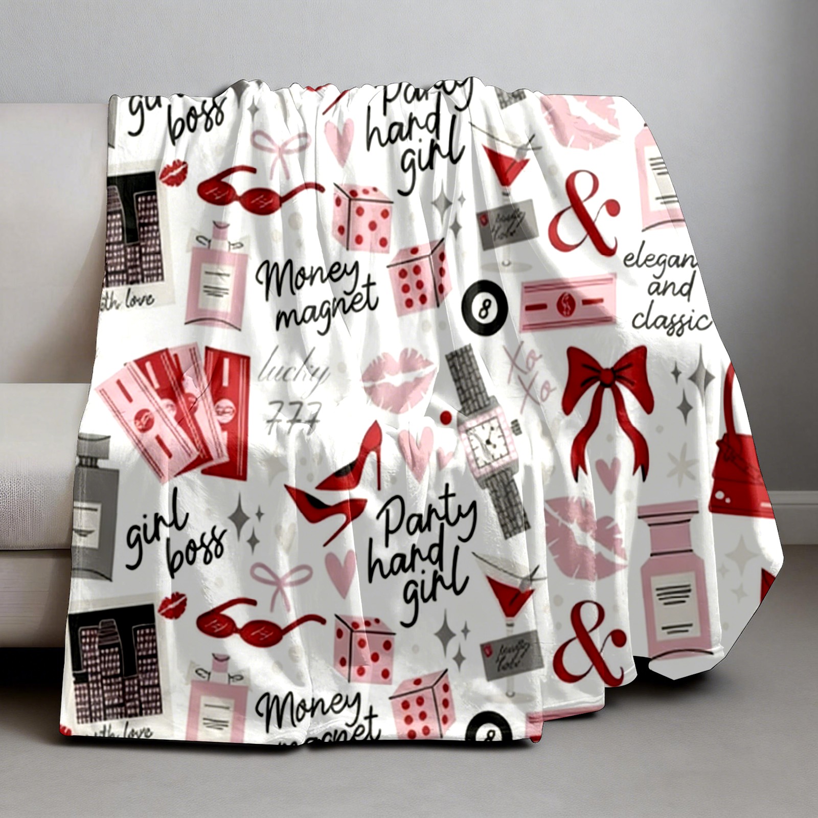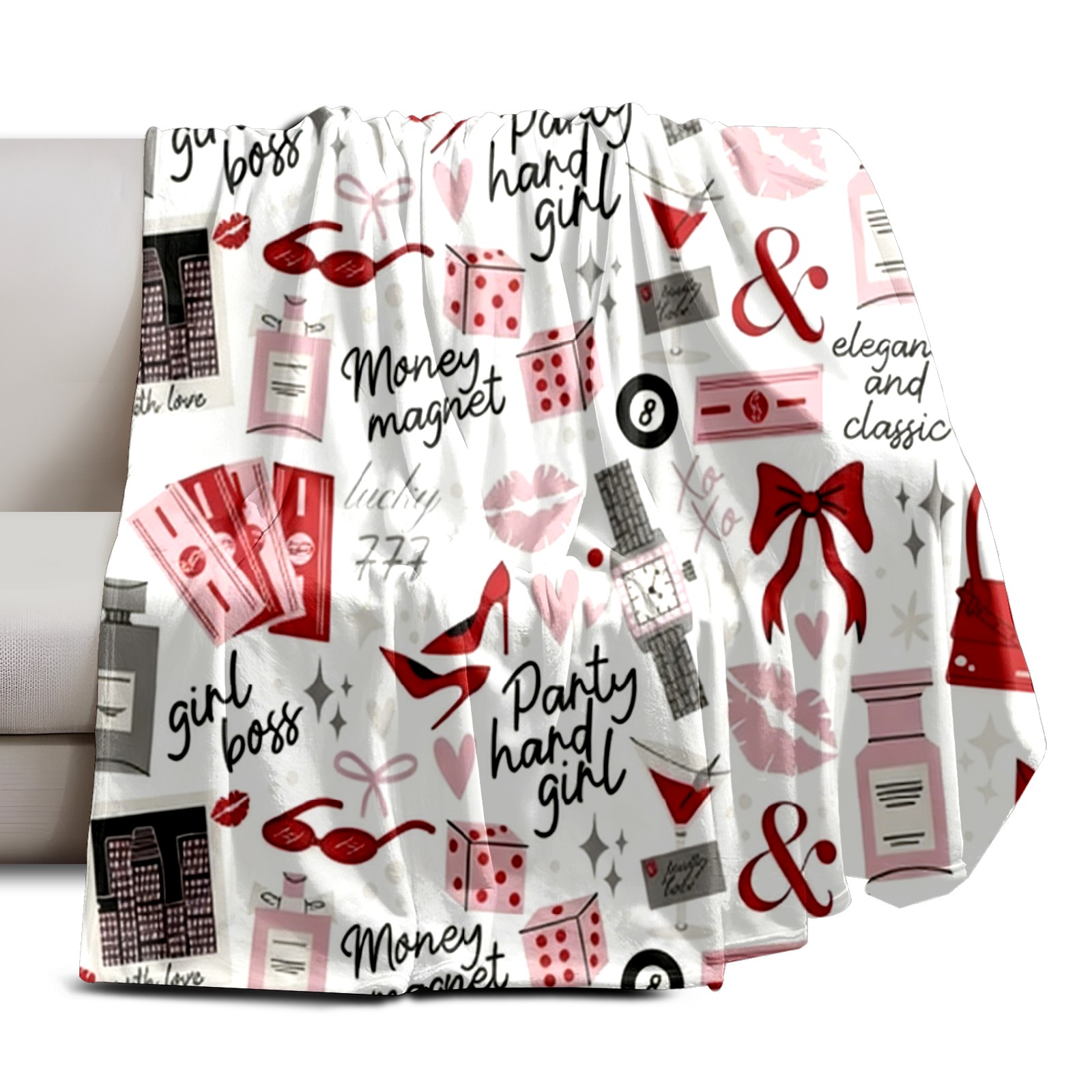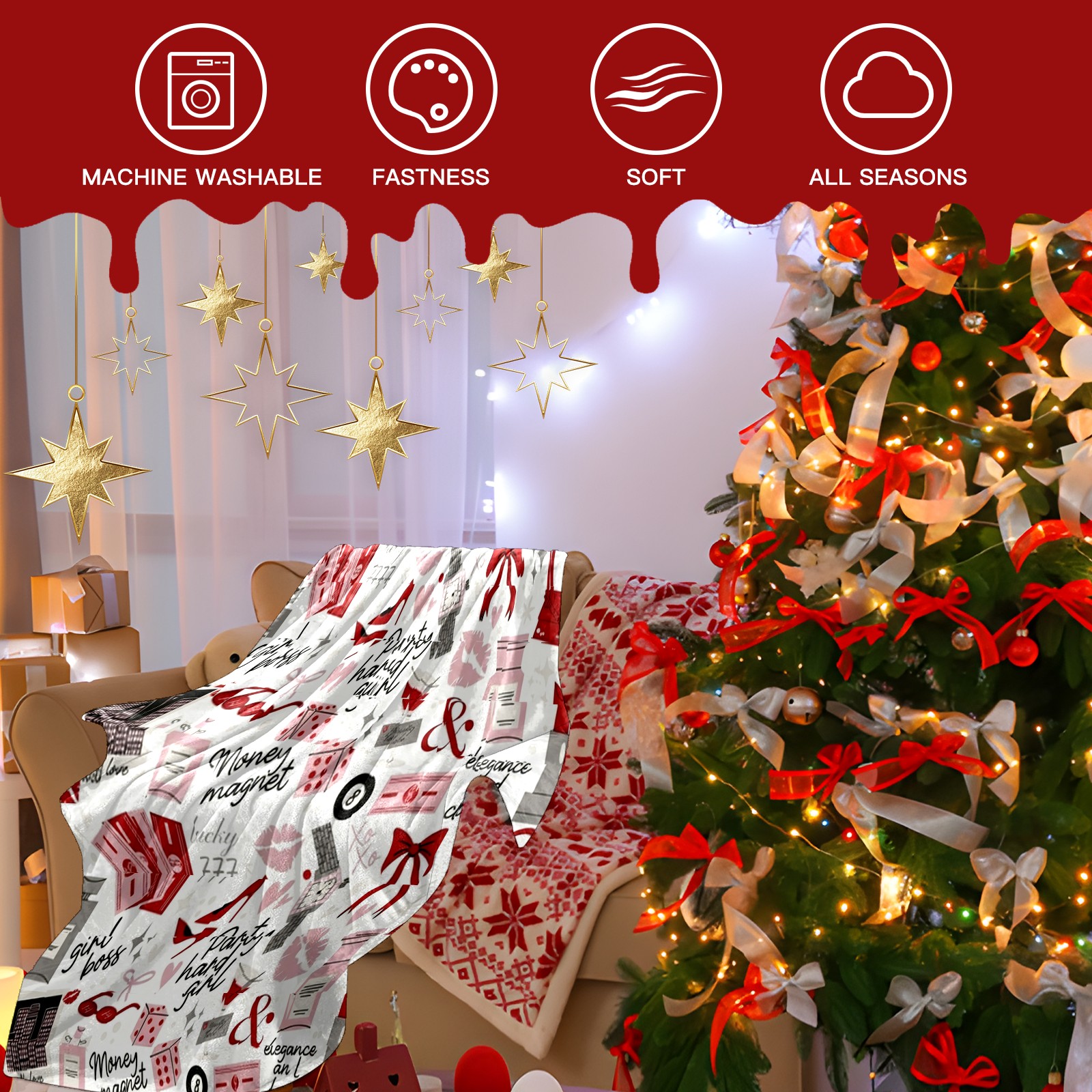 Counullo Flannel Throw Blanket, Ultra Soft Anti-Pilling Blanket for Couch & Bed, Lightweight Cozy Blanket for Travel, Home, Camping Gift - (30" x 39"), Playful Text Red