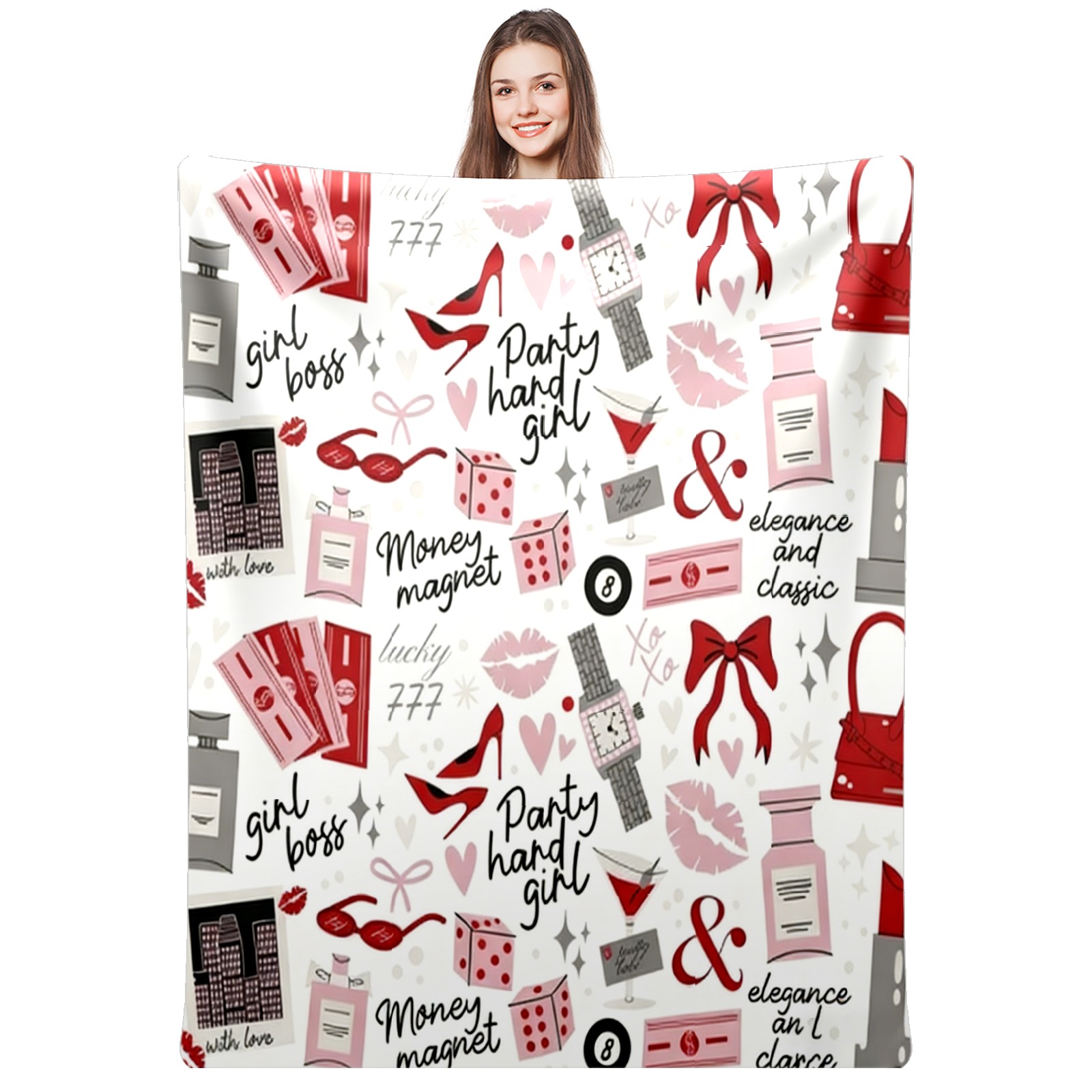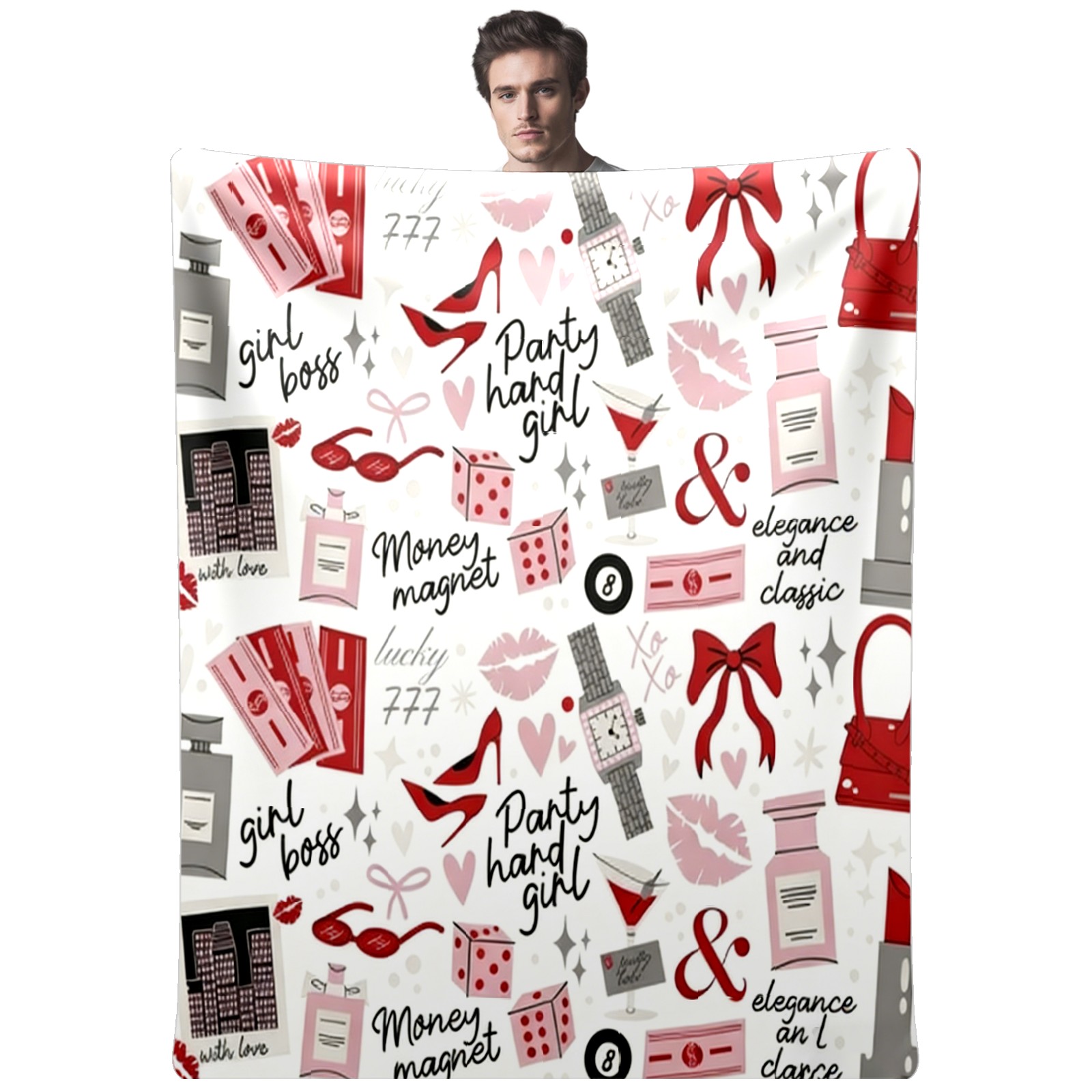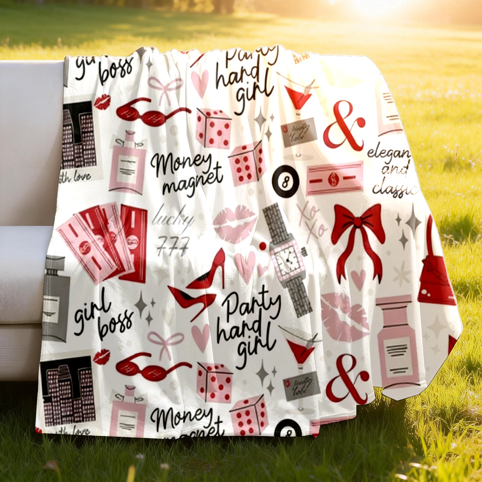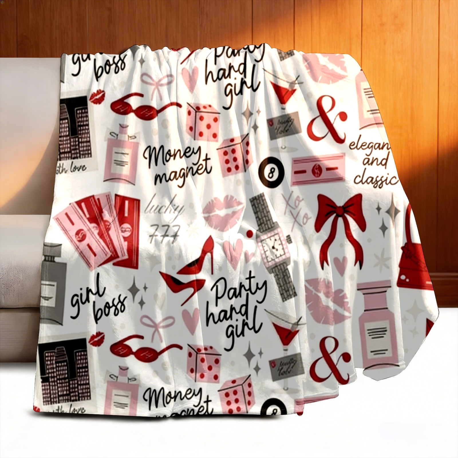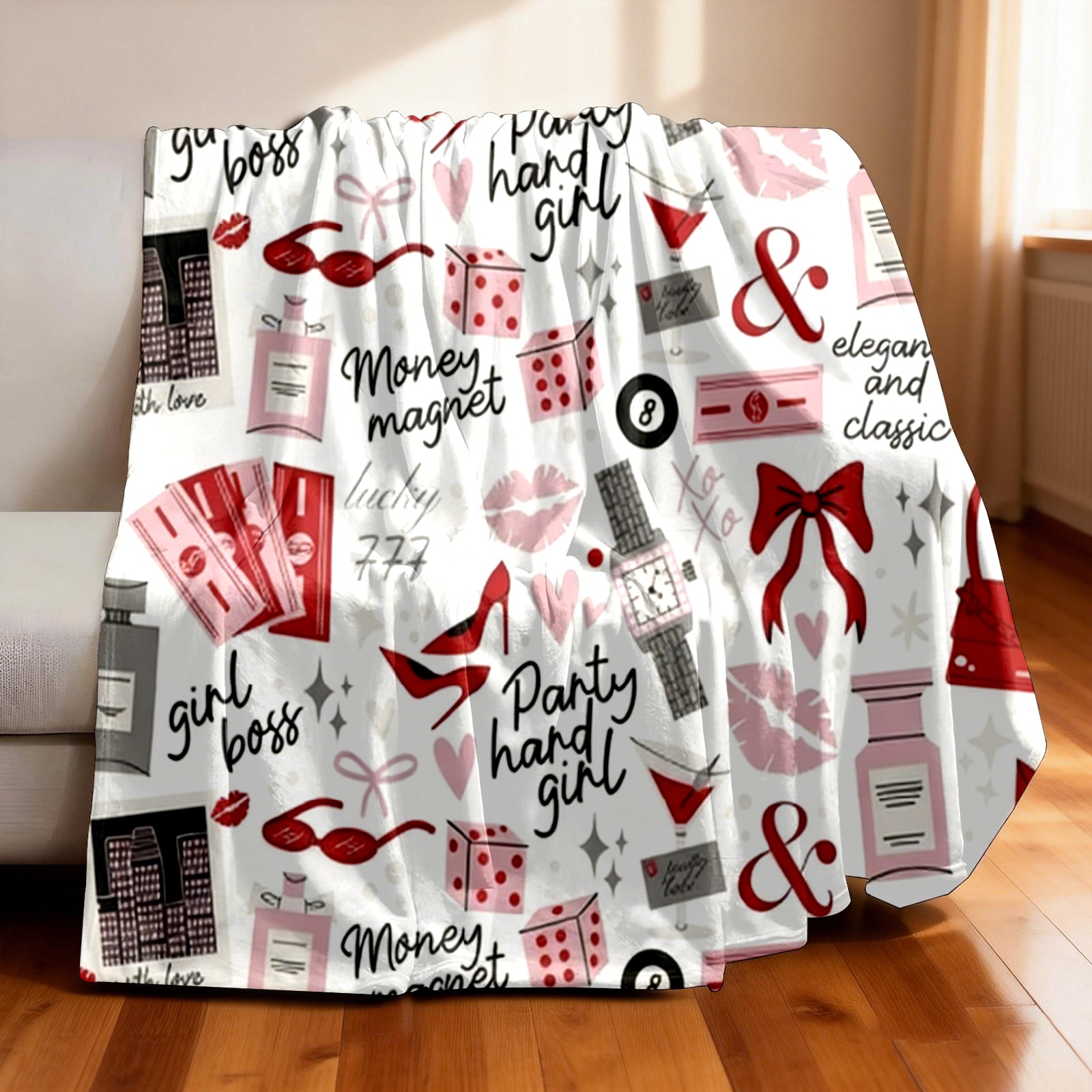 Counullo Flannel Throw Blanket, Ultra Soft Anti-Pilling Blanket for Couch & Bed, Lightweight Cozy Blanket for Travel, Home, Camping Gift - (30" x 39"), Playful Text Red