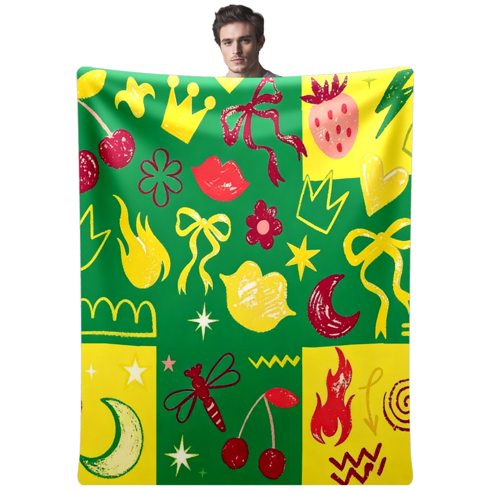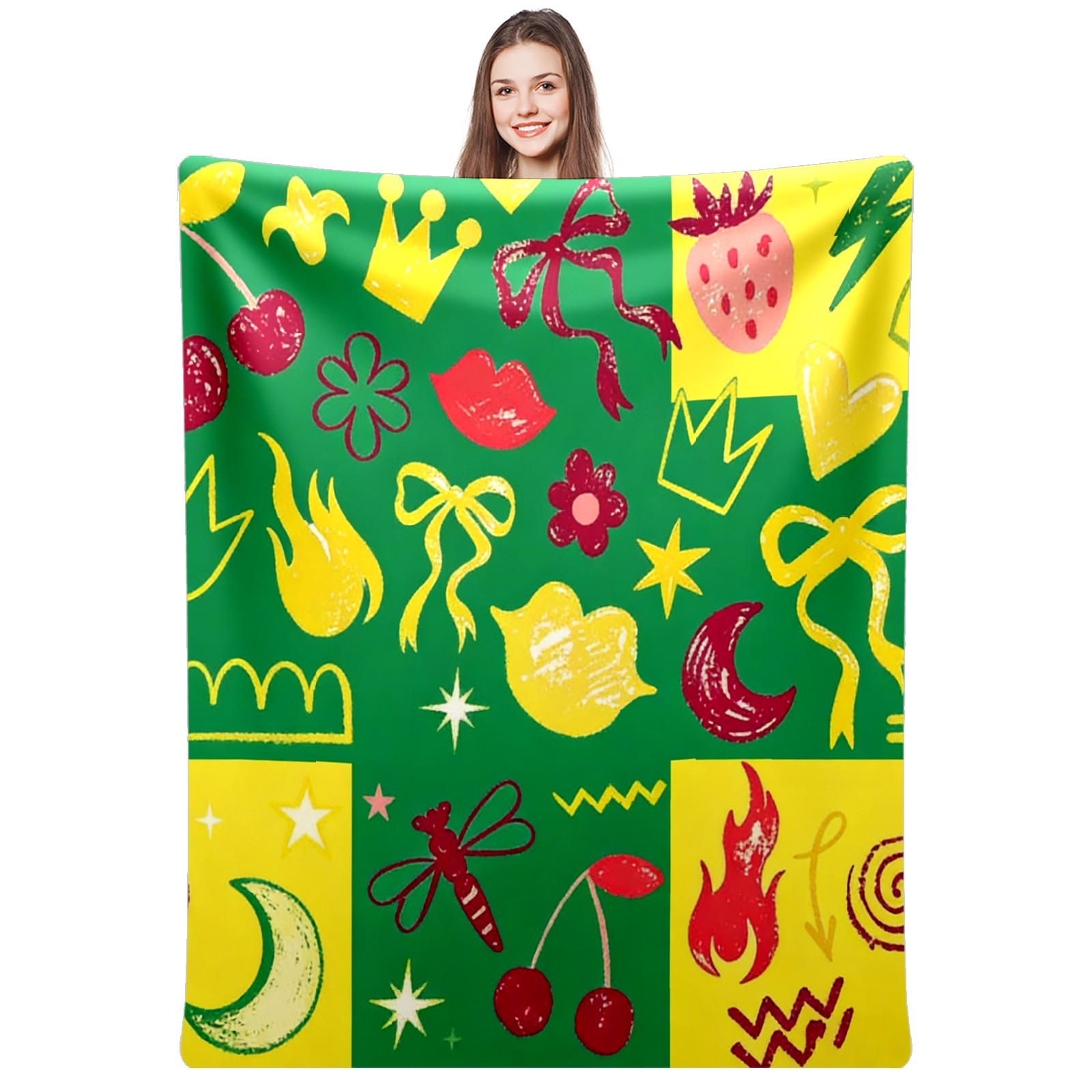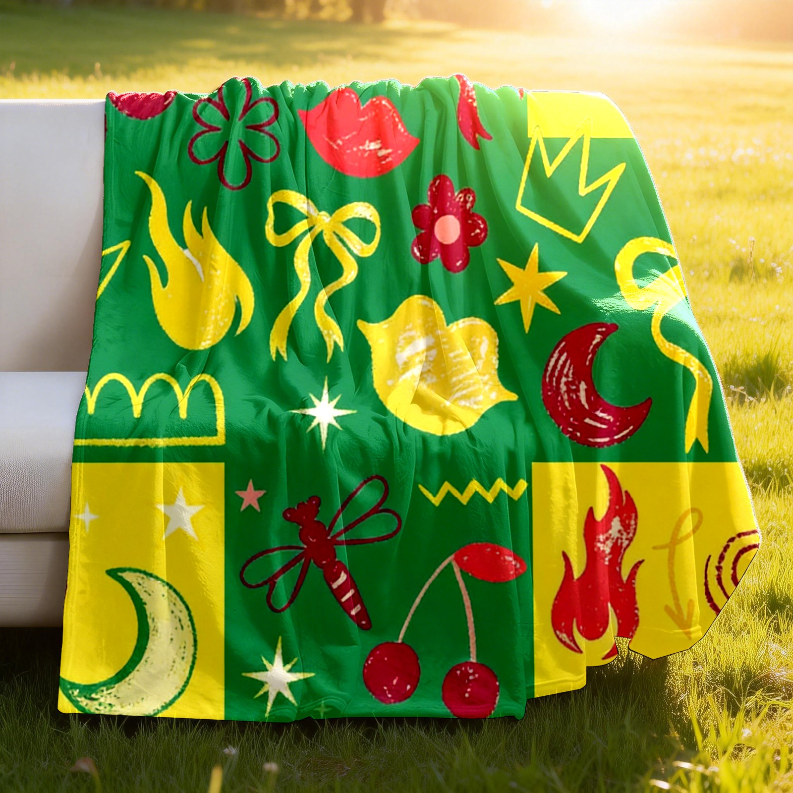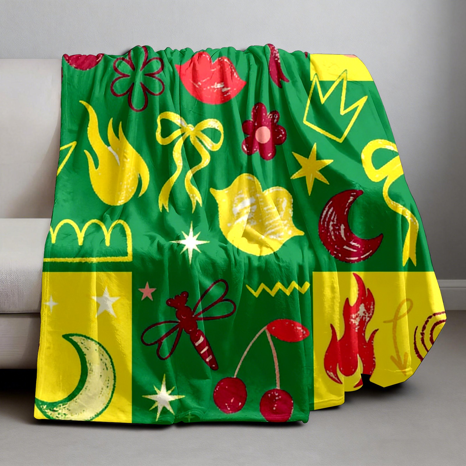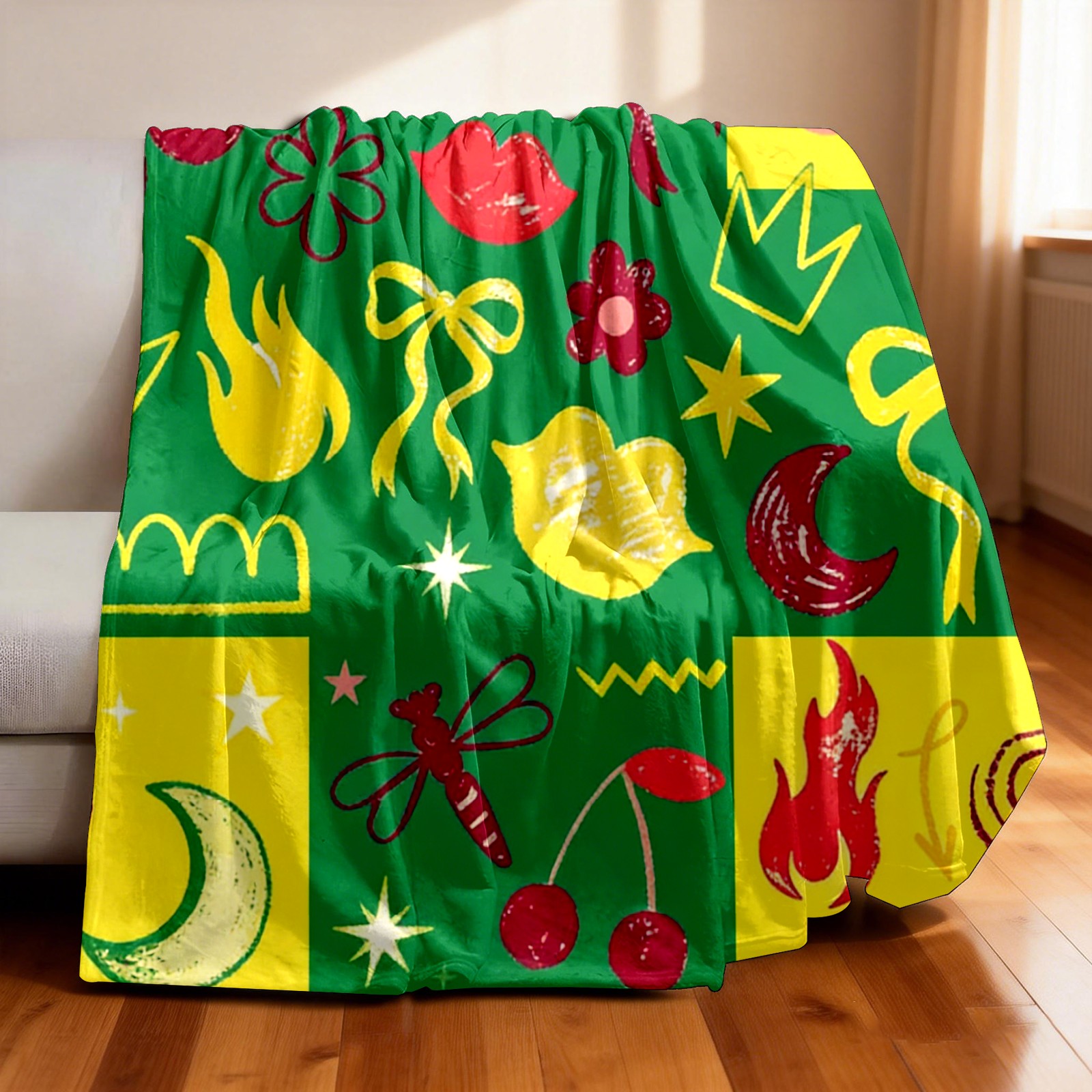 Counullo Flannel Throw Blanket, Ultra Soft Anti-Pilling Blanket for Couch & Bed, Lightweight Cozy Blanket for Travel, Home, Camping Gift - (30" x 39"), Dynamic Graffiti Green