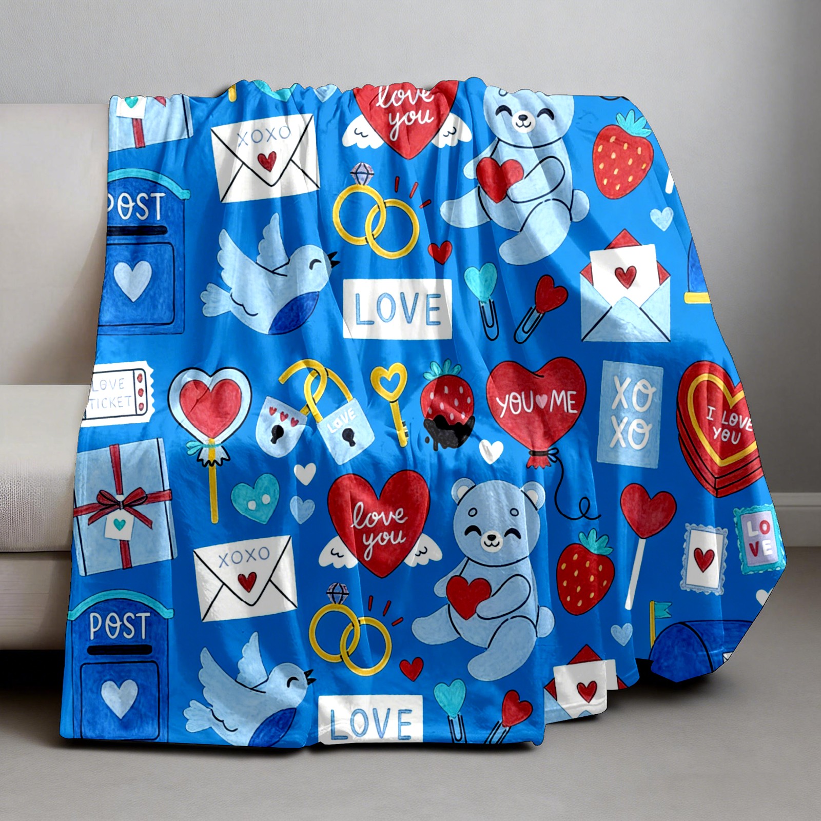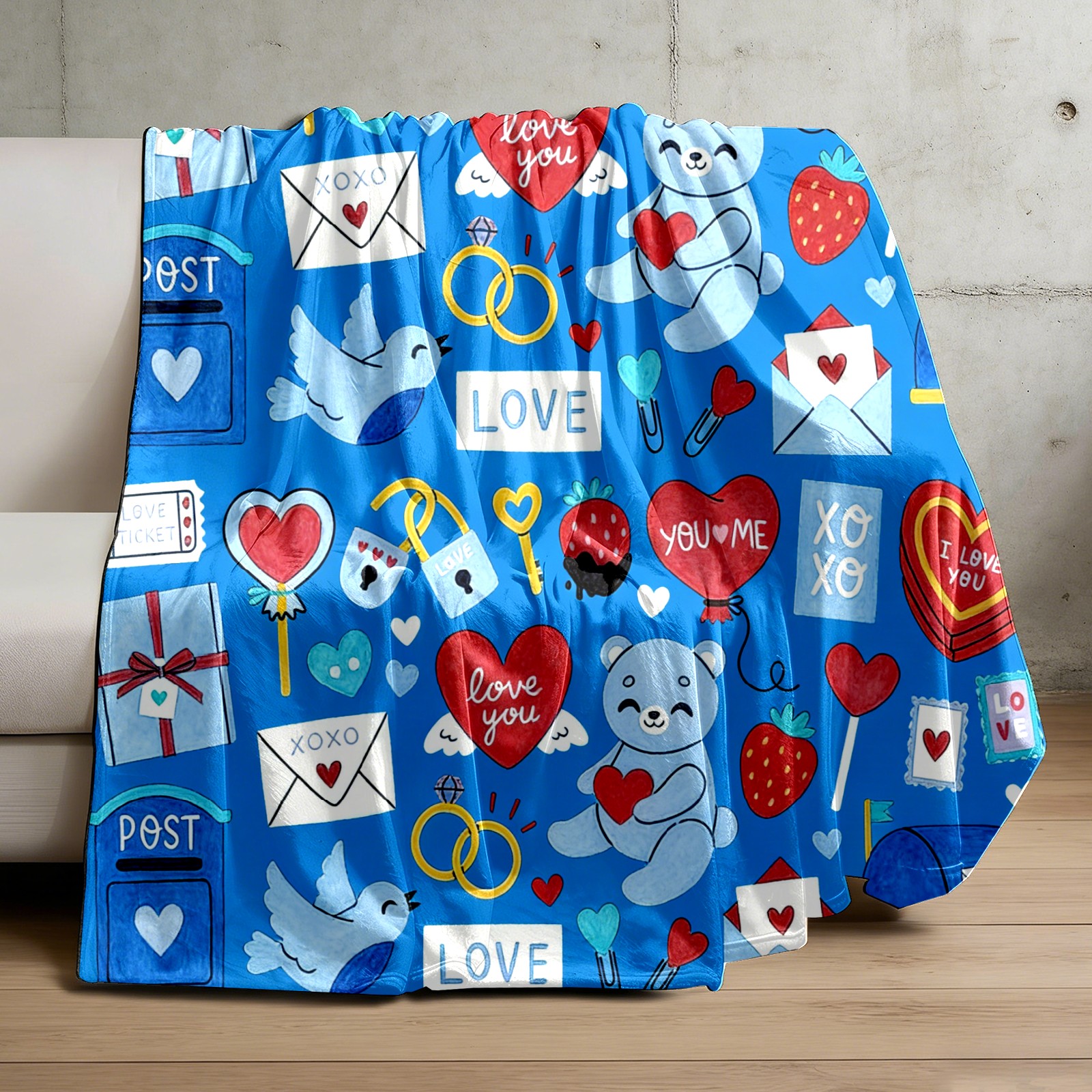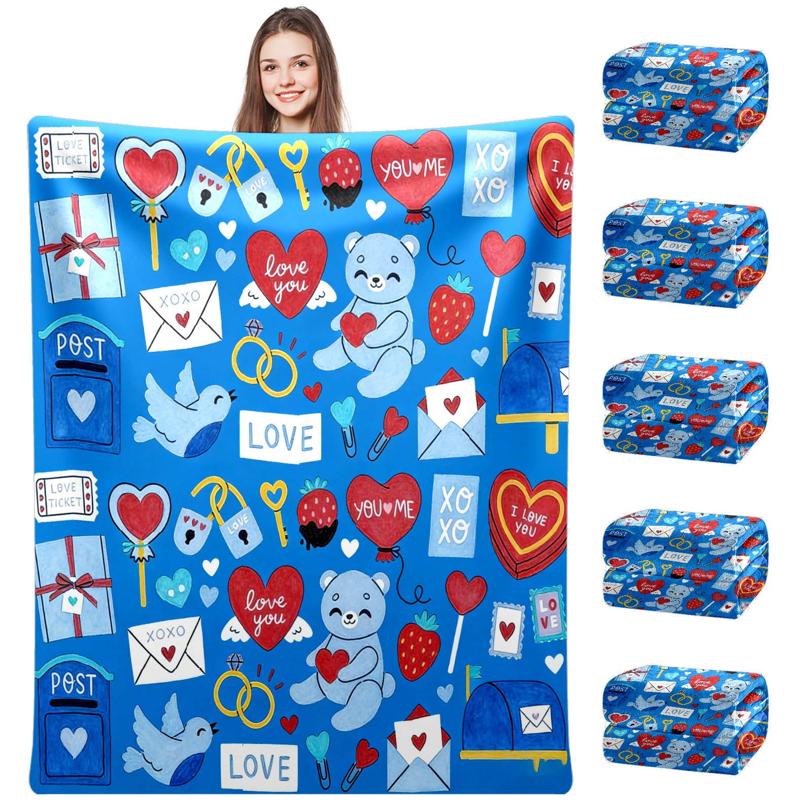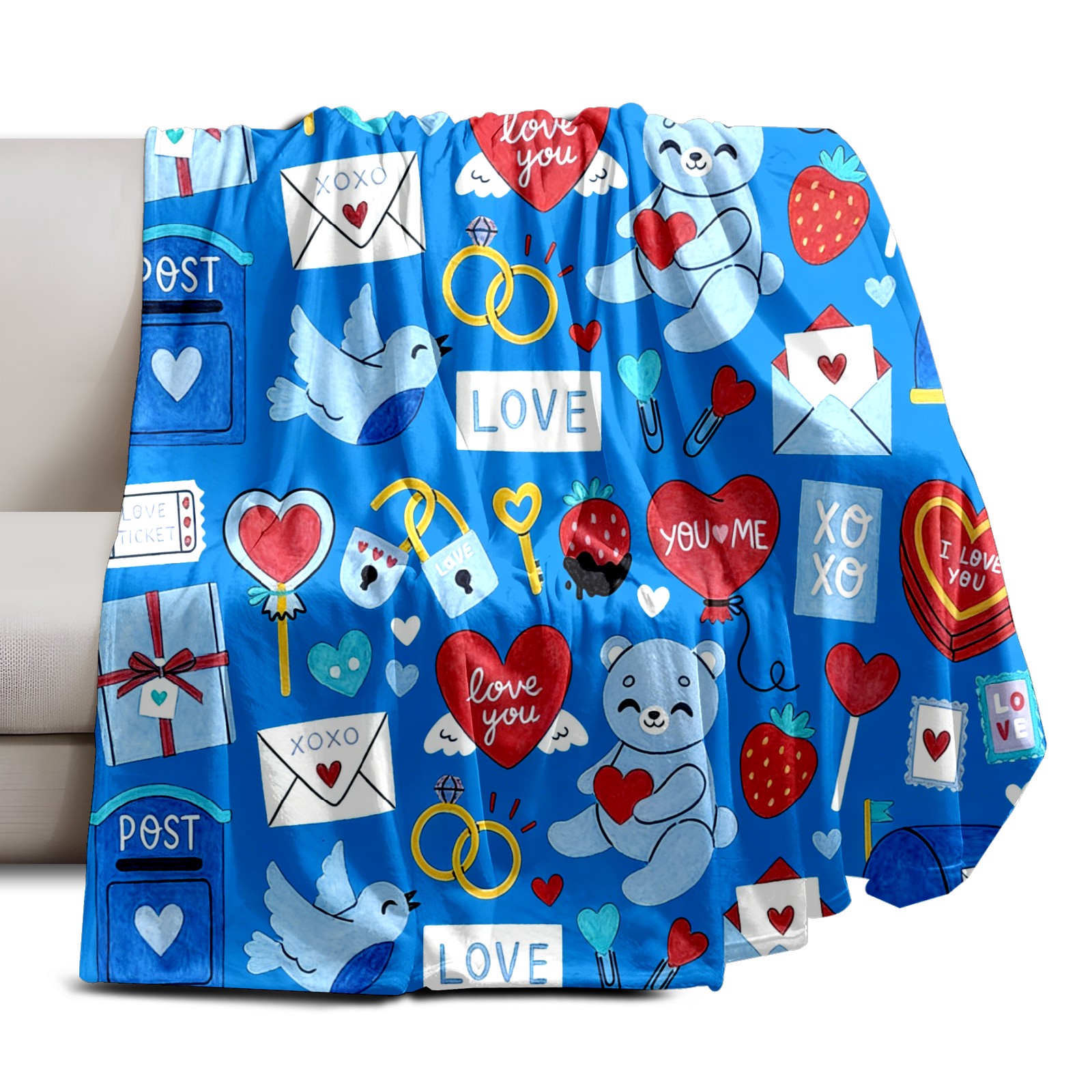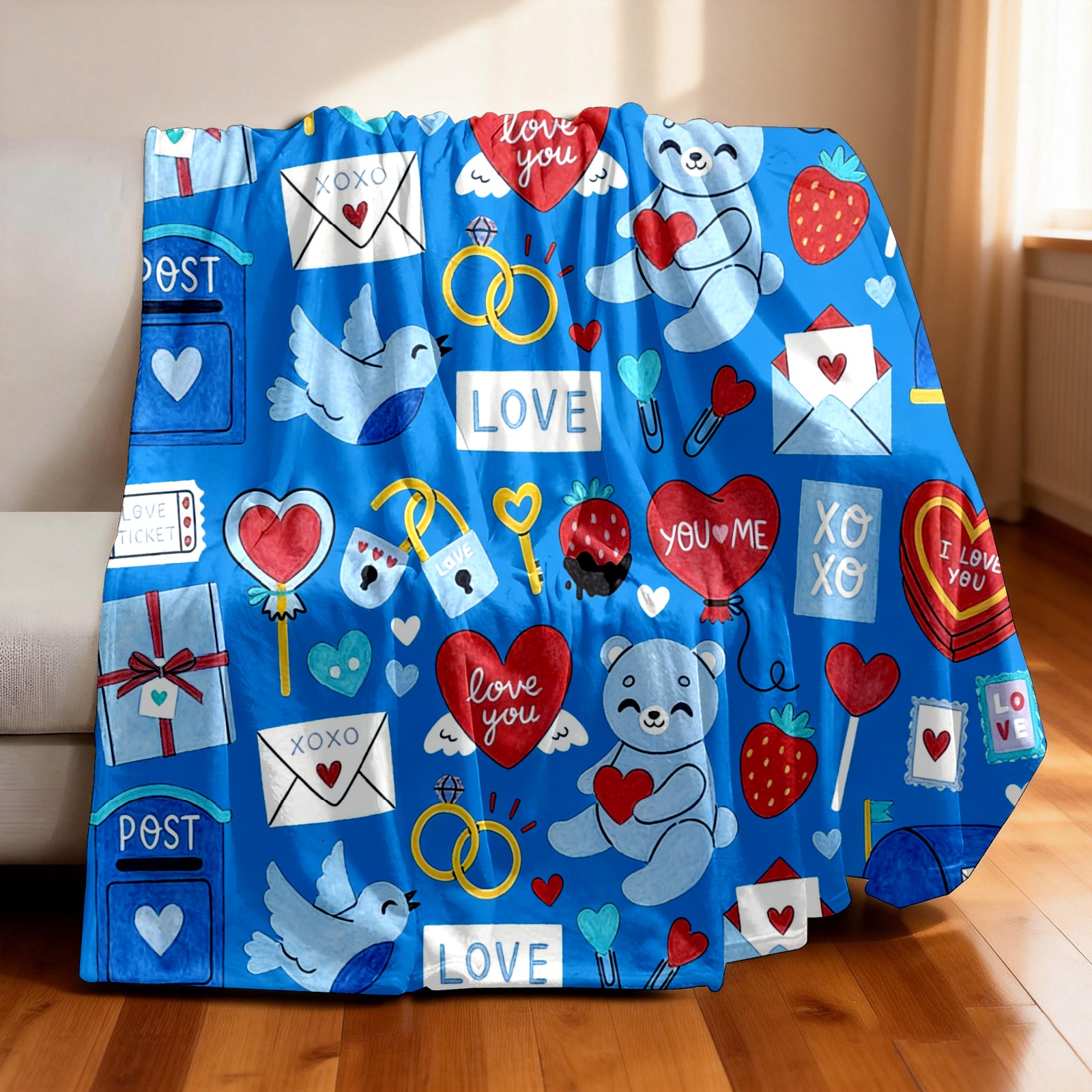Counullo Flannel Throw Blanket, Ultra Soft Anti-Pilling Blanket for Couch & Bed, Lightweight Cozy Blanket for Travel, Home, Camping Gift - (30" x 39"), Heart Element Blue