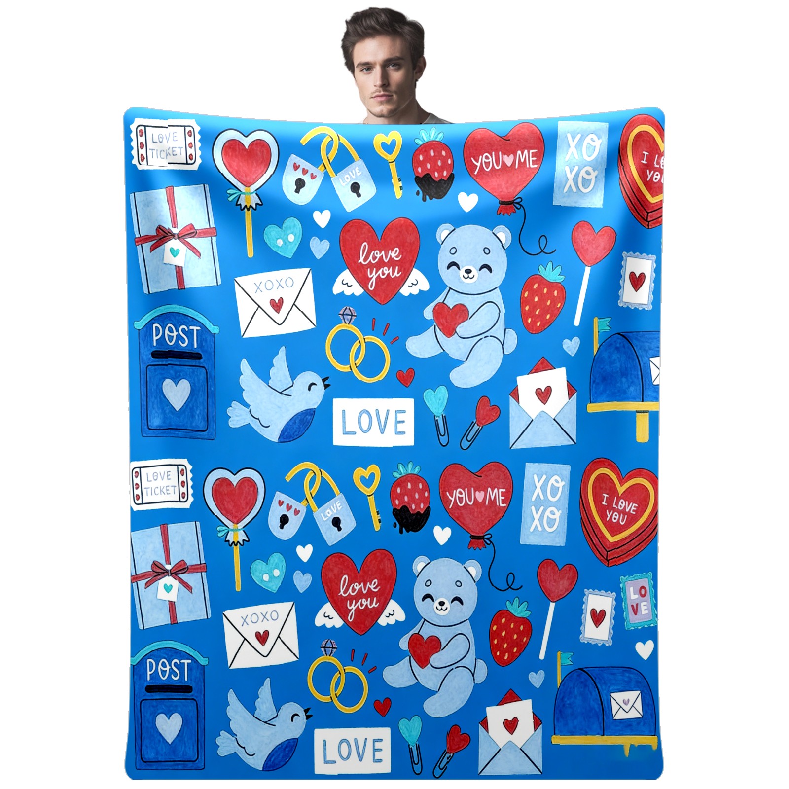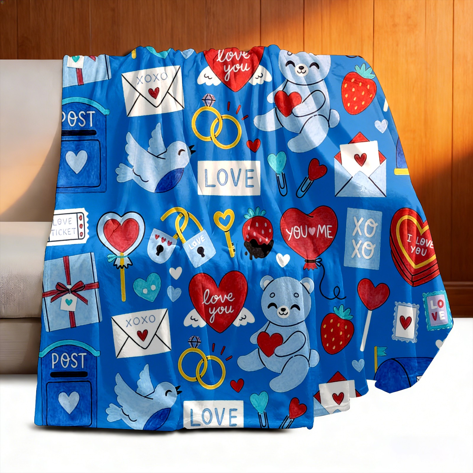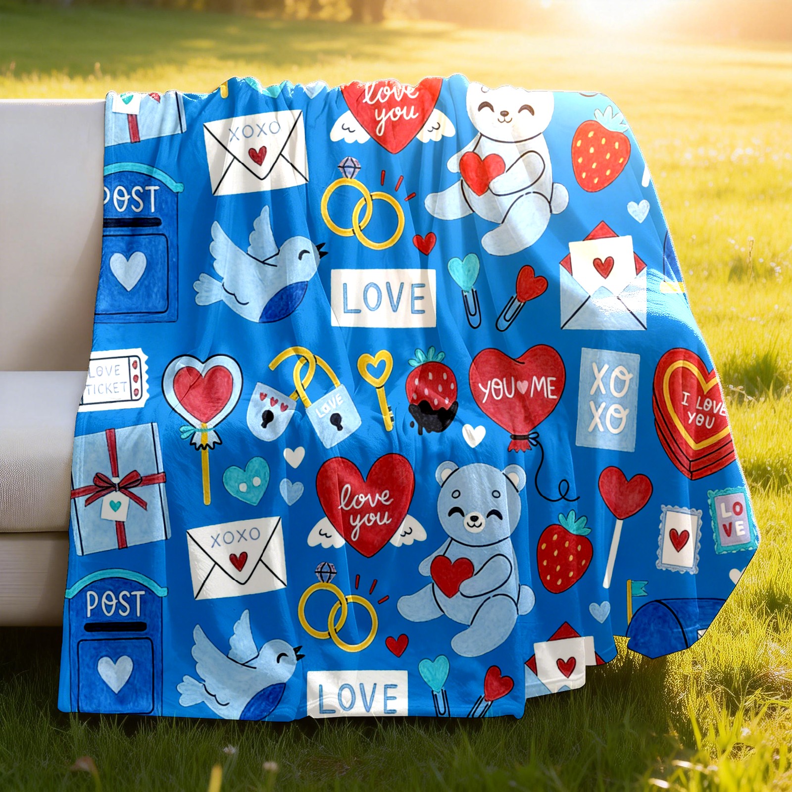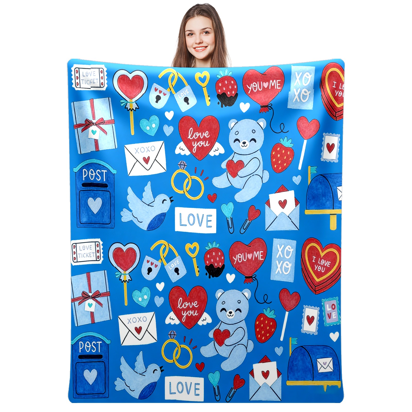 Counullo Flannel Throw Blanket, Ultra Soft Anti-Pilling Blanket for Couch & Bed, Lightweight Cozy Blanket for Travel, Home, Camping Gift - (30" x 39"), Heart Element Blue