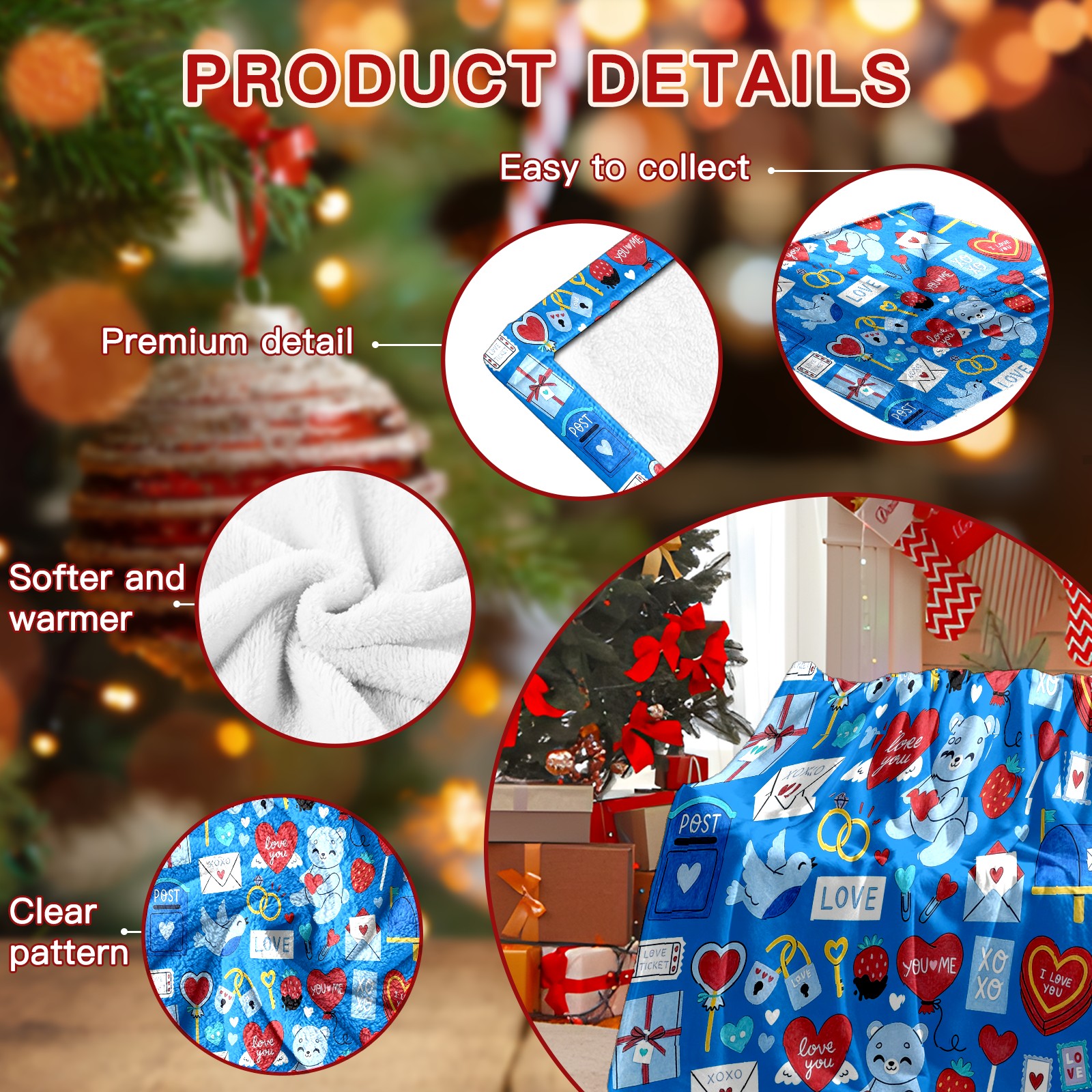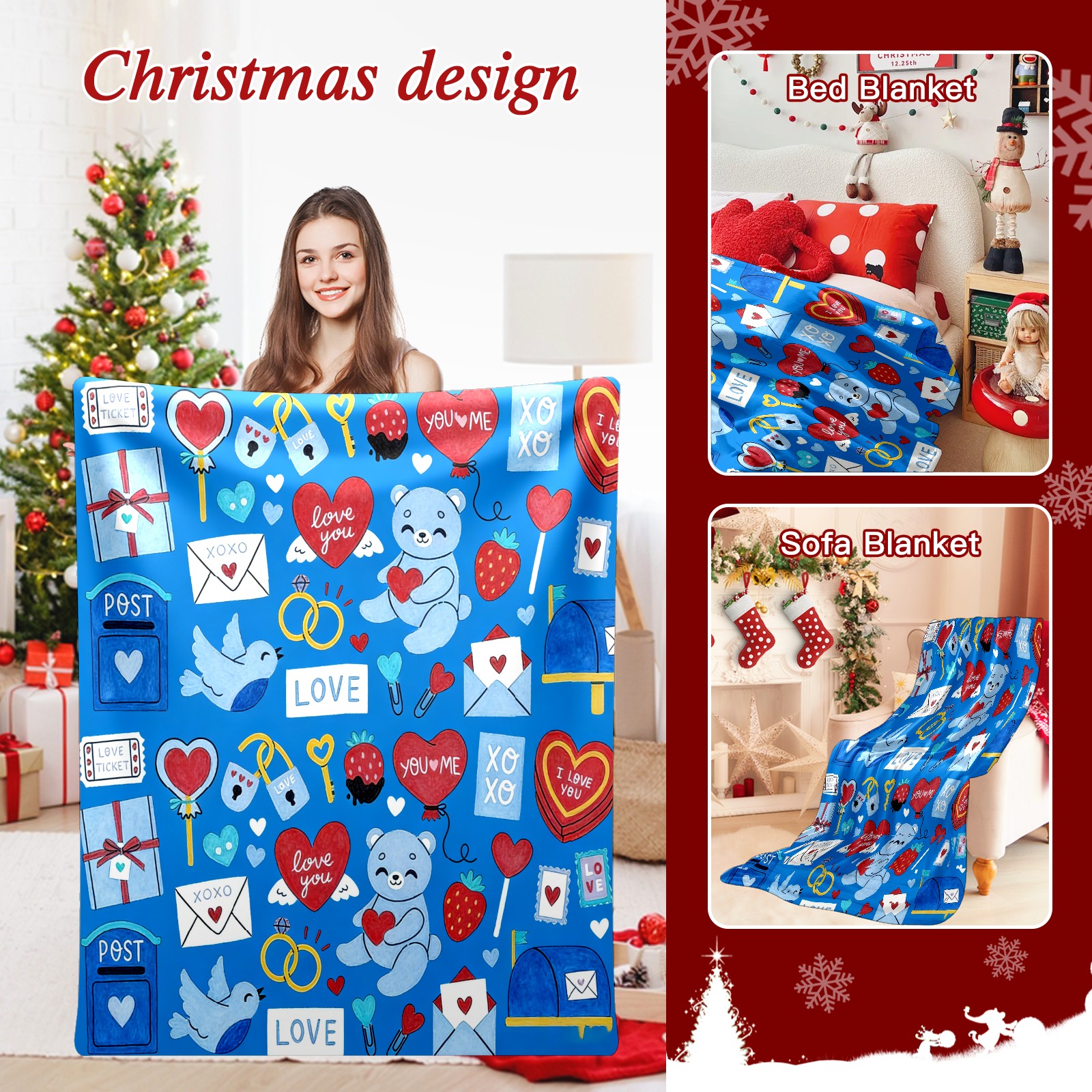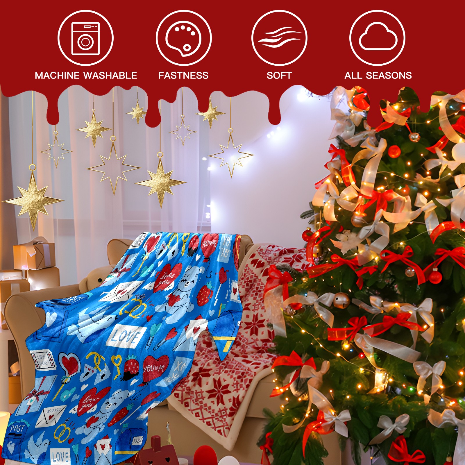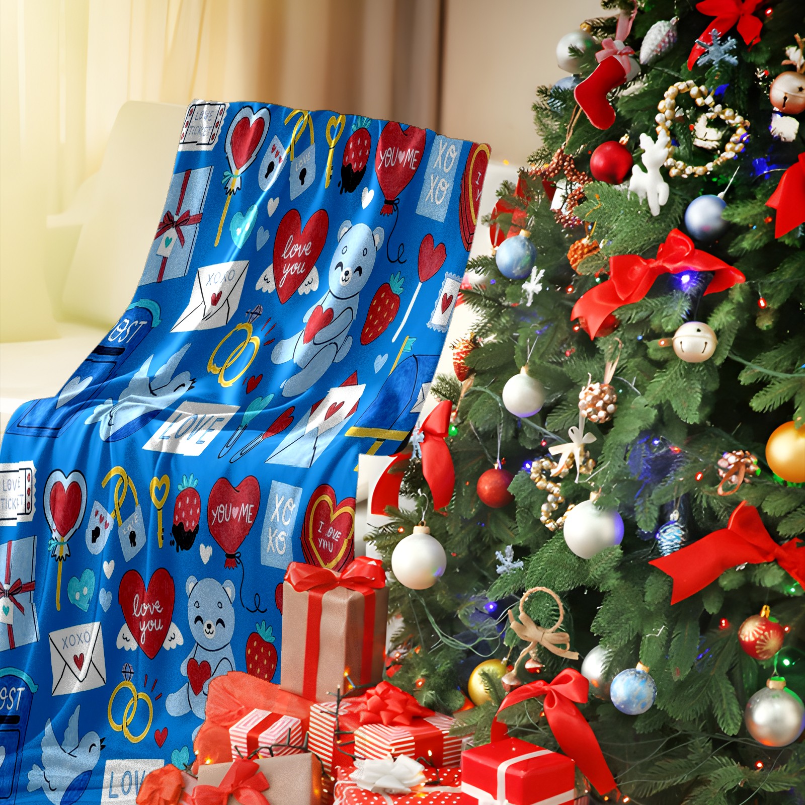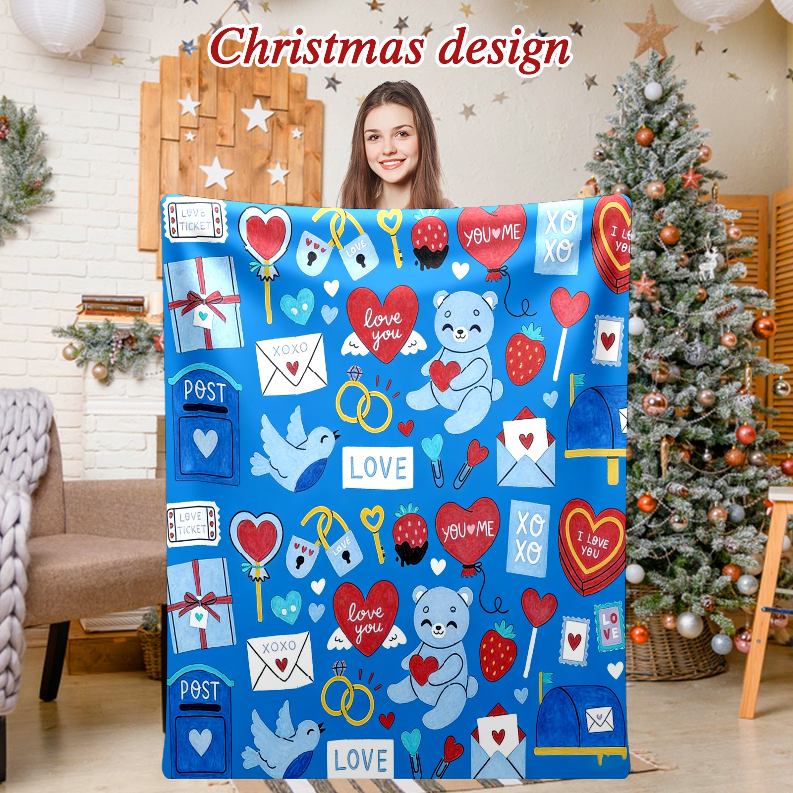 Counullo Flannel Throw Blanket, Ultra Soft Anti-Pilling Blanket for Couch & Bed, Lightweight Cozy Blanket for Travel, Home, Camping Gift - (30" x 39"), Heart Element Blue