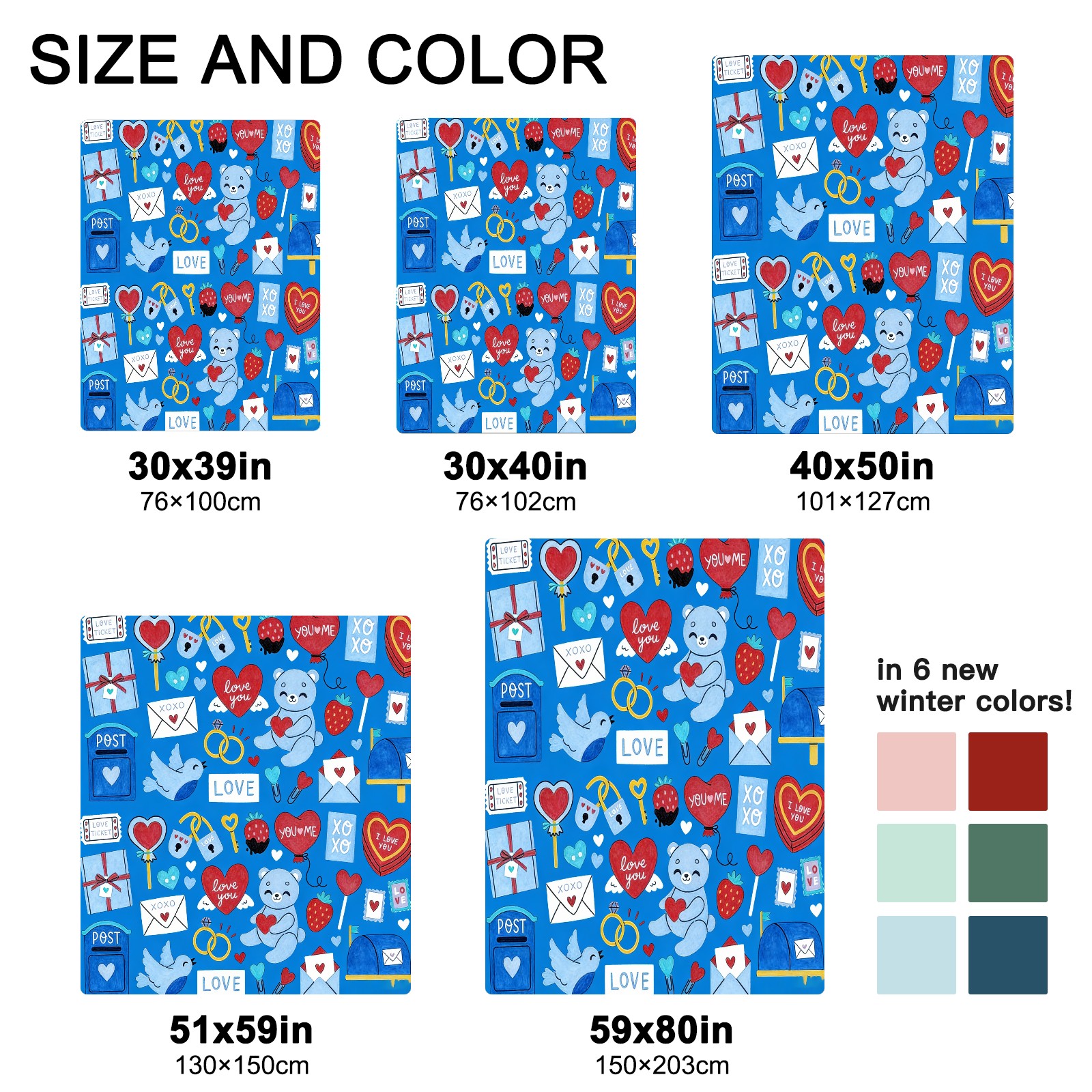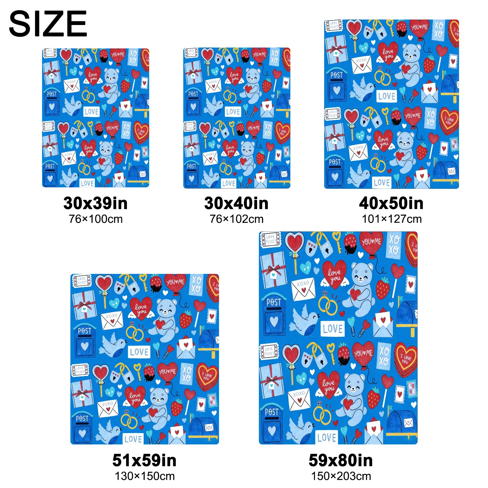 <strong></strong><p><strong>【Size】</strong>5 sizes. 30x39in/76x100cm; 30x40in/76x102cm; 40x50in/101x127cm; 51x59in /130x150cm; 59x80in/150x203cm <strong>【Product performance】</strong> &nbsp;</p><p>❤Skin-Friendly &amp; Breathable&nbsp;</p><p>❤Lightweight &amp; Folded tightly&nbsp;</p><p>❤Anti-pilling &amp; Anti-wrinkle &amp; Anti-allergy&nbsp;</p><p>❤Baby Sleep, Travel, Sofa, Nap Blanket , Bed Sheet</p>