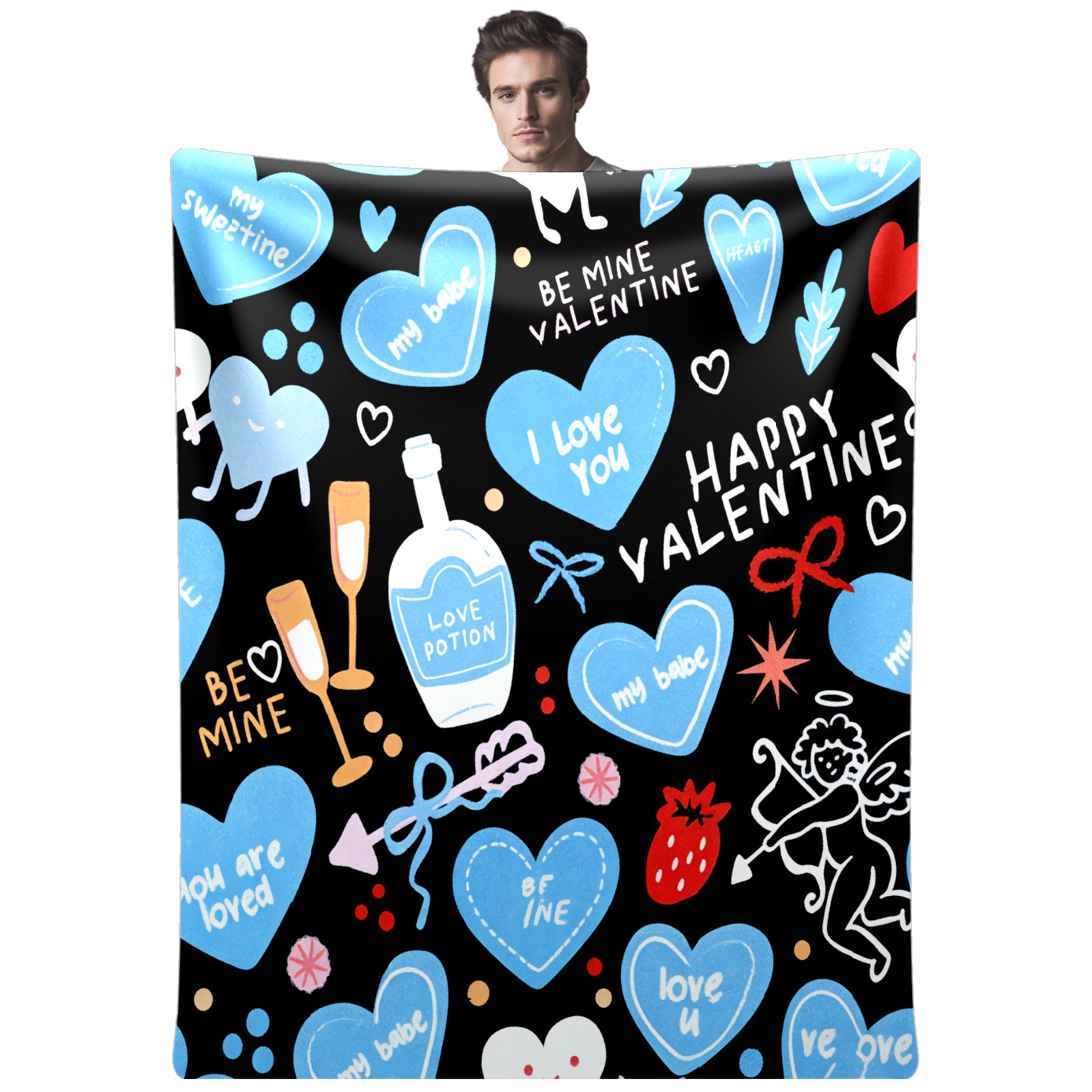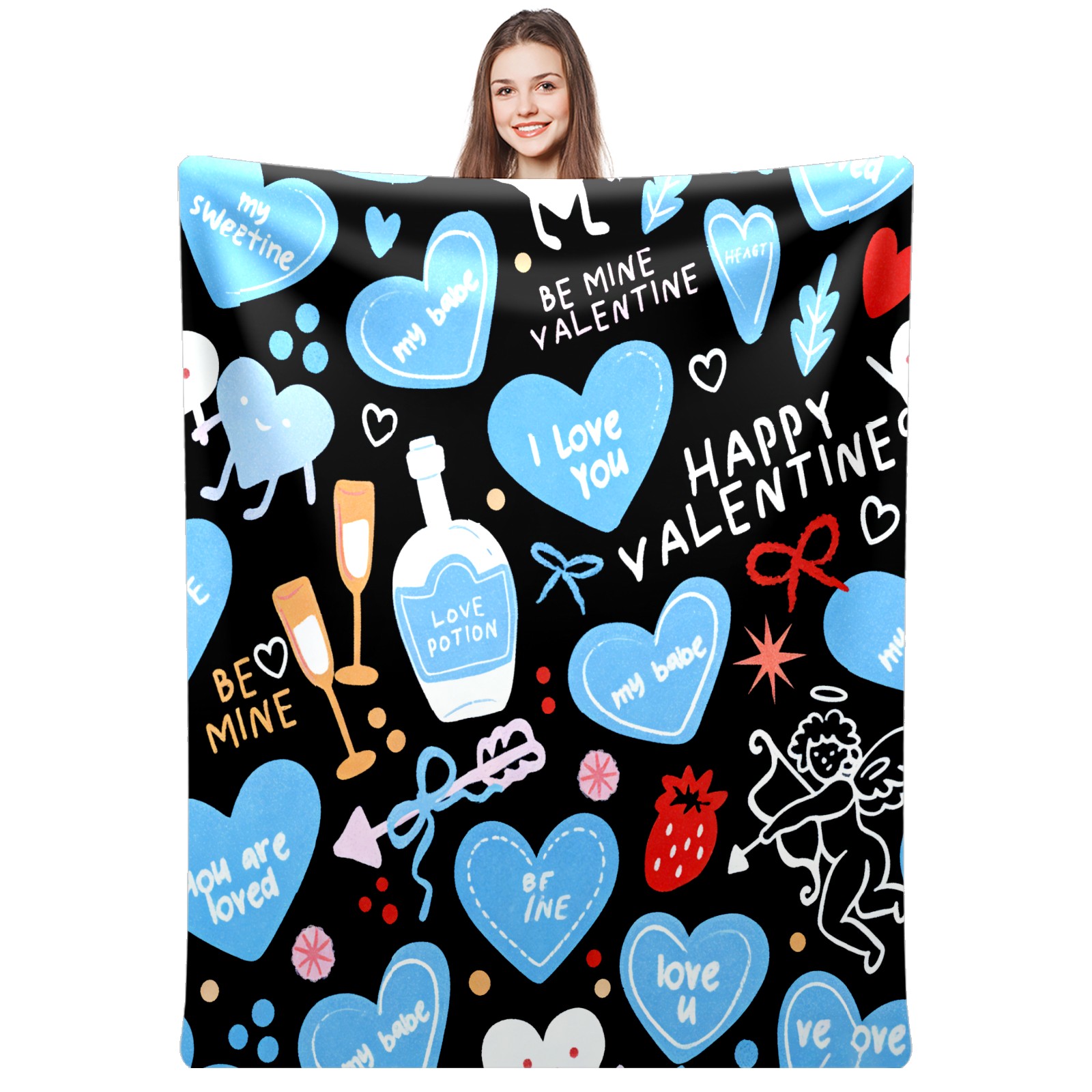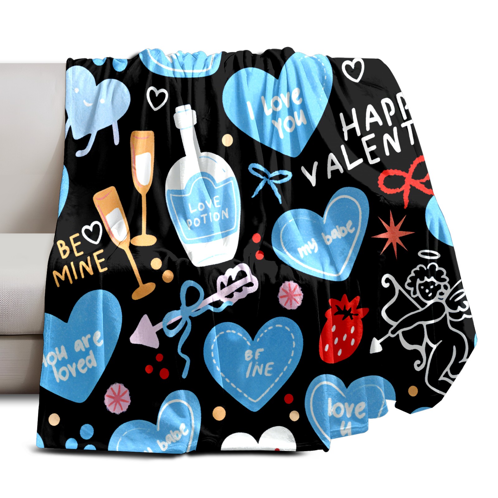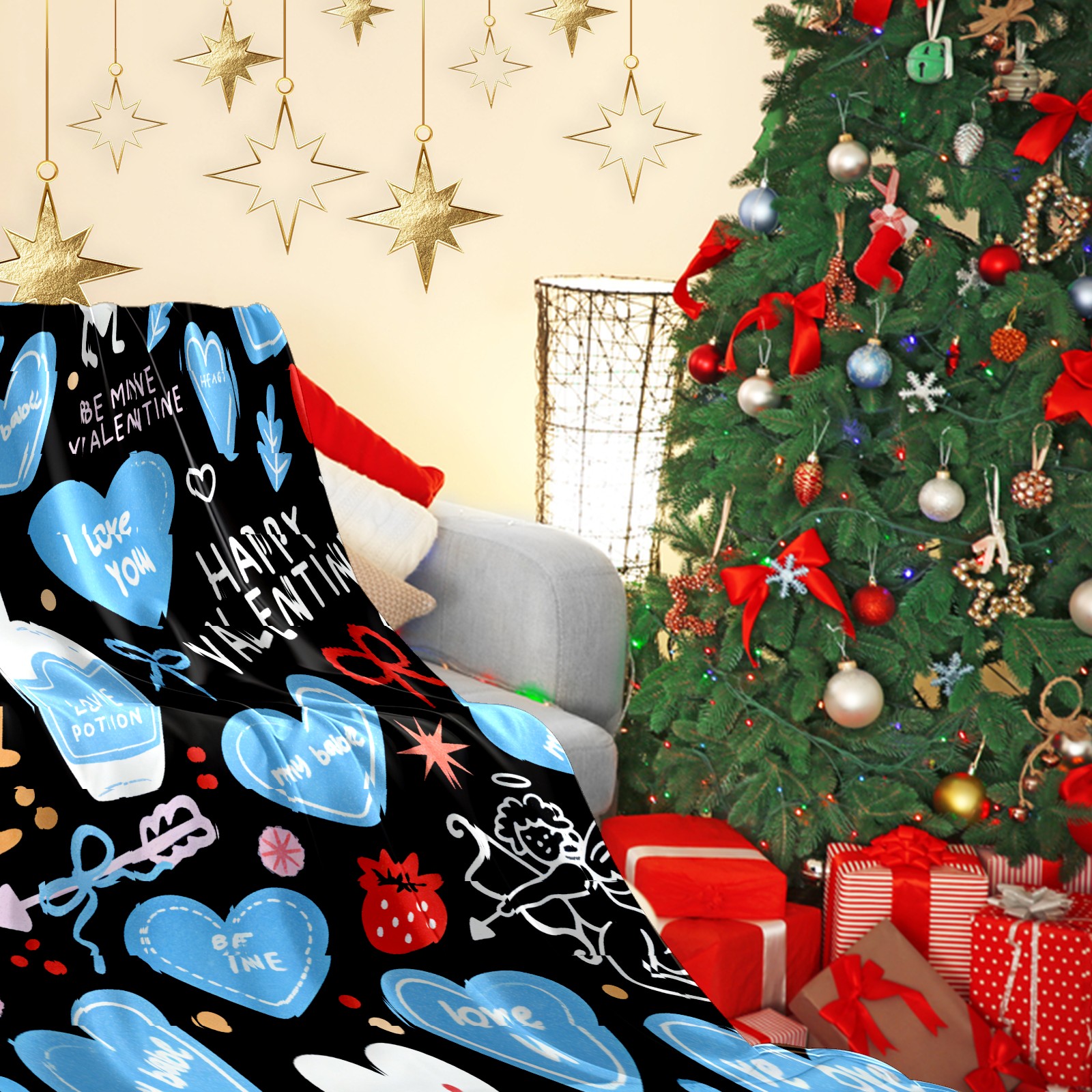 Counullo Flannel Throw Blanket, Ultra Soft Anti-Pilling Blanket for Couch & Bed, Lightweight Cozy Blanket for Travel, Home, Camping Gift - (30" x 39"), Deep Heart Black