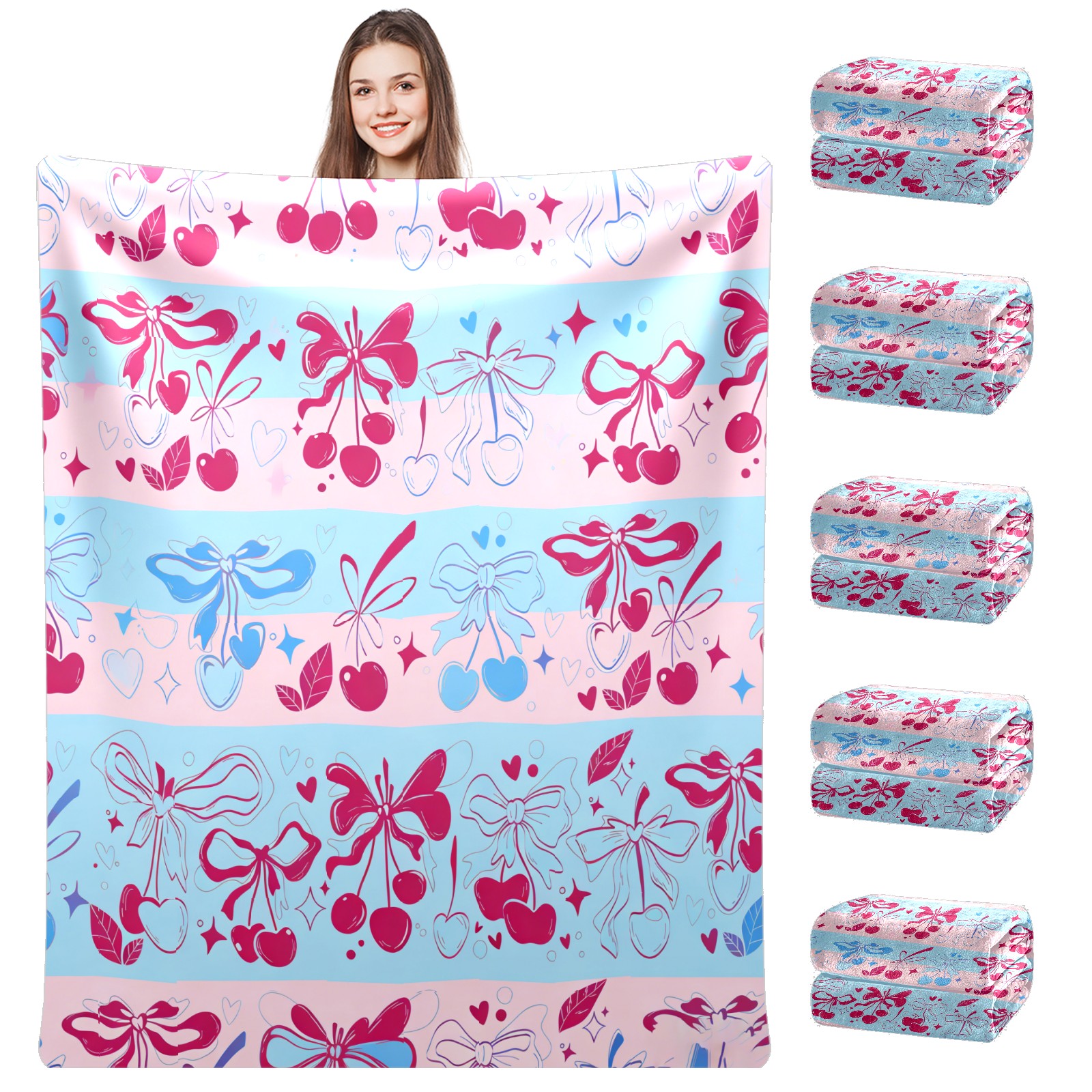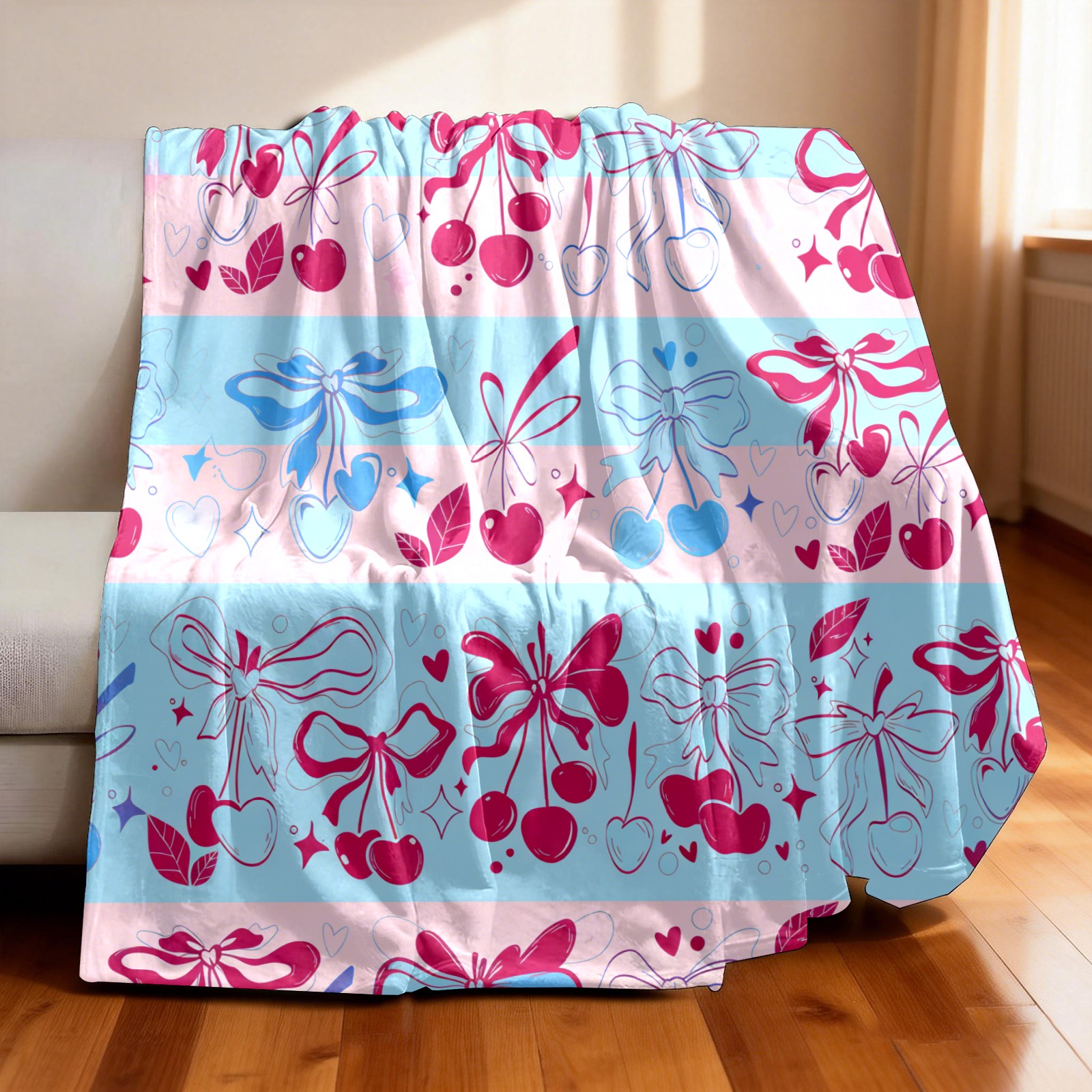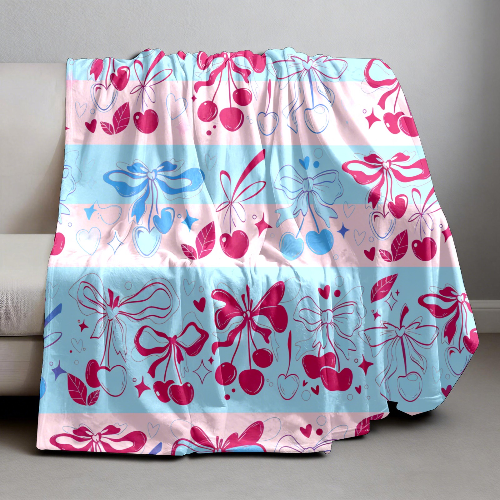 Counullo Flannel Throw Blanket, Ultra Soft Anti-Pilling Blanket for Couch & Bed, Lightweight Cozy Blanket for Travel, Home, Camping Gift - (30" x 39"), Romantic Bow Pink