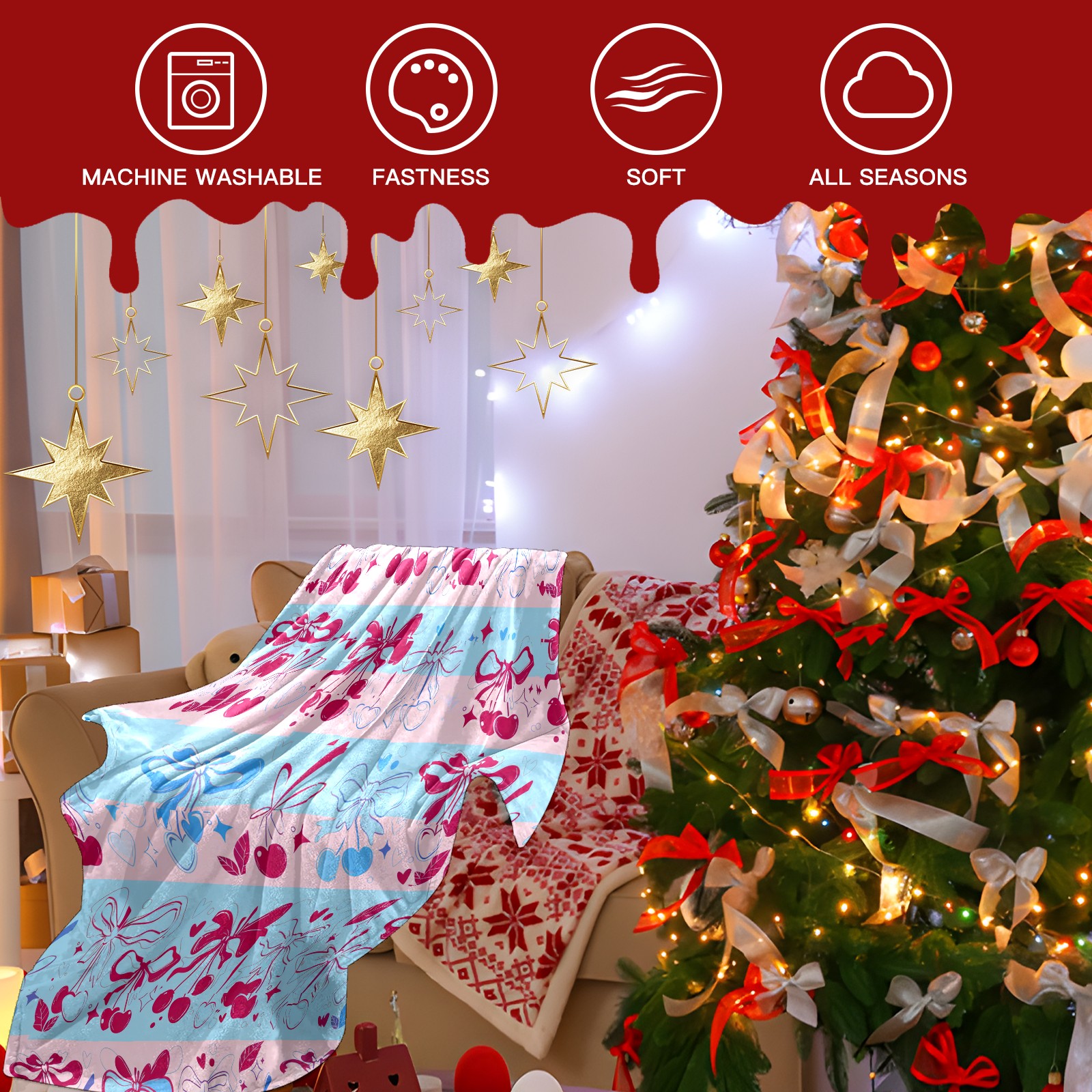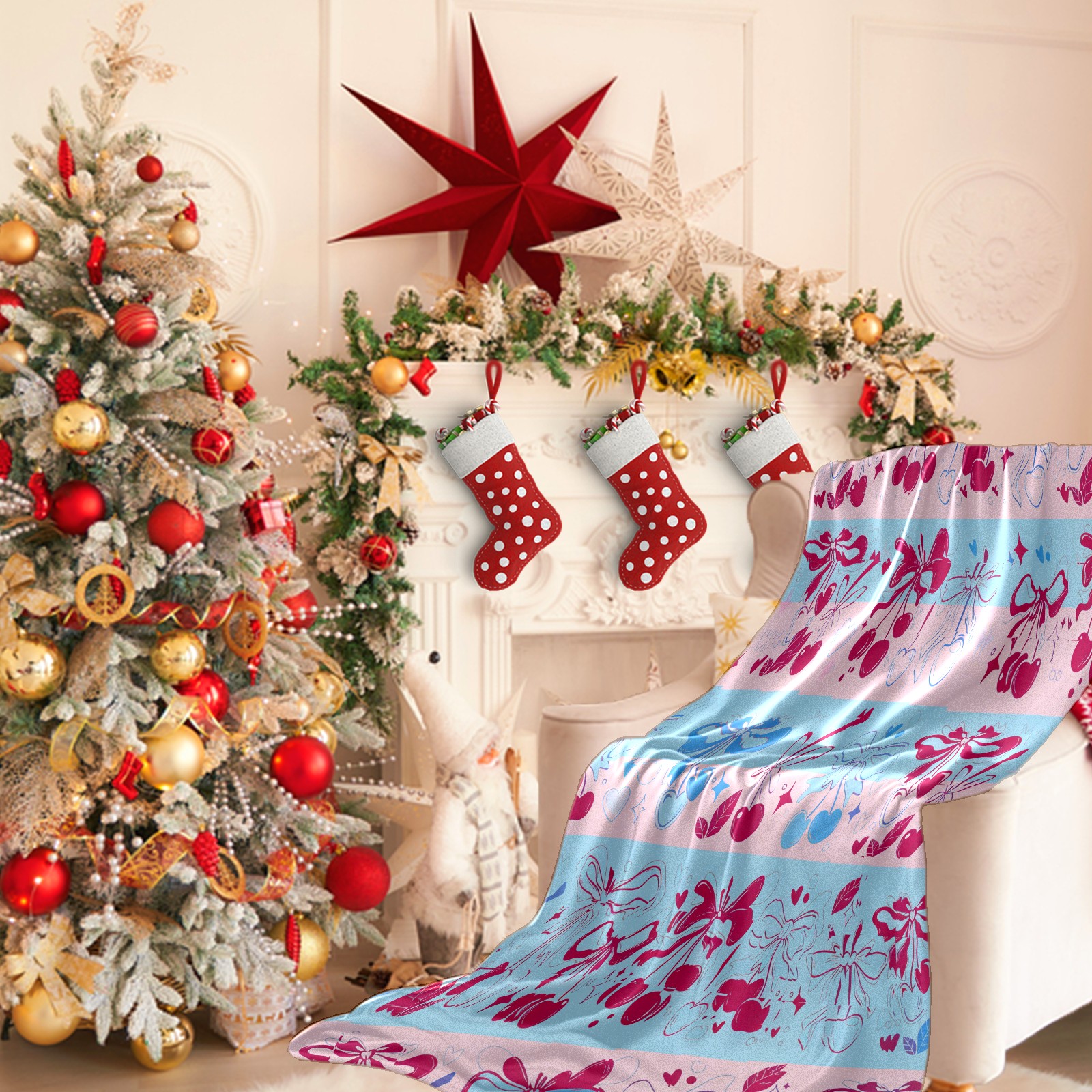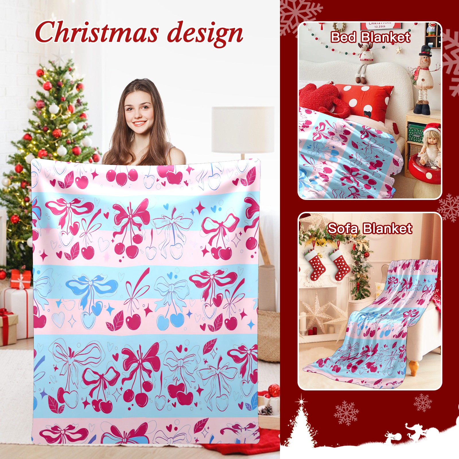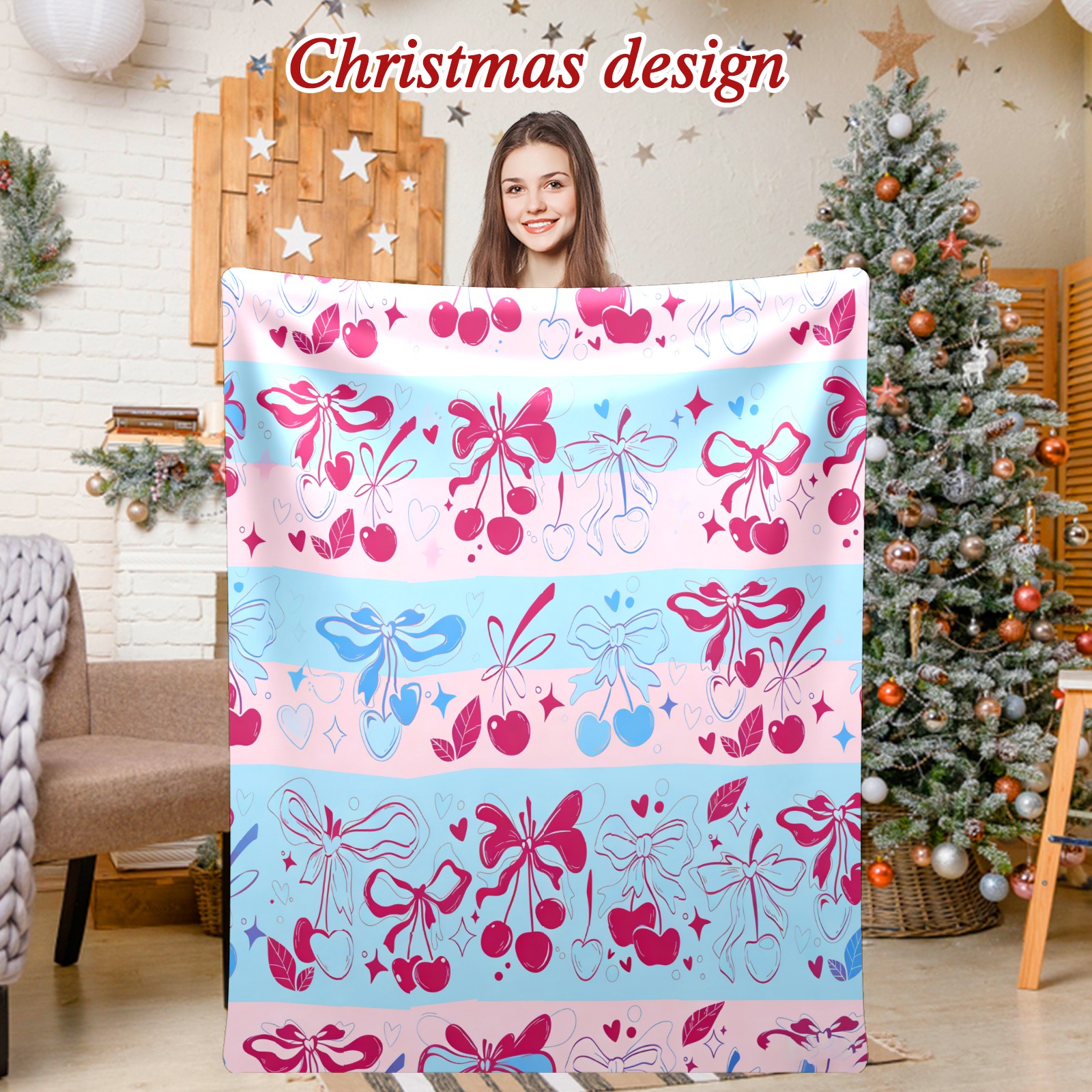 Counullo Flannel Throw Blanket, Ultra Soft Anti-Pilling Blanket for Couch & Bed, Lightweight Cozy Blanket for Travel, Home, Camping Gift - (30" x 39"), Romantic Bow Pink