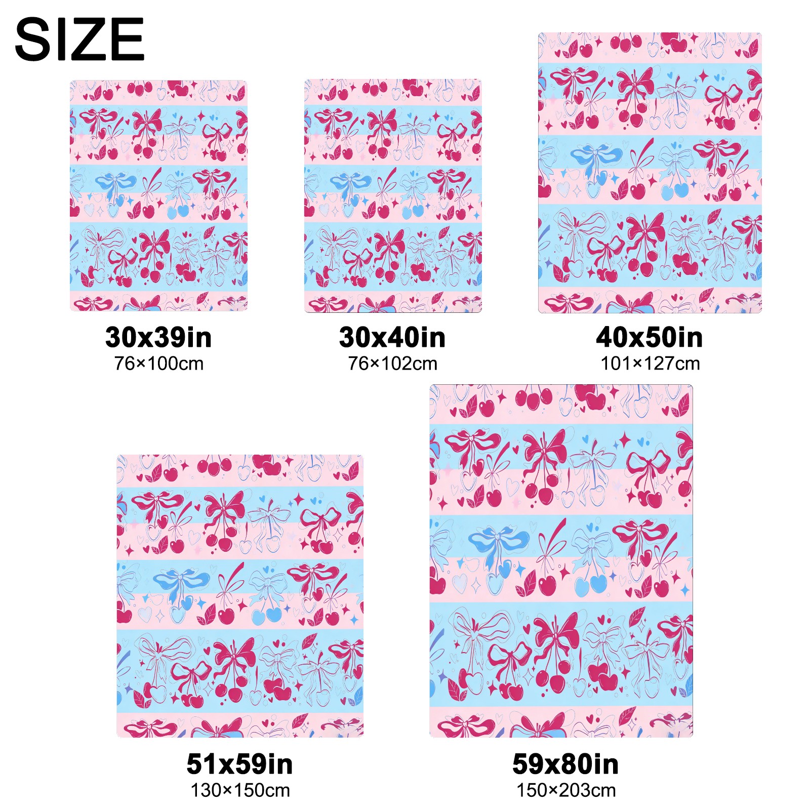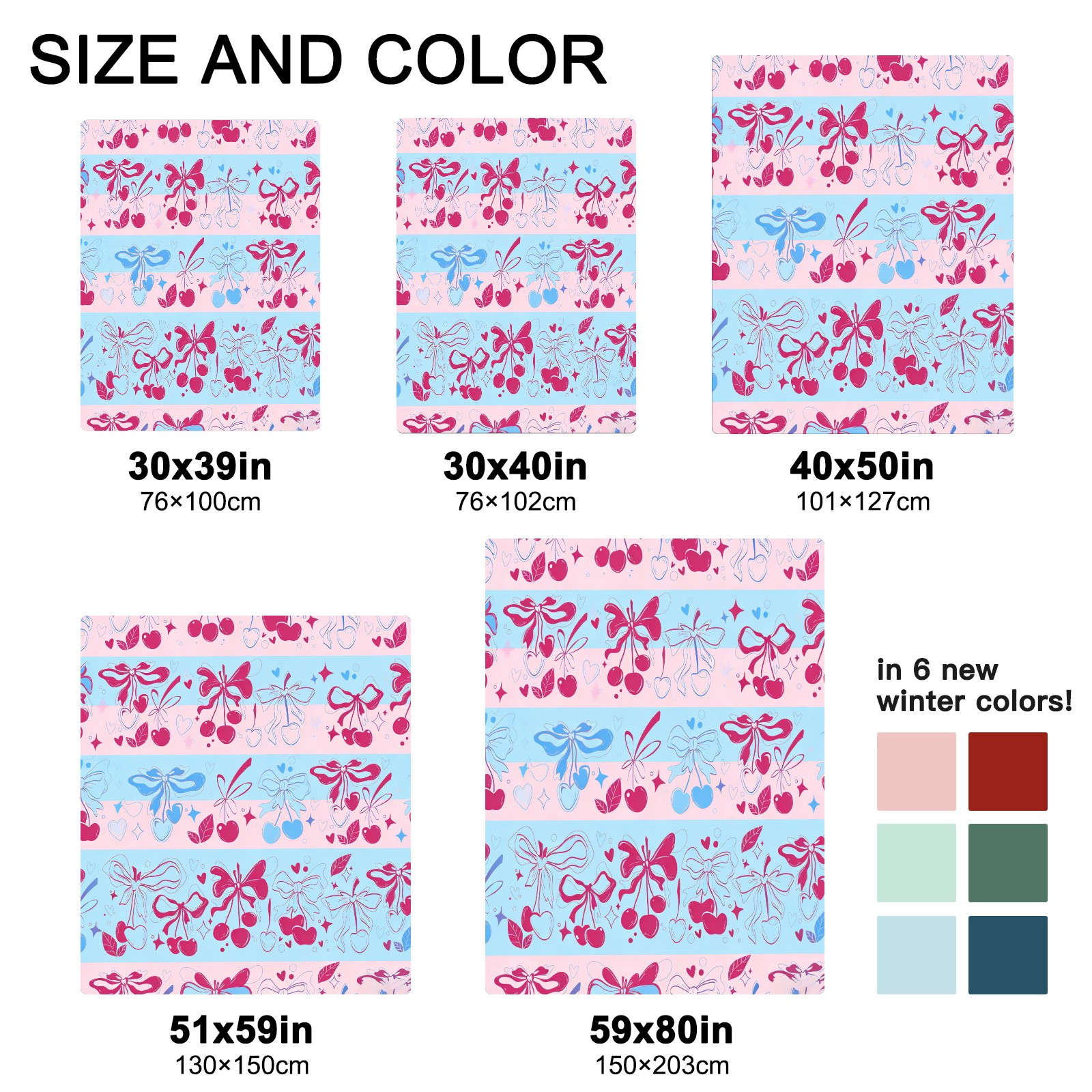 <strong></strong><p><strong>【Size】</strong>5 sizes. 30x39in/76x100cm; 30x40in/76x102cm; 40x50in/101x127cm; 51x59in /130x150cm; 59x80in/150x203cm <strong>【Product performance】</strong> &nbsp;</p><p>❤Skin-Friendly &amp; Breathable&nbsp;</p><p>❤Lightweight &amp; Folded tightly&nbsp;</p><p>❤Anti-pilling &amp; Anti-wrinkle &amp; Anti-allergy&nbsp;</p><p>❤Baby Sleep, Travel, Sofa, Nap Blanket , Bed Sheet</p>