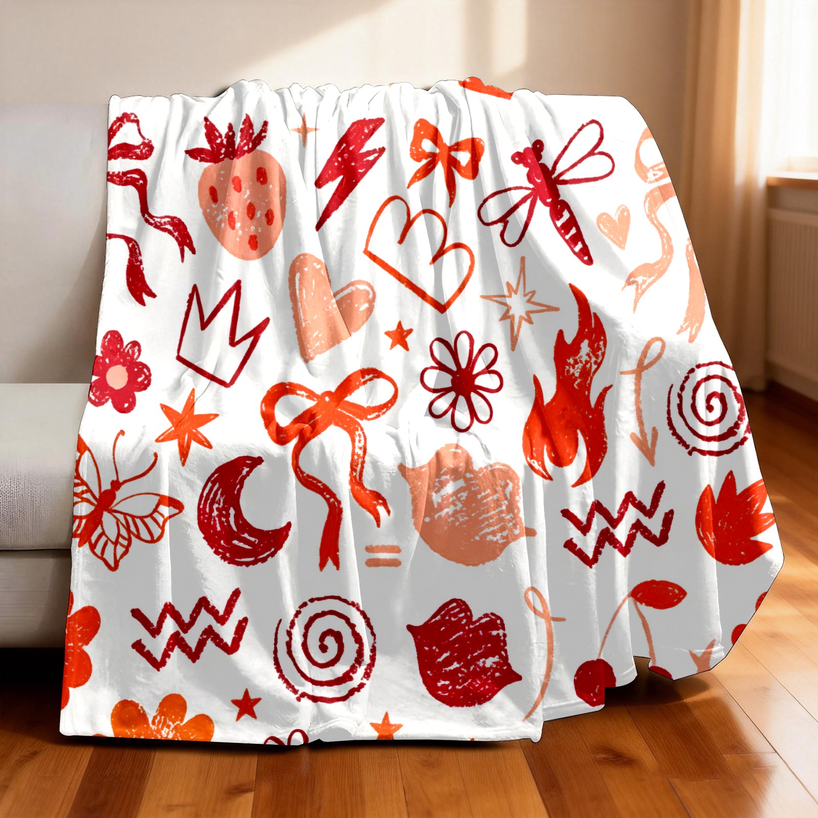 Counullo Flannel Throw Blanket, Ultra Soft Anti-Pilling Blanket for Couch & Bed, Lightweight Cozy Blanket for Travel, Home, Camping Gift - (30" x 39"), Dynamic Abstract Orange