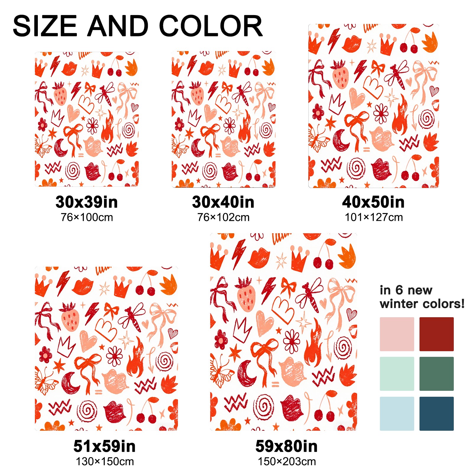 <strong></strong><p><strong>【Size】</strong>5 sizes. 30x39in/76x100cm; 30x40in/76x102cm; 40x50in/101x127cm; 51x59in /130x150cm; 59x80in/150x203cm <strong>【Product performance】</strong> &nbsp;</p><p>❤Skin-Friendly &amp; Breathable&nbsp;</p><p>❤Lightweight &amp; Folded tightly&nbsp;</p><p>❤Anti-pilling &amp; Anti-wrinkle &amp; Anti-allergy&nbsp;</p><p>❤Baby Sleep, Travel, Sofa, Nap Blanket , Bed Sheet</p>