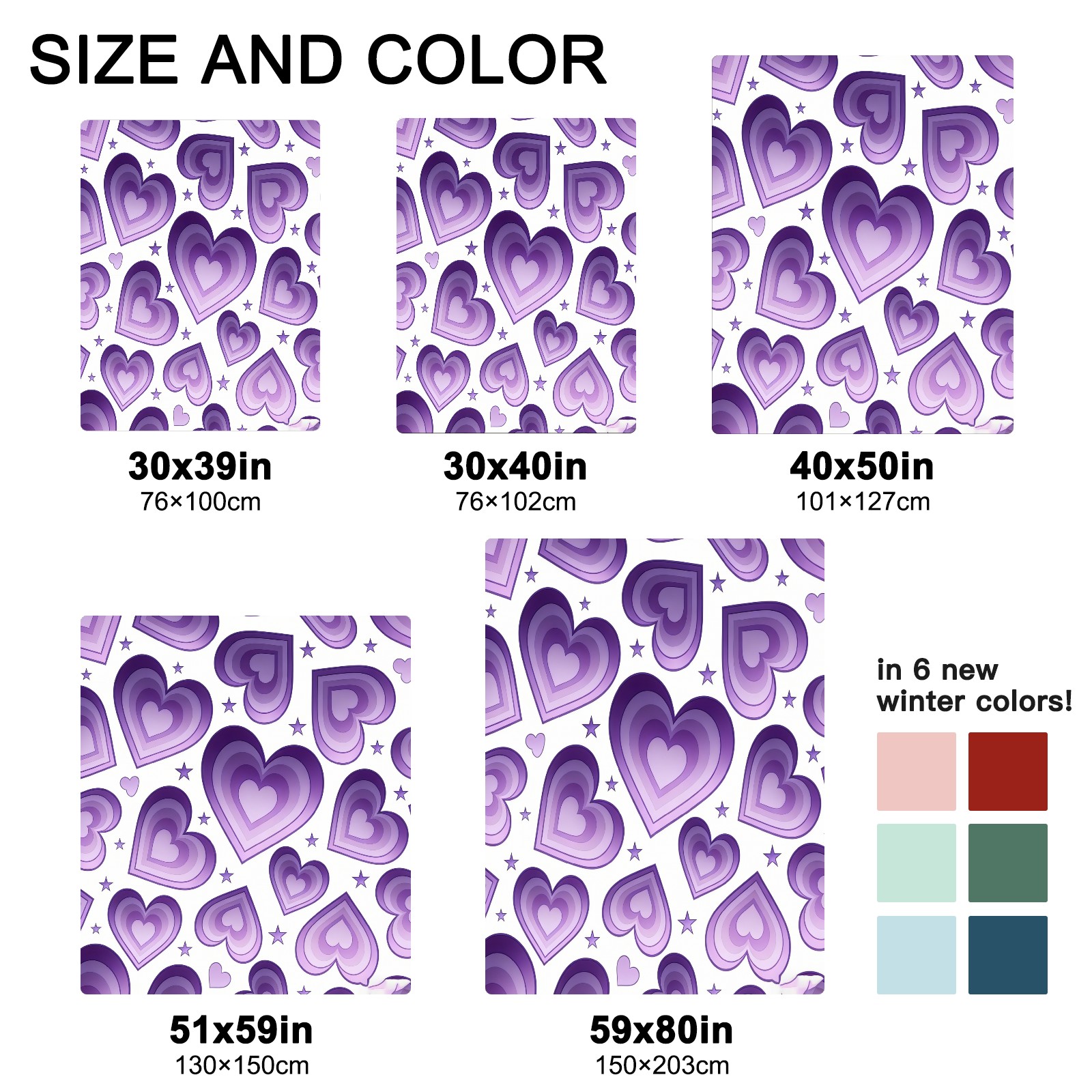 Counullo Flannel Throw Blanket, Ultra Soft Anti-Pilling Blanket for Couch & Bed, Lightweight Cozy Blanket for Travel, Home, Camping Gift - (30" x 39"), Dreamy Heart Purple