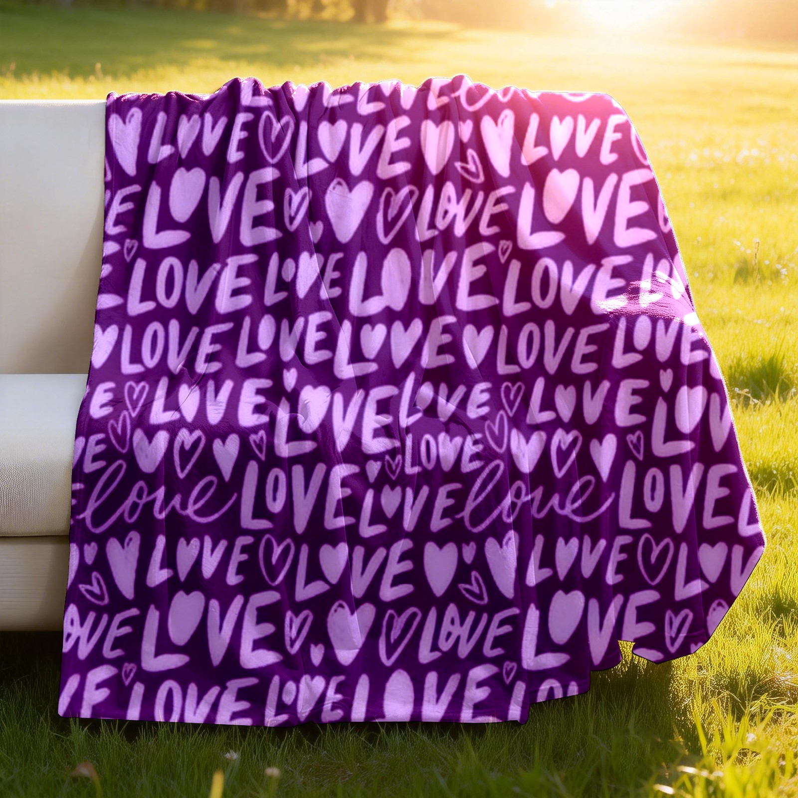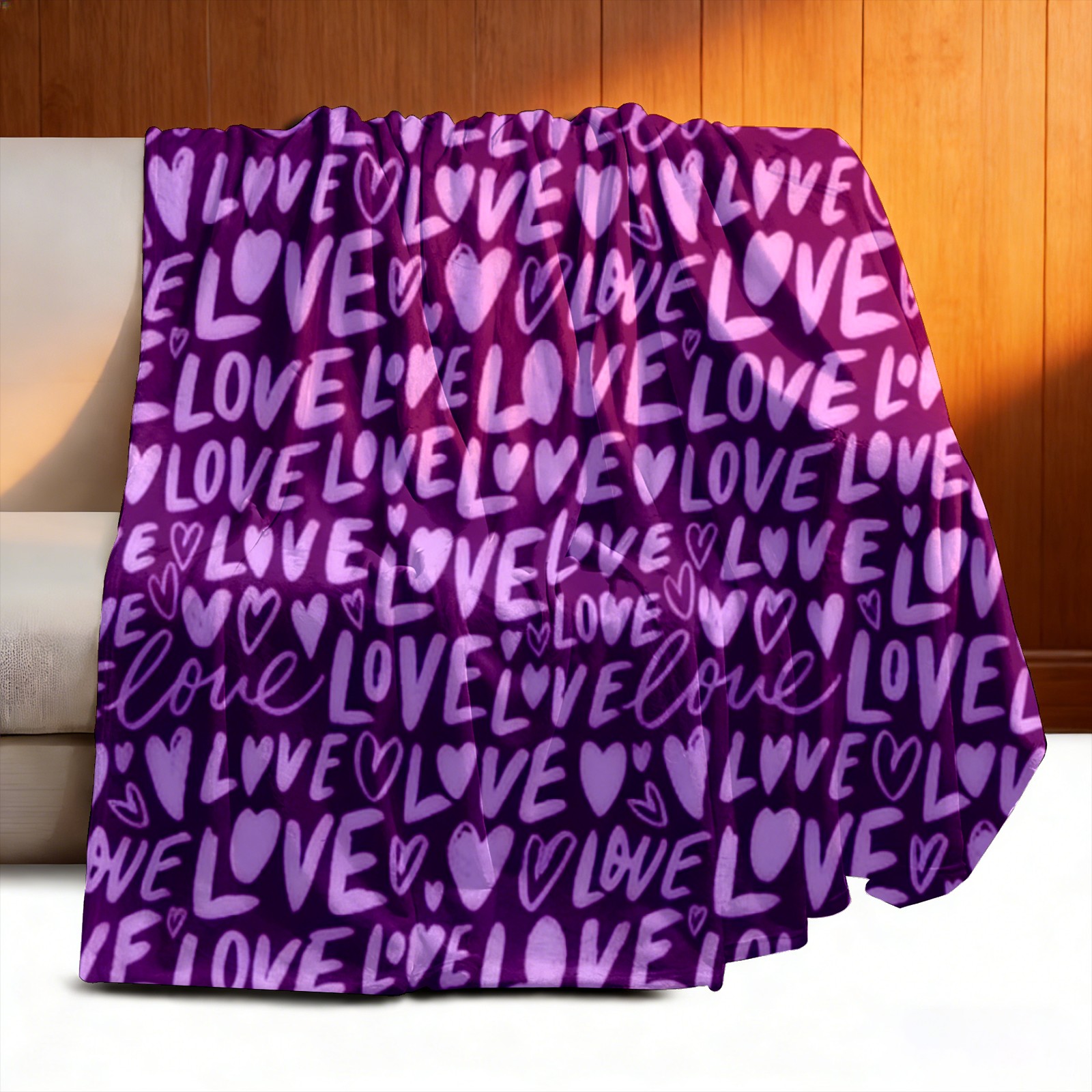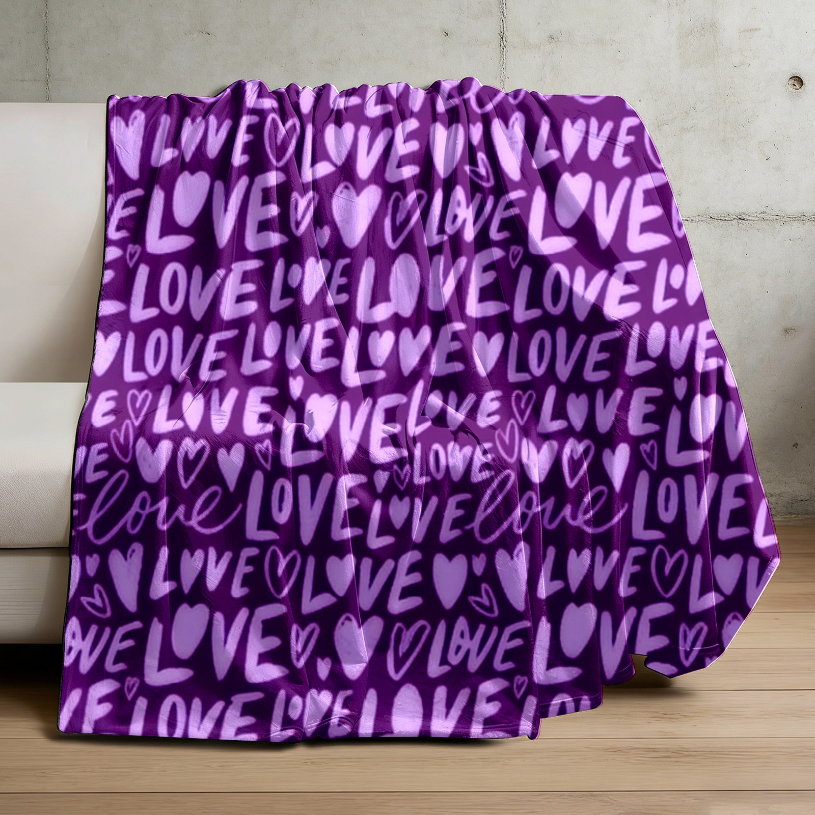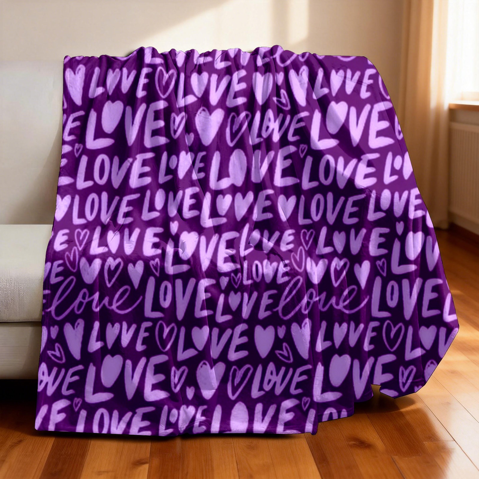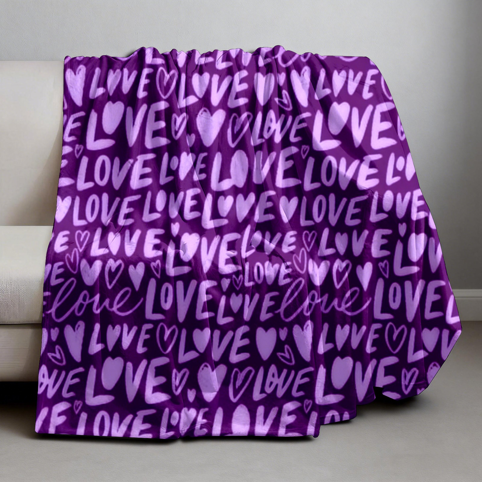Counullo Flannel Throw Blanket, Ultra Soft Anti-Pilling Blanket for Couch & Bed, Lightweight Cozy Blanket for Travel, Home, Camping Gift - (30" x 39"), Fiery LOVE Text Purple