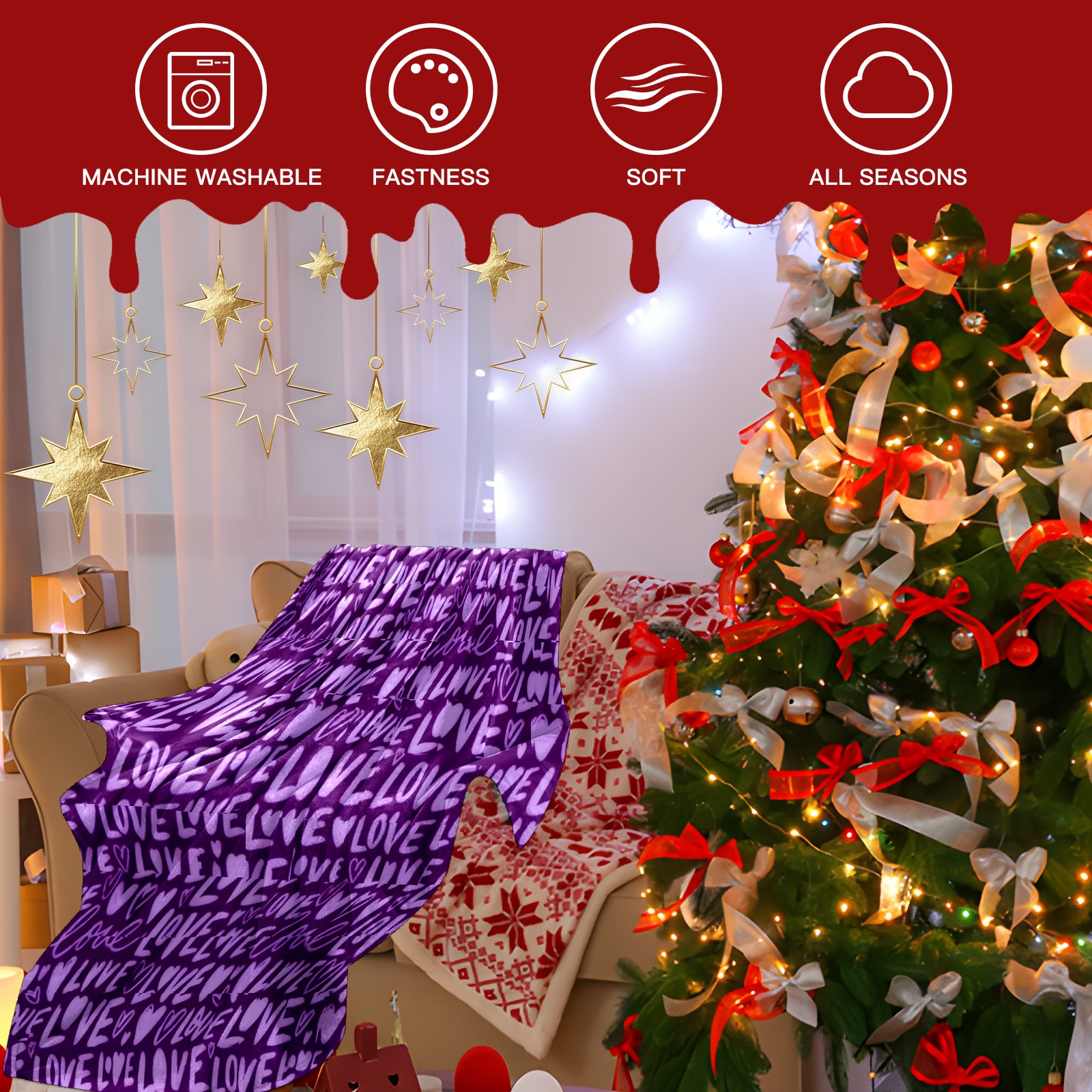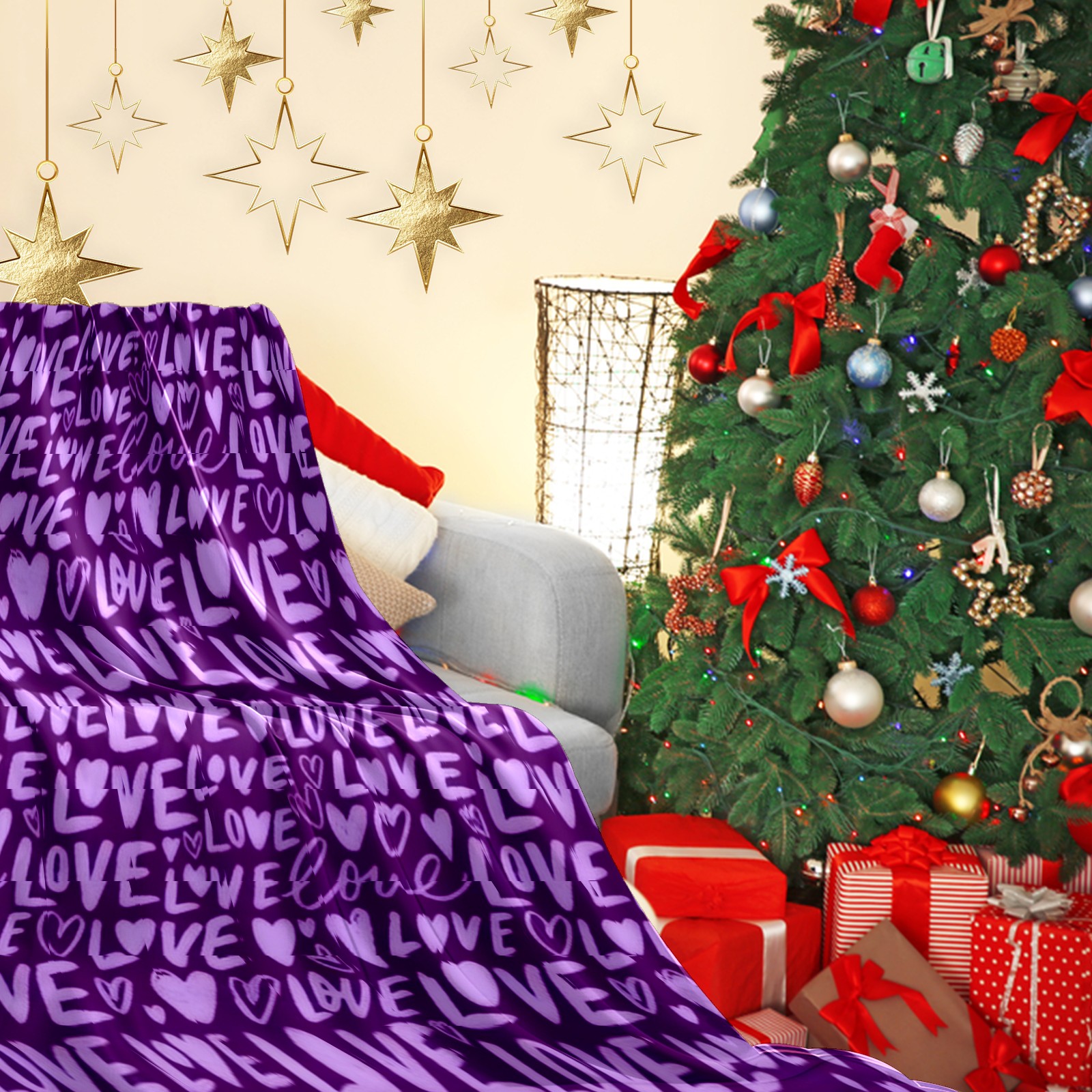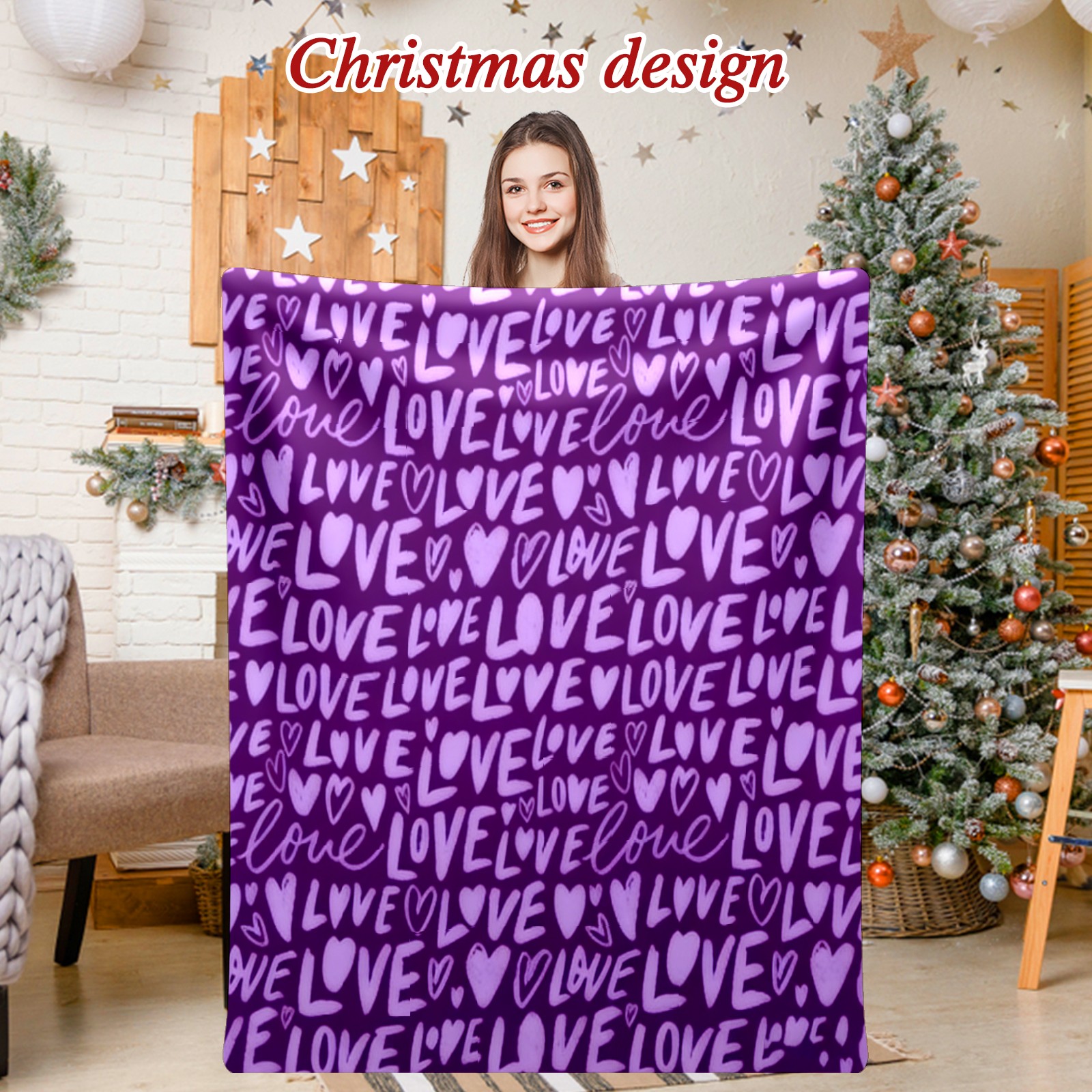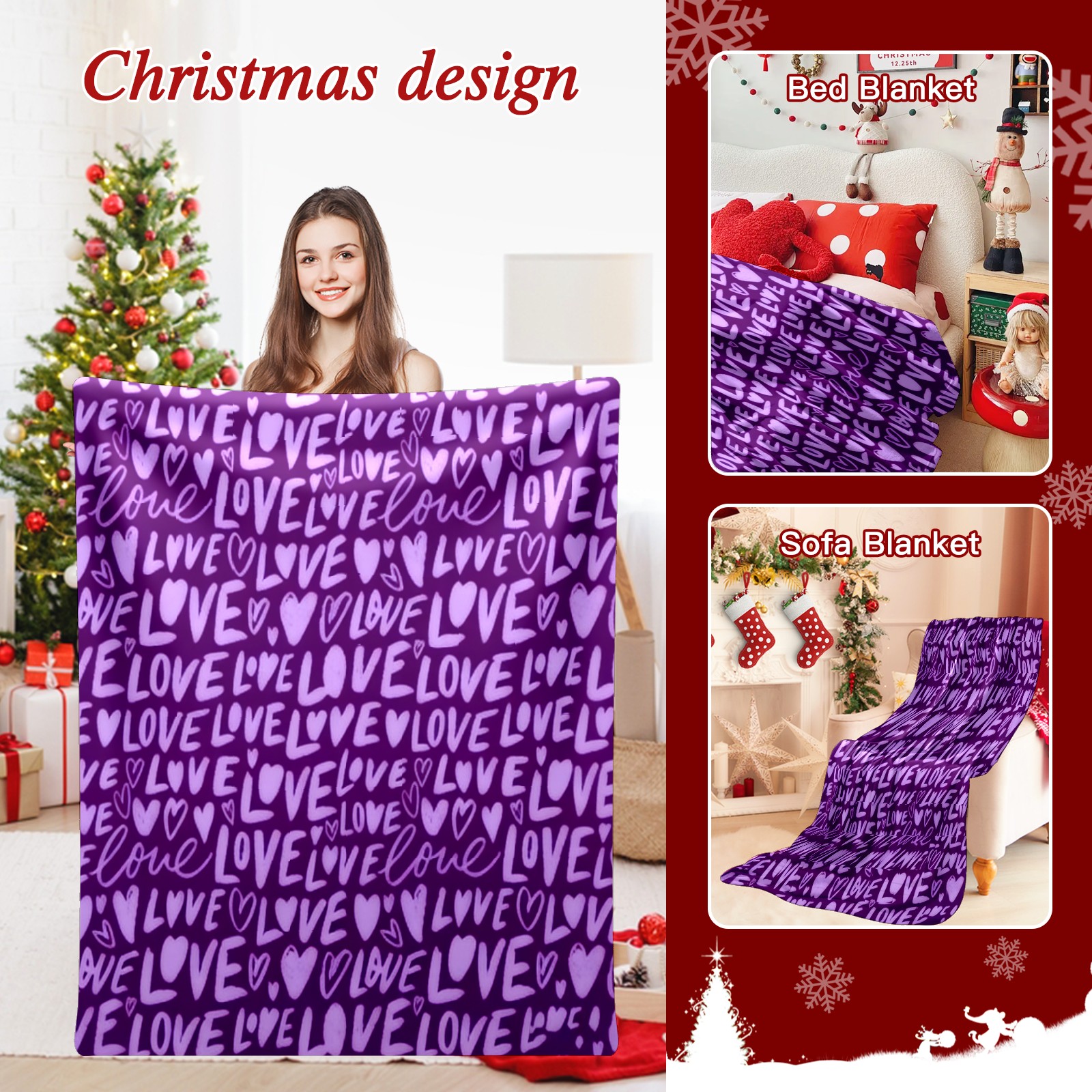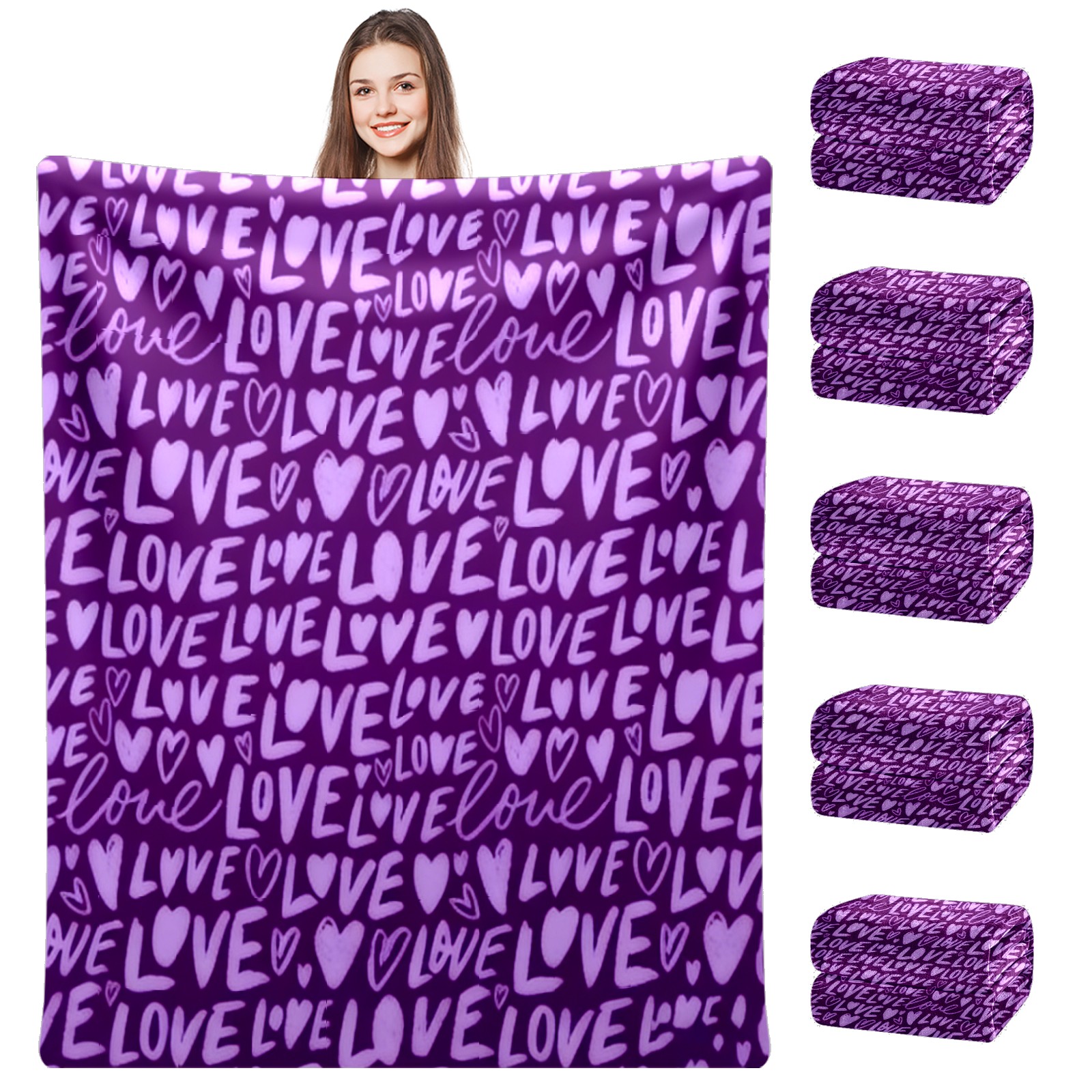 Counullo Flannel Throw Blanket, Ultra Soft Anti-Pilling Blanket for Couch & Bed, Lightweight Cozy Blanket for Travel, Home, Camping Gift - (30" x 39"), Fiery LOVE Text Purple