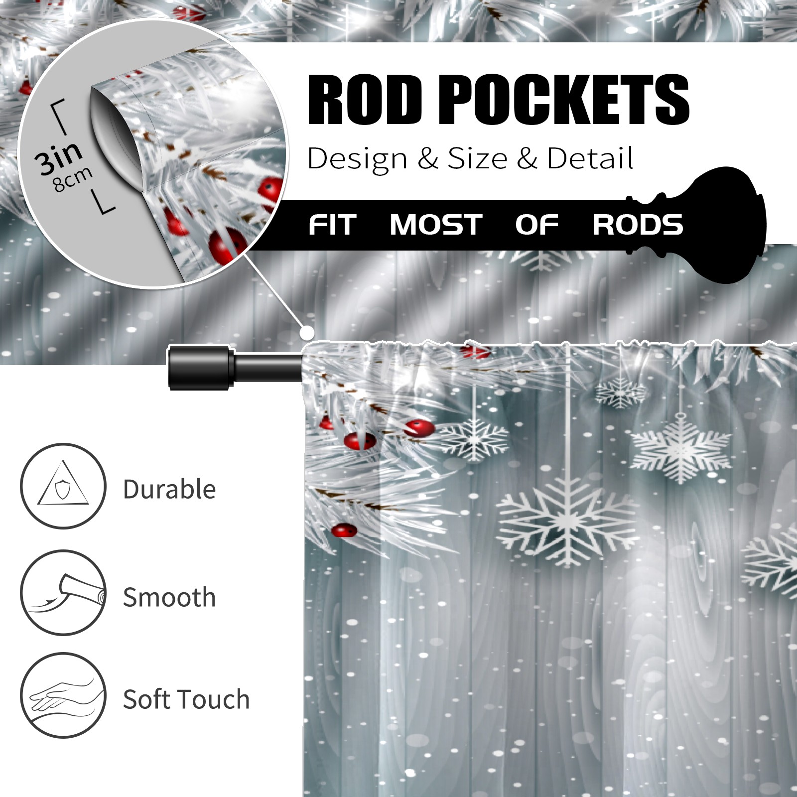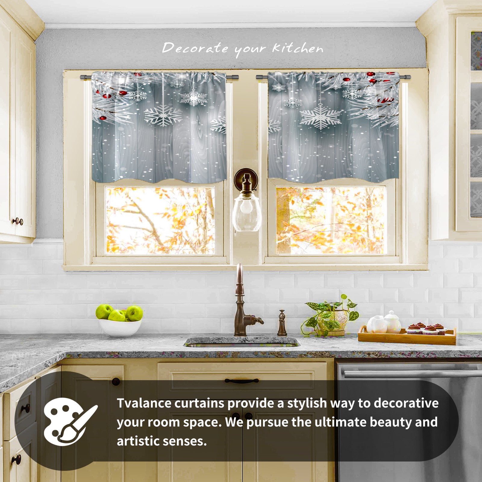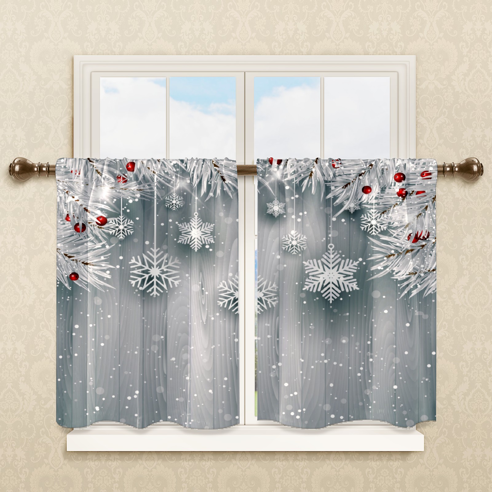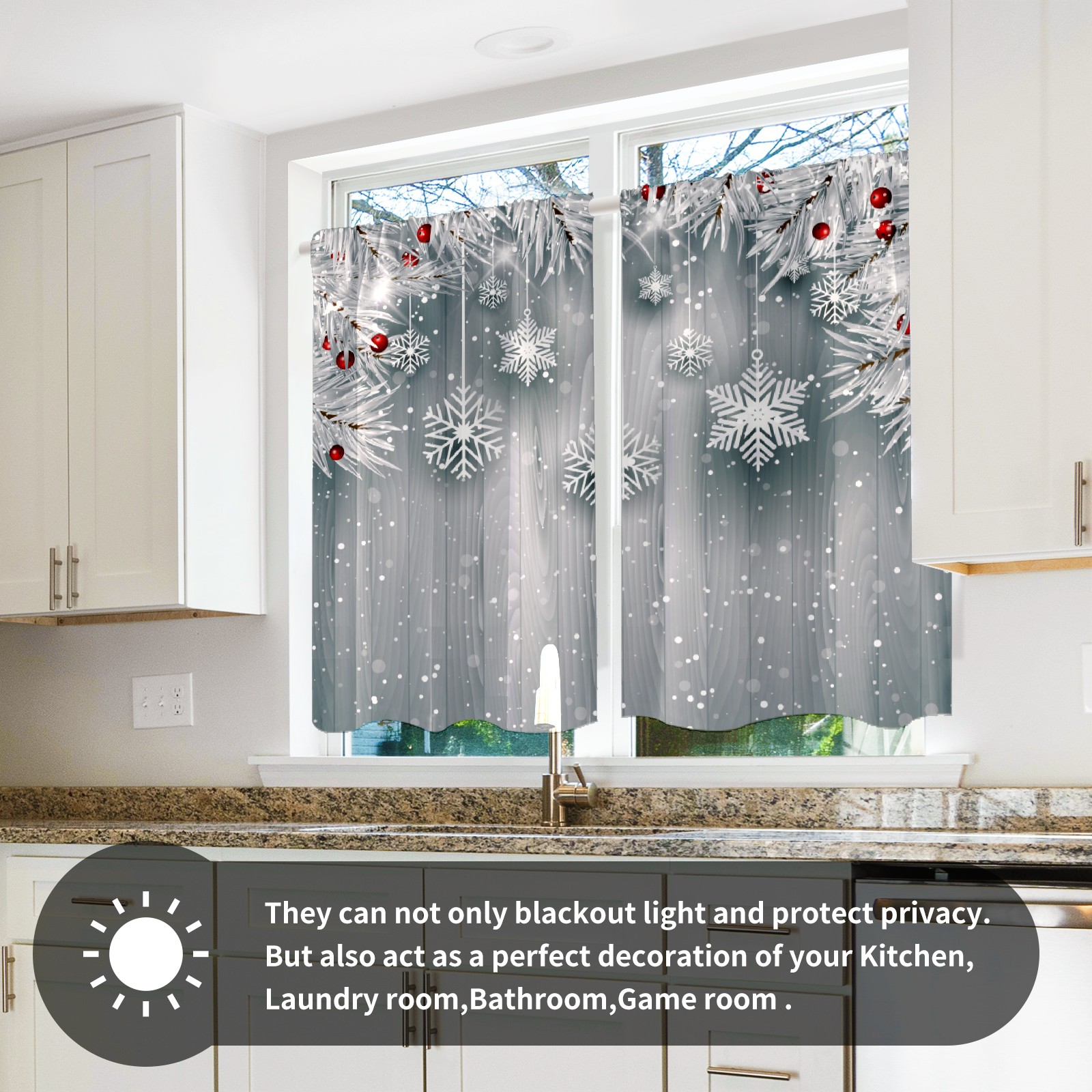 Шторы-панно для дома, декоративные драпировки для гостиной и спальни, легкие и прочные, Hanging Snowflakes With Silver Christmas Tree