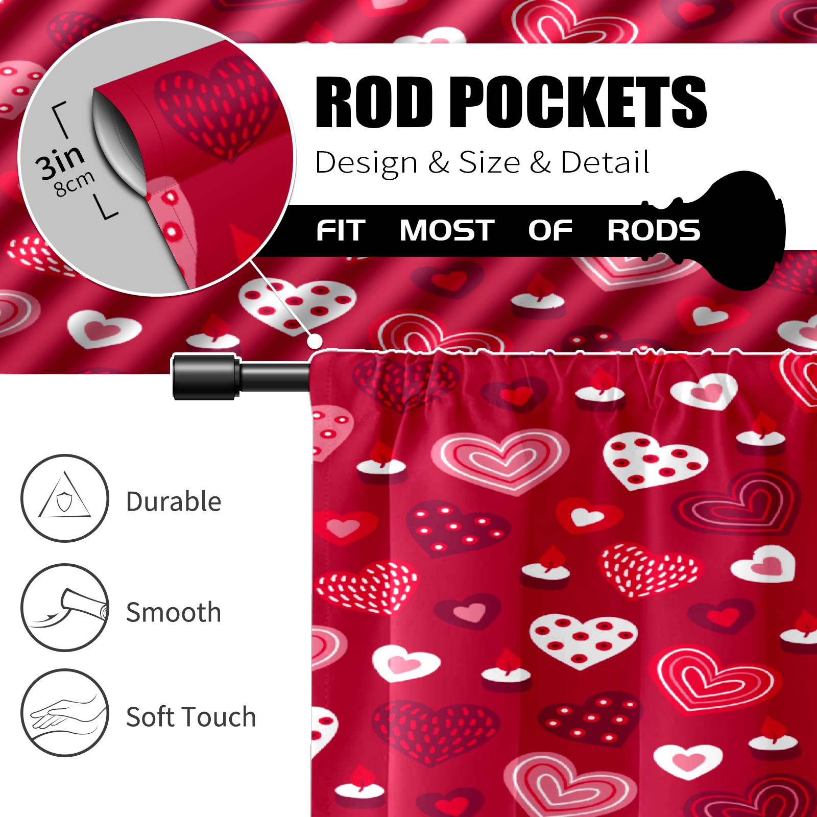 Шторы-панно для дома, декоративные драпировки для гостиной и спальни, легкие и прочные, Valentine's Day Red Love Heart Pattern