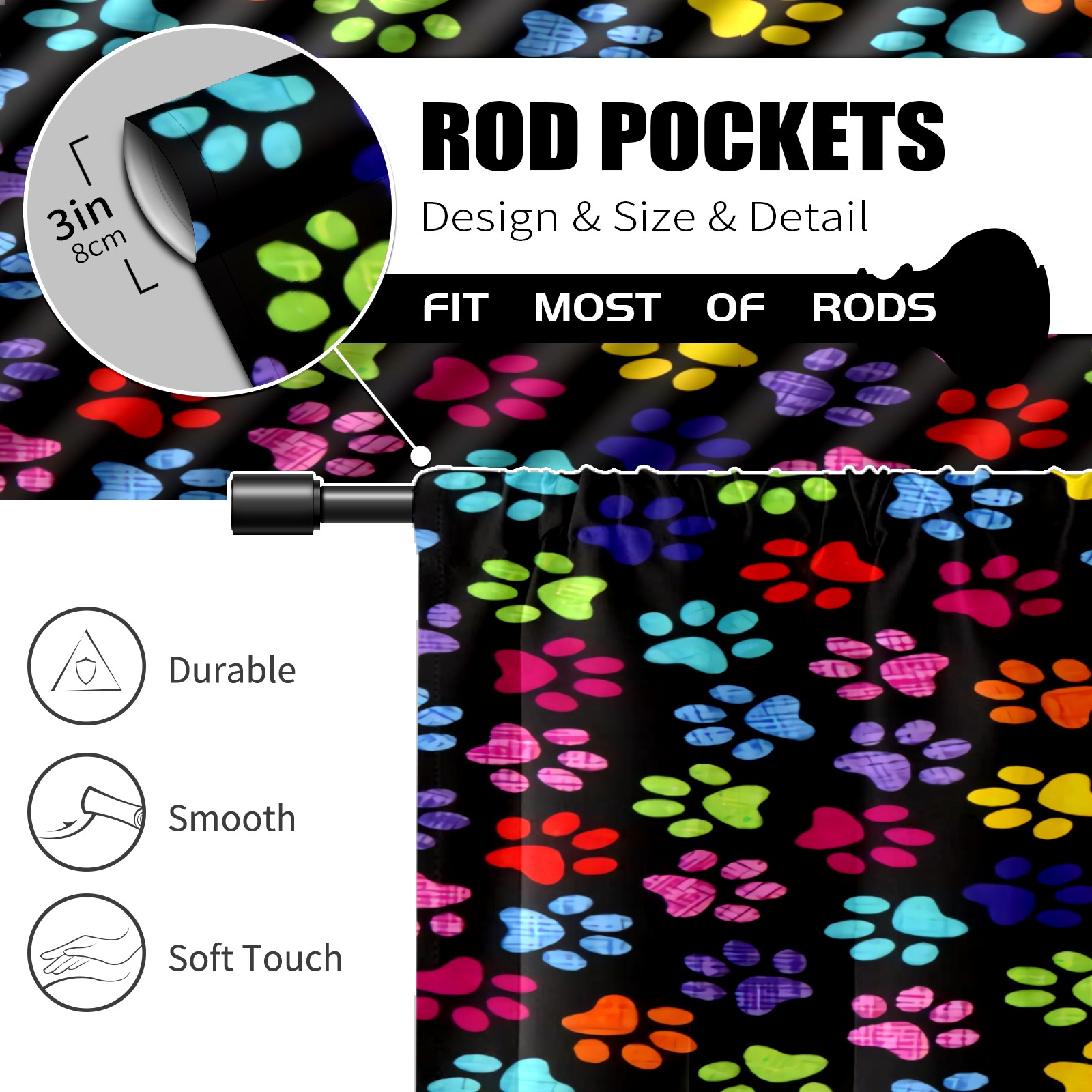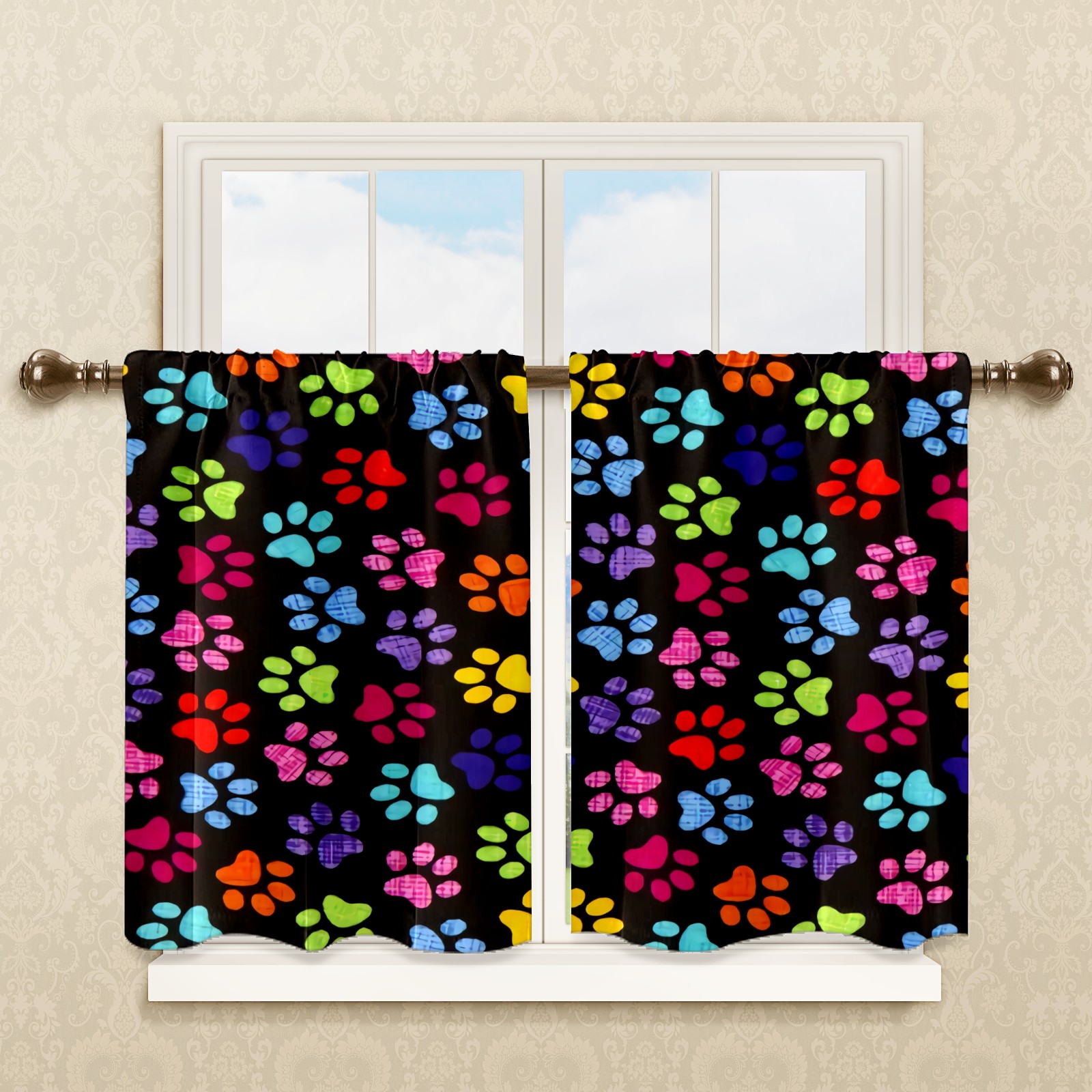Шторы-панно для дома, декоративные драпировки для гостиной и спальни, легкие и прочные, Colorful Cat Dog Pawprints