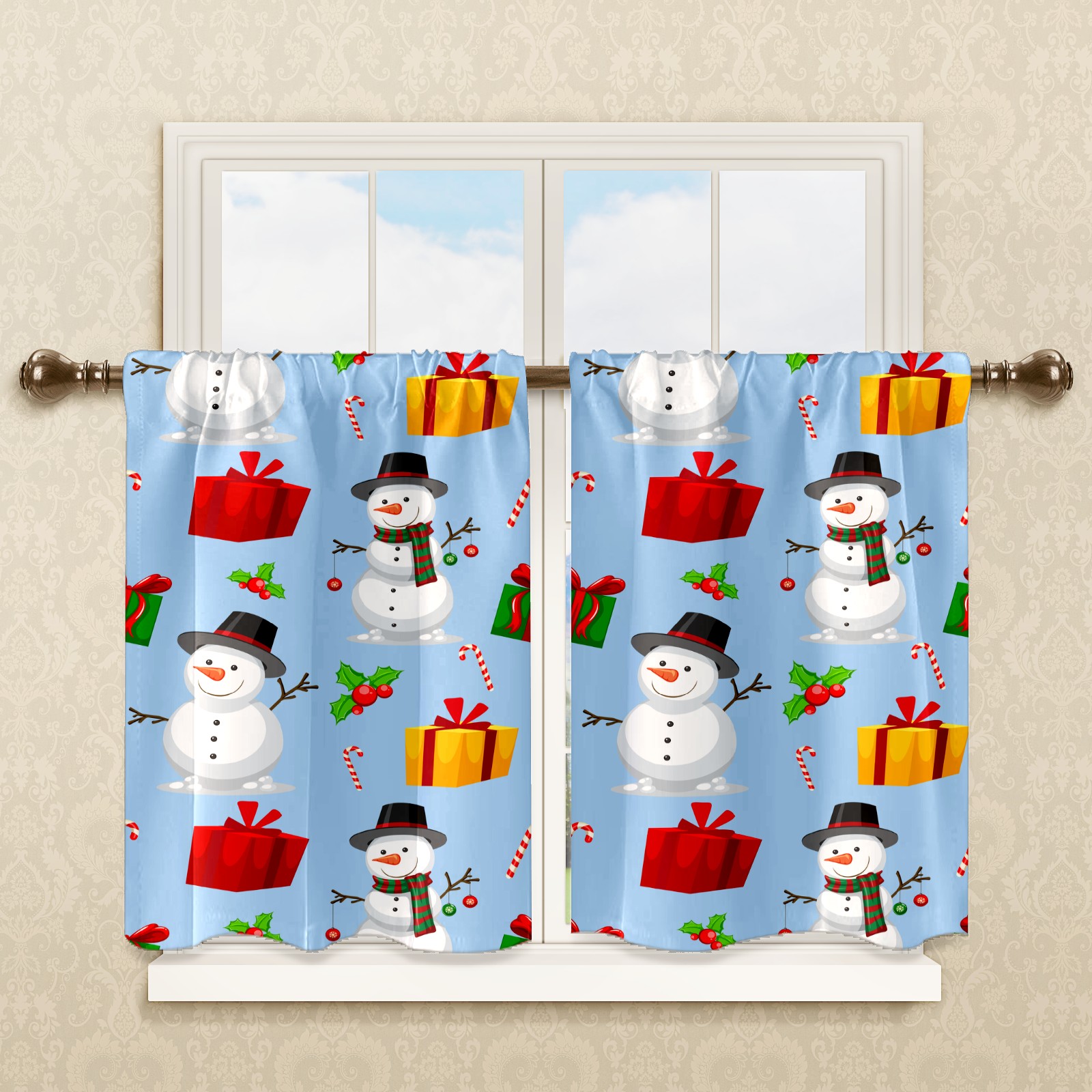 Шторы-панно для дома, декоративные драпировки для гостиной и спальни, легкие и прочные, Christmas Snowman Present Boxes With Blue Background