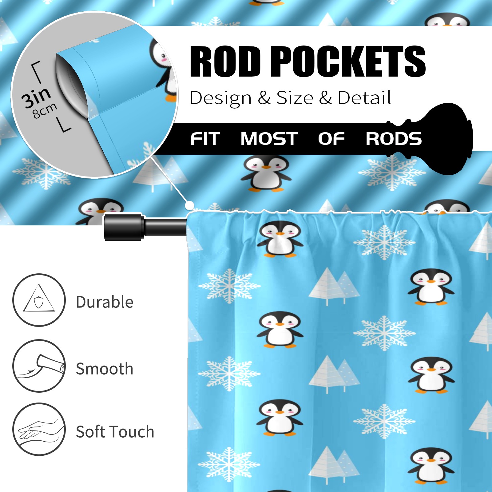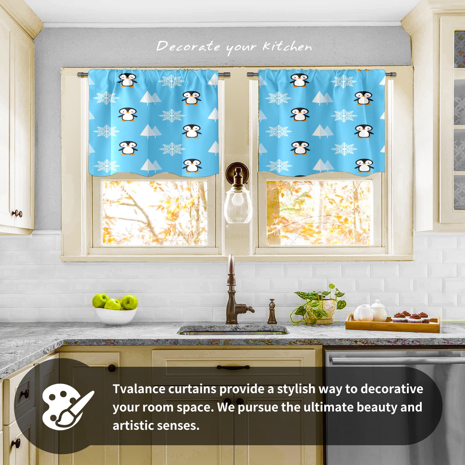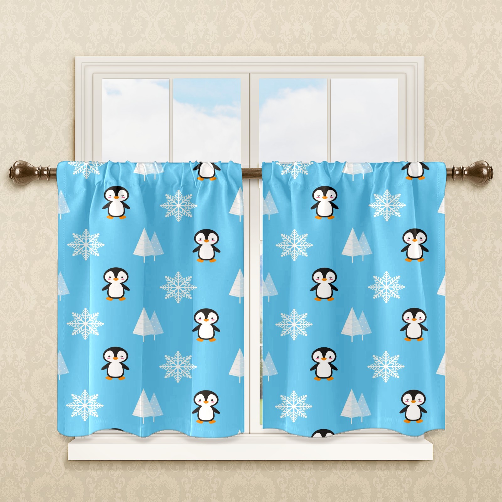 Шторы-панно для дома, декоративные драпировки для гостиной и спальни, легкие и прочные, Winter Penguin Snowflake